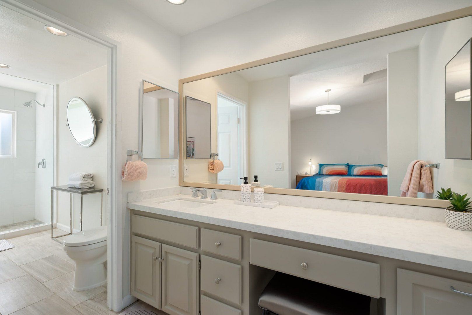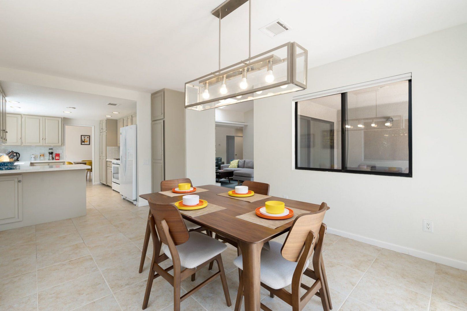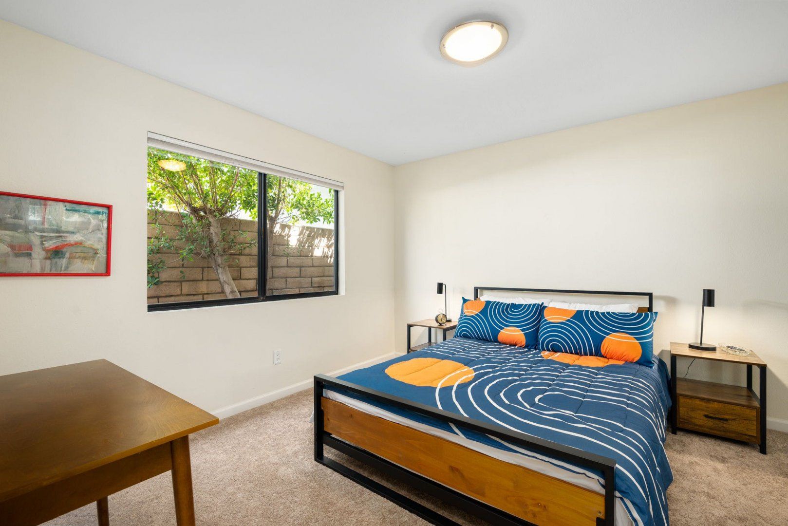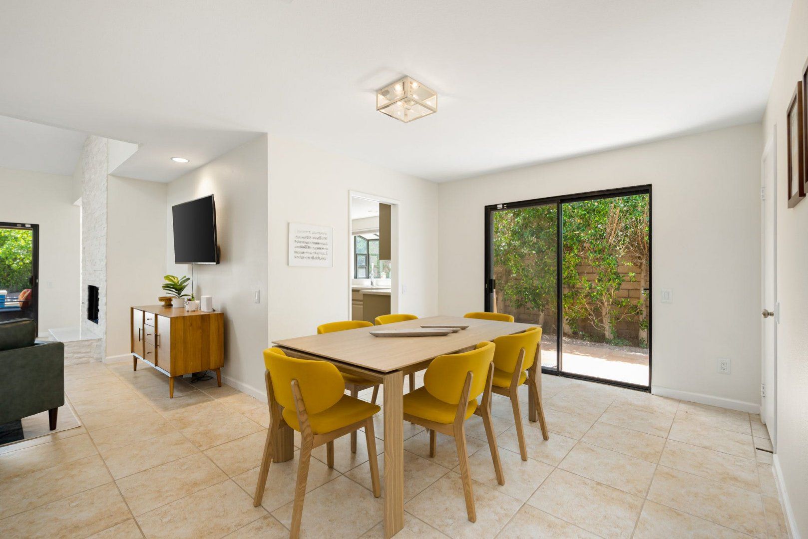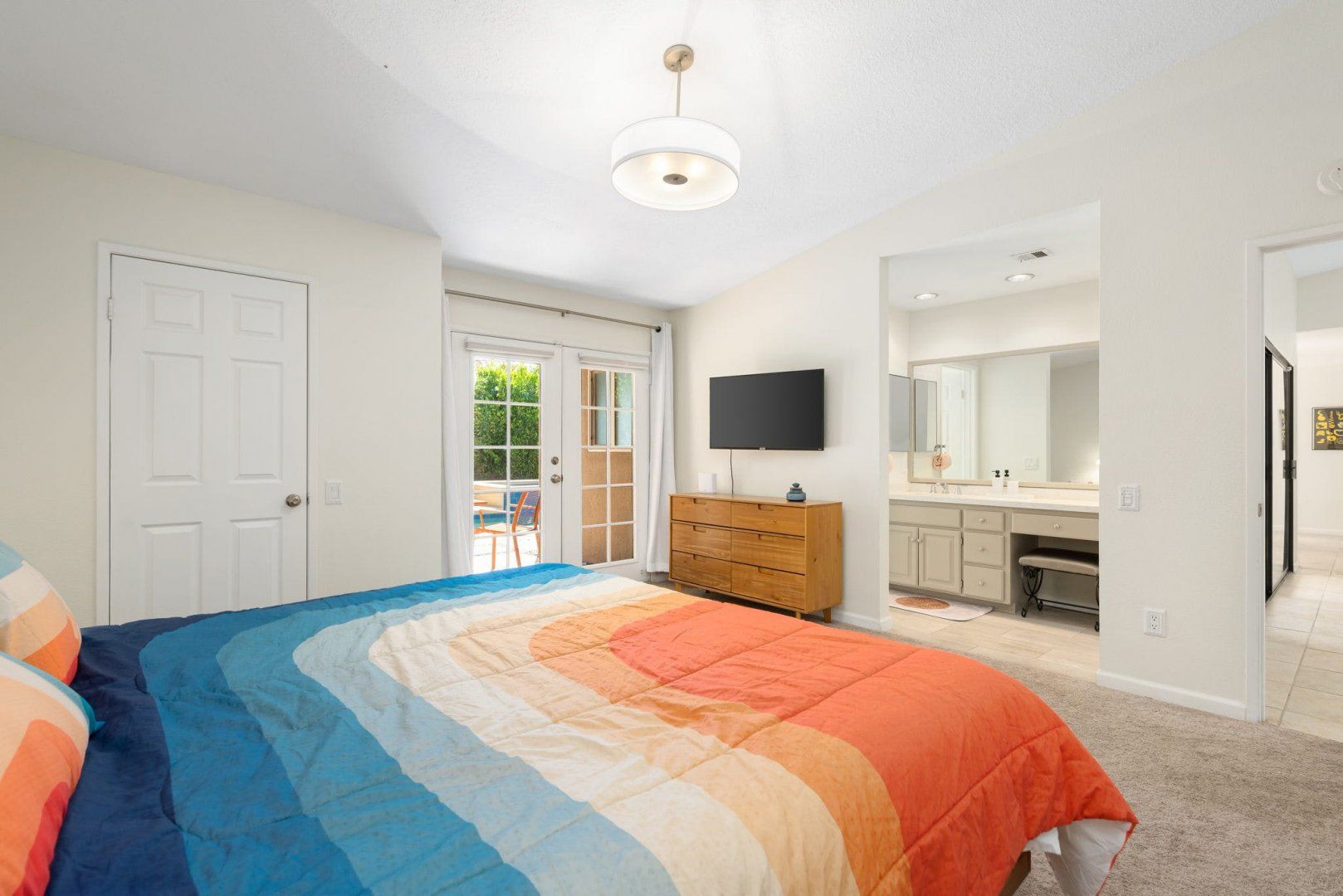 Between the country clubs and golf courses of Rancho Mirage, this mid-century-style bungalow sees some of the prettiest desert sunsets every evening. There’s a supermarket just around the corner and the centre of Palm Springs is a twenty-minute drive away. Bikes are available for those who want to explore on two wheels. The private pool and Jacuzzi provide a tonic for hot desert days and, come twilight, you can admire the silhouette of the San Jacinto mountains. The space inside has been designed to remain cool throughout the day and a fireplace in the living room can keep the evening chill at bay.