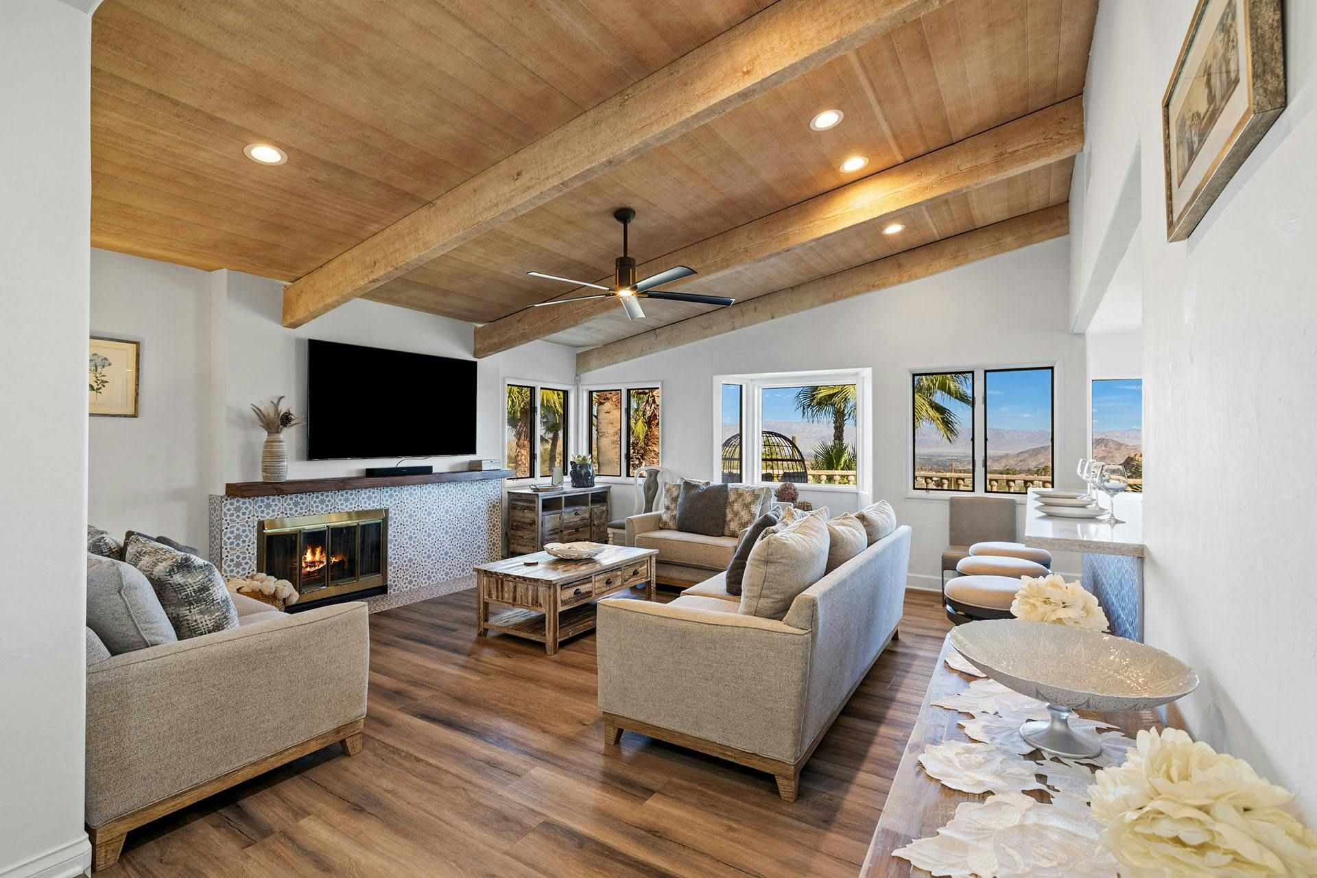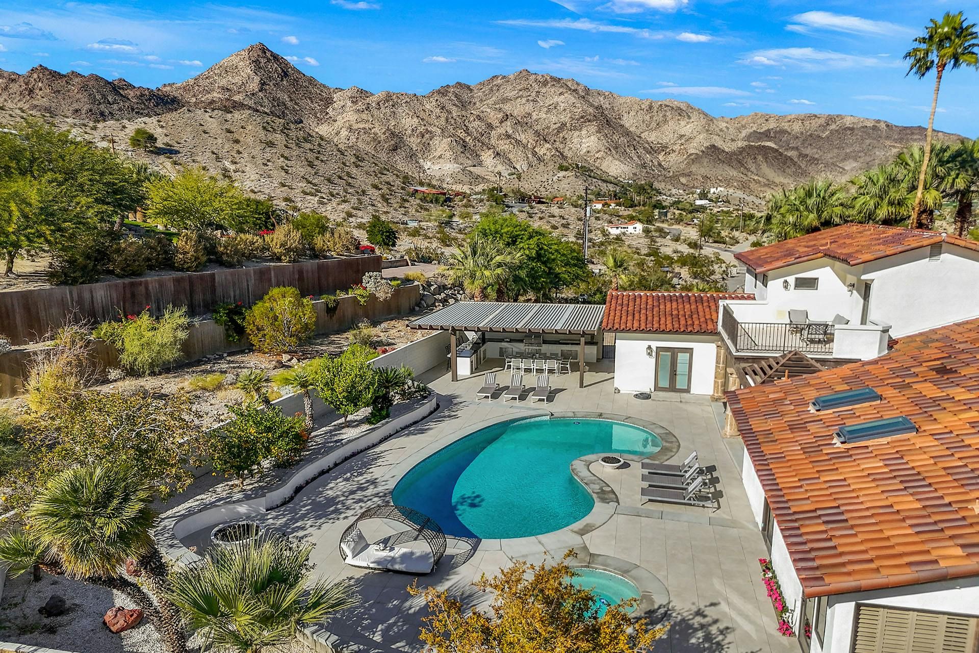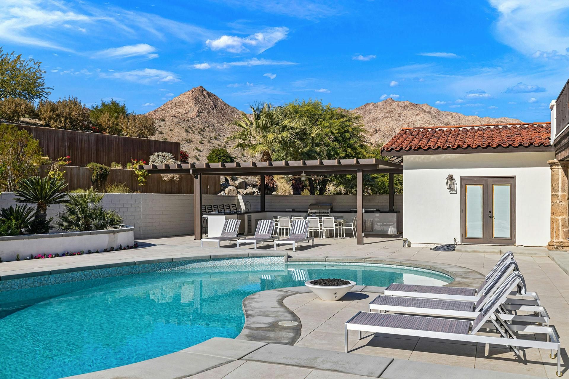 Set on three acres of land facing the San Jacinto Mountains, this stunning home is a perfect desert retreat. The garden makes the most of the surrounding vistas (and guarantees sun all day) – the front lawn commands views down the valley, while the back terrace has pretty much everything you could need to enjoy the sun, including a hot tub and bar. The separate living rooms are ideal for large groups, while the Sonos sound system and games room are sure to make your stay more memorable. Although it might feel like you're in the heart of the desert here, attractions like Palm Springs and Indian Wells are just a short drive away.