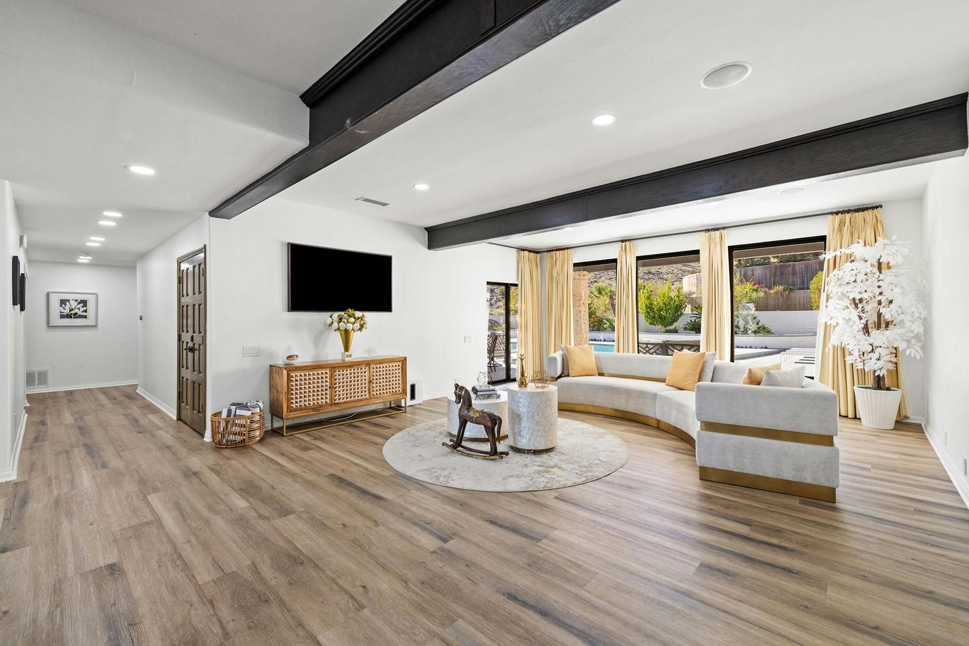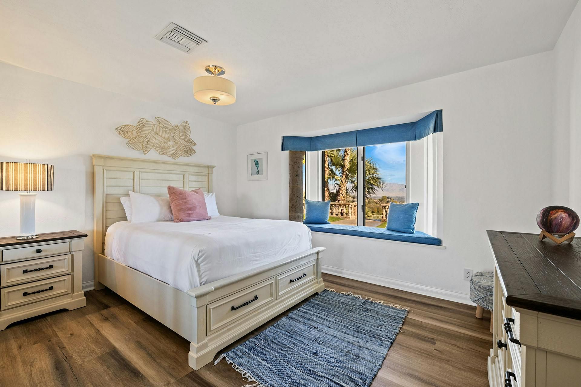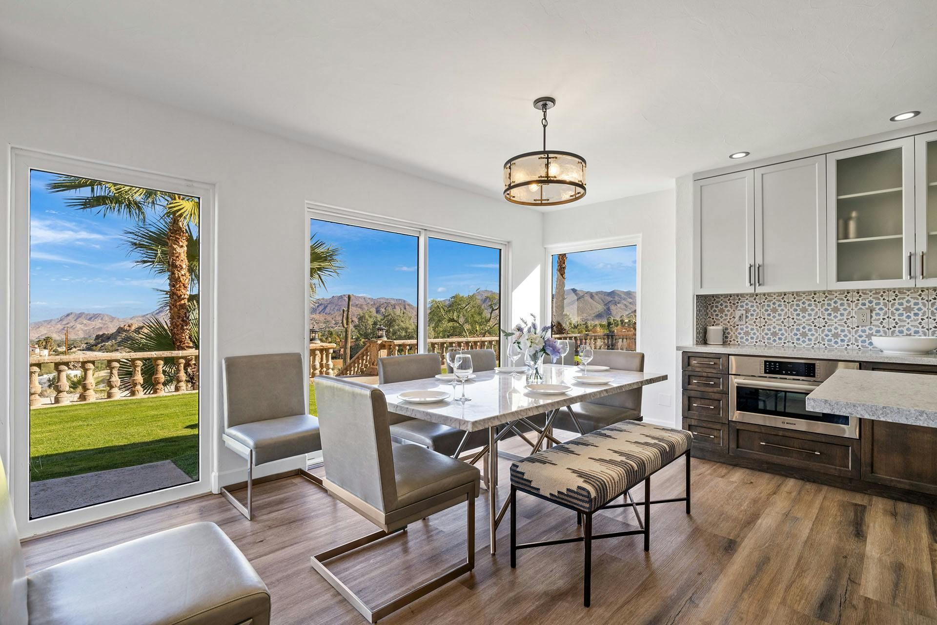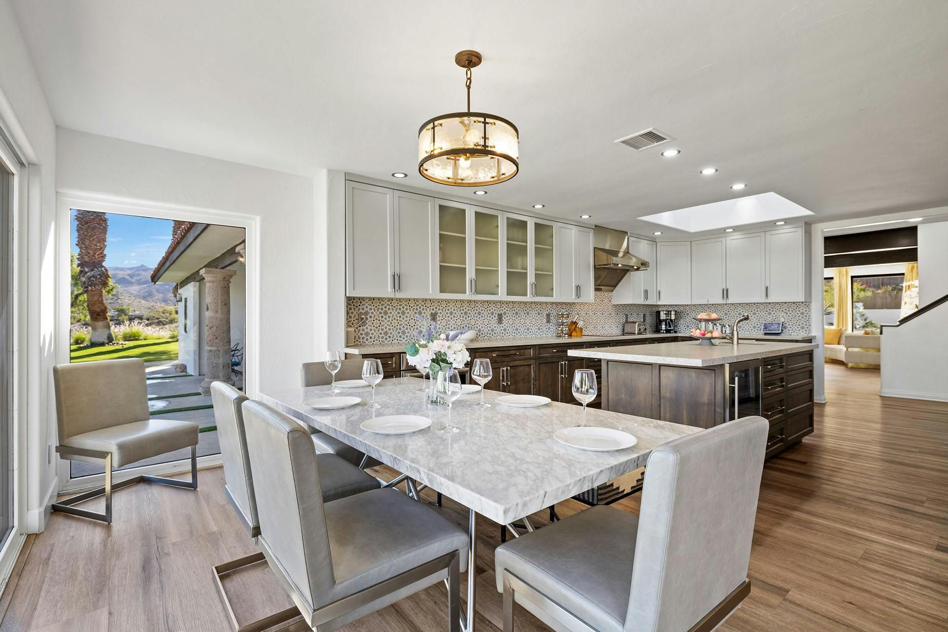 Set on three acres of land facing the San Jacinto Mountains, this stunning home is a perfect desert retreat. The garden makes the most of the surrounding vistas (and guarantees sun all day) – the front lawn commands views down the valley, while the back terrace has pretty much everything you could need to enjoy the sun, including a hot tub and bar. The separate living rooms are ideal for large groups, while the Sonos sound system and games room are sure to make your stay more memorable. Although it might feel like you're in the heart of the desert here, attractions like Palm Springs and Indian Wells are just a short drive away.