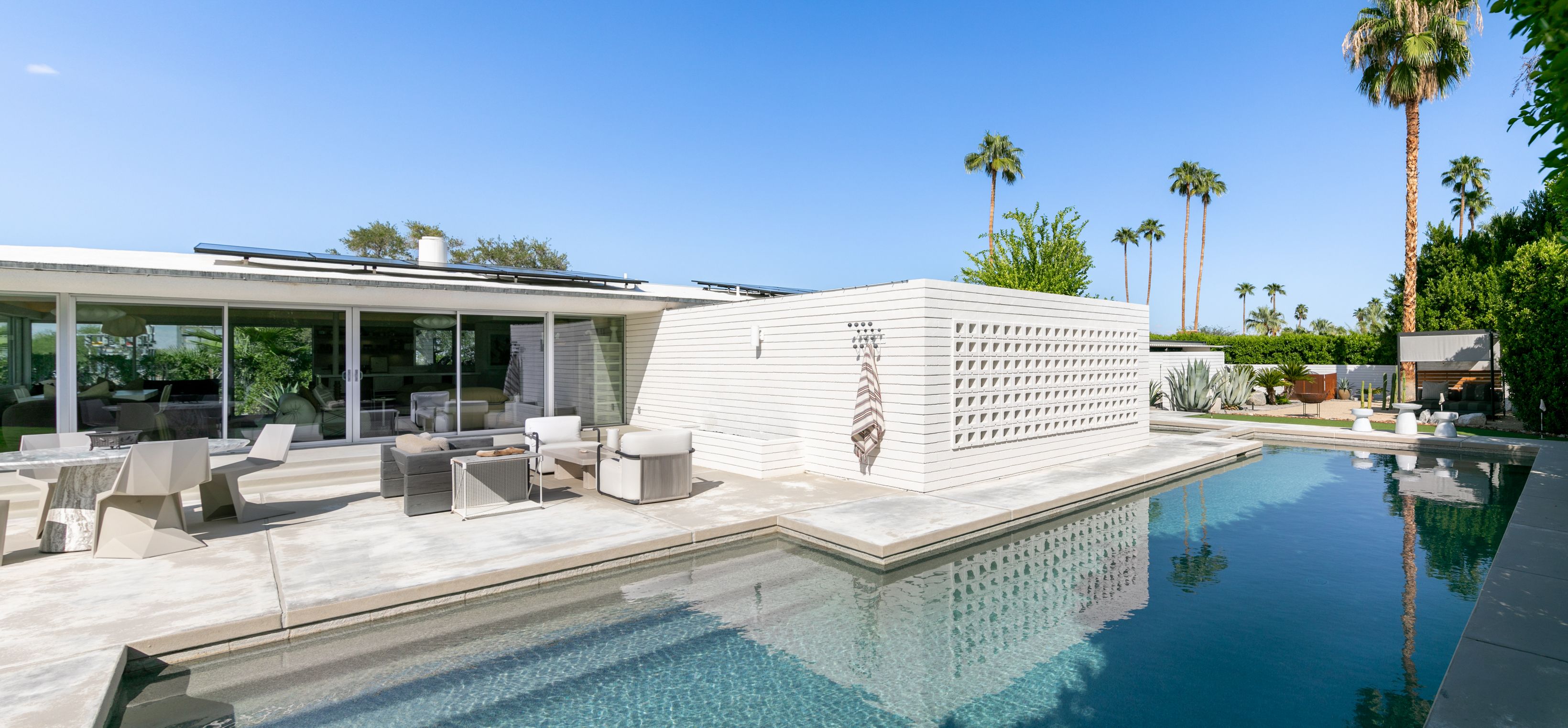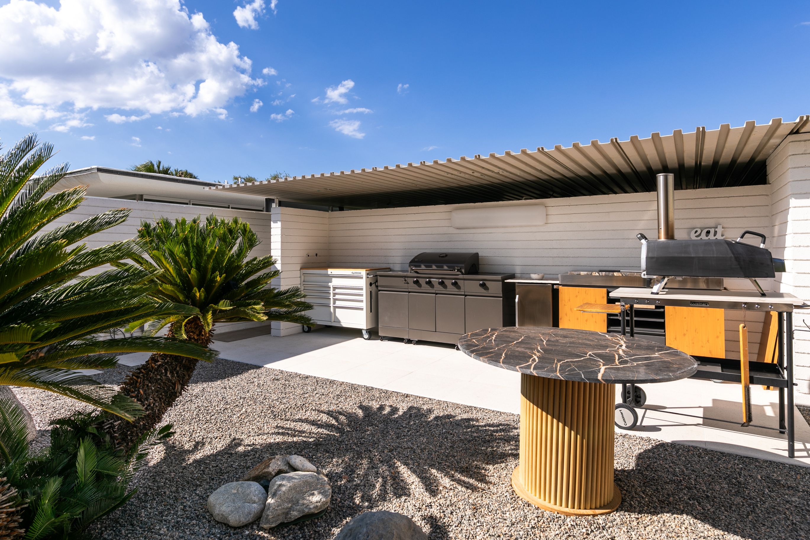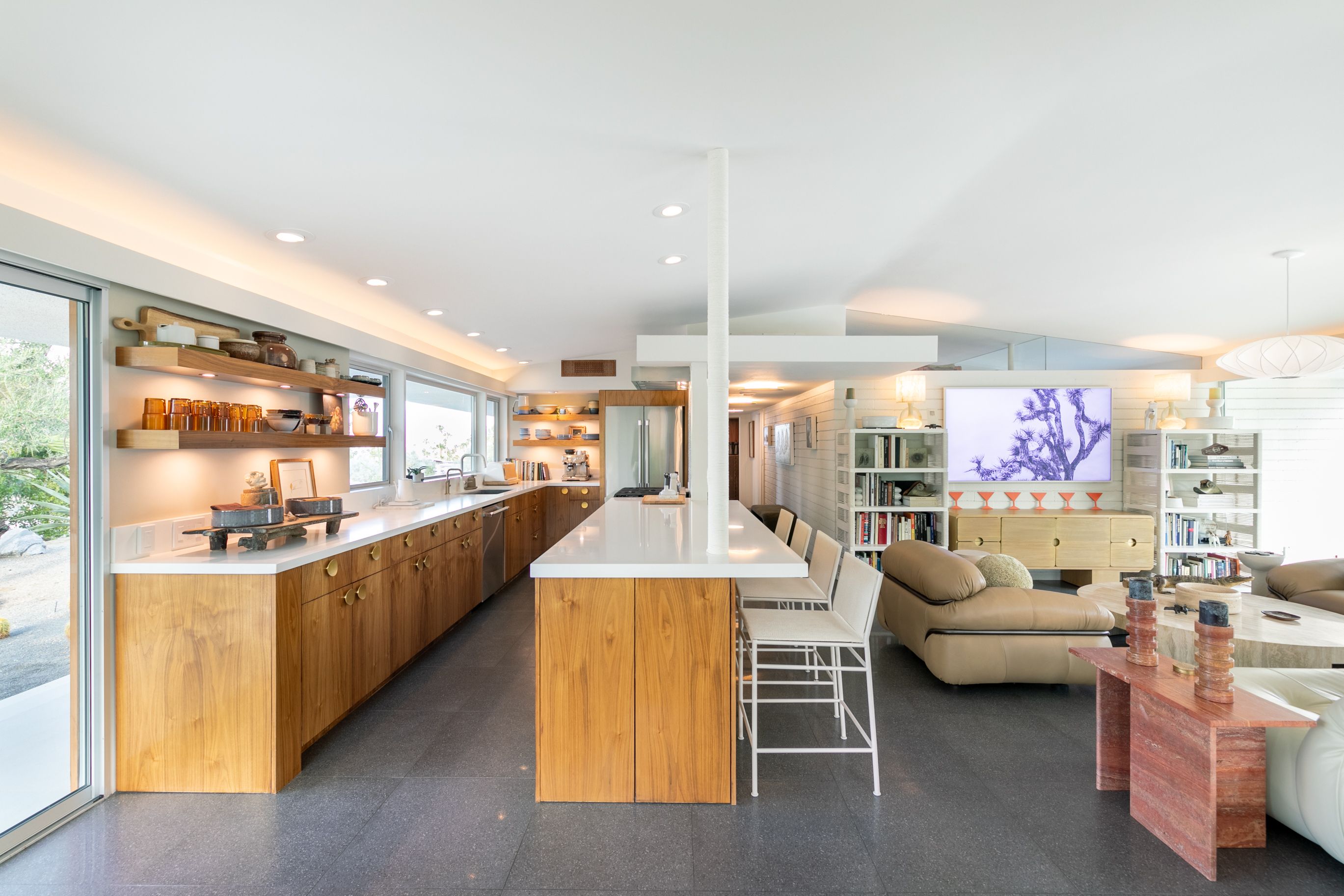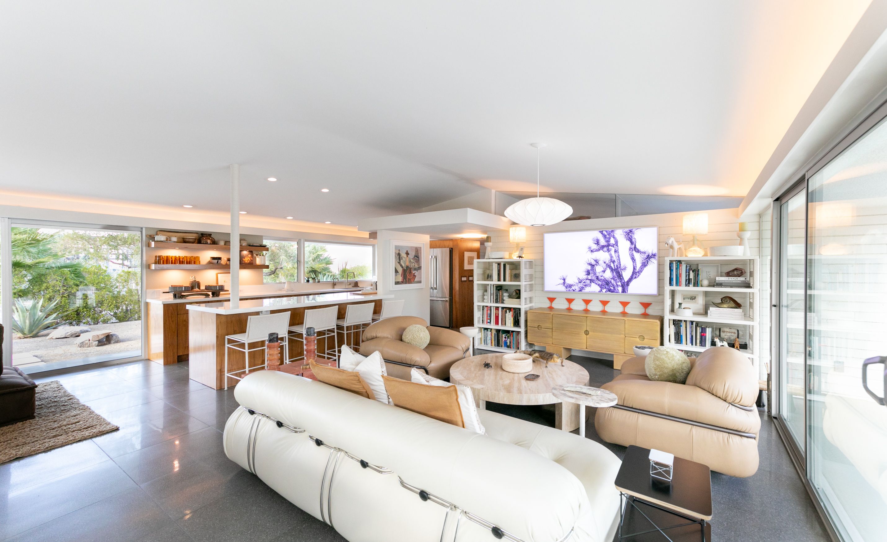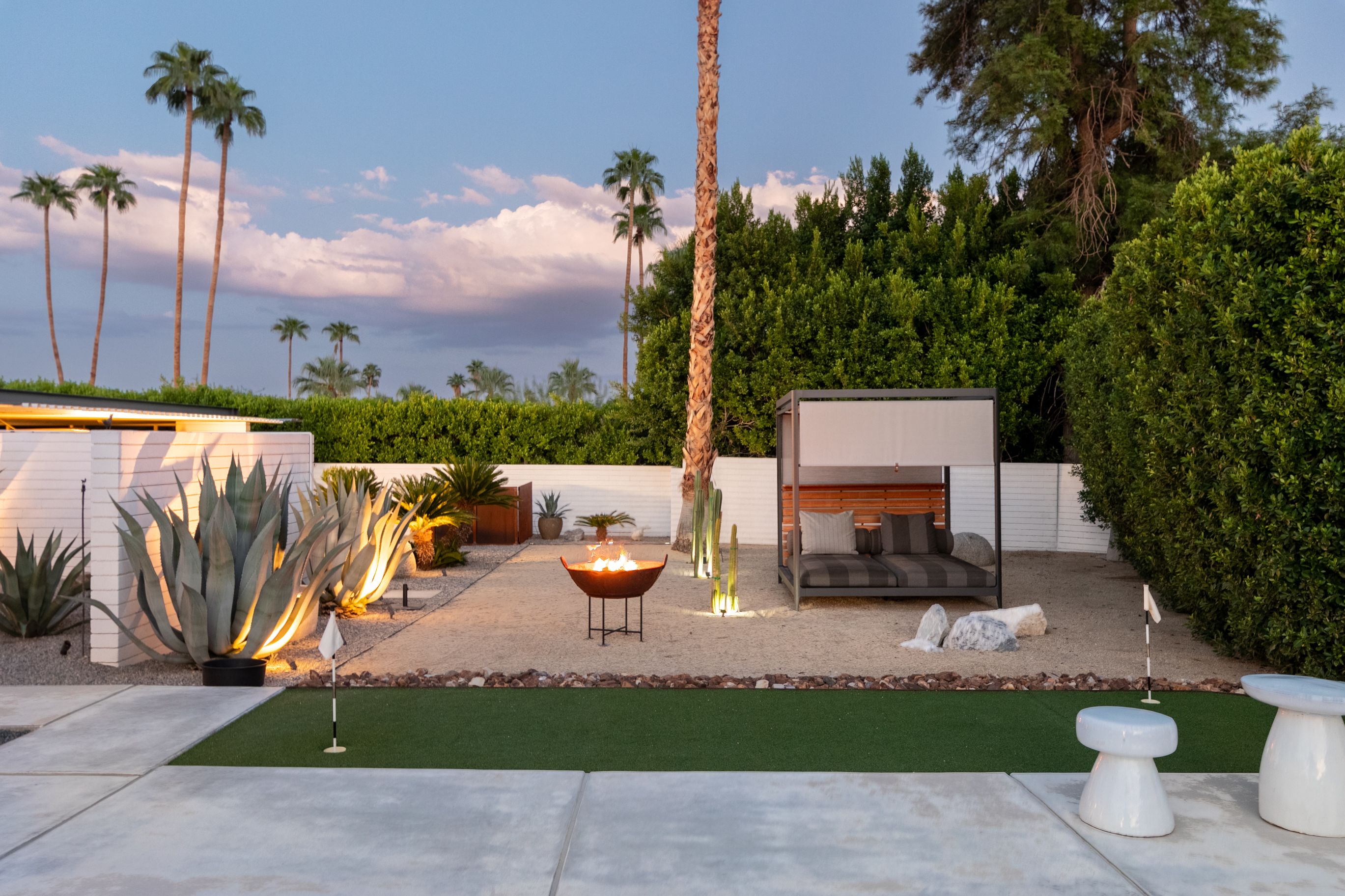 Situated in Palm Desert, beneath big skies and mountain vistas, this mid-century modern home is a real oasis. The layout lends itself perfectly to the indoor-outdoor lifestyle, with an open-plan living space that leads to the backyard. Stepping outside, you’ll find a swimming pool, patio, and outdoor kitchen, along with a bocce court, putting green, and firepits for cosy stargazing. Meanwhile inside, the rooms are furnished in refined retro style, both comfortable and characterful. And with the desert on your doorstep, you’ll never be short of things to see and do during your stay.