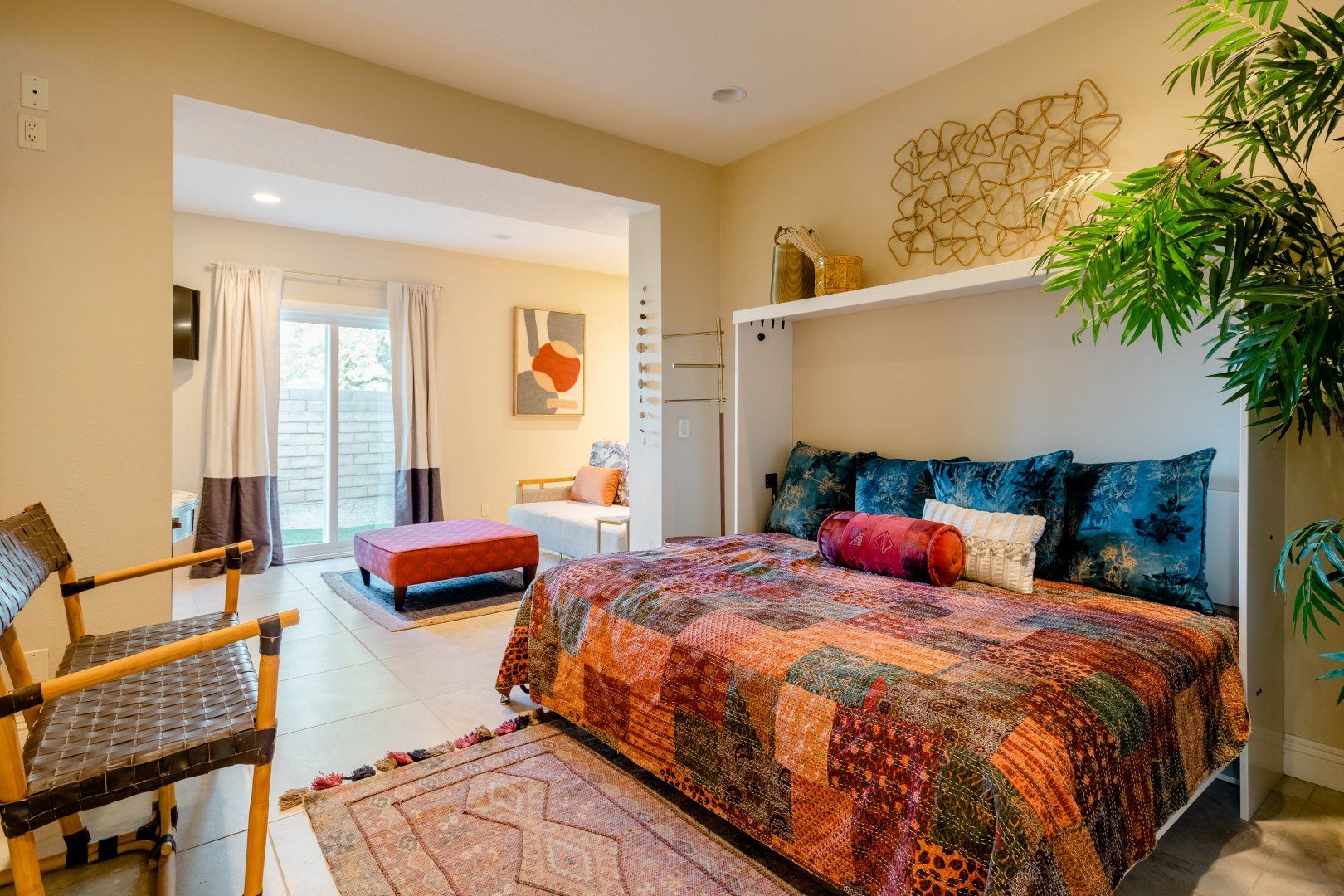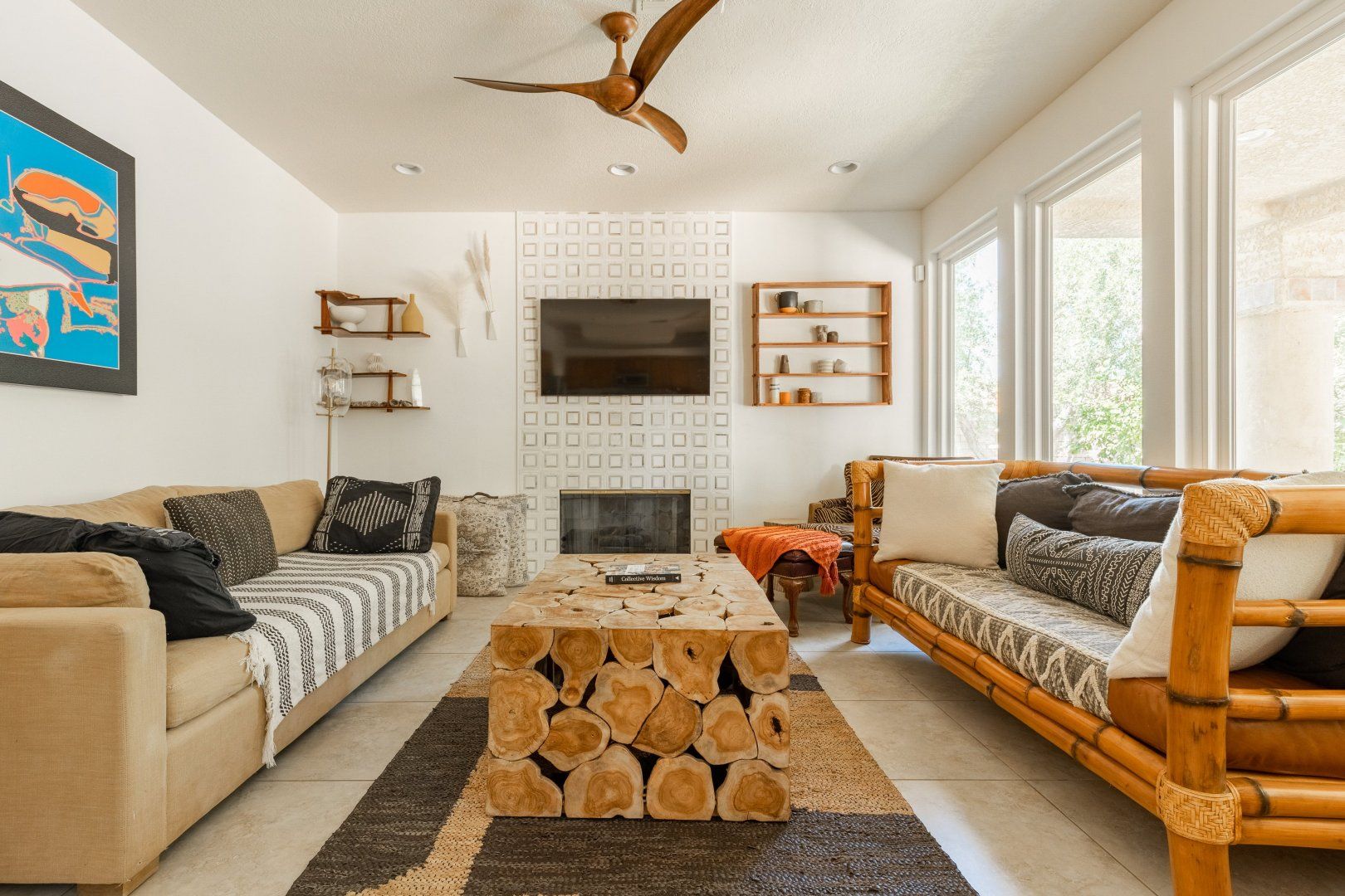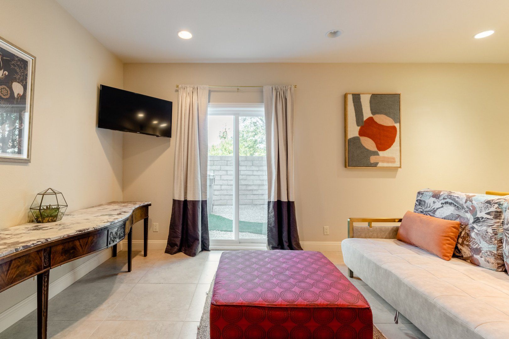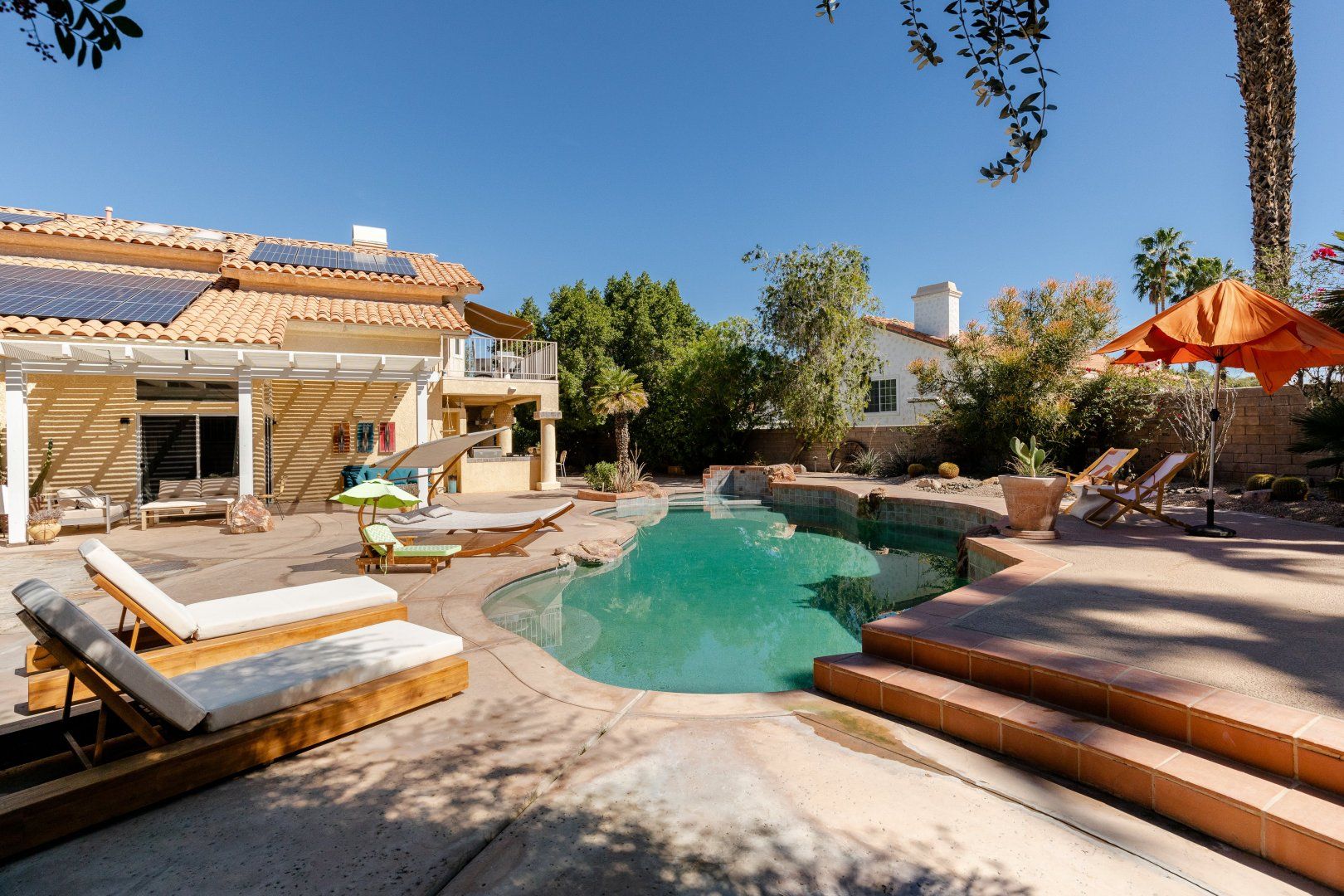 If you’ve been searching for a restorative retreat, this home delivers the perfect solution. From the private pool and hot tub to the calm rooms and personal touches, every detail has been considered to bring you the best of desert living. There is also a fire pit and a barbecue, plus it’s family-friendly with plenty to keep the whole group entertained – including golf and games. Well-behaved dogs are welcome to join you for an additional fee and your host can help arrange housekeeping. It’s worth noting you will need a car (or Uber) to get around here, but it’s just five miles to the nearest amenities, while Downtown Palm Springs is just fifteen minutes away.