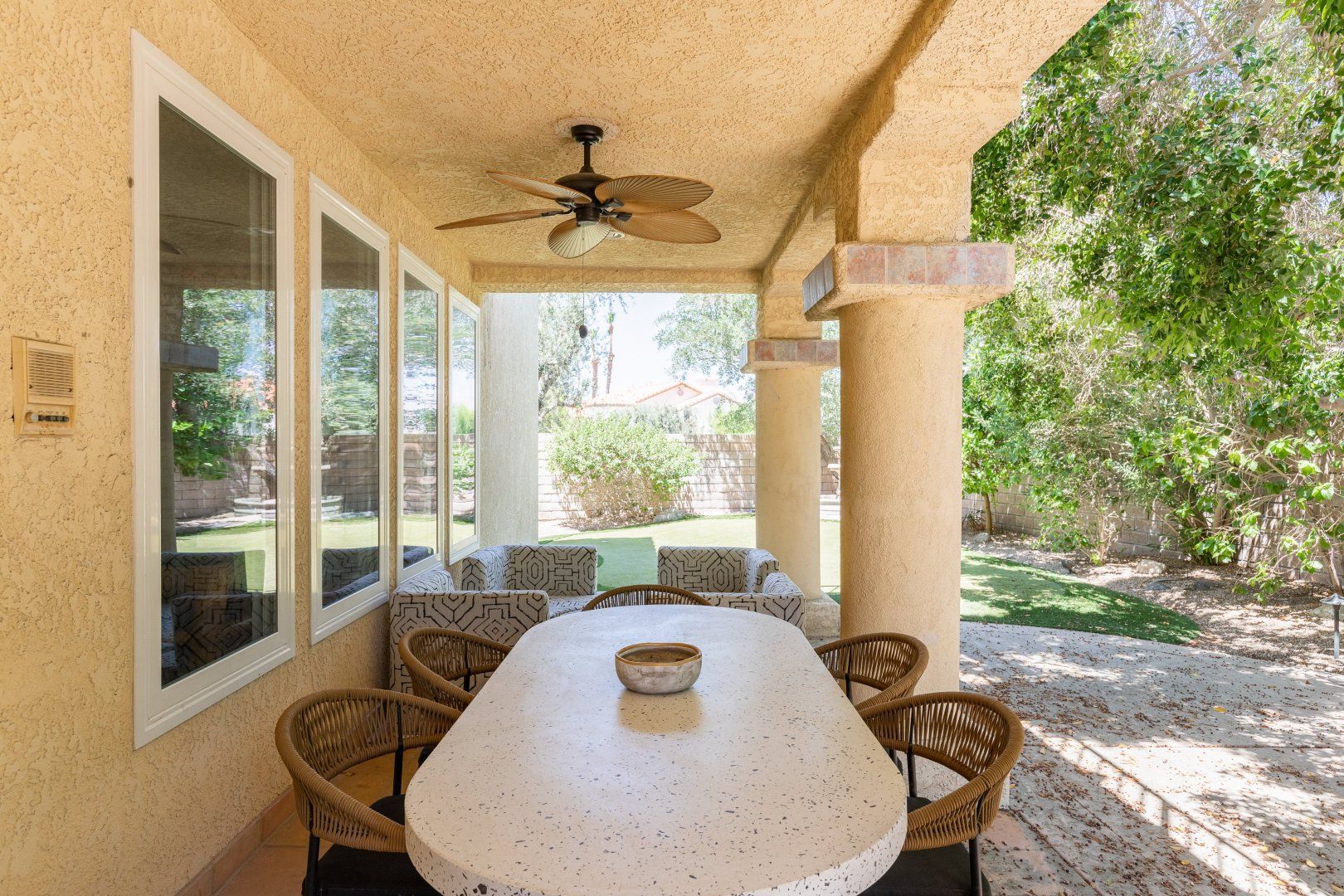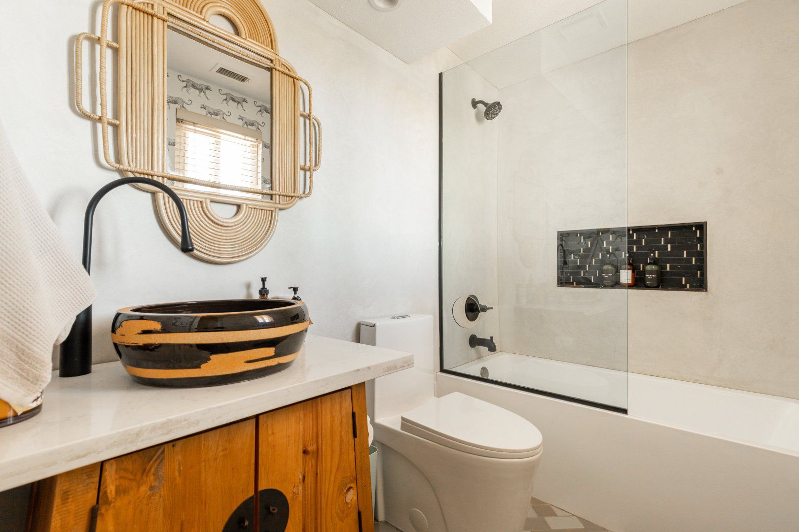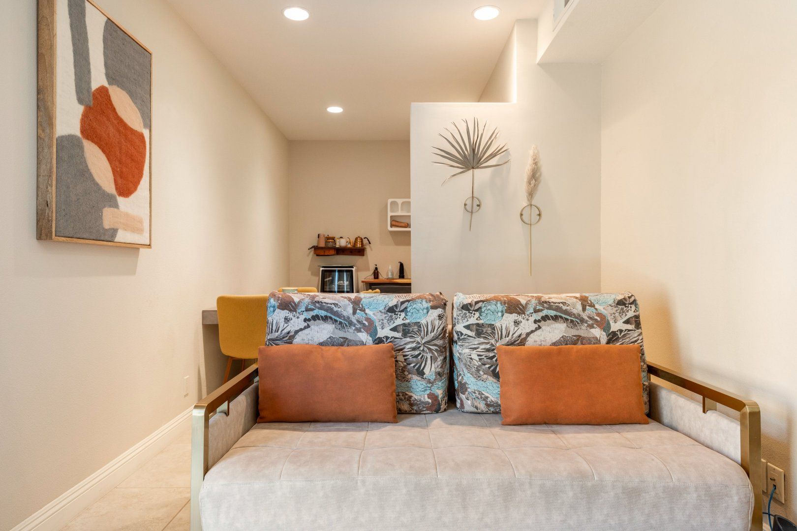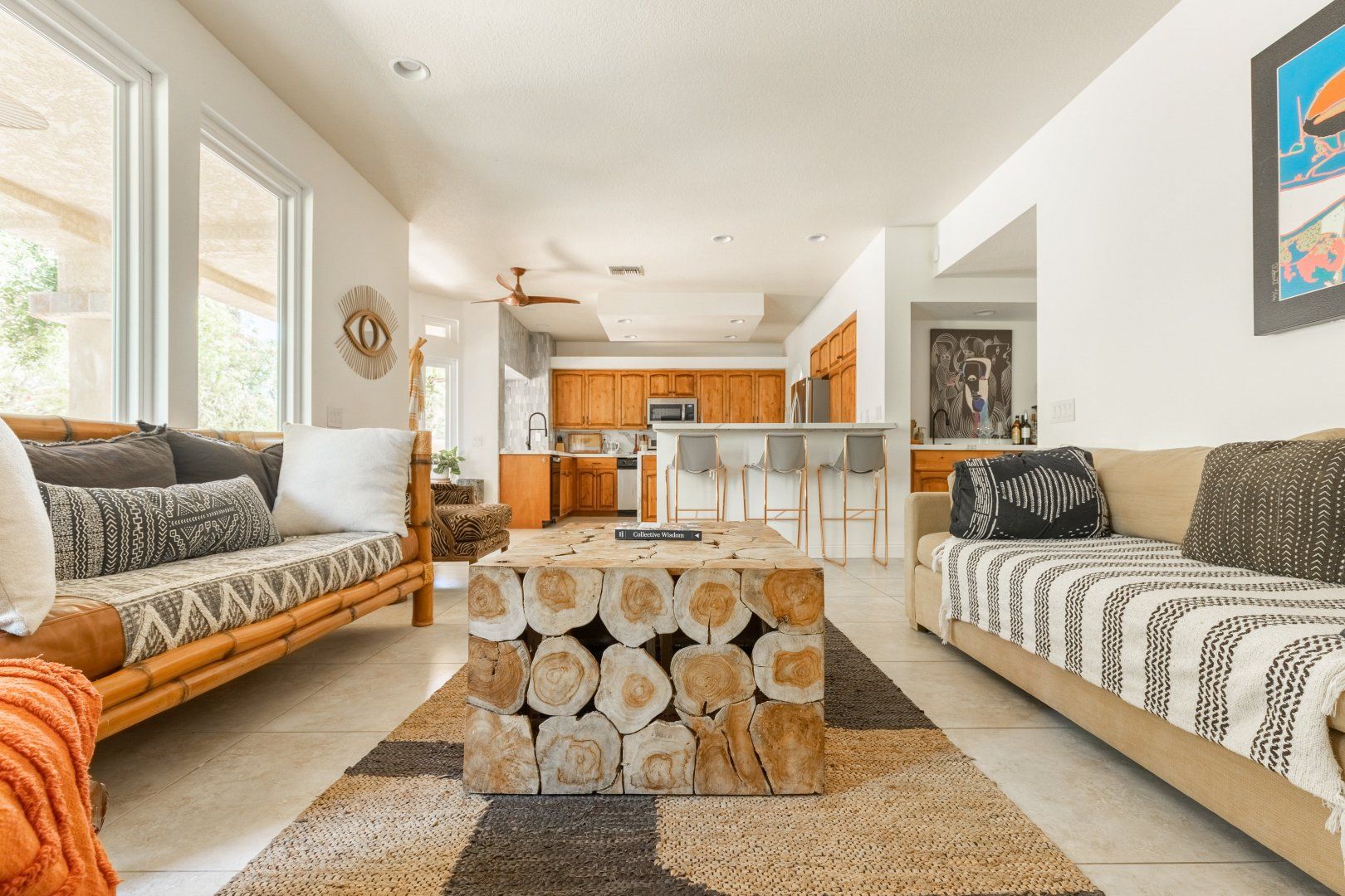 If you’ve been searching for a restorative retreat, this home delivers the perfect solution. From the private pool and hot tub to the calm rooms and personal touches, every detail has been considered to bring you the best of desert living. There is also a fire pit and a barbecue, plus it’s family-friendly with plenty to keep the whole group entertained – including golf and games. Well-behaved dogs are welcome to join you for an additional fee and your host can help arrange housekeeping. It’s worth noting you will need a car (or Uber) to get around here, but it’s just five miles to the nearest amenities, while Downtown Palm Springs is just fifteen minutes away.