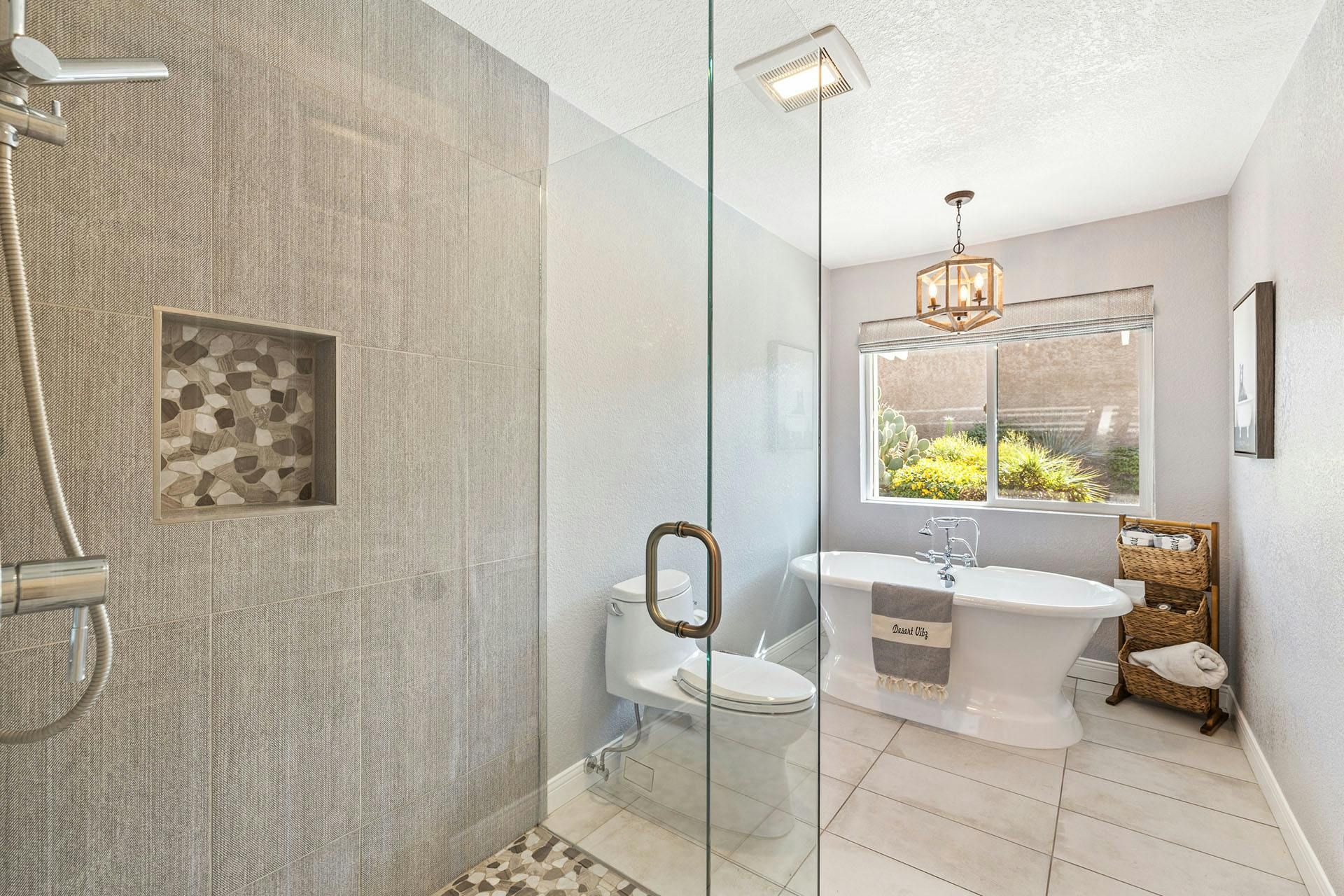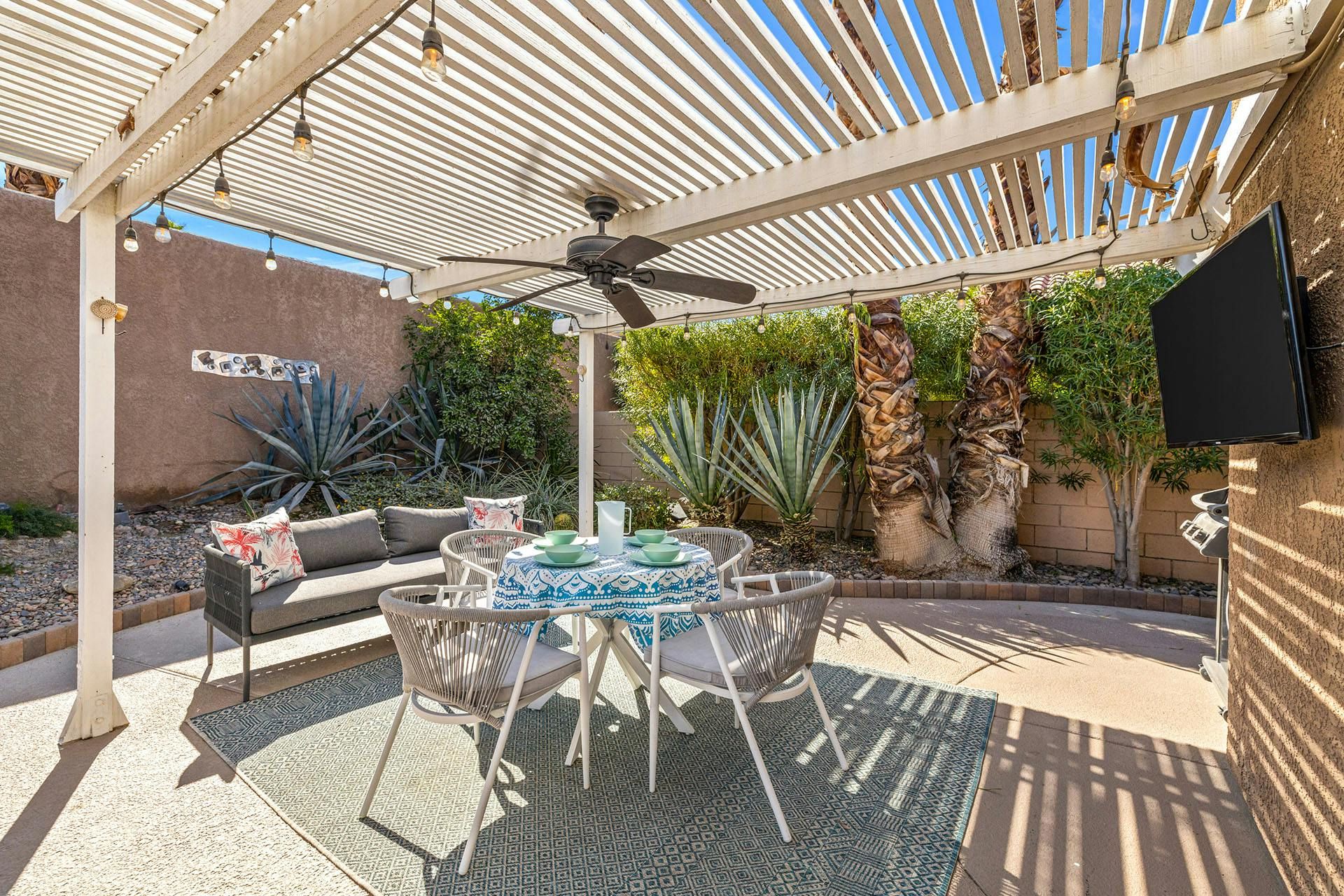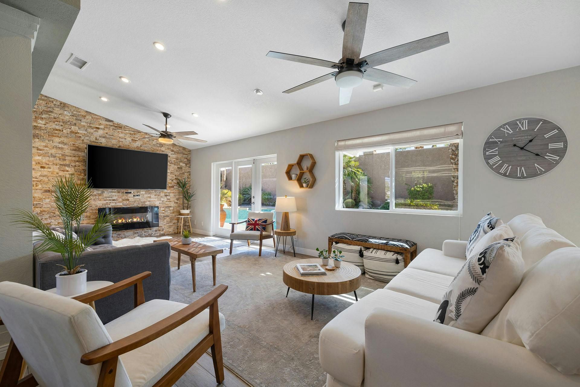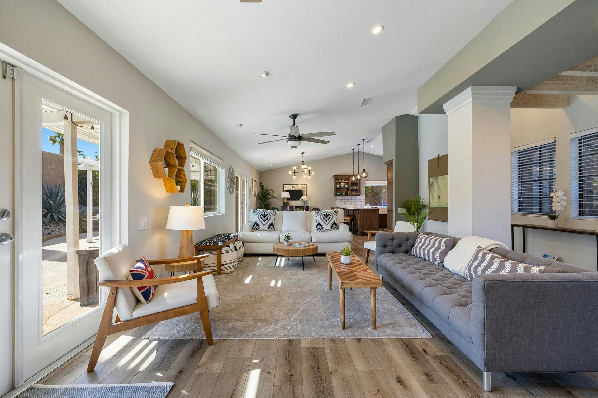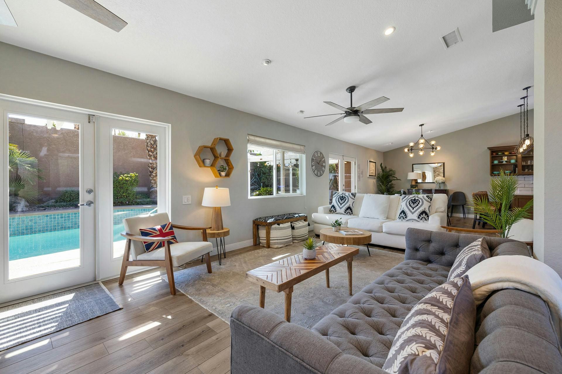 A home in the heart of Palm Desert that's perfect for a family or a group of friends. The outside living space is the true highlight here – with a pool and hot tub, plus a patio that comes with an outdoor TV, too. Inside, there's a bar and a wine cooler on hand for evening drinks and a large open-plan kitchen-living space, which is perfect for hosting. With hiking, golf, tennis, shopping and dining destinations all just a short distance away, it would add up nicely for a holiday with your nearest and dearest.