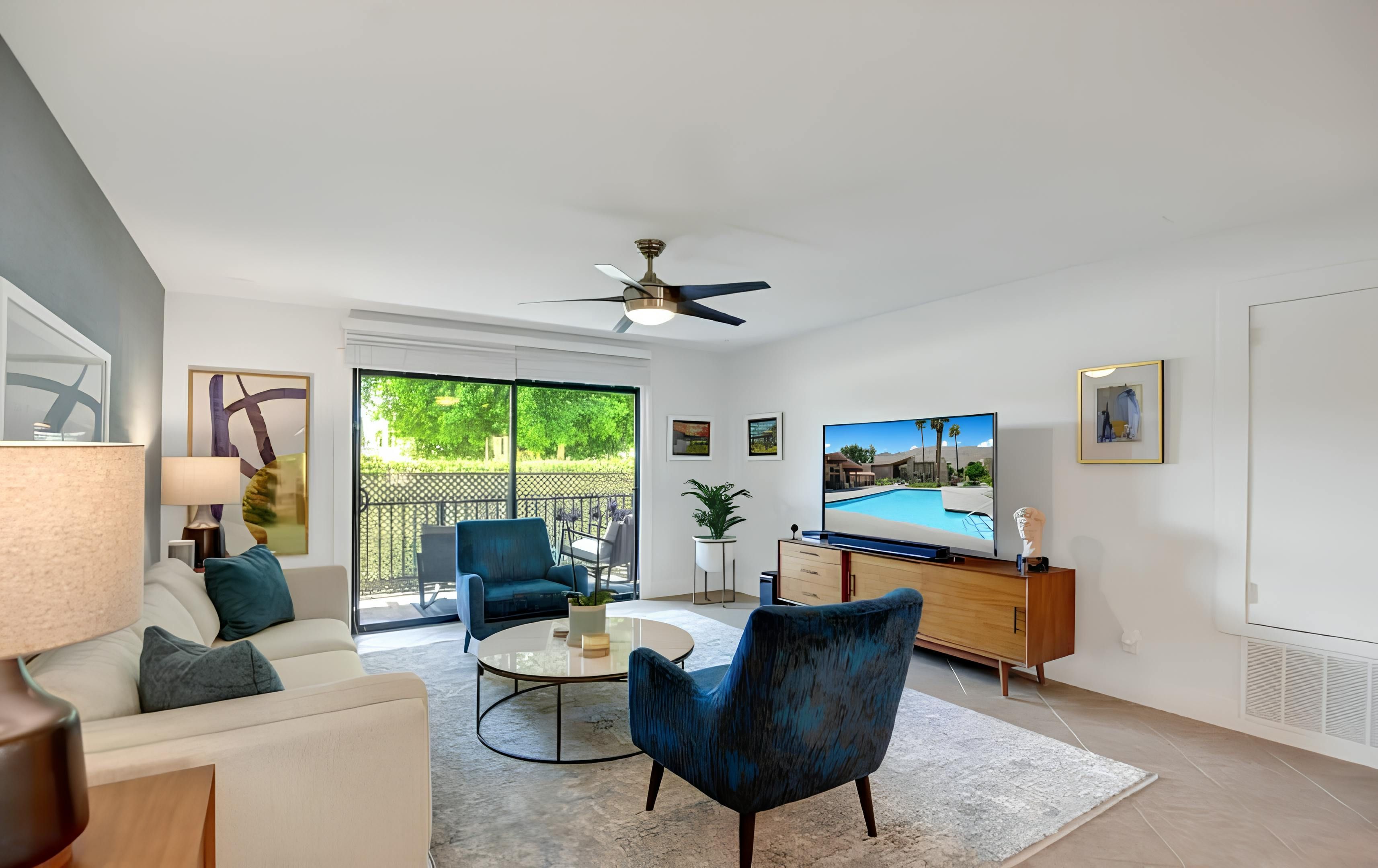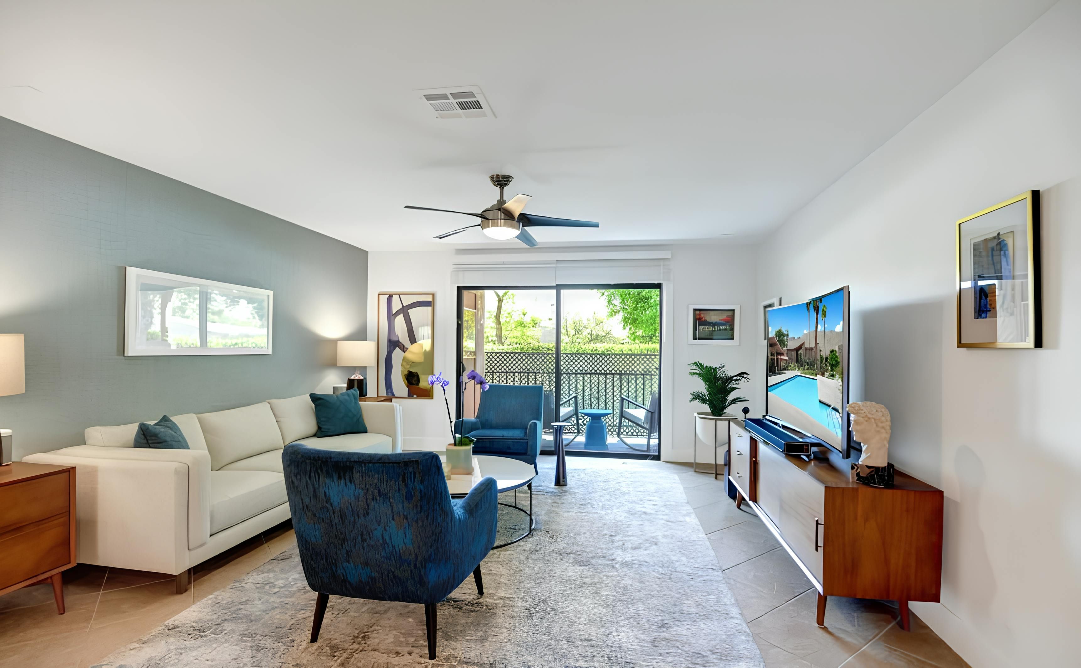This Palm Springs condo is ideal for groups of friends and families alike. It comes complete with resort access, so if you're looking to keep busy during your stay, this could do the trick. There's a shared pool, clubhouse and fitness centre, too. And, the home itself is equally attractive. It features an office for working on the move, plus a peaceful private terrace that's perfect for a morning coffee or evening cocktail. Well-located, with shopping, dining and adventure all just a short drive away, this home adds up nicely for those seeking a desert escape.