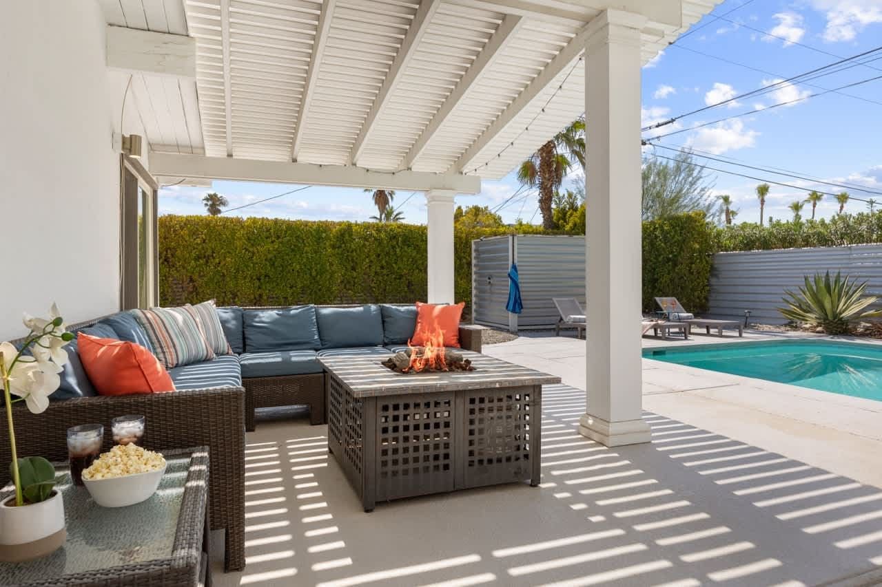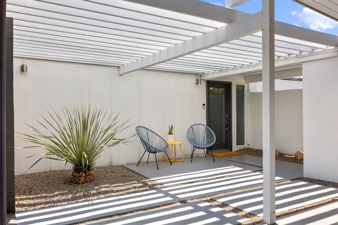 Framed by swaying palms and mountain peaks, this pet-friendly Palm Springs villa captures the laid-back spirit of desert living. Inside, it's bright and welcoming, with a sleek kitchen that makes home cooking a pleasure and a shaded terrace with a barbecue for family feasts under the stars. Spend lazy days by the private pool, or head out to explore hiking trails in the nearby San Jacinto foothills. For a bigger adventure, Joshua Tree National Park is less than an hour’s drive away.