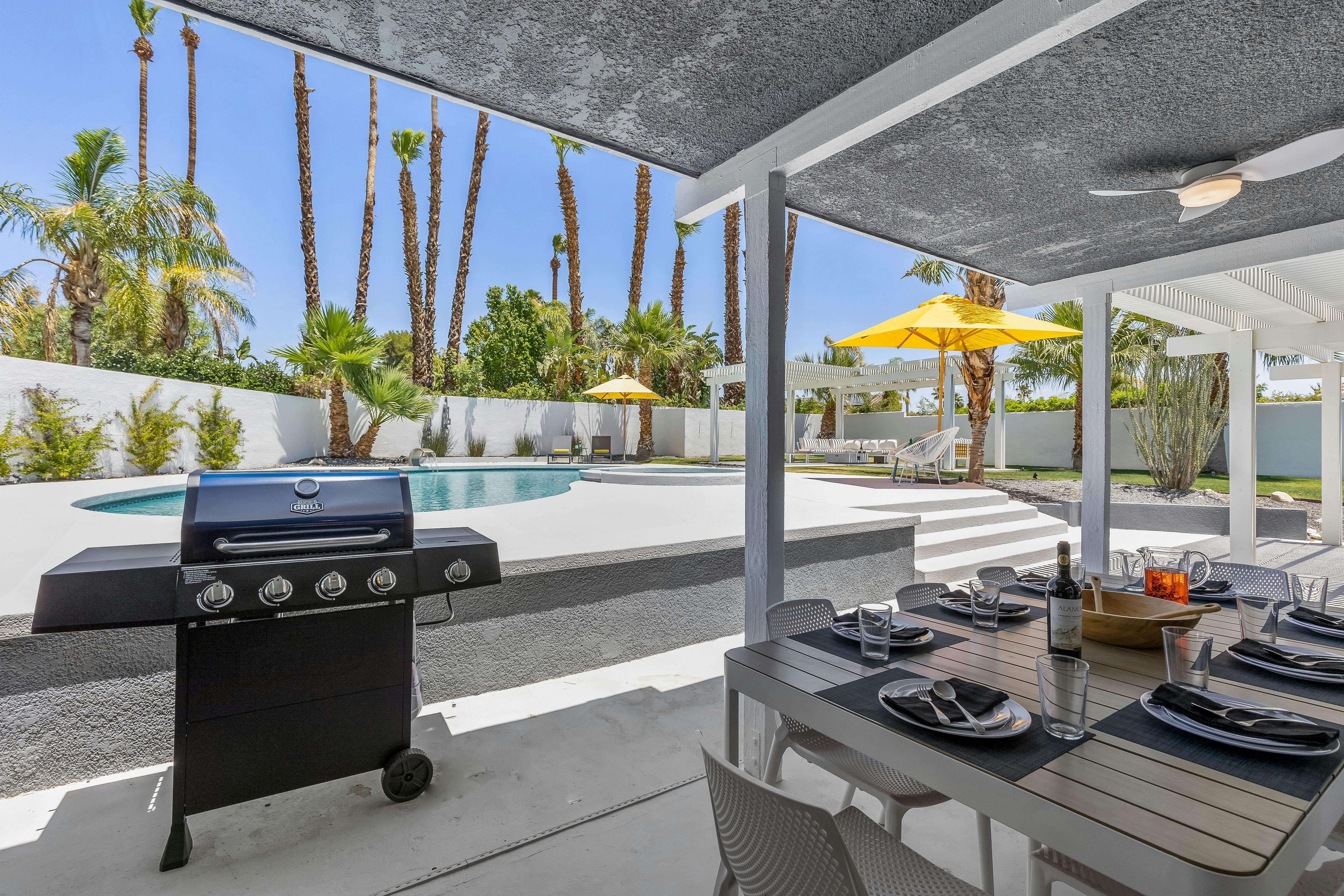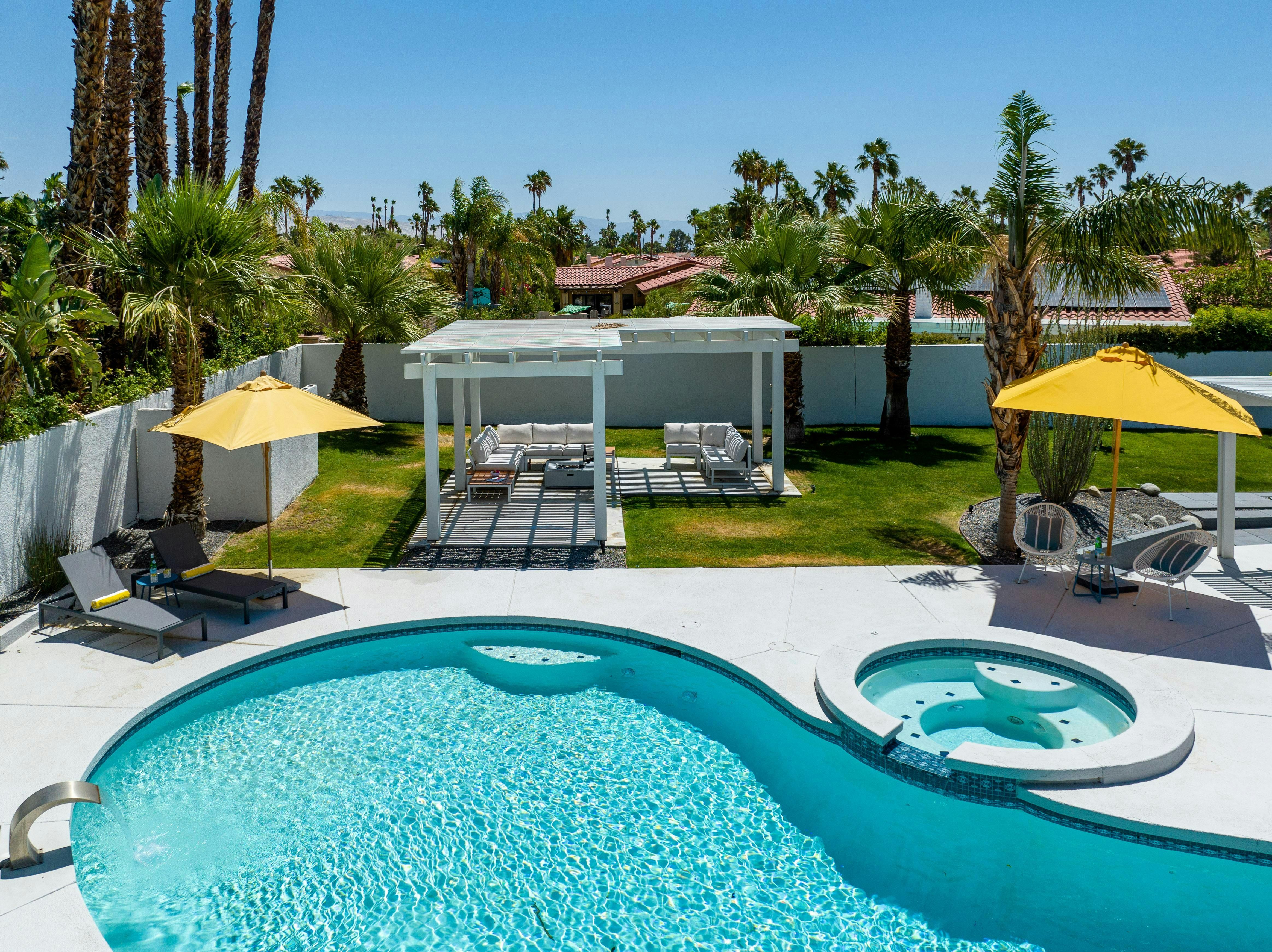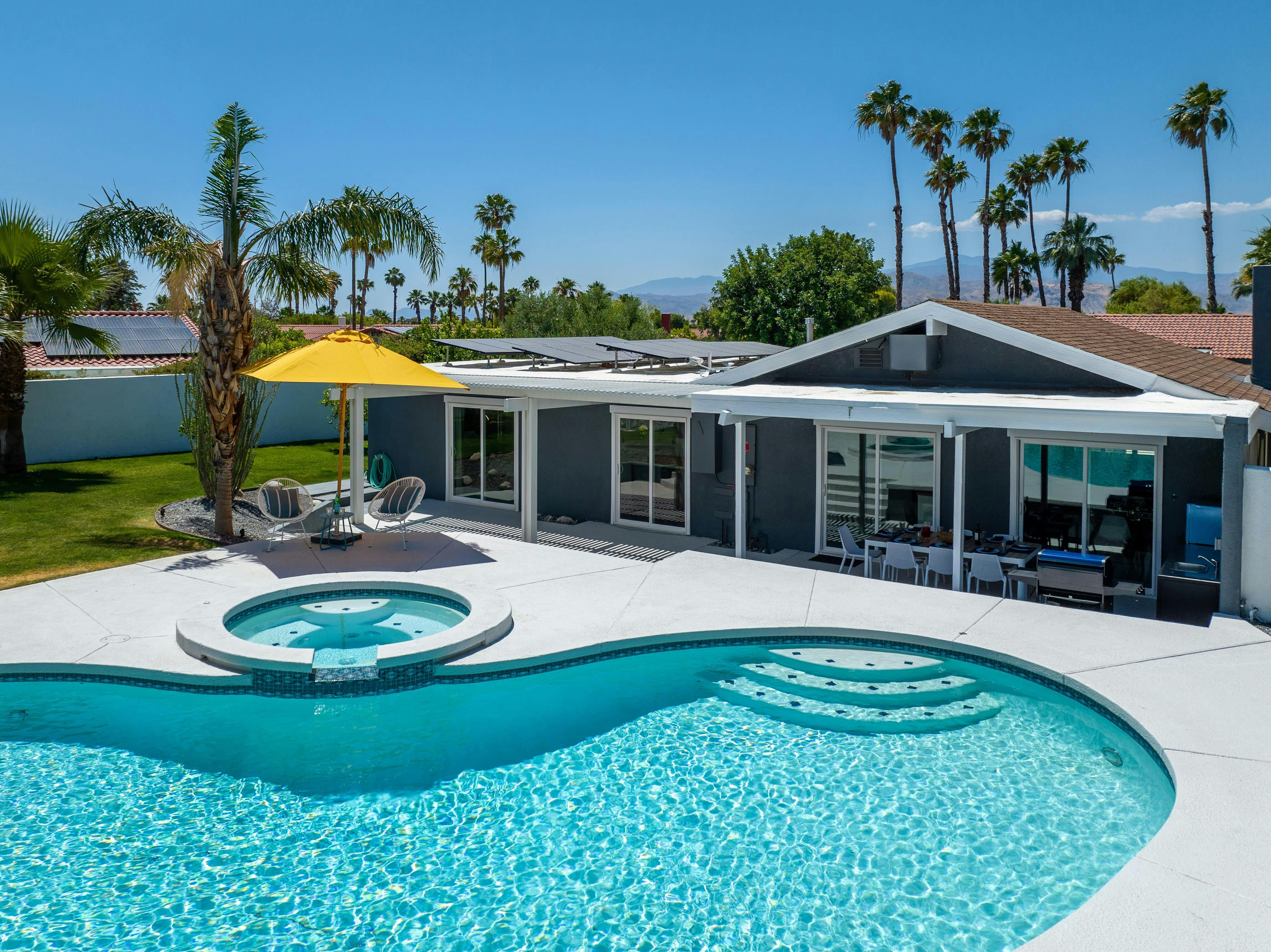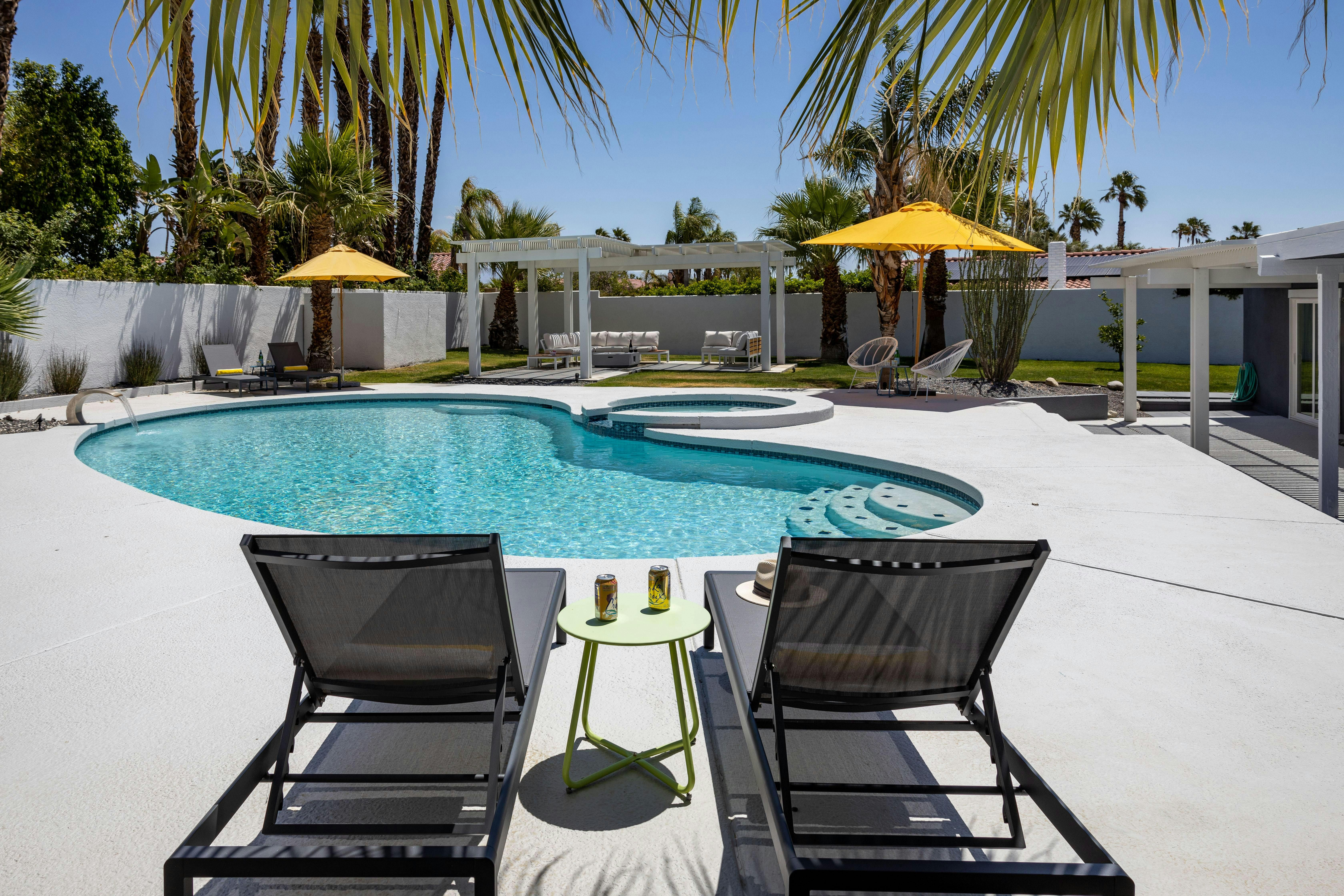 A lagoon-style pool with palm tree vistas and light-filled interiors with a mid-century twist – this is everything you want your Palm Springs retreat to be. Days are all about hopping between the pool and Jacuzzi, drinking in the canyon vistas. Meanwhile, a barbecue for alfresco dinners and a fire pit for storytelling beneath the desert stars keep the evenings flowing. As with most homes in Palm Springs, you’ll need a car to get around. But you’re just minutes from San Jacinto Mountains for sunrise hikes and buzzy Palm Canyon Drive for dining out.
