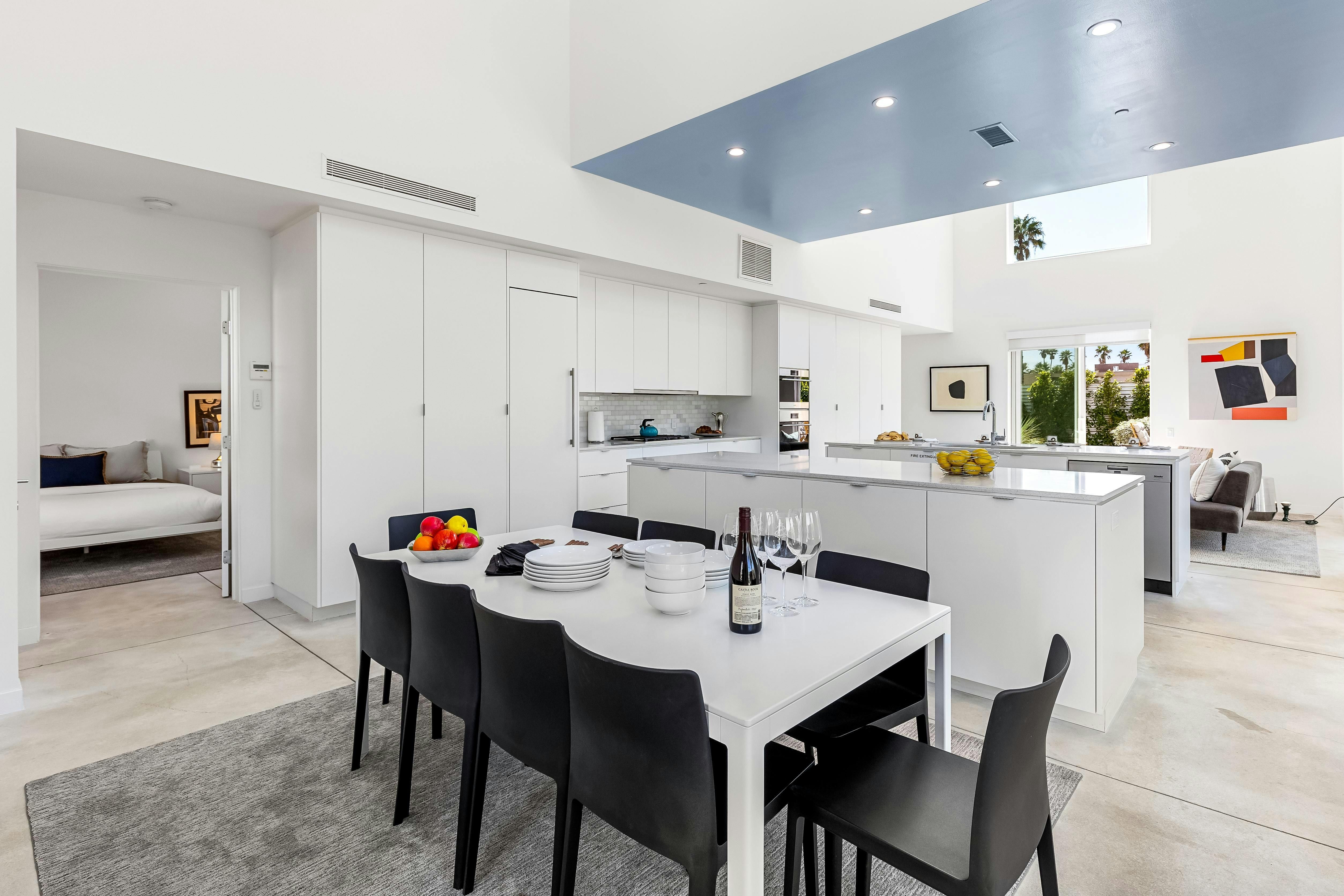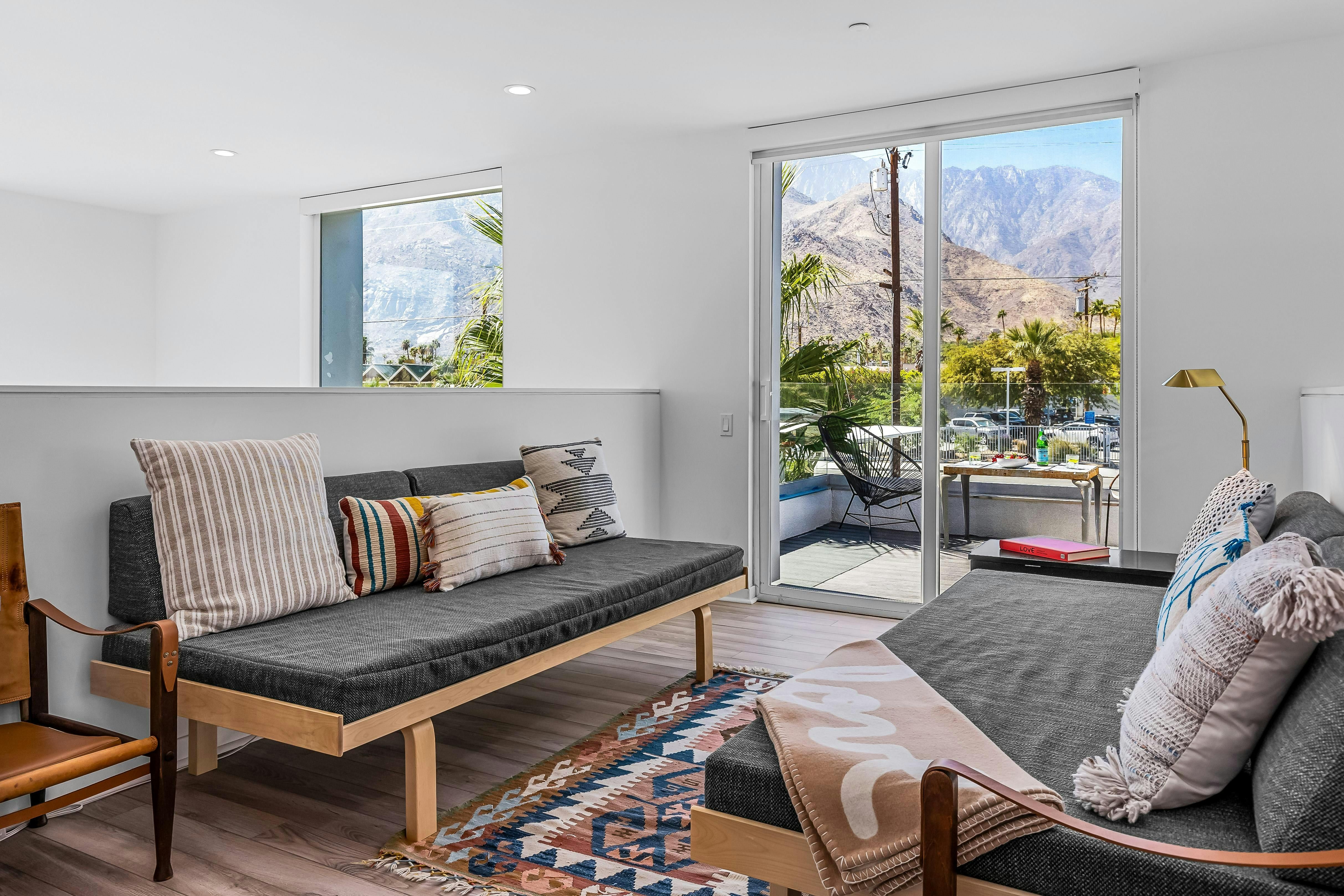 This bright and modern home in Palm Springs is a brilliant base for exploring the desert city and beyond. We love the light-filled living space where you can cook, dine, and unwind, and the upstairs balcony that boasts mountain views. There’s a private patio too, with space for dinner and drinks, along with lounge chairs and a firepit for cosy evenings under the stars. The communal pool is another perk – perfect for a morning swim before heading out to the nearby hiking trails, golf courses, galleries, and shops.