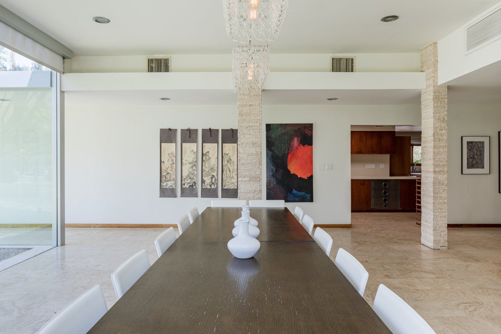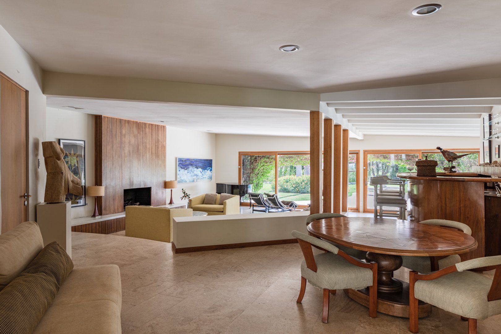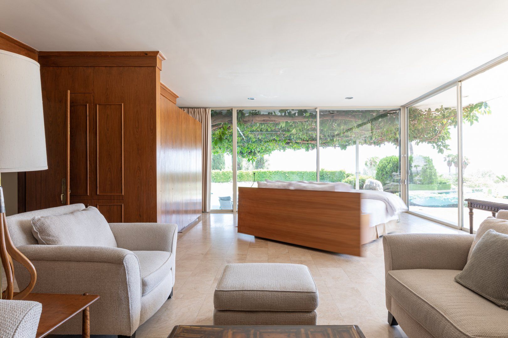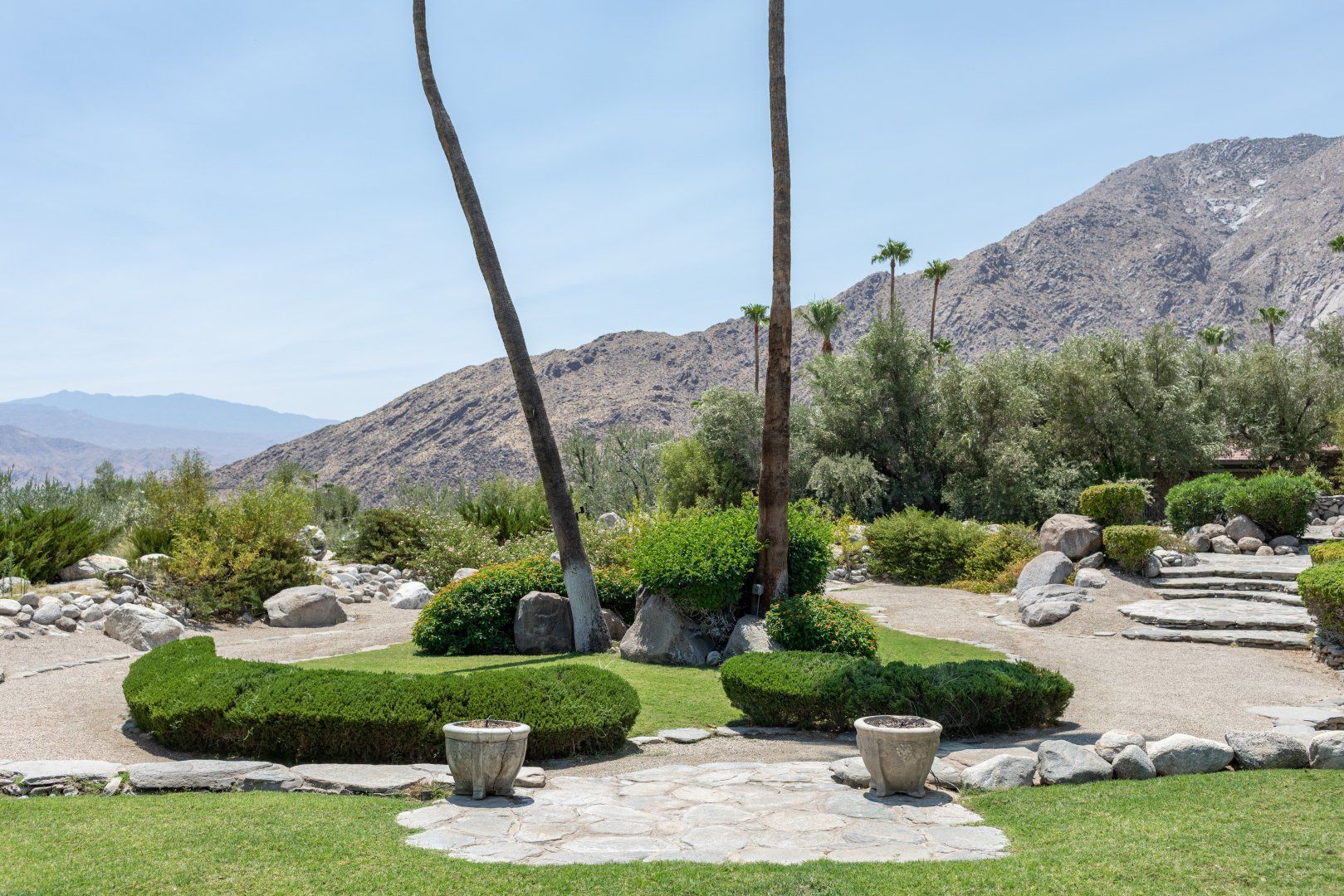This beautiful house will be a smash hit with fans of Broadway. The former home of composer Frederick Loewe (writer of My Fair Lady and Camelot) is a real showstopper, with vast walls of glass that put the incredible views over Palm Springs and the entire Coachella Valley firmly centre stage. With one of the largest plots we’ve seen in Palm Springs, there’s a real sense of space both inside and out. The mid-century style lounge is open plan, with sliding doors opening to the pool, and a full bar that any mixologist would feel comfortable behind. You’ll feel like the star of the show in the master bedroom, with its floor-to-ceiling windows, fireplace and swivelling bed. While those views do take the limelight, the all-singing, all-dancing garden is pretty special too. Some serious imagination has been brought to the landscaping, with contemporary sculptures, a bean-shaped pool, artificial river, and a grotto style hot tub and waterfall (oh and did we mention the tennis court?) The location in the most exclusive area of Palm Springs is fit for entertainment royalty too (to give you an idea, the Elvis Presley Estate is over the road), and you’re only 5 minutes’ drive from Downtown. Bravo.