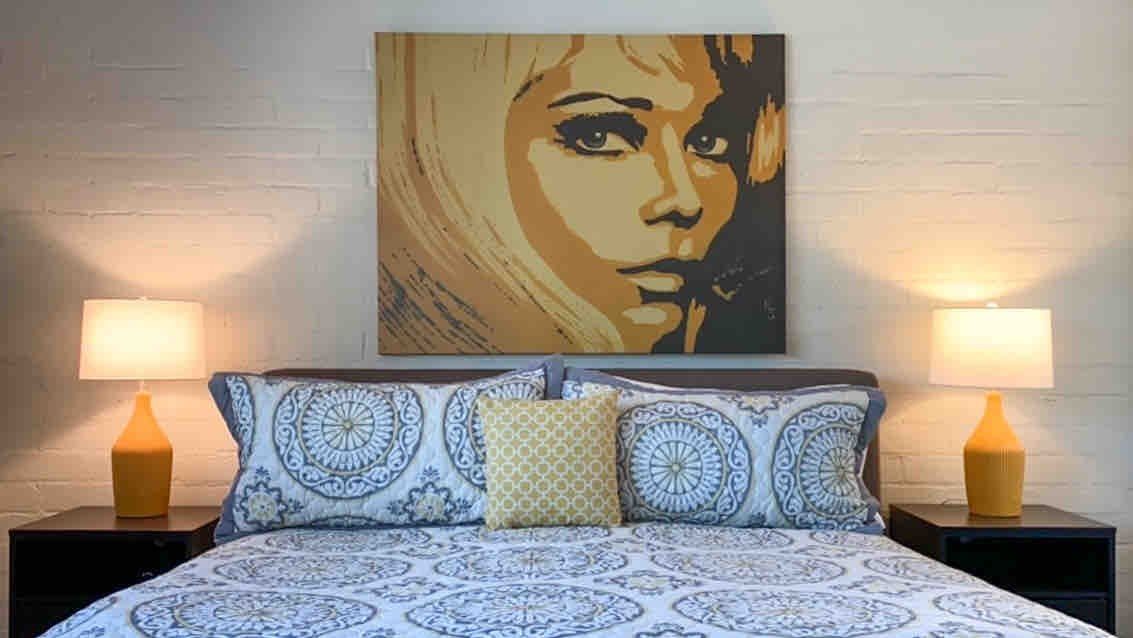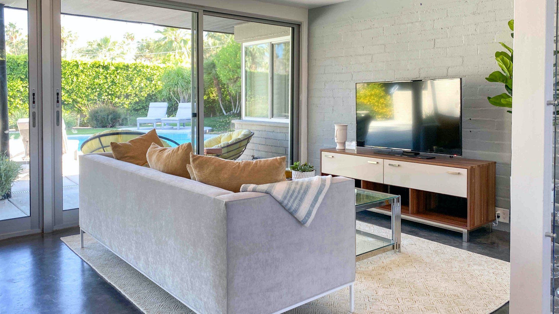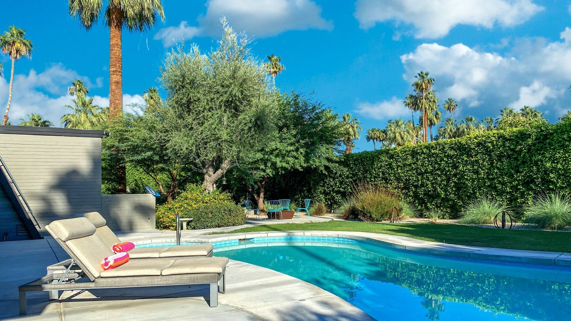 This mid-century gem was built by the renowned architect Fredrick Monhoff, designer of the historic Biltmore Hotel. We love this exceptional home – it seamlessly blends the indoors and outdoors. It's the perfect place to gather with your family and friends to enjoy Palm Springs living at its best. Lounge by the inviting pool, or spend evenings star gazing next to the fire pit (there are two to choose from). Multiple water features provide soothing sounds, while the views of the mountains are fabulous, especially as the sun begins to set. Inside is no less impressive with walls of glass, chic concrete flooring and a cool bar lounge area – this home was designed for entertaining, so mix up a whiskey sour or another drink of your choice and relax. As you'd expect with a luxurious home, all the bedrooms are en-suite – the huge second-story master suite, accessed by a custom-made steel staircase, has its own dedicated sitting area overlooking the lush gardens and sparkling swimming pool. With so much on offer here, we wouldn't want to leave, but if you do want to explore out and about – the village-like atmosphere of the Tahquitz River Estates has vintage shops to browse and a diverse dining scene. For even more restaurant choices, head to Downtown Palm Springs, a five-minute drive away or under a ten-minute cycle ride on the bikes provided by your hosts.