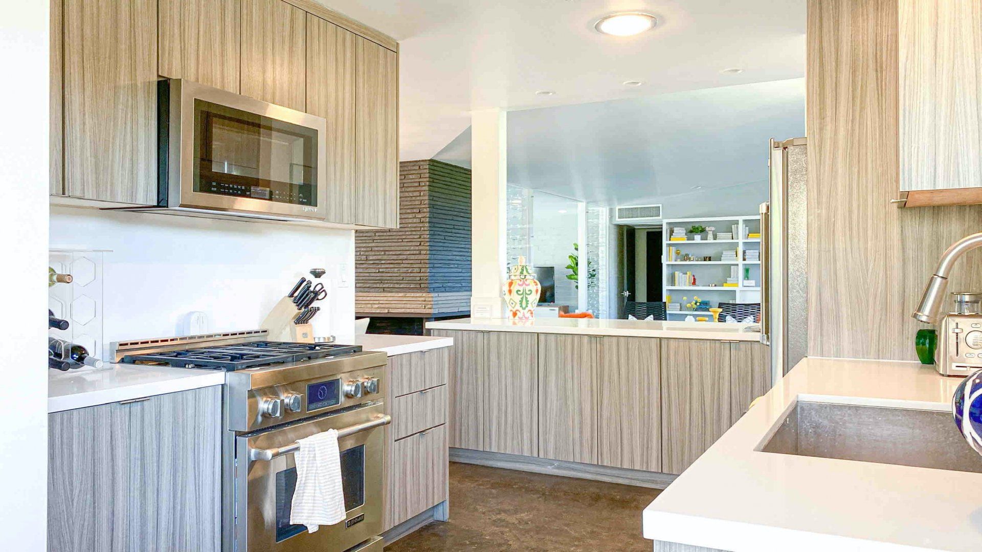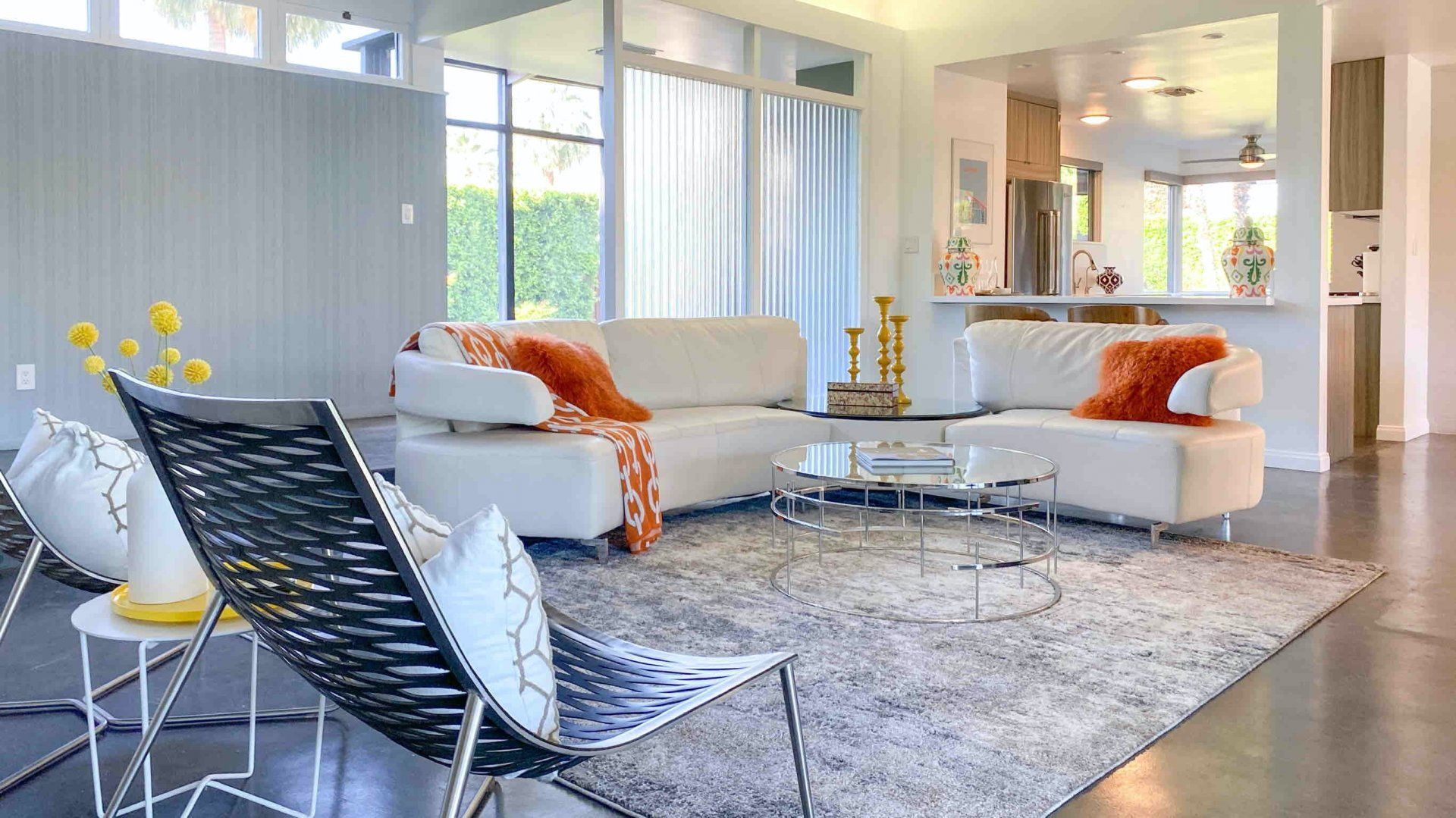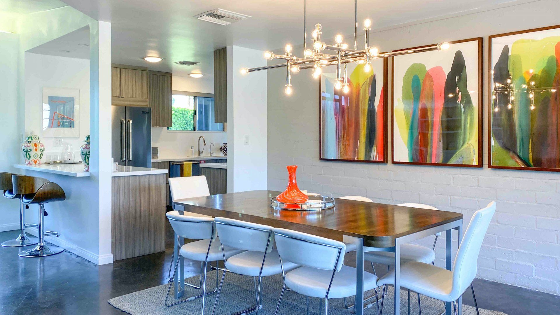 This mid-century gem was built by the renowned architect Fredrick Monhoff, designer of the historic Biltmore Hotel. We love this exceptional home – it seamlessly blends the indoors and outdoors. It's the perfect place to gather with your family and friends to enjoy Palm Springs living at its best. Lounge by the inviting pool, or spend evenings star gazing next to the fire pit (there are two to choose from). Multiple water features provide soothing sounds, while the views of the mountains are fabulous, especially as the sun begins to set. Inside is no less impressive with walls of glass, chic concrete flooring and a cool bar lounge area – this home was designed for entertaining, so mix up a whiskey sour or another drink of your choice and relax. As you'd expect with a luxurious home, all the bedrooms are en-suite – the huge second-story master suite, accessed by a custom-made steel staircase, has its own dedicated sitting area overlooking the lush gardens and sparkling swimming pool. With so much on offer here, we wouldn't want to leave, but if you do want to explore out and about – the village-like atmosphere of the Tahquitz River Estates has vintage shops to browse and a diverse dining scene. For even more restaurant choices, head to Downtown Palm Springs, a five-minute drive away or under a ten-minute cycle ride on the bikes provided by your hosts.