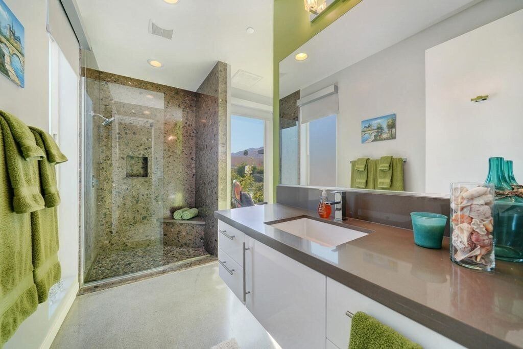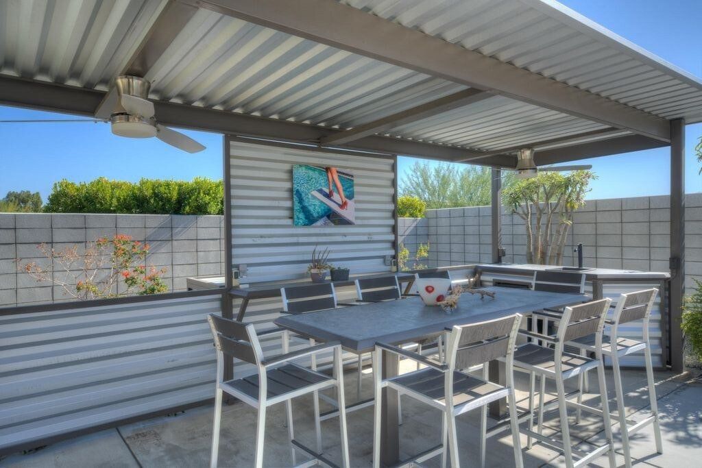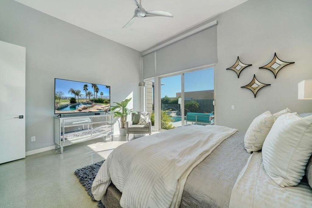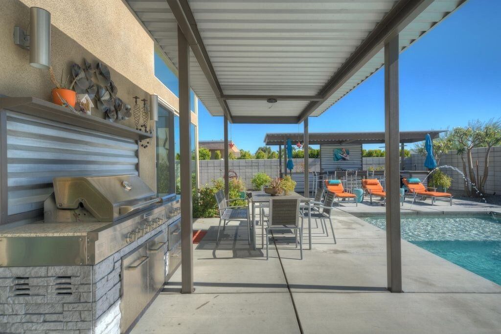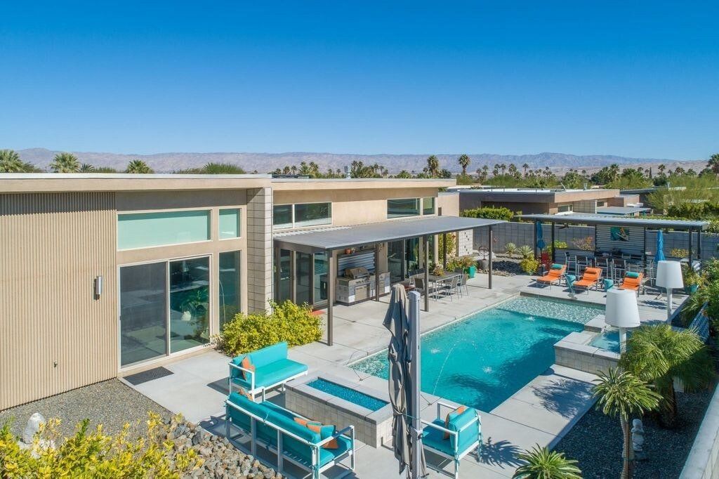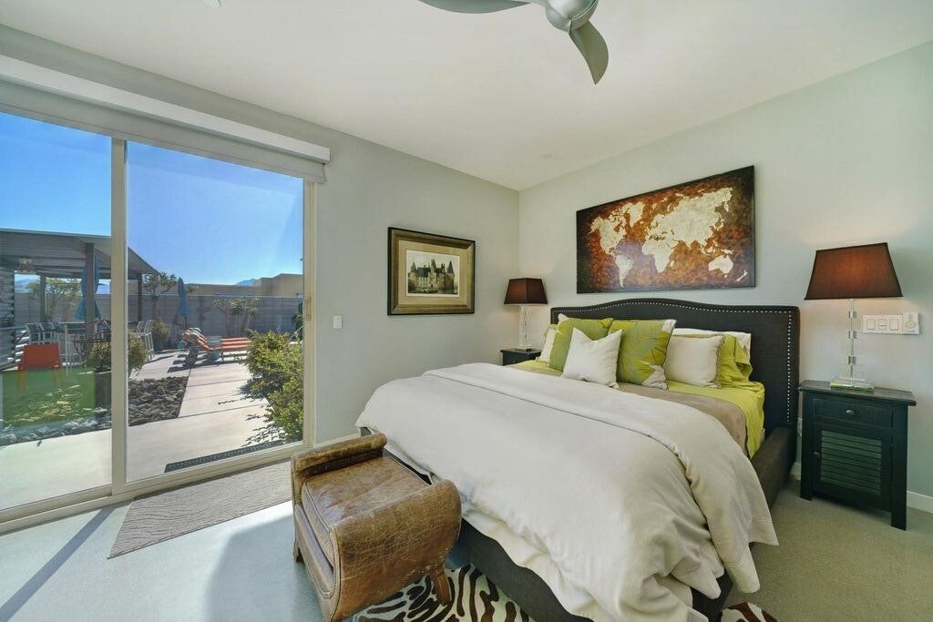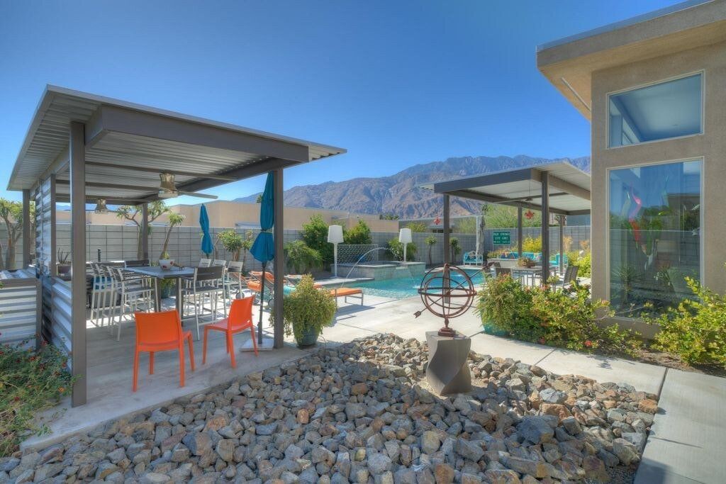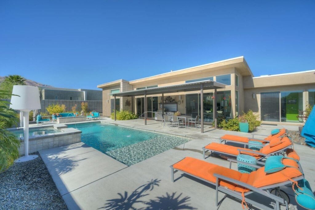 This iconic Palm Springs retreat features plenty of space for a group of friends to spend time together or spread out for private moments. Take advantage of all-day sunshine from the refreshing salt water pool, strategically placed to maximise mountain views and hours of fun in the sun. With a covered outdoor dining table, a built-in barbecue and a cosy fire pit to gather around after dinner, you can make the most of the outdoors at every hour of the day. Each bedroom has glass sliding doors that open up straight onto the pool terrace and the walls are adorned with vibrant works of modern art. This home's all about spending time outdoors with the ones you love.