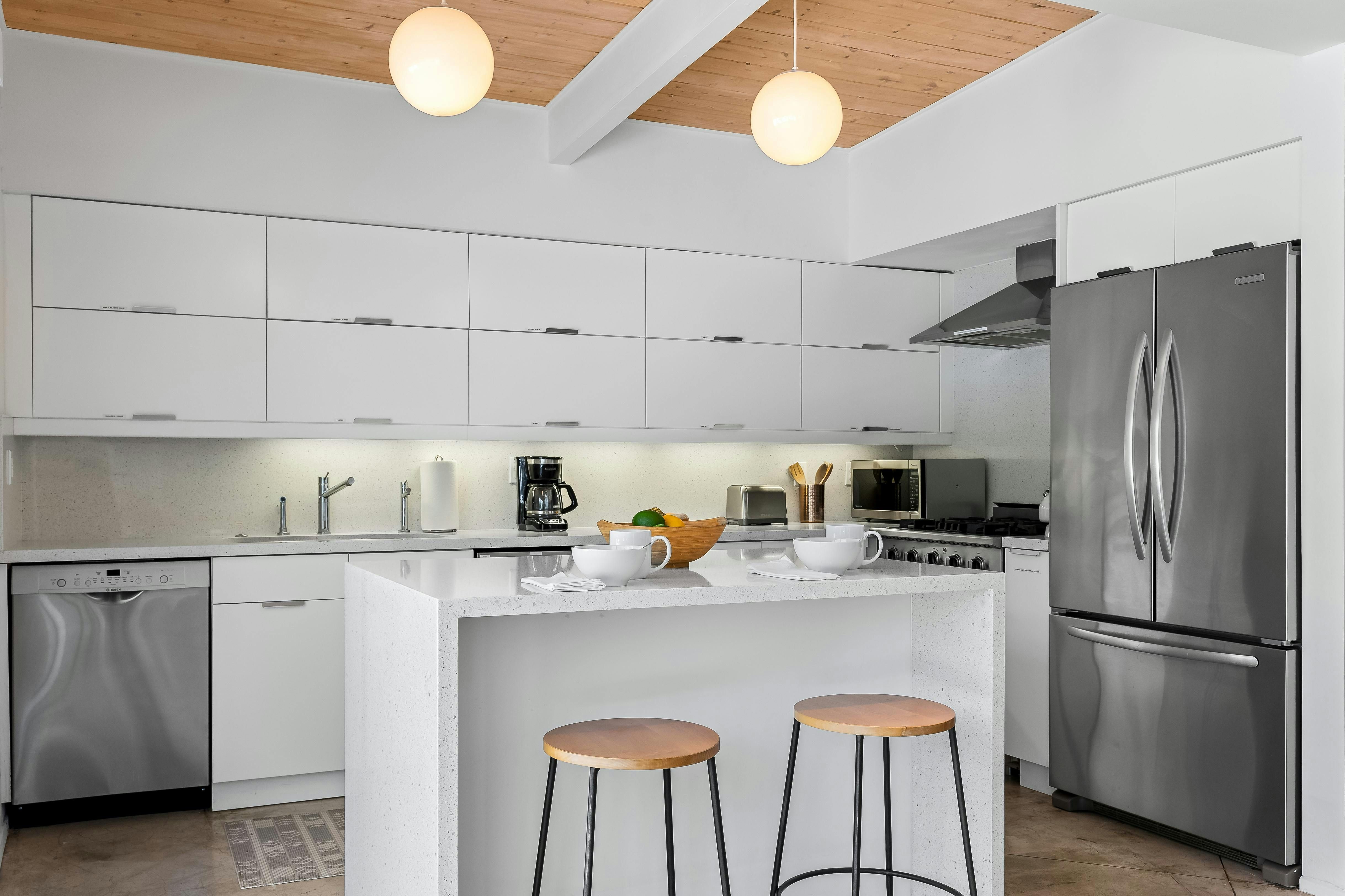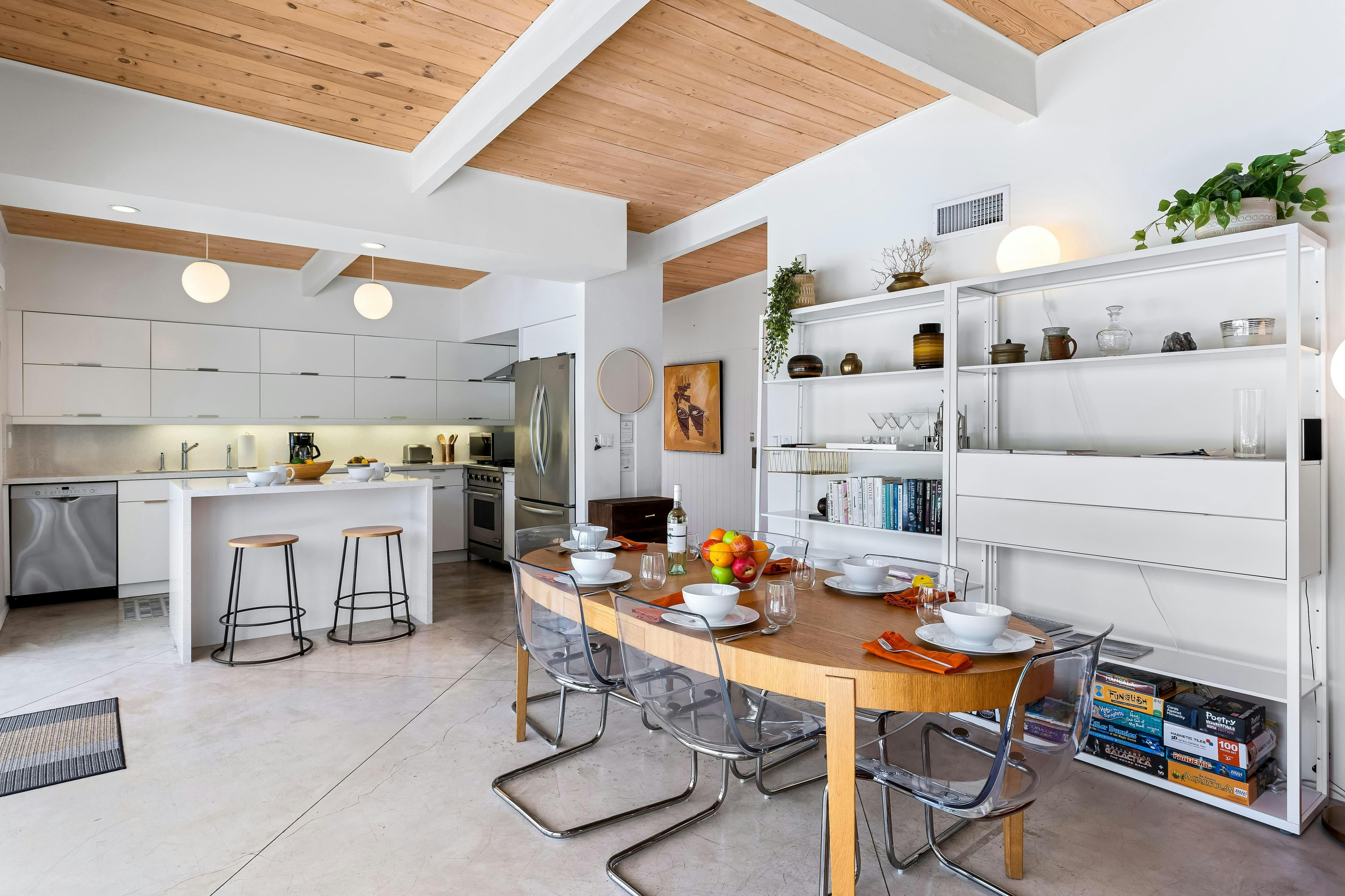 Looking for a laid-back Palm Springs getaway? This mid-century villa and separate casita combo has you covered. Kickstart your day with a session in the garage gym, then spend the afternoon lounging poolside before firing up the barbecue and fire pit for an evening under the stars. Don't feel like cooking? Bars and restaurants in downtown Palm Springs are just a ten-minute drive away, along with galleries, museums and casinos. And if adventure calls, desert hikes are easily reached by car.