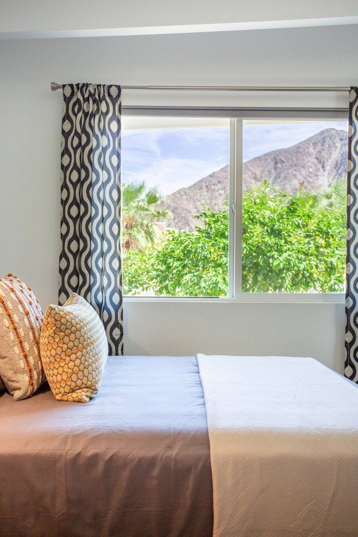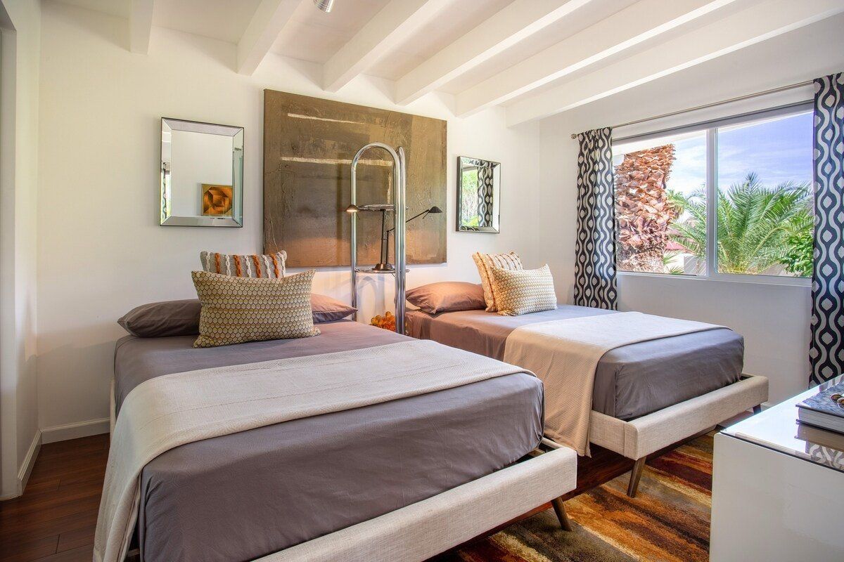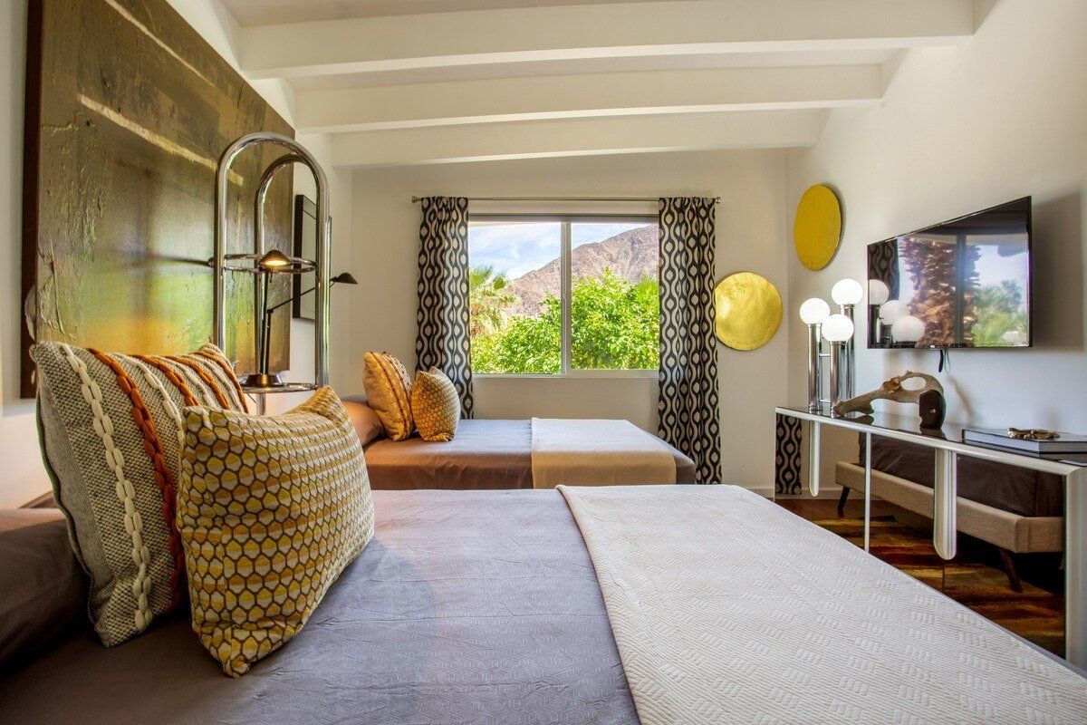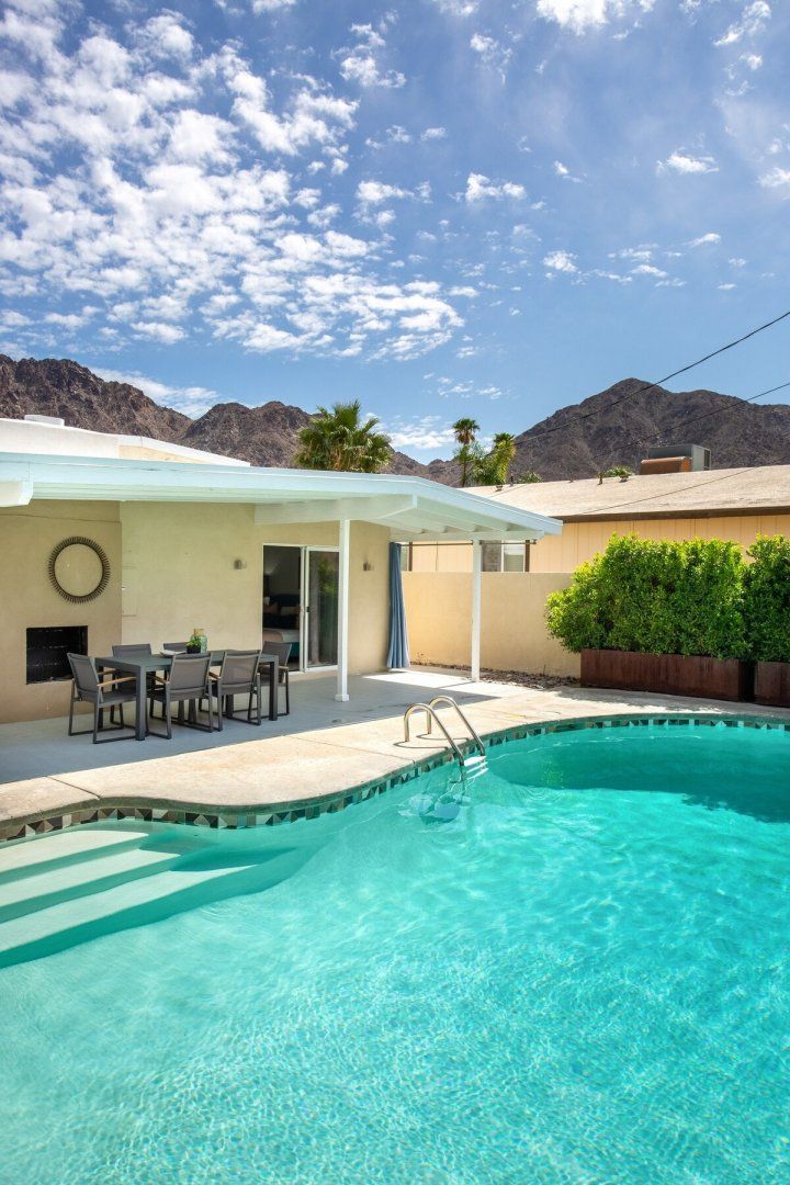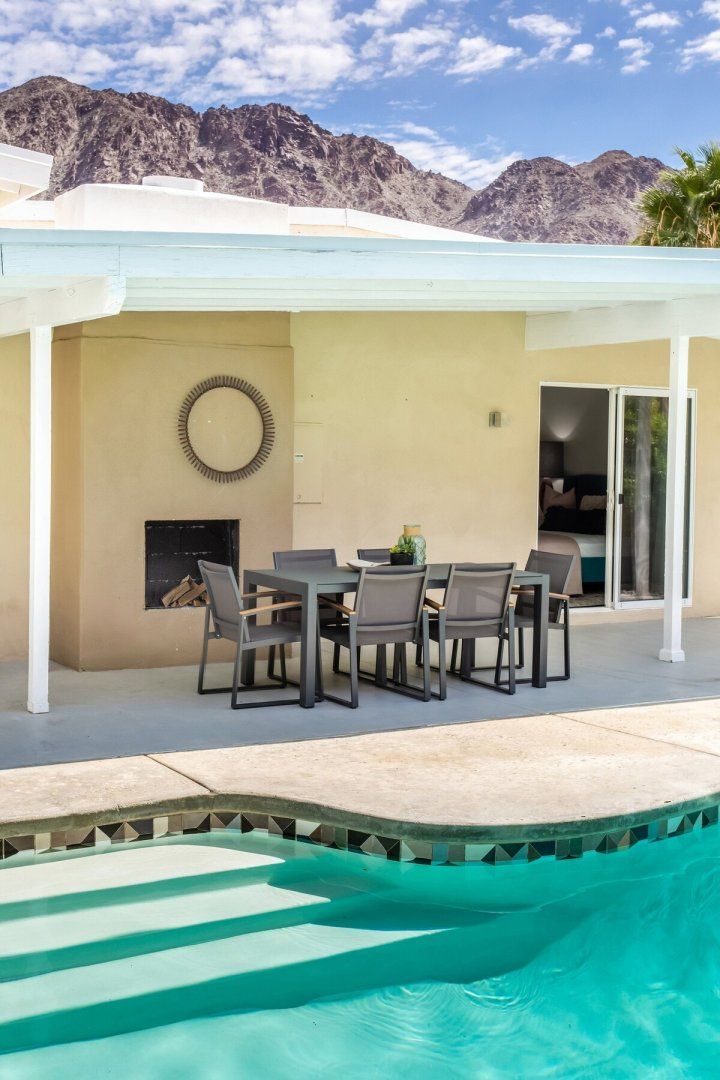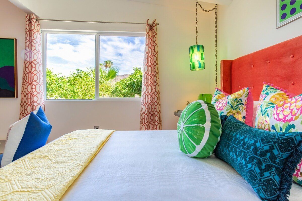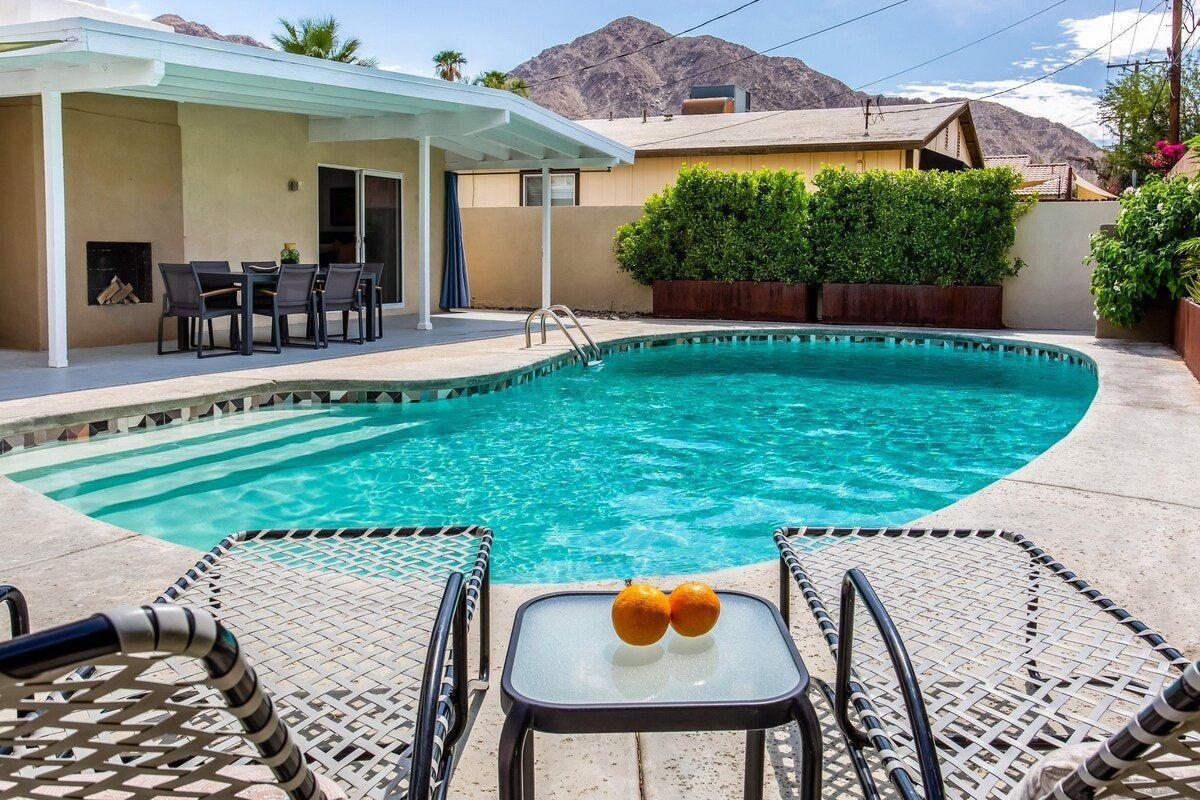 This desert home is bursting with character, and guarantees a fun-filled stay. The living space is all earthy tones, from clay red sofas to wooden accents, while the second bedroom is tropically sweet with its orange, lemon and lime themed furnishings. The outside space is geared up for long days in the sunshine, with glorious mountain views to boot. Swim a couple of laps in the heated, saltwater pool, and when you've worked up an appetite you can fire up the propane barbecue for a serious lunchtime feast. It's just a seven-minute wander into the heart of La Quinta, where you will find bars, shops and restaurants – there are also plenty of local hiking trails to explore.