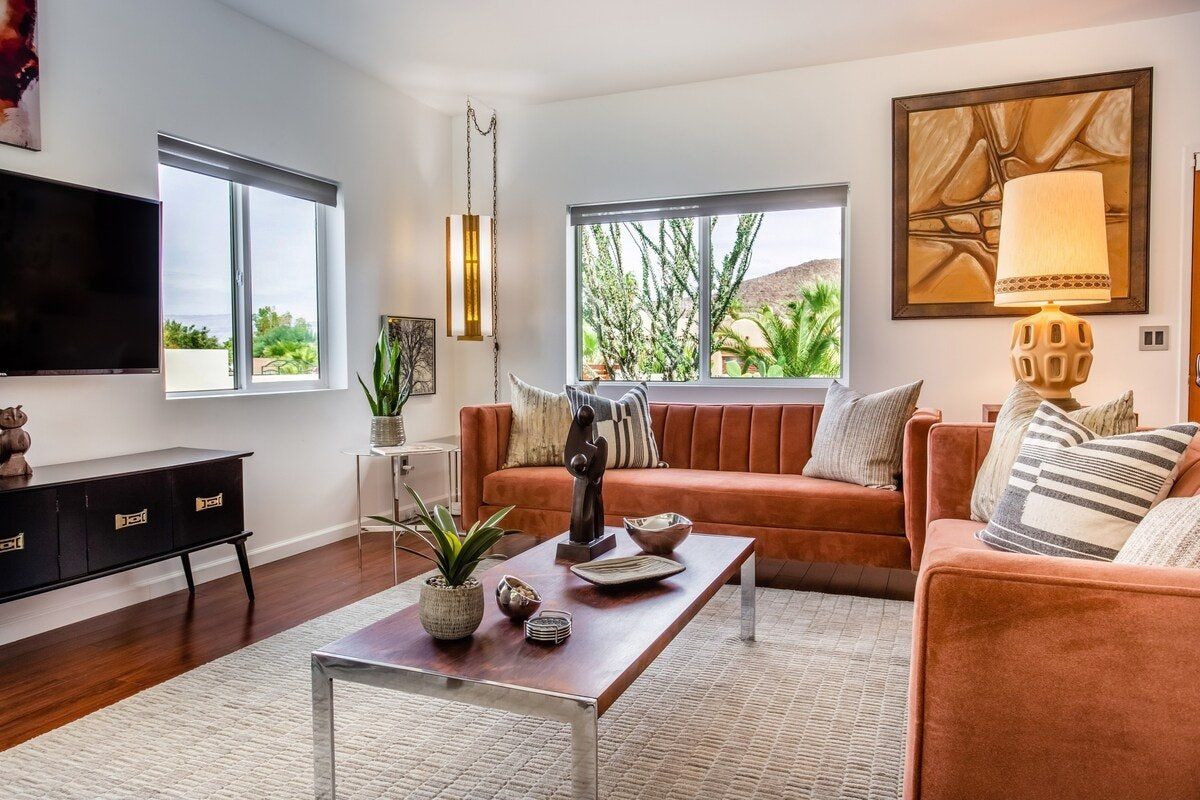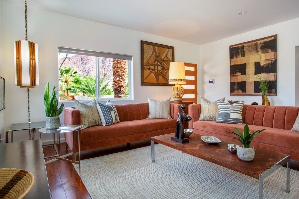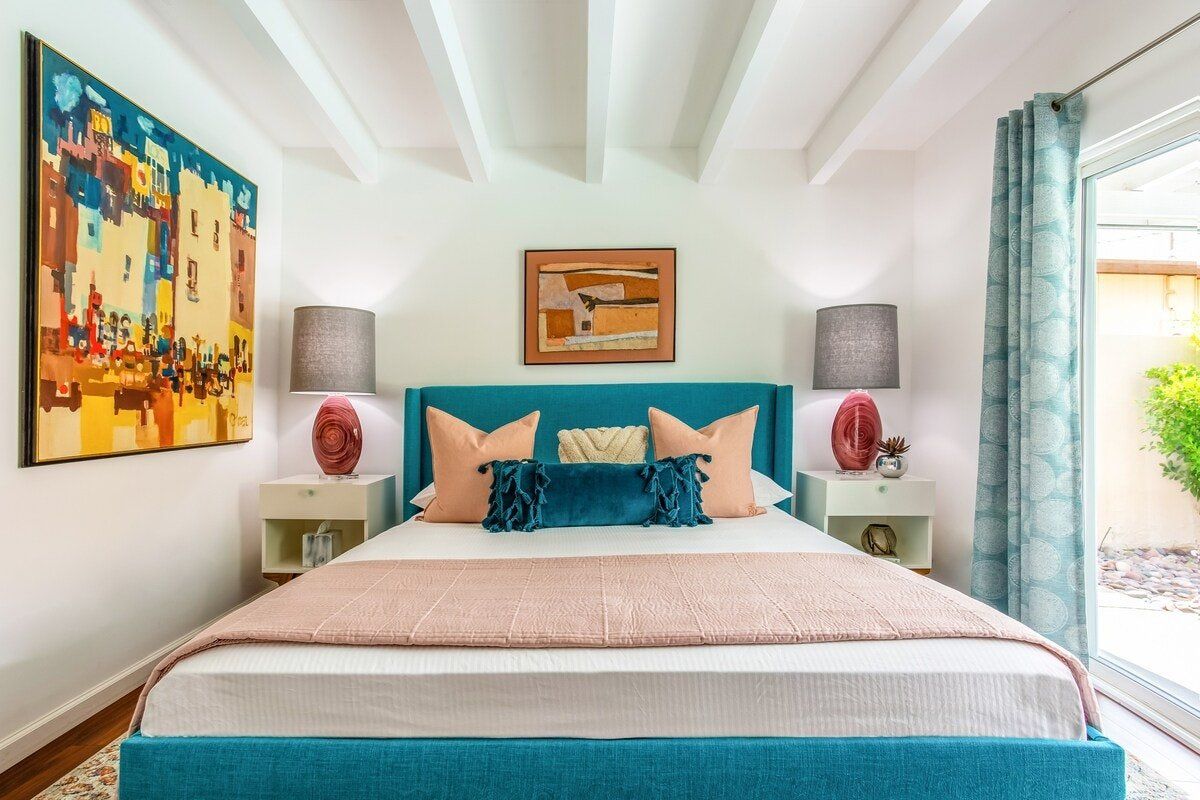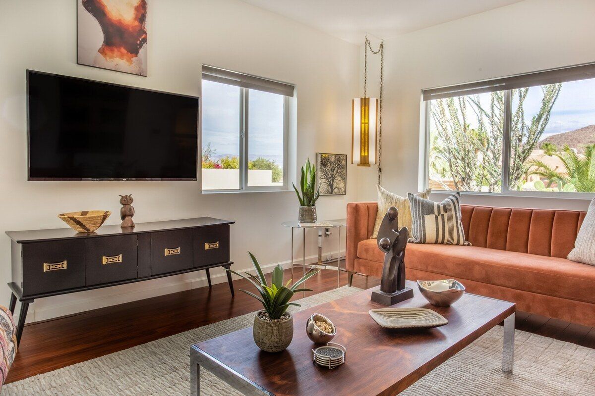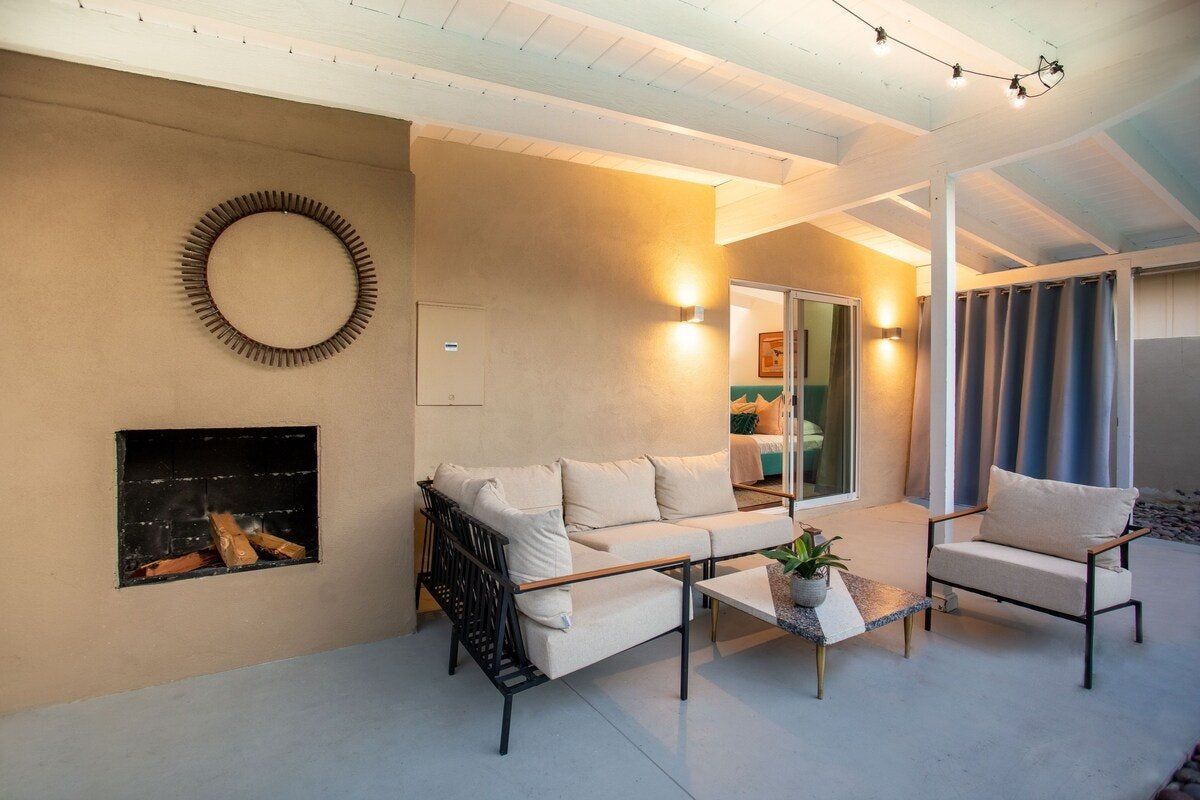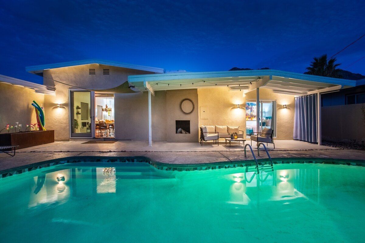 This desert home is bursting with character, and guarantees a fun-filled stay. The living space is all earthy tones, from clay red sofas to wooden accents, while the second bedroom is tropically sweet with its orange, lemon and lime themed furnishings. The outside space is geared up for long days in the sunshine, with glorious mountain views to boot. Swim a couple of laps in the heated, saltwater pool, and when you've worked up an appetite you can fire up the propane barbecue for a serious lunchtime feast. It's just a seven-minute wander into the heart of La Quinta, where you will find bars, shops and restaurants – there are also plenty of local hiking trails to explore.