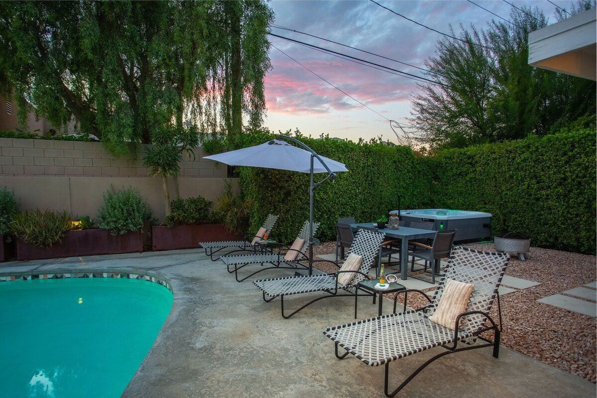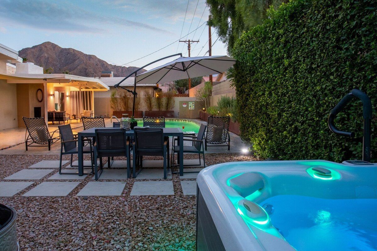 This desert home is bursting with character, and guarantees a fun-filled stay. The living space is all earthy tones, from clay red sofas to wooden accents, while the second bedroom is tropically sweet with its orange, lemon and lime themed furnishings. The outside space is geared up for long days in the sunshine, with glorious mountain views to boot. Swim a couple of laps in the heated, saltwater pool, and when you've worked up an appetite you can fire up the propane barbecue for a serious lunchtime feast. It's just a seven-minute wander into the heart of La Quinta, where you will find bars, shops and restaurants – there are also plenty of local hiking trails to explore. And make sure you earmark one night to soak in the garden’s state-of-the-art hot tub under the stars – you certainly won't regret it.