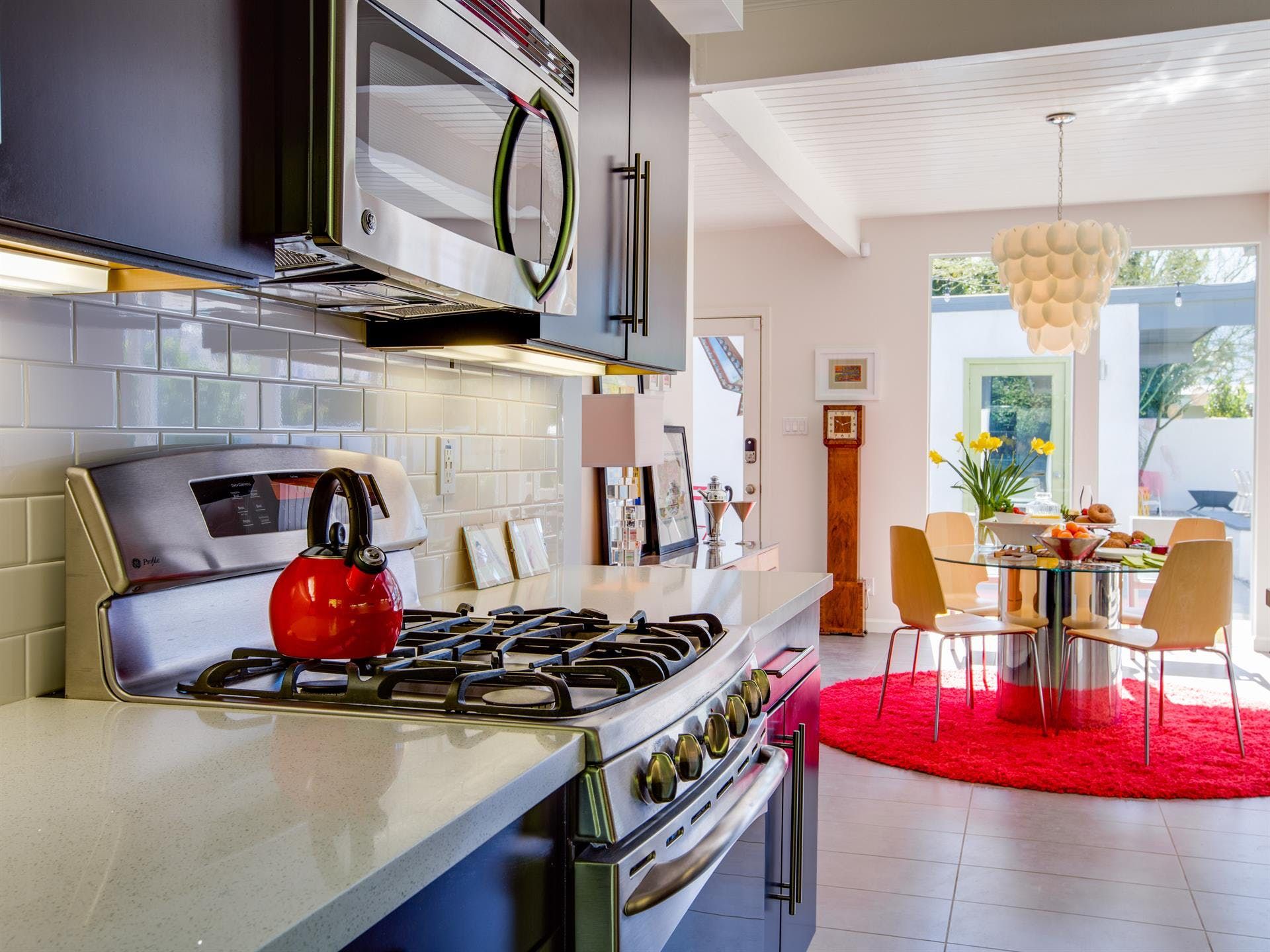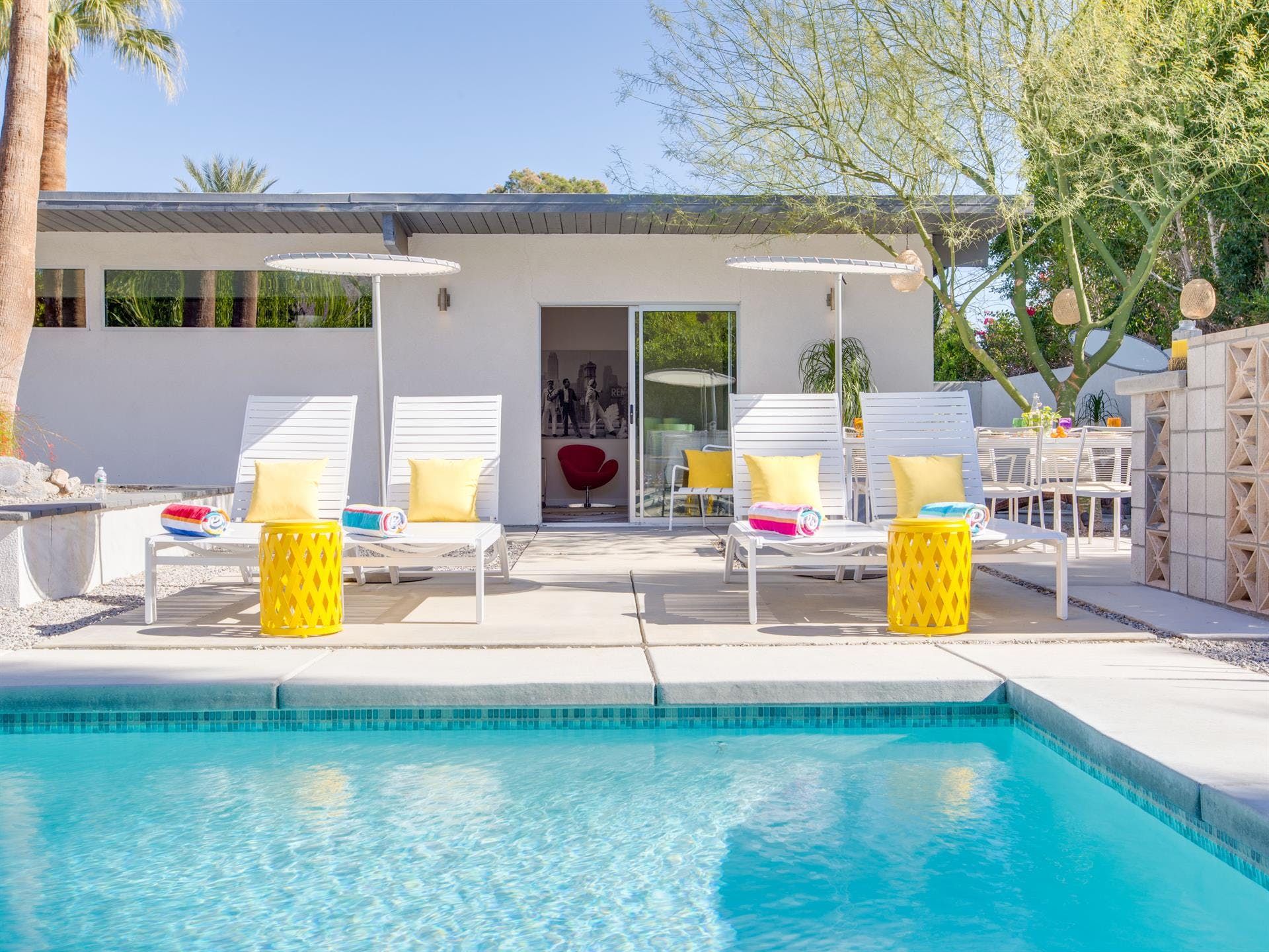 There are quirky curios at every turn here, from pink flamingos to a vintage motel sign in the garden – you won’t be short of Insta-worthy backgrounds. Flick through the pages of a magazine while sipping lemonade in the chic living space, or curl up by the fire if you want to feel cosy. Whip up dishes in the well-equipped kitchen for feasts with friends, to be devoured inside or out. We’re particularly keen on the alfresco dining area, complete with a grill, bar and a fire pit.