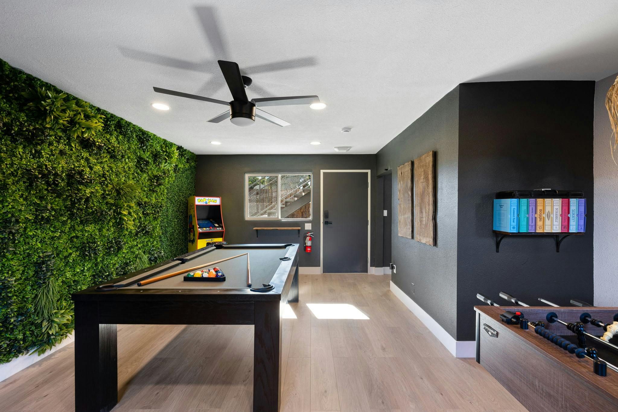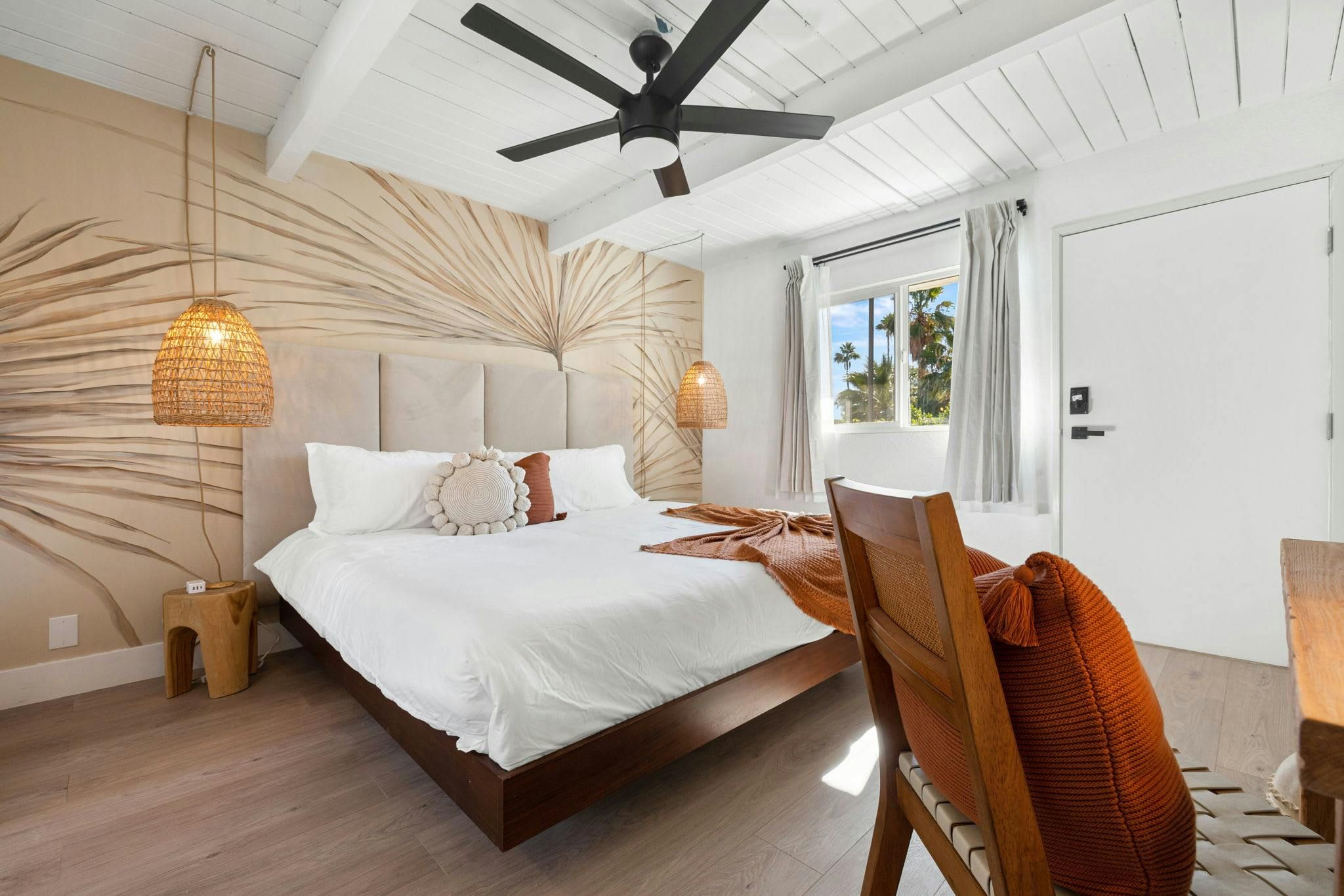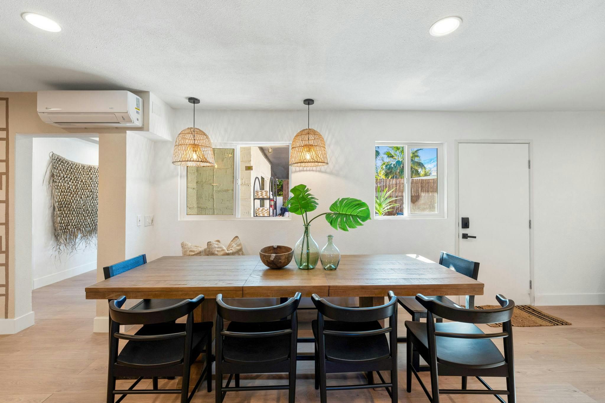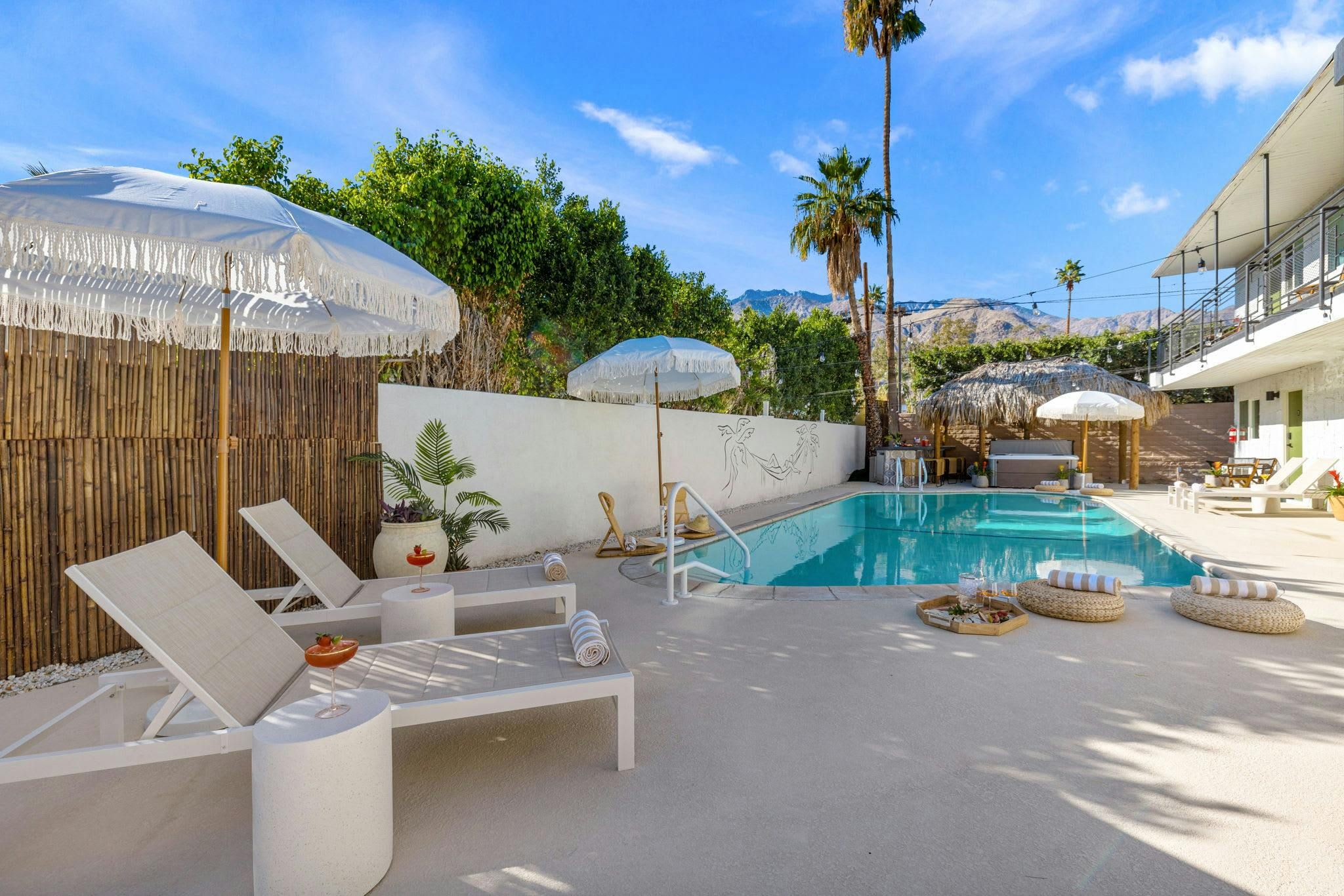 This Palm Springs retreat is a unique chance to book out your very own desert hotel. Set in a quiet gated community, it features eight private suites – two of which have their own lounges with sofa beds, making them perfect for families. The main living area overlooks the pool and mountains, and can even double as a ninth bedroom if needed. You’ll also find a gym with a Peloton, a games room with pool tables and video games, and plenty of bars and restaurants just a stroll away. Plus, if you fancy a day trip, Joshua Tree is only a forty-five-minute drive.