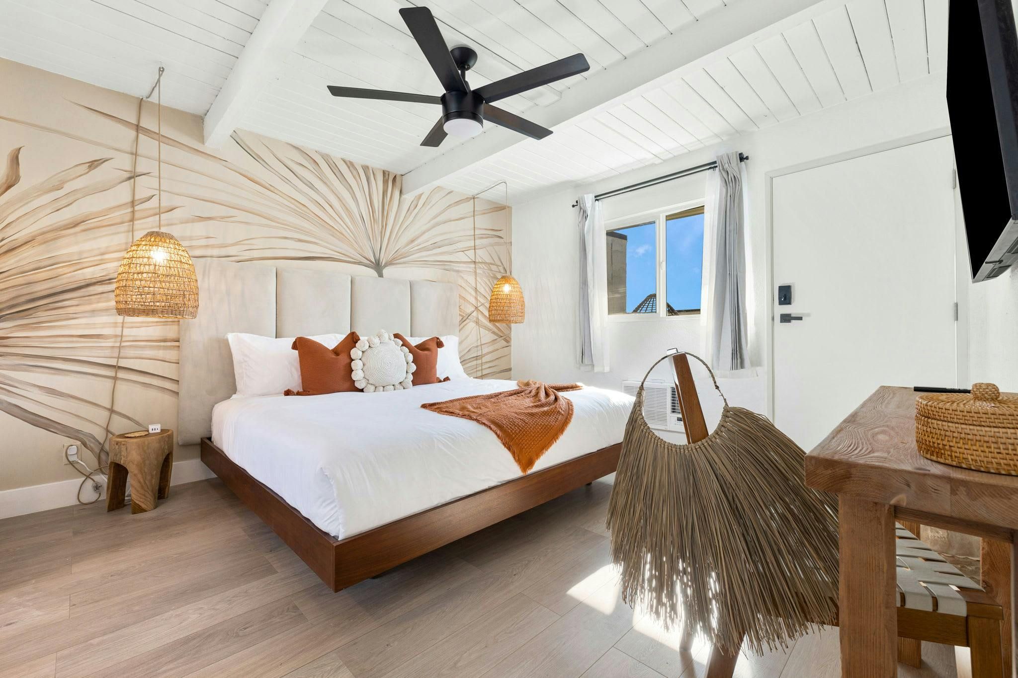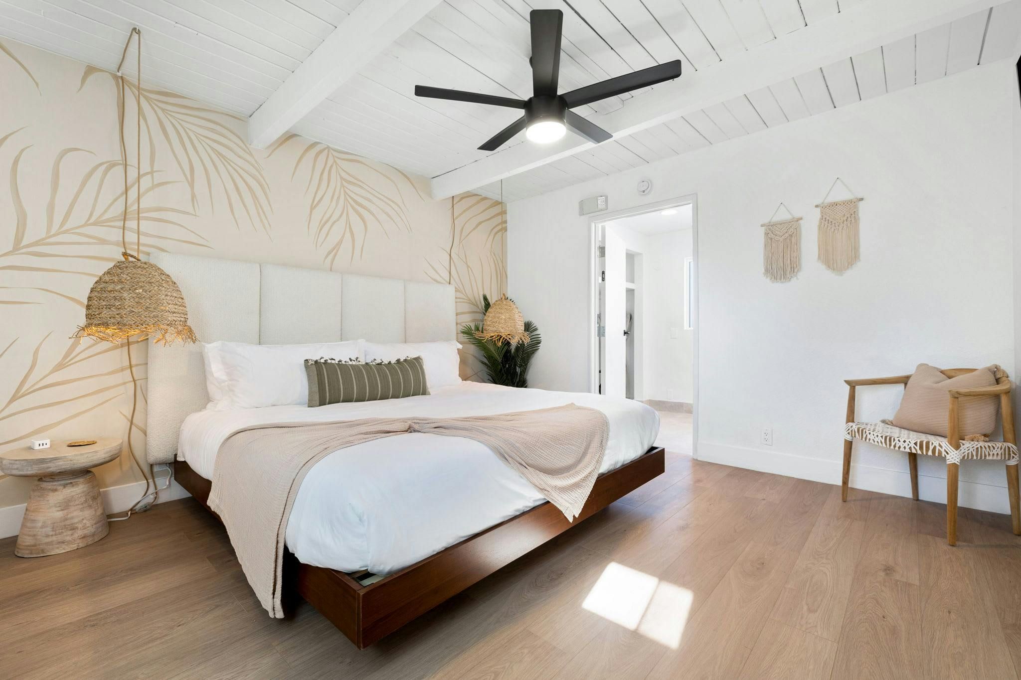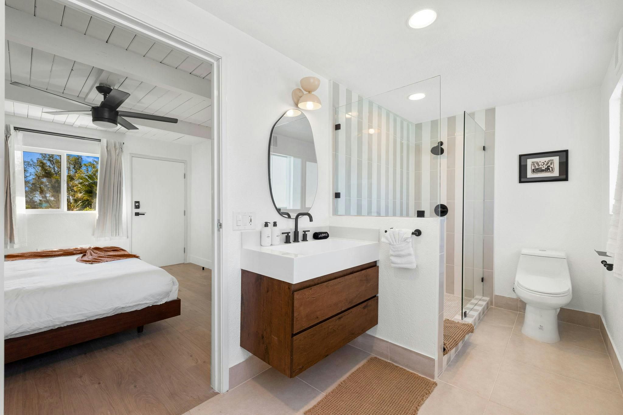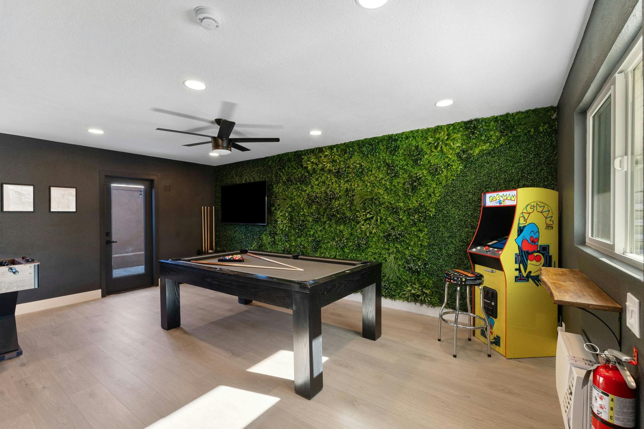 This Palm Springs retreat is a unique chance to book out your very own desert hotel. Set in a quiet gated community, it features eight private suites – two of which have their own lounges with sofa beds, making them perfect for families. The main living area overlooks the pool and mountains, and can even double as a ninth bedroom if needed. You’ll also find a gym with a Peloton, a games room with pool tables and video games, and plenty of bars and restaurants just a stroll away. Plus, if you fancy a day trip, Joshua Tree is only a forty-five-minute drive.