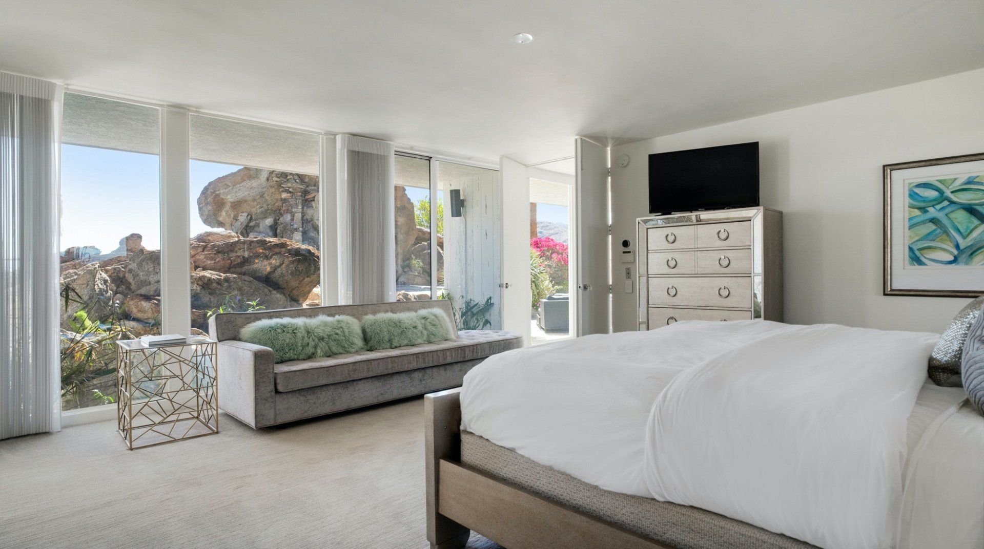 With jaw-dropping views over Coachella's palm-spangled valley, this Palm Springs villa (designed by architect R. Denzil Lee) is an ode to mid-century vogue. The sunken living room is a sumptuous affair with its huge open fireplace, plush furnishings and floor-to-ceiling windows offering panoramic vistas over the San Jacinto mountains. Watch the sunrise from the large L–shaped sofa, or take in sunset views from the sparkling drinks bar. No matter what time of day, your living backdrop will never cease to steal your breath away. The four large bedrooms are decked out in glamorous Hollywood Regency style with mirrored walls and a master spa-like shower adding to the interior’s swoon-worthy decadence. It’s the outdoors, though, that really steals the show. Head out to the dazzling boulder-framed pool that fits jigsaw-like into the surrounding cliffs. Take a dip after a morning spent soaking up the Californian sun and splash under the stunning waterfall feature. You'll also find a hot tub and a fire pit, both perfect for late-evening gatherings after a starlit alfresco dinner. When you’re not busy luxuriating in your cliffside oasis, explore the area's world-class golf courses, hiking trails and Palm Springs' downtown delights, all just a short drive away.