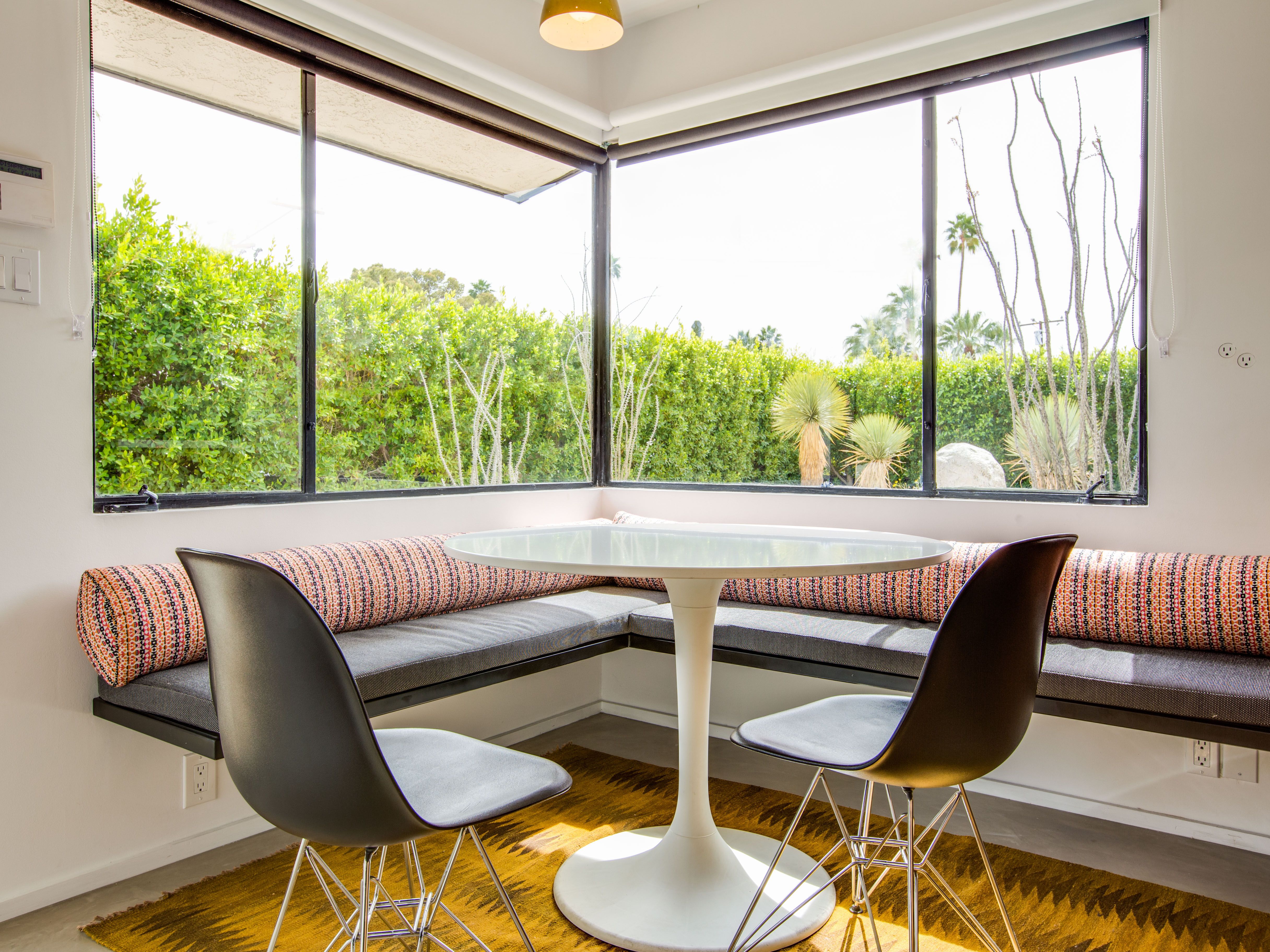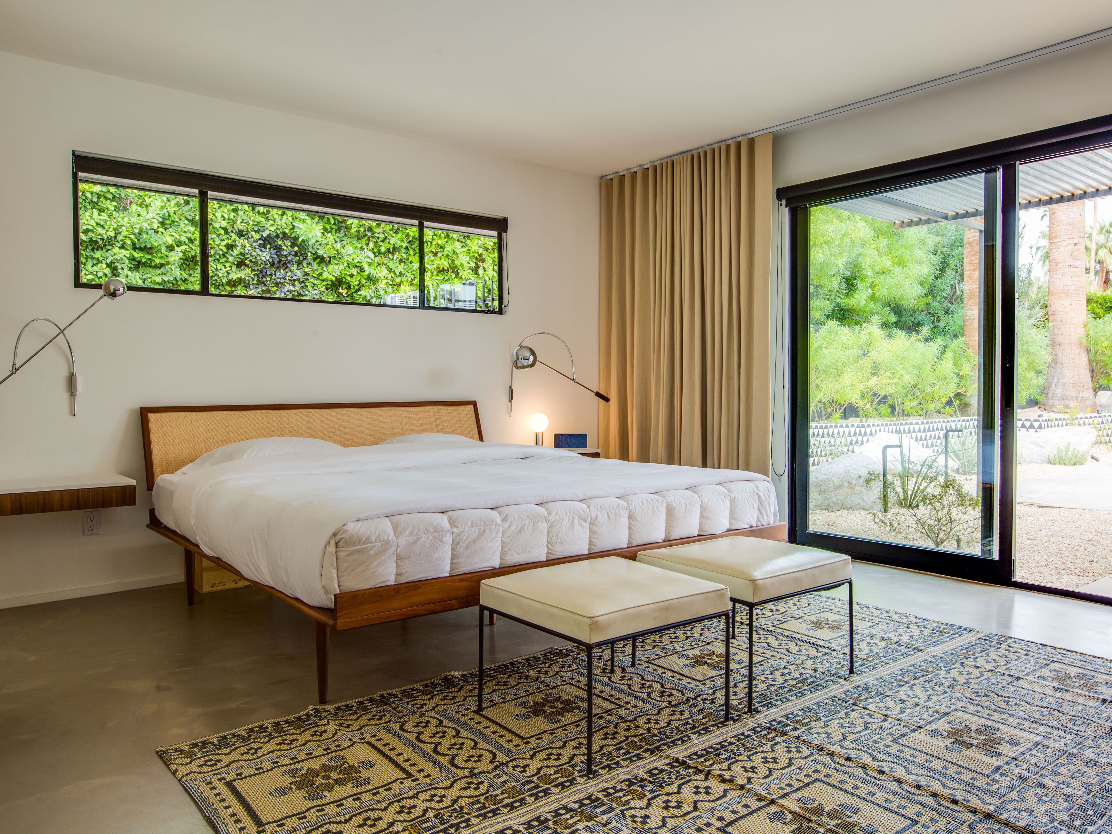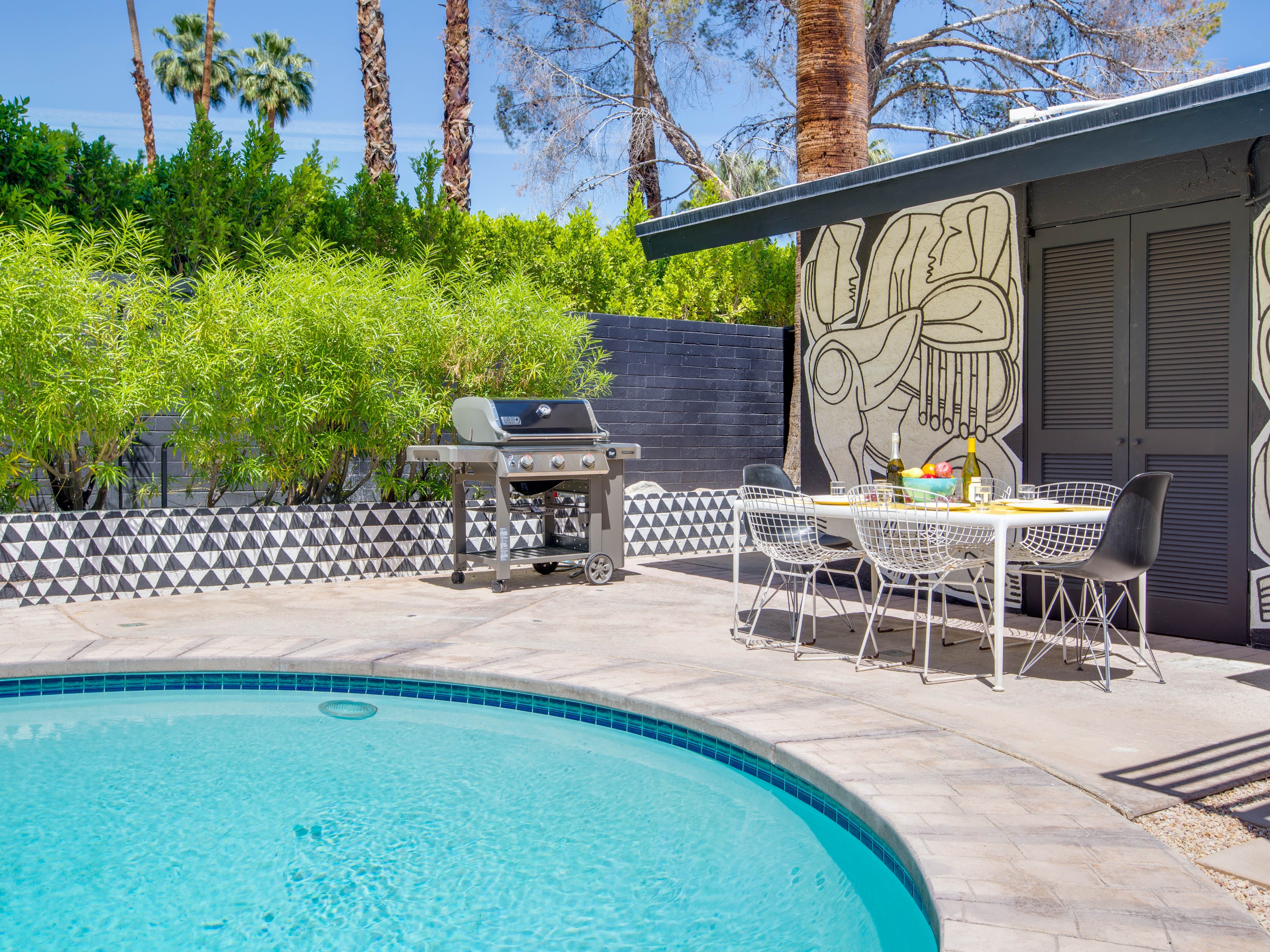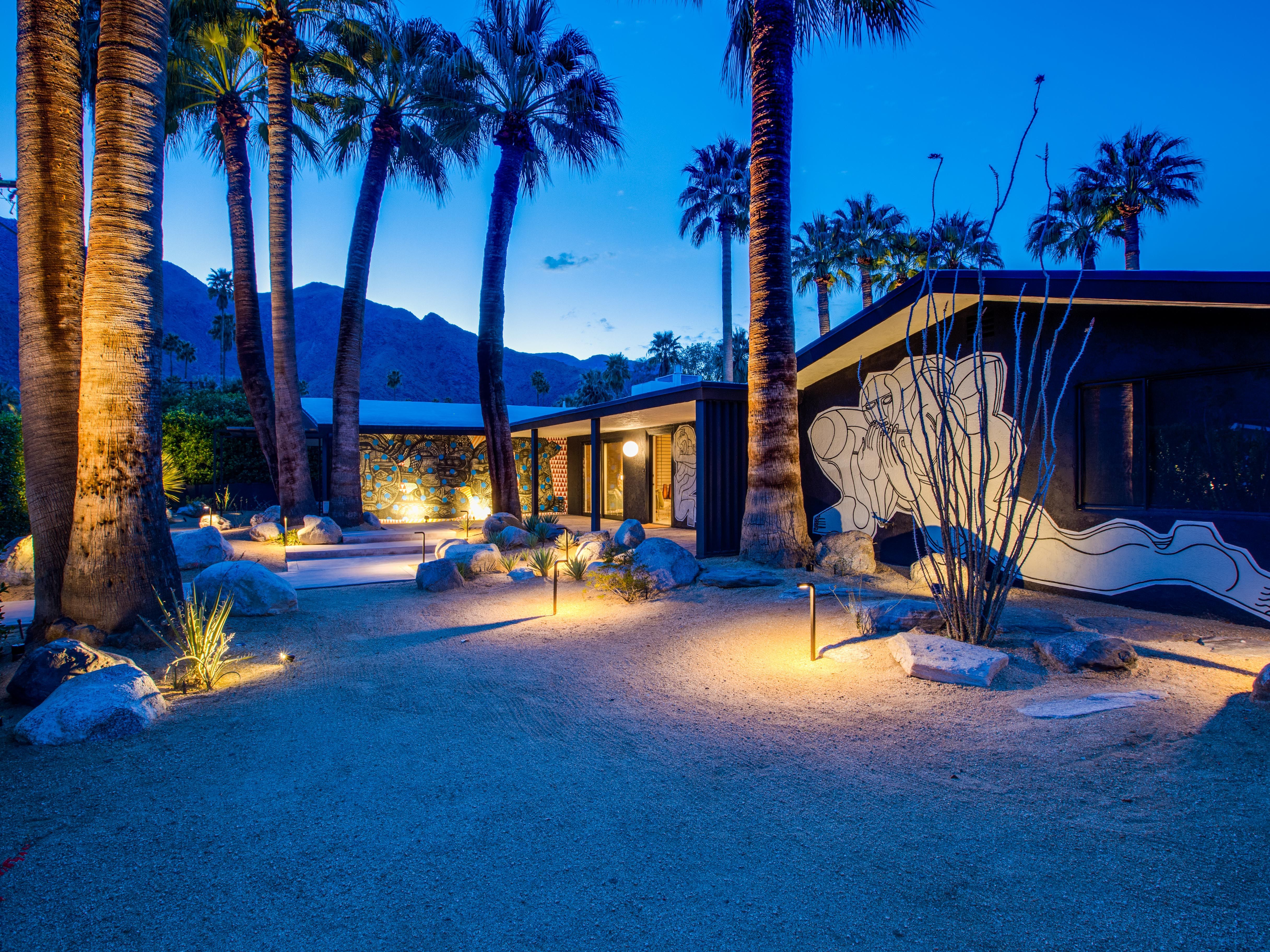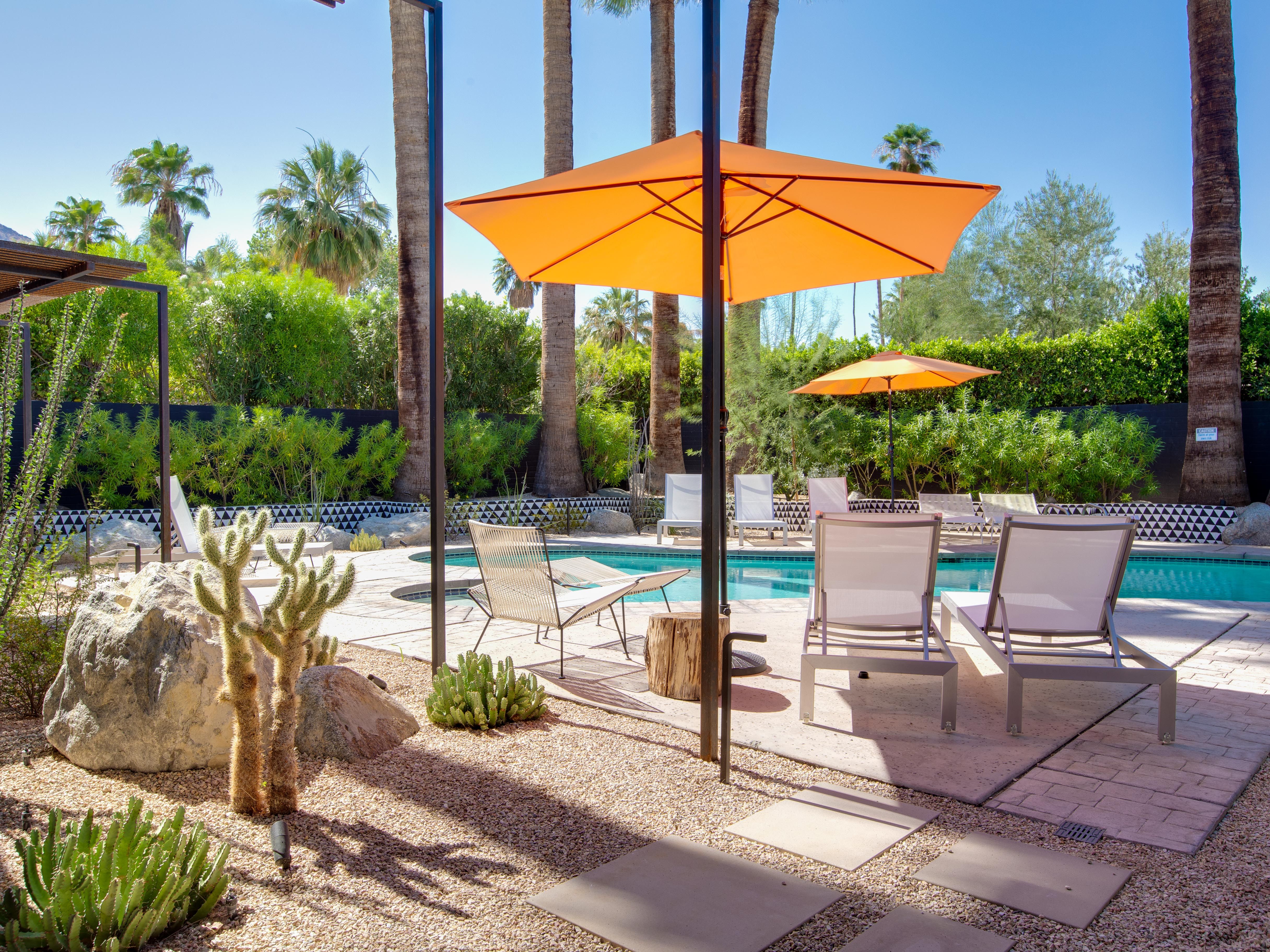 This chic home is an excellent example of mid-century modern architecture, set just two blocks away from iconic Palm Canyon Drive. The effortlessly cool interiors give a nod to the past, with antique style patterned rugs, statement lighting and unique artworks on the walls. Outside, there's a glittering swimming pool, lined with bright white sun loungers and tangerine parasols, where you can take a dip with the dramatic backdrop of the San Jacinto Mountains. If you fancy getting active, take a hike up to the peaks, or hop on the aerial tramway to avoid breaking a sweat – either way, you'll be treated to jaw-dropping views over Coachella Valley. Come home for a sundowner on the terrace, before stretching out on the curved green sofas with a classic Hollywood movie.