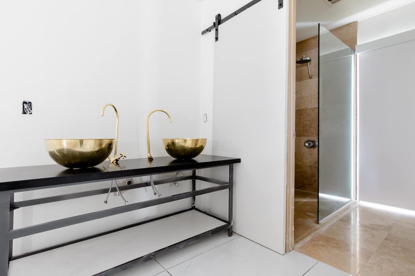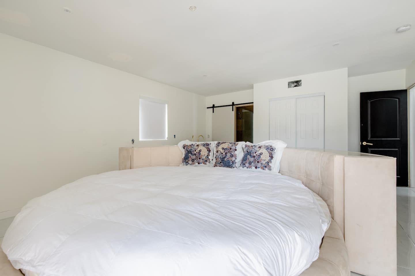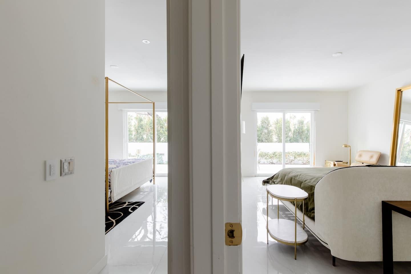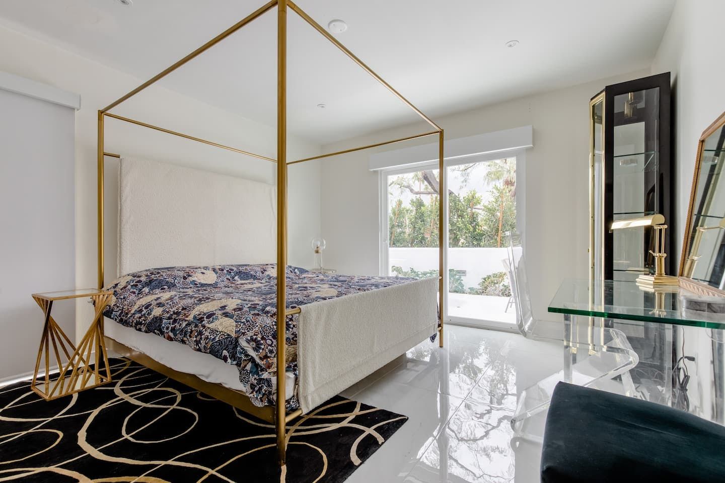Set in a very private, tranquil pocket of Palm Springs, this modern and creative home is the perfect spot for those looking to chill out during the day and entertain in the evenings. With its vibrant graffitied walls and doors, and glamorous decor, this home really makes a visual statement. It's a real crowd-pleaser too, with a large indoor-outdoor living space, two private