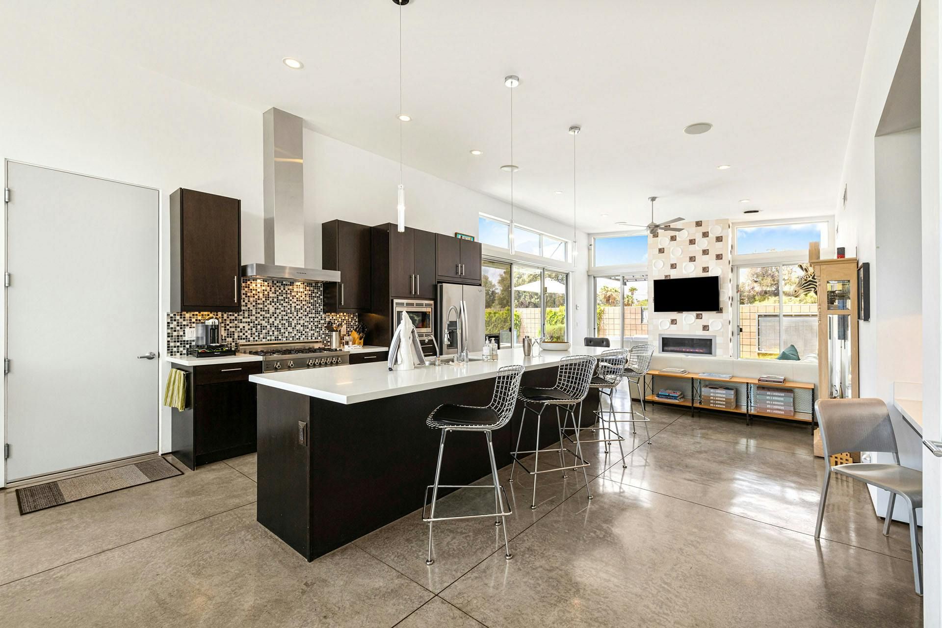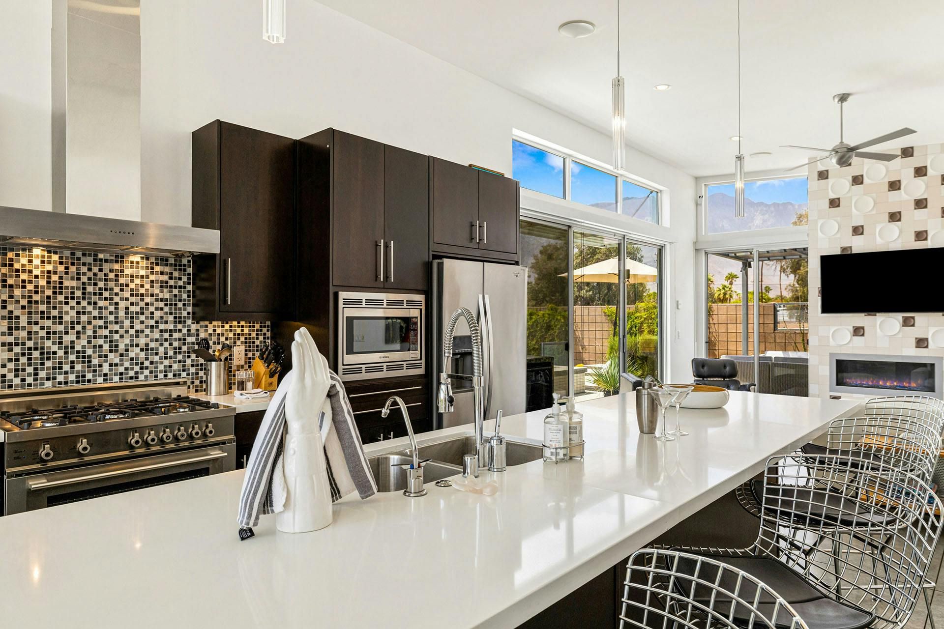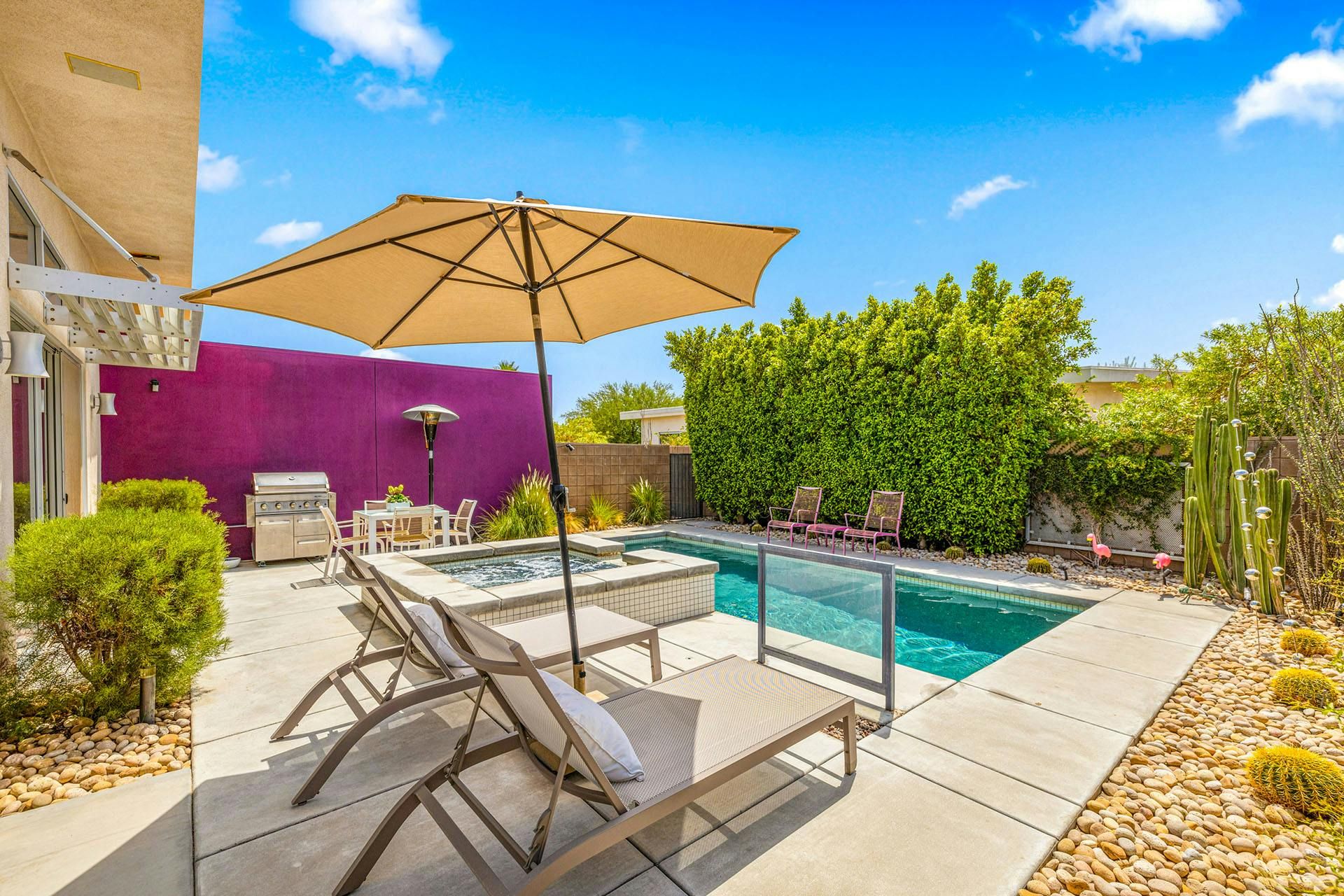 This luxurious Palm Springs home with mountain views is filled with things to keep you busy on your desert getaway. With a large living room, dining table and breakfast bar, there's plenty of space for dining and unwinding. Spend afternoons in the pool and jacuzzi before firing up the barbecue and dining on the terrace, then end the night with drinks by the firepit. When you're refreshed and ready to explore, downtown Palm Springs is full of fun shops and restaurants, while the scenery of Joshua Tree National Park, the hot springs, and Coachella Valley are all within an hour's drive.