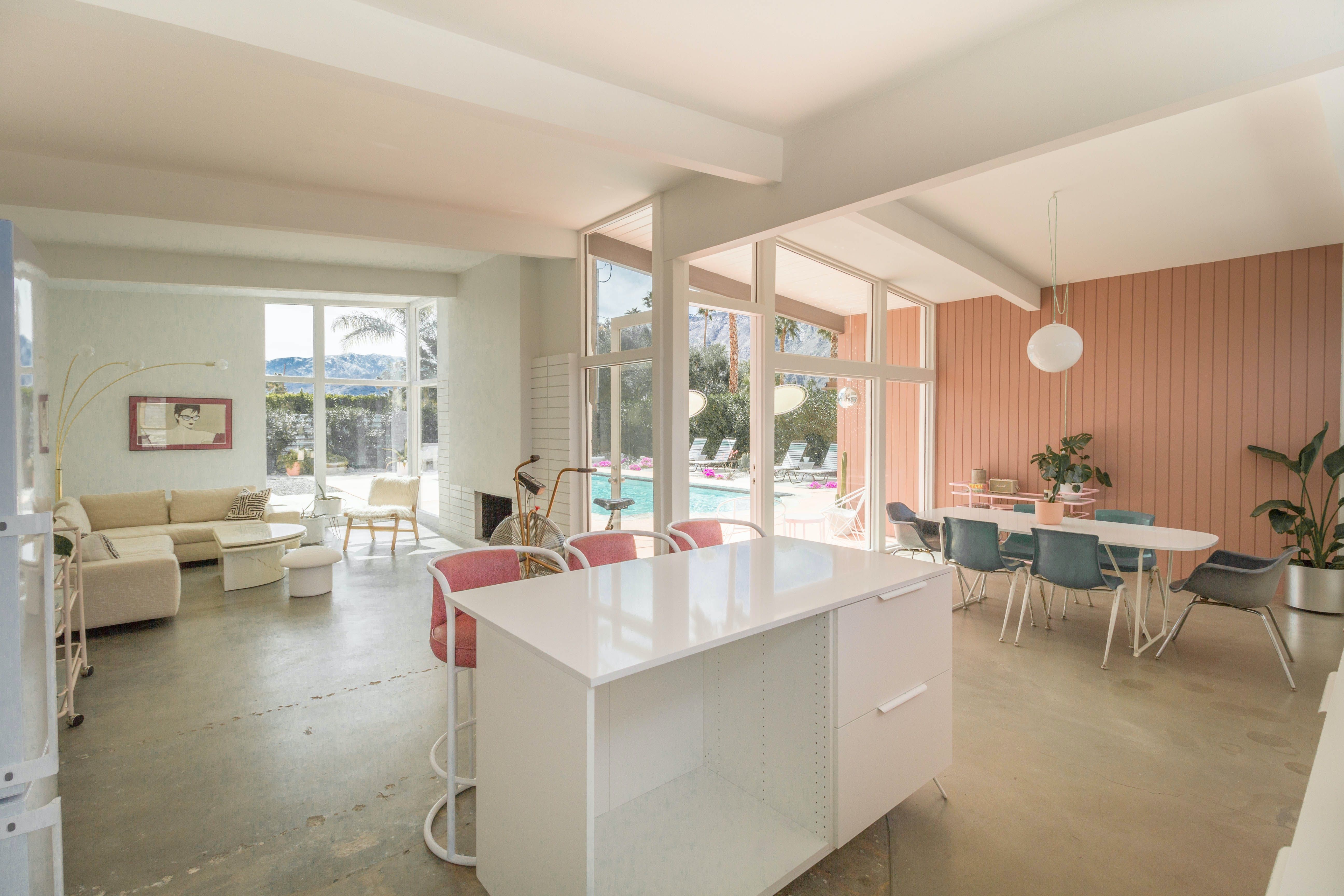 From the side-by-side bathtubs and candy pink desert tones to the oversized heated pool, this is the kind of home that uplifts the spirits and makes you smile. And with breathtaking views across the San Jacinto mountains, you’ll find yourself floating on a cloud of desert bliss.