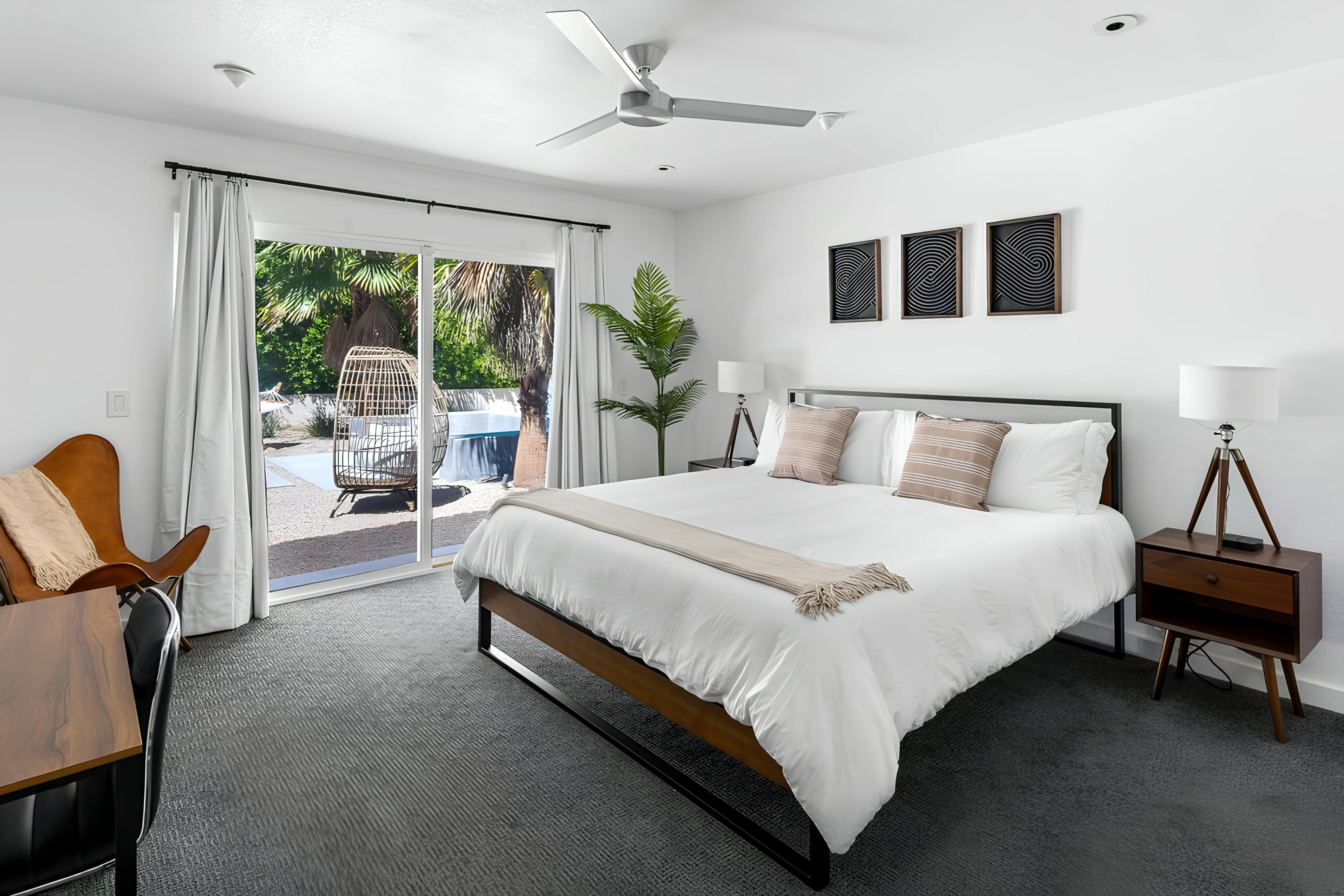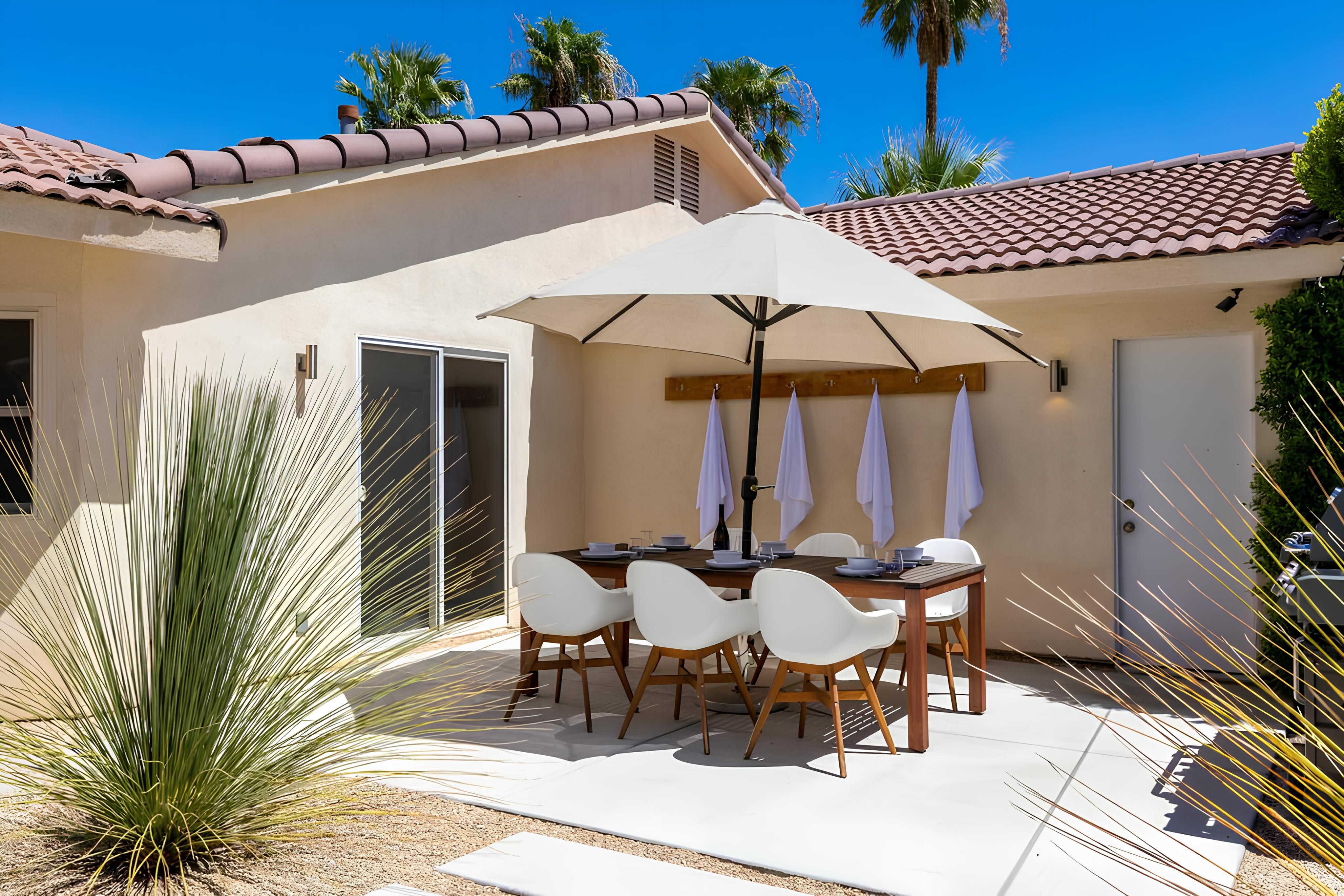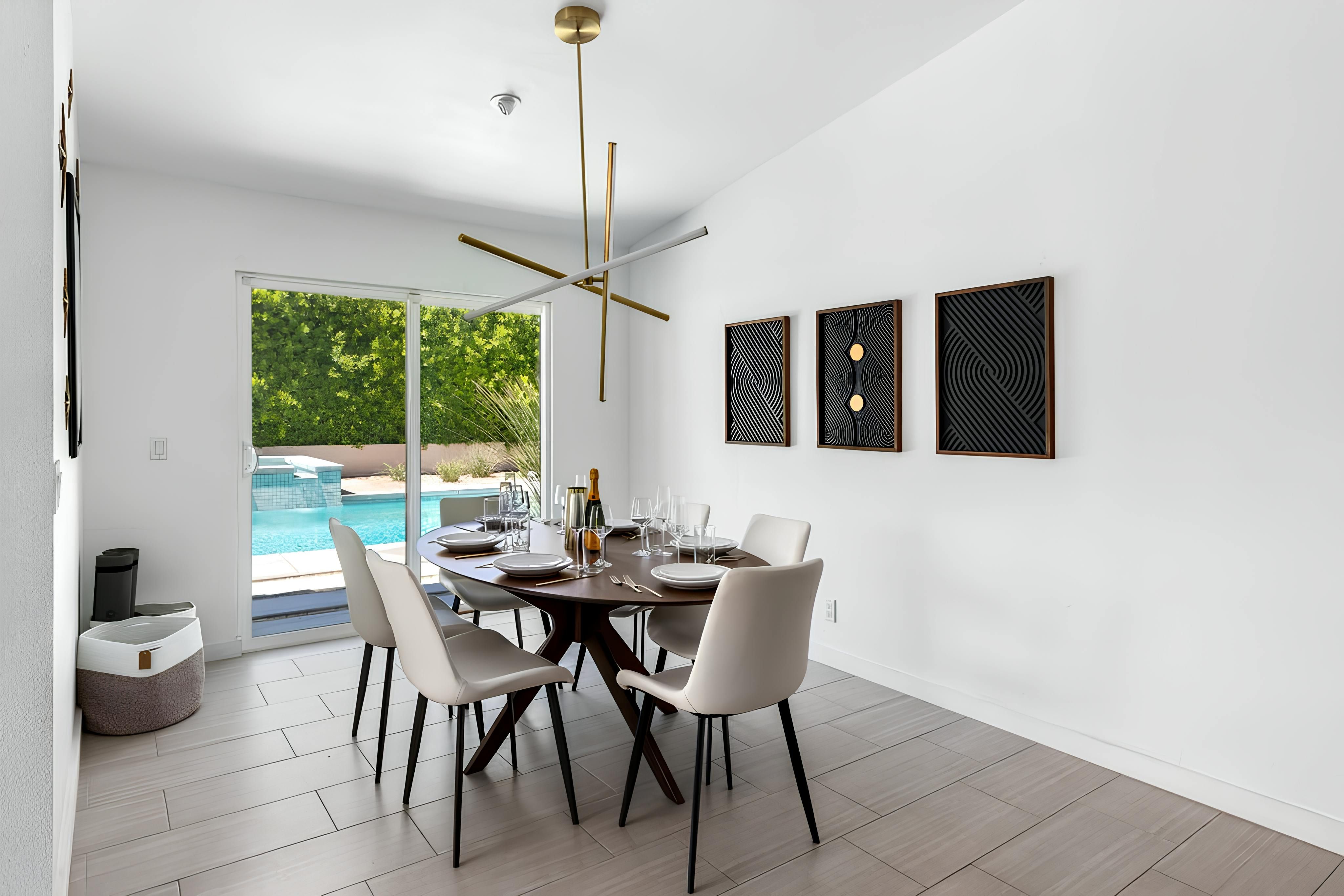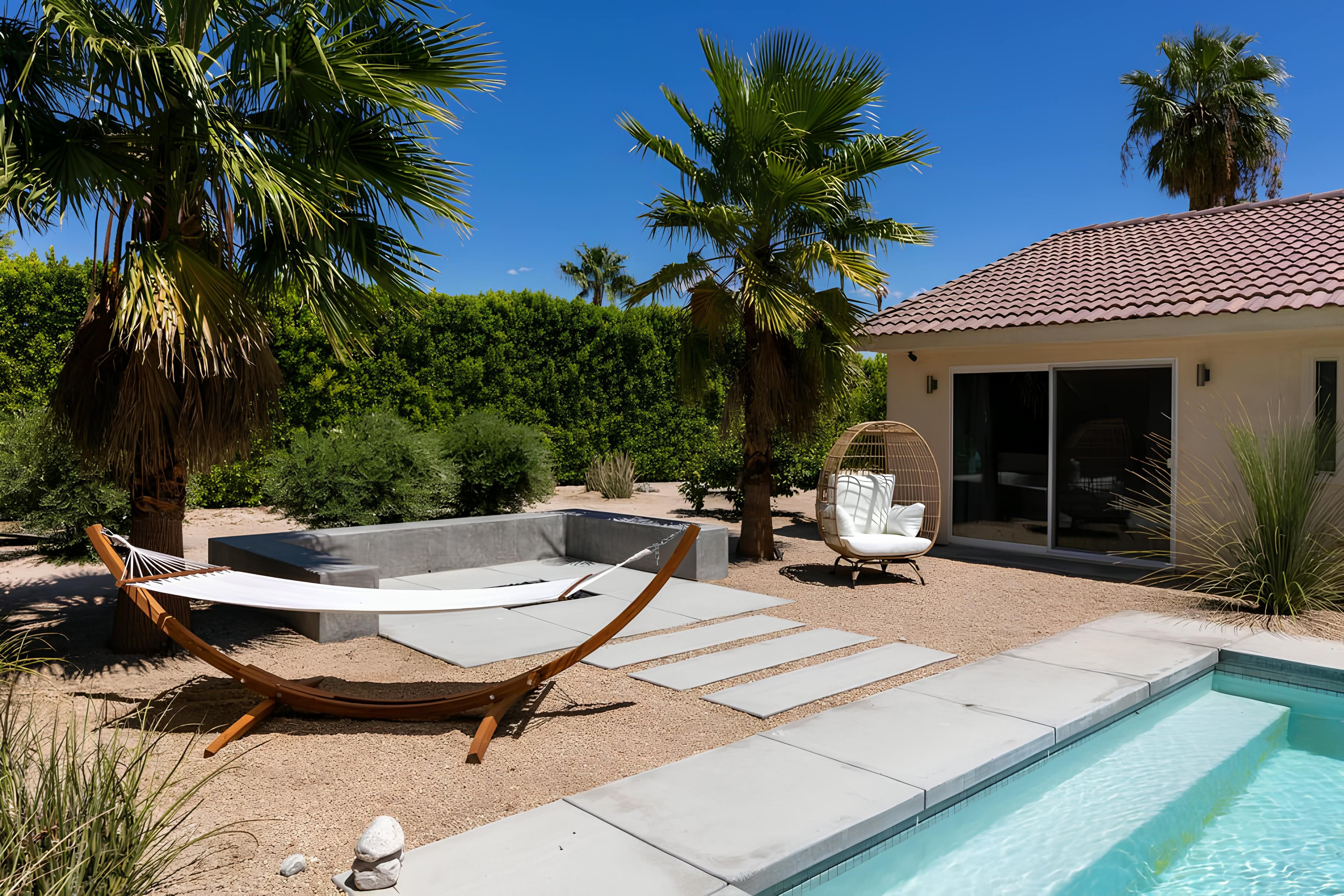 Welcome to LUX Palmas, your ultimate luxury oasis in gorgeous Palm Springs. This spectacular resort-style home is located just minutes from the airport and downtown, and only a 7 minute walk to the Sunrise Square shopping center where you'll find a grocery store, coffee shops and restaurants. It doesn't get more convenient than this! Indulge in the tranquility of your private paradise surrounded by lush tropical gardens and picturesque mountain views. Relax in the sun-drenched courtyard and take a dip in the sparkling turquoise pool or unwind under the shaded pergola with a refreshing cocktail. Inside, the contemporary decor embodies elegance and sophistication, creating a serene ambiance throughout. Each room exudes comfort and style, with luxurious furnishings and plush bedding ensuring a good night's sleep. Whether you're seeking total relaxation or an unforgettable desert adventure, LUX Palmas is the perfect retreat for creating lasting memories.
