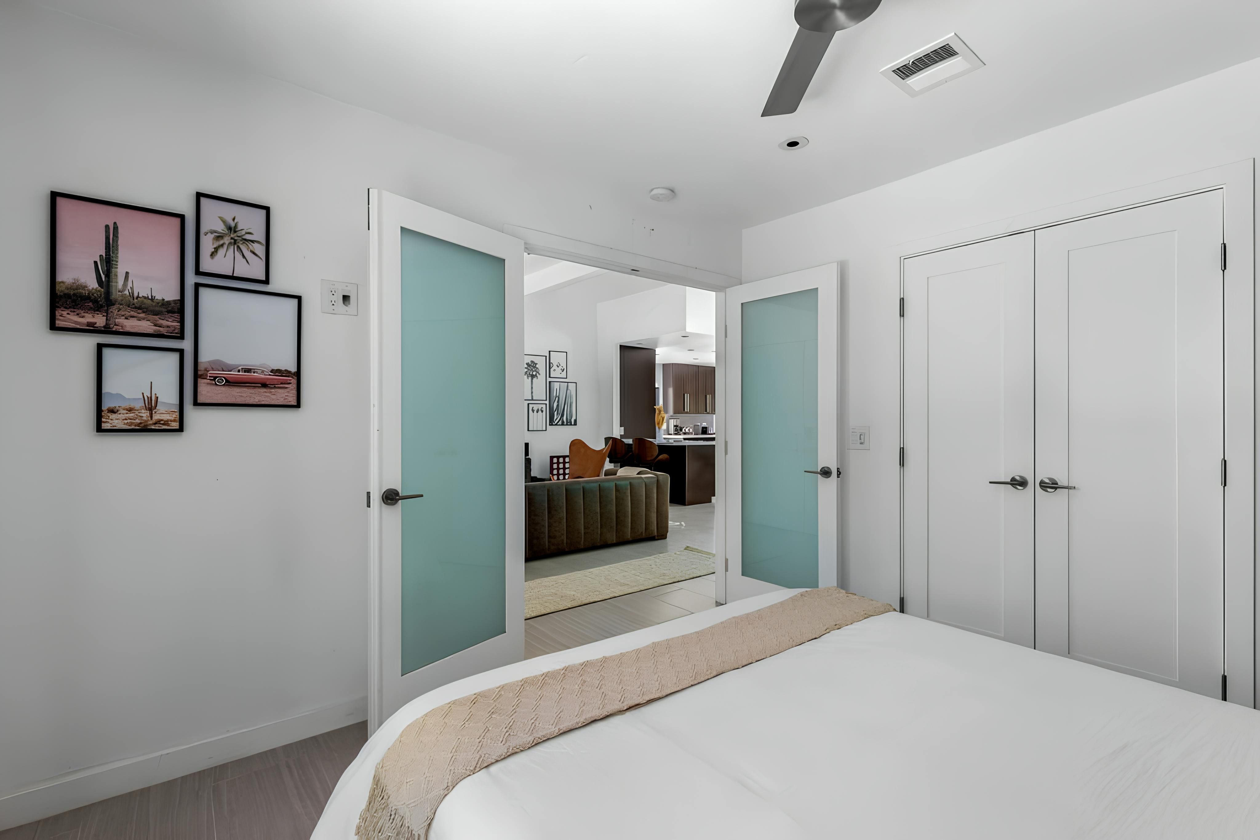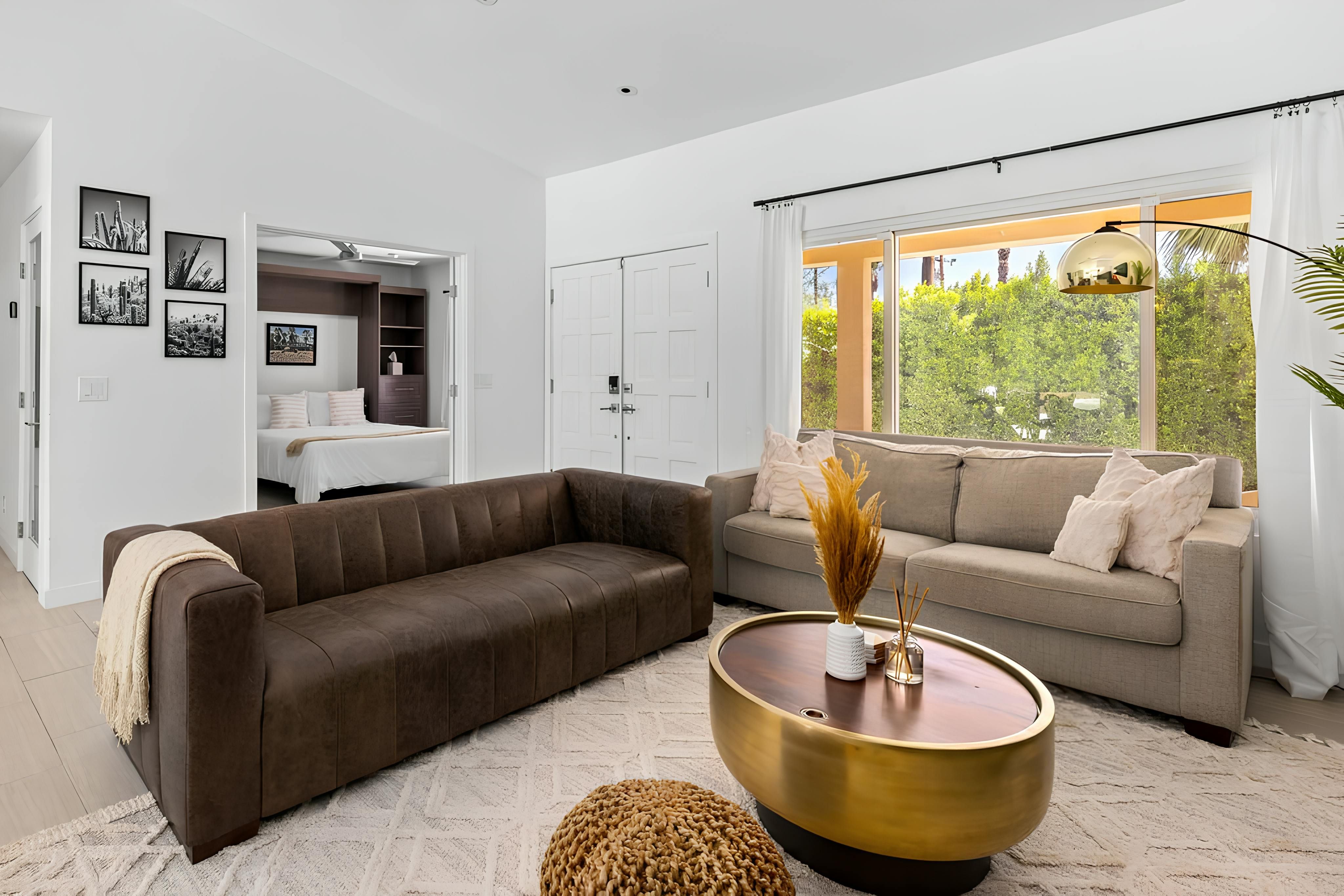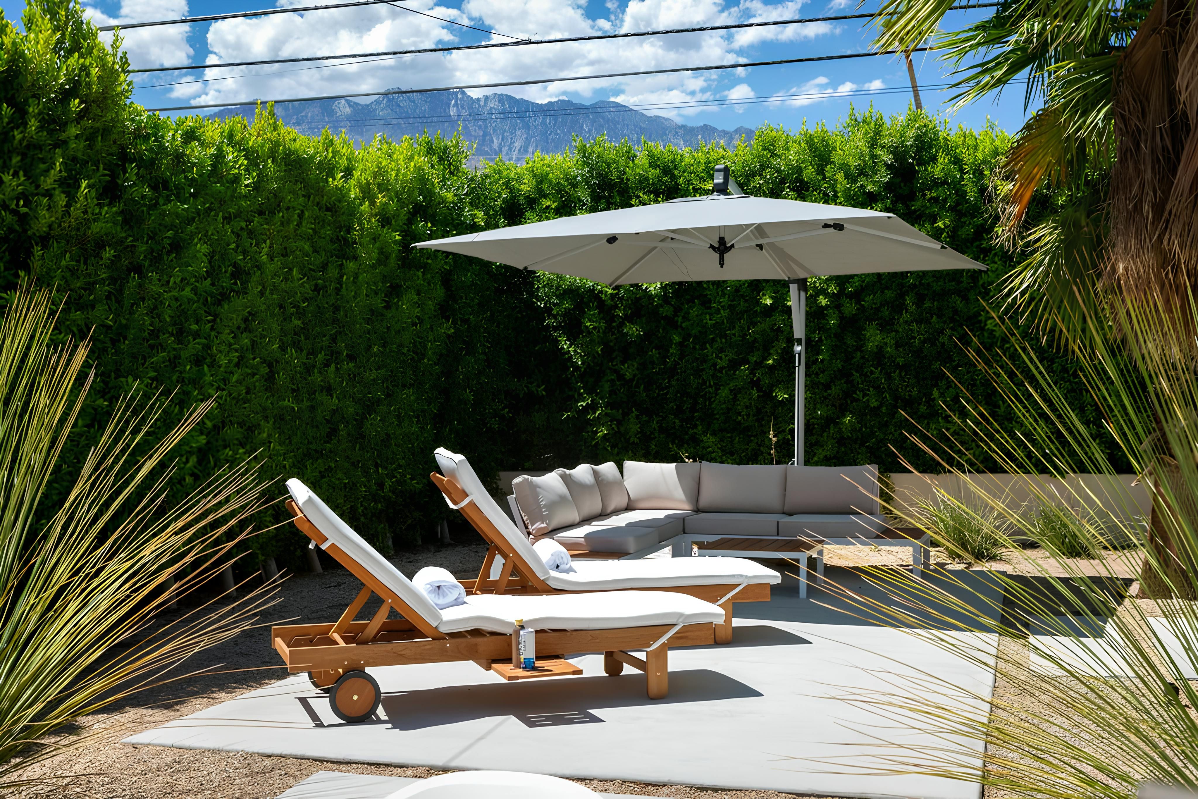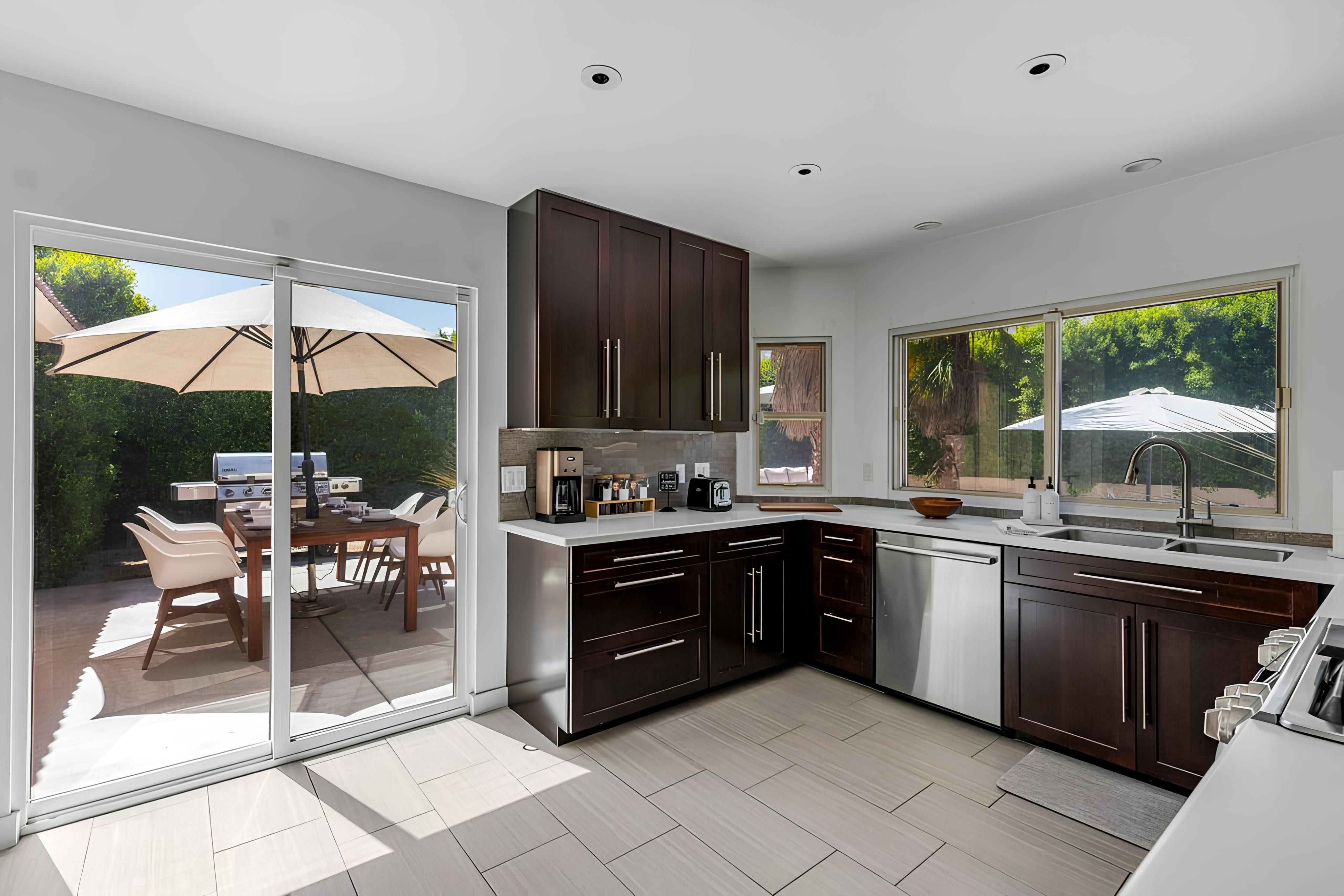 Welcome to LUX Palmas, your ultimate luxury oasis in gorgeous Palm Springs. This spectacular resort-style home is located just minutes from the airport and downtown, and only a 7 minute walk to the Sunrise Square shopping center where you'll find a grocery store, coffee shops and restaurants. It doesn't get more convenient than this! Indulge in the tranquility of your private paradise surrounded by lush tropical gardens and picturesque mountain views. Relax in the sun-drenched courtyard and take a dip in the sparkling turquoise pool or unwind under the shaded pergola with a refreshing cocktail. Inside, the contemporary decor embodies elegance and sophistication, creating a serene ambiance throughout. Each room exudes comfort and style, with luxurious furnishings and plush bedding ensuring a good night's sleep. Whether you're seeking total relaxation or an unforgettable desert adventure, LUX Palmas is the perfect retreat for creating lasting memories.