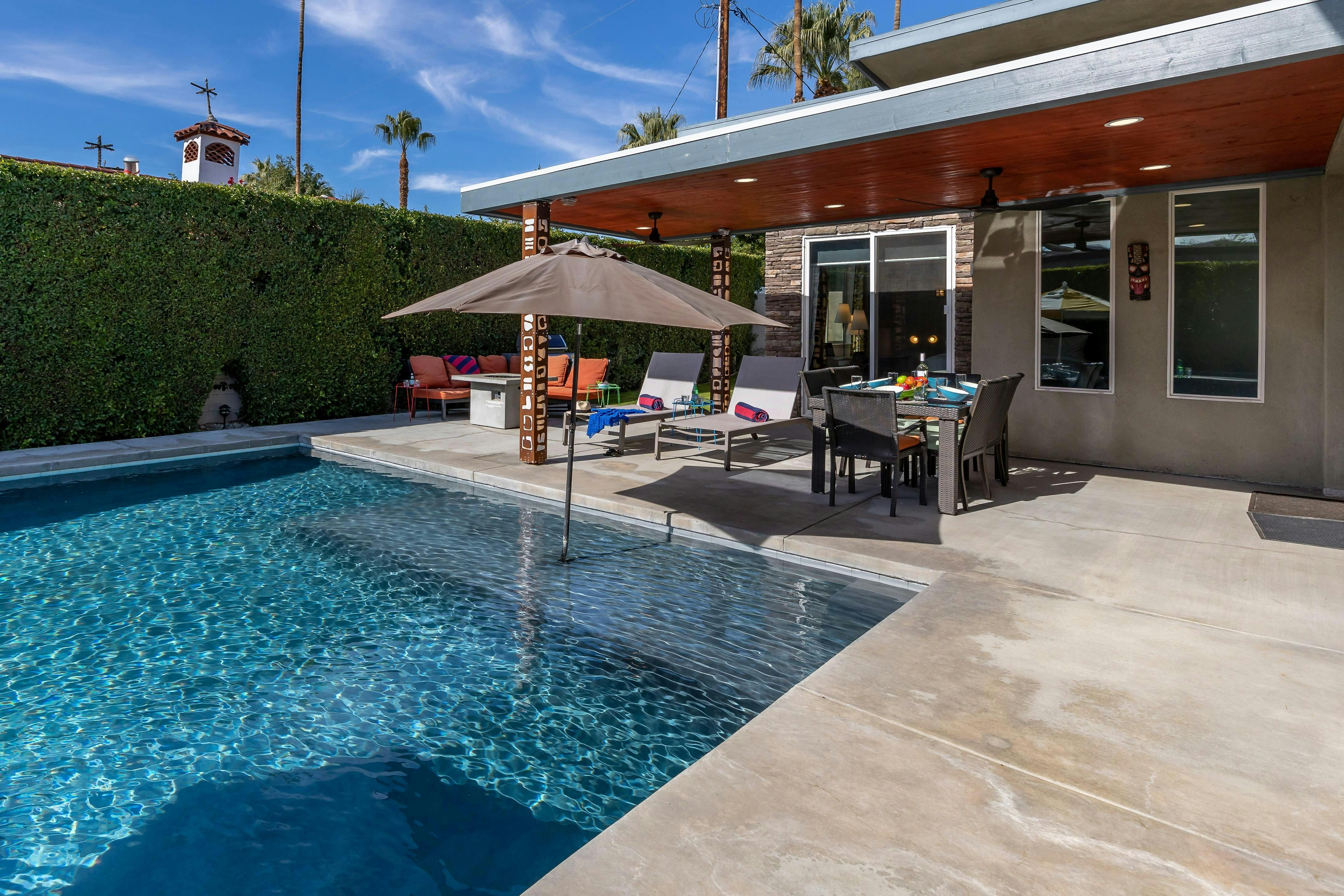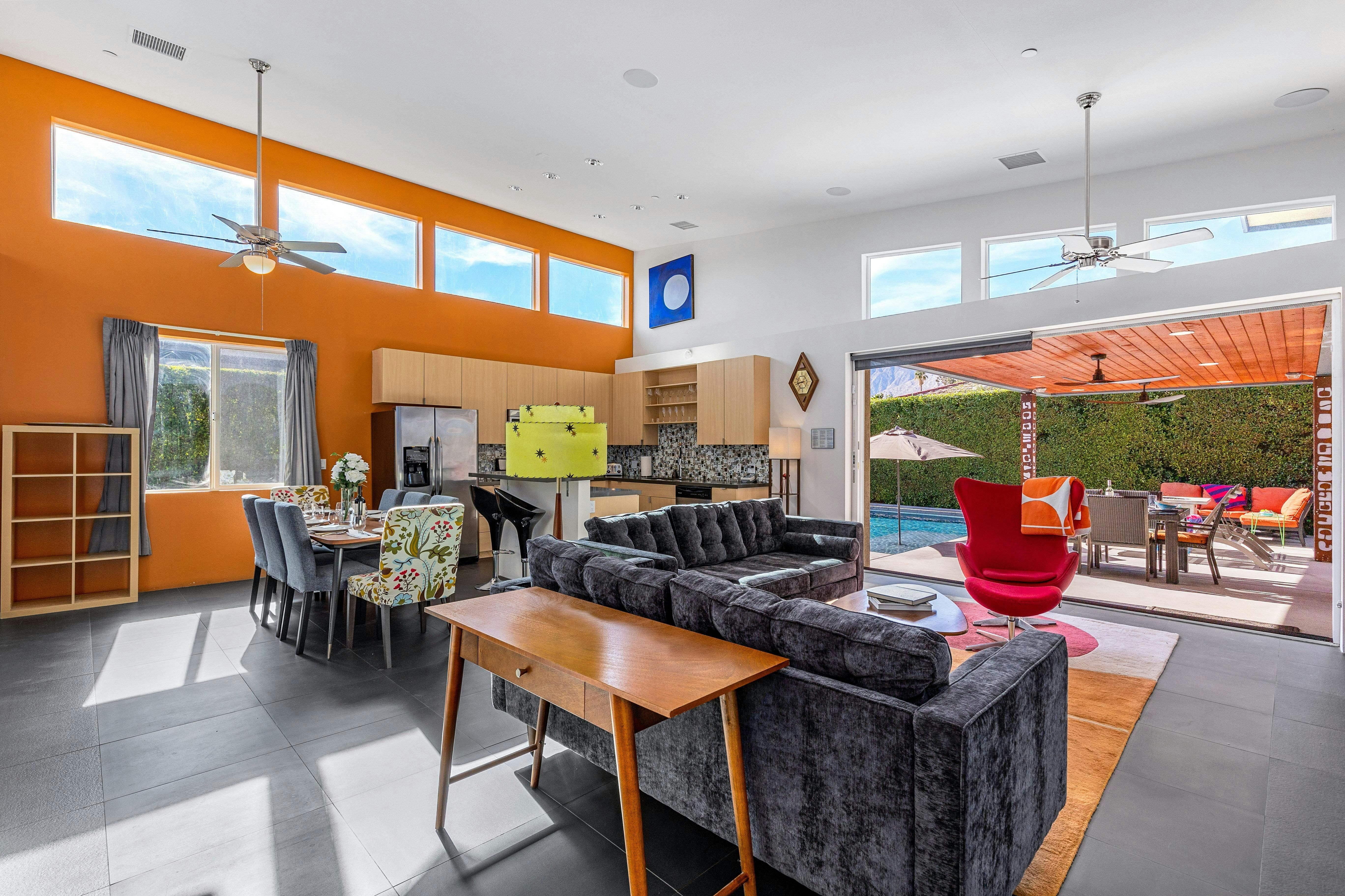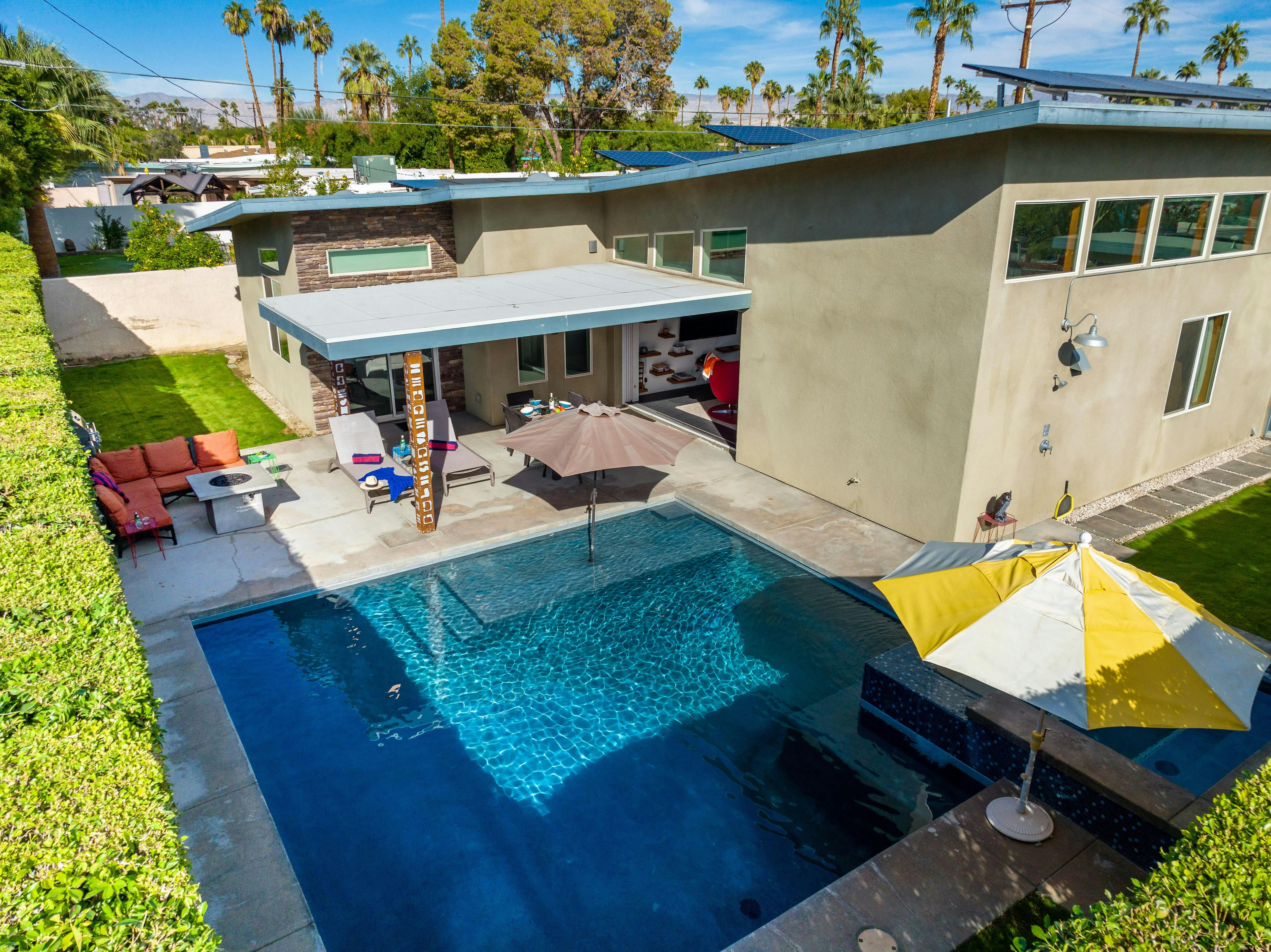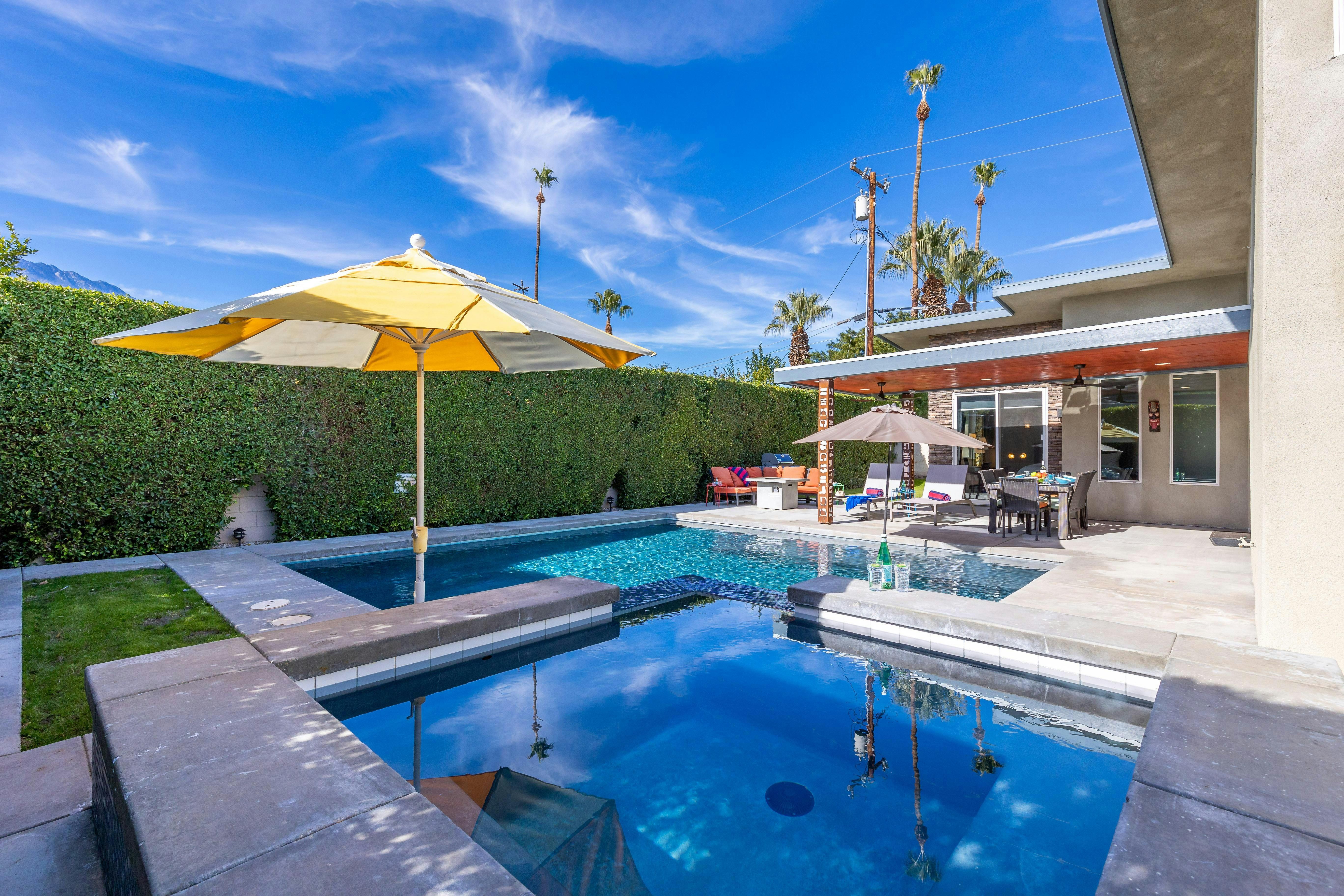 Escape to the desert’s endless sunshine when you stay at this colourful home in Palm Springs. The sunny patio and pool set the scene for lazy days, while the breezy, open-plan living area has lots of space for reclining and dining. Each of the bedrooms has its own en-suite, which is great for group getaways, and you’ll love gathering around the firepit after dark for s’mores and stargazing. You’ll also love the location – close to culture, coffee spots, and cocktail bars in downtown Palm Springs, yet nicely nestled in a residential neighbourhood. Whether you’re hitting the hiking trails or savouring a spa day (and sampling the hot springs that gave the city its name), this is a super spot to call home.
