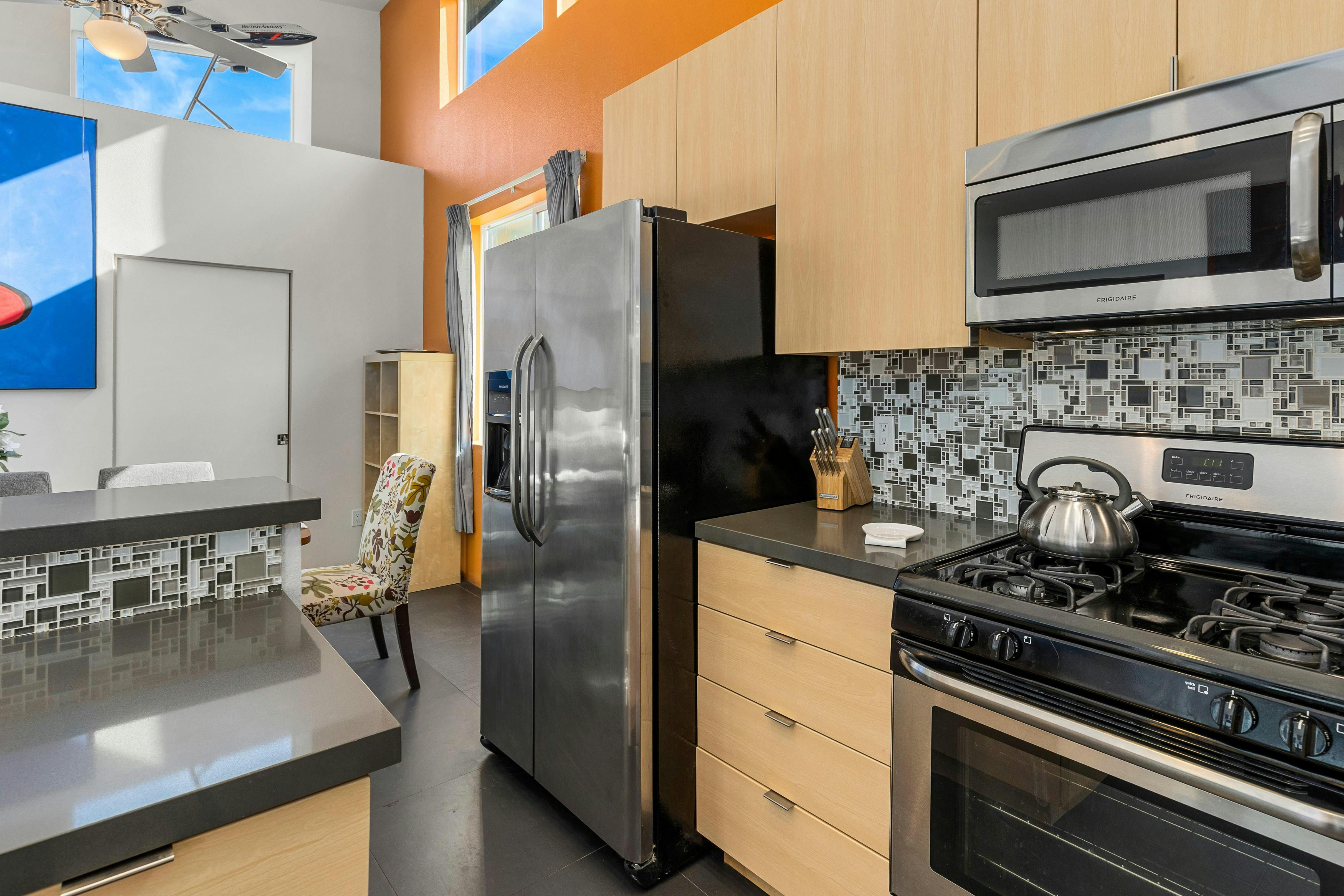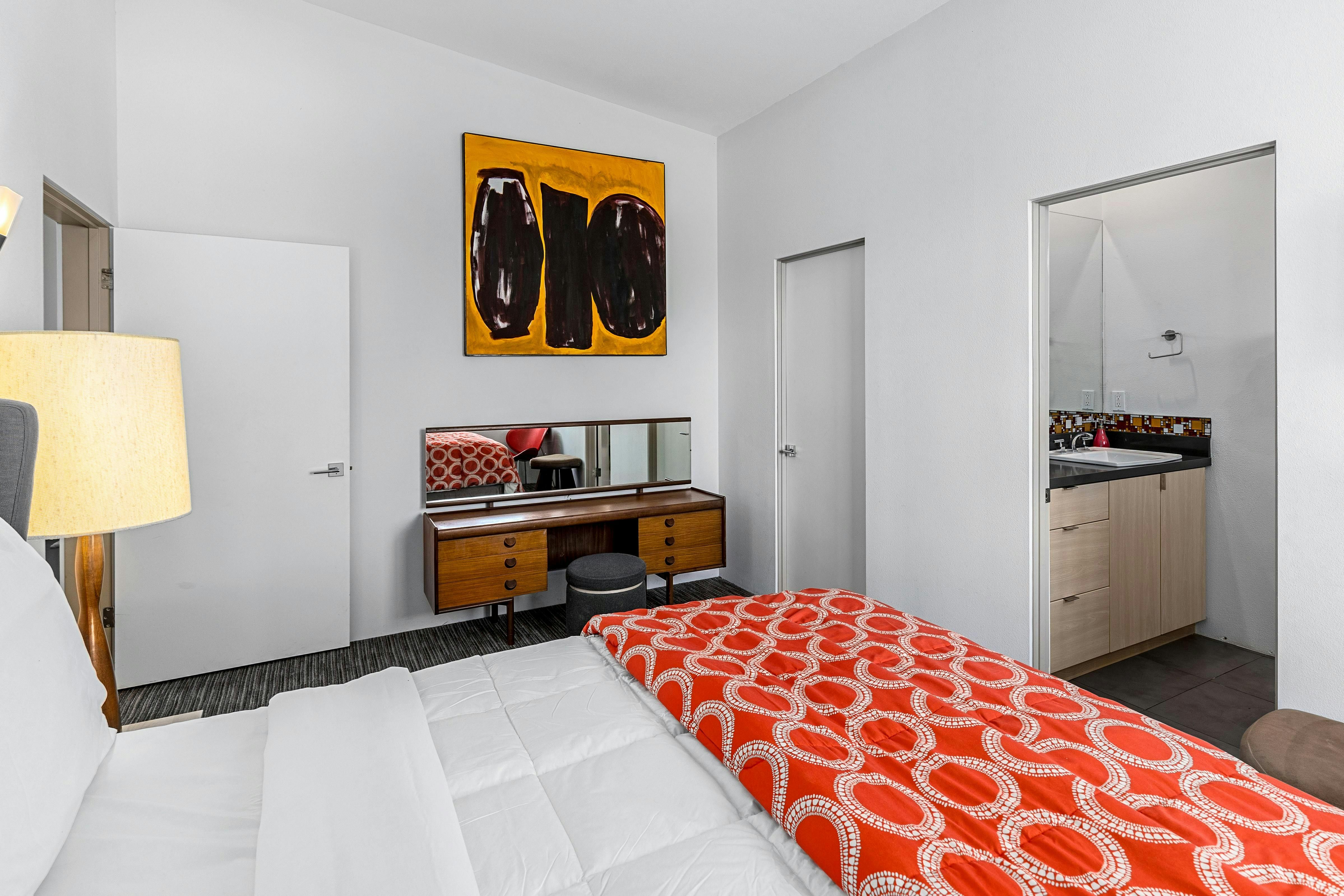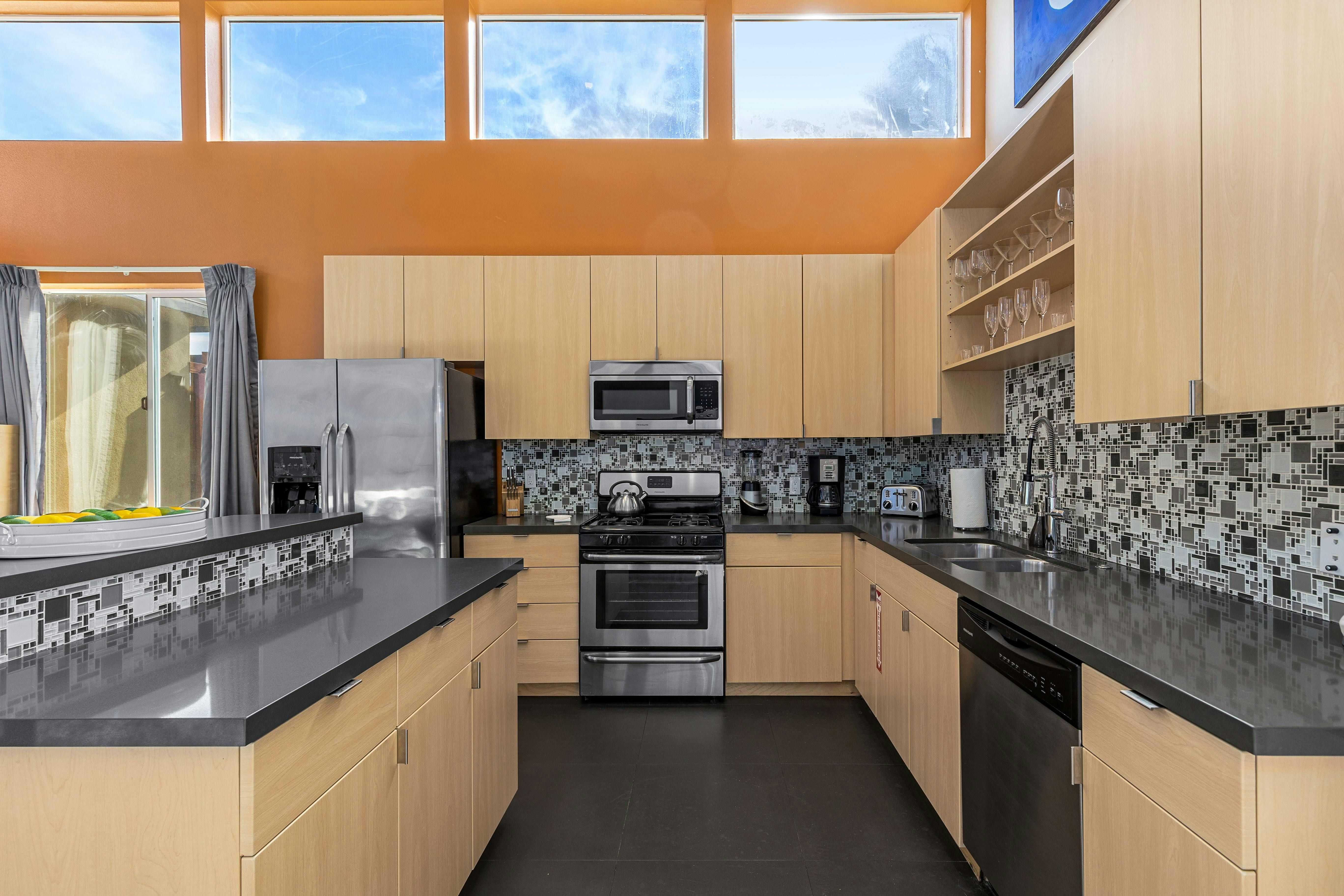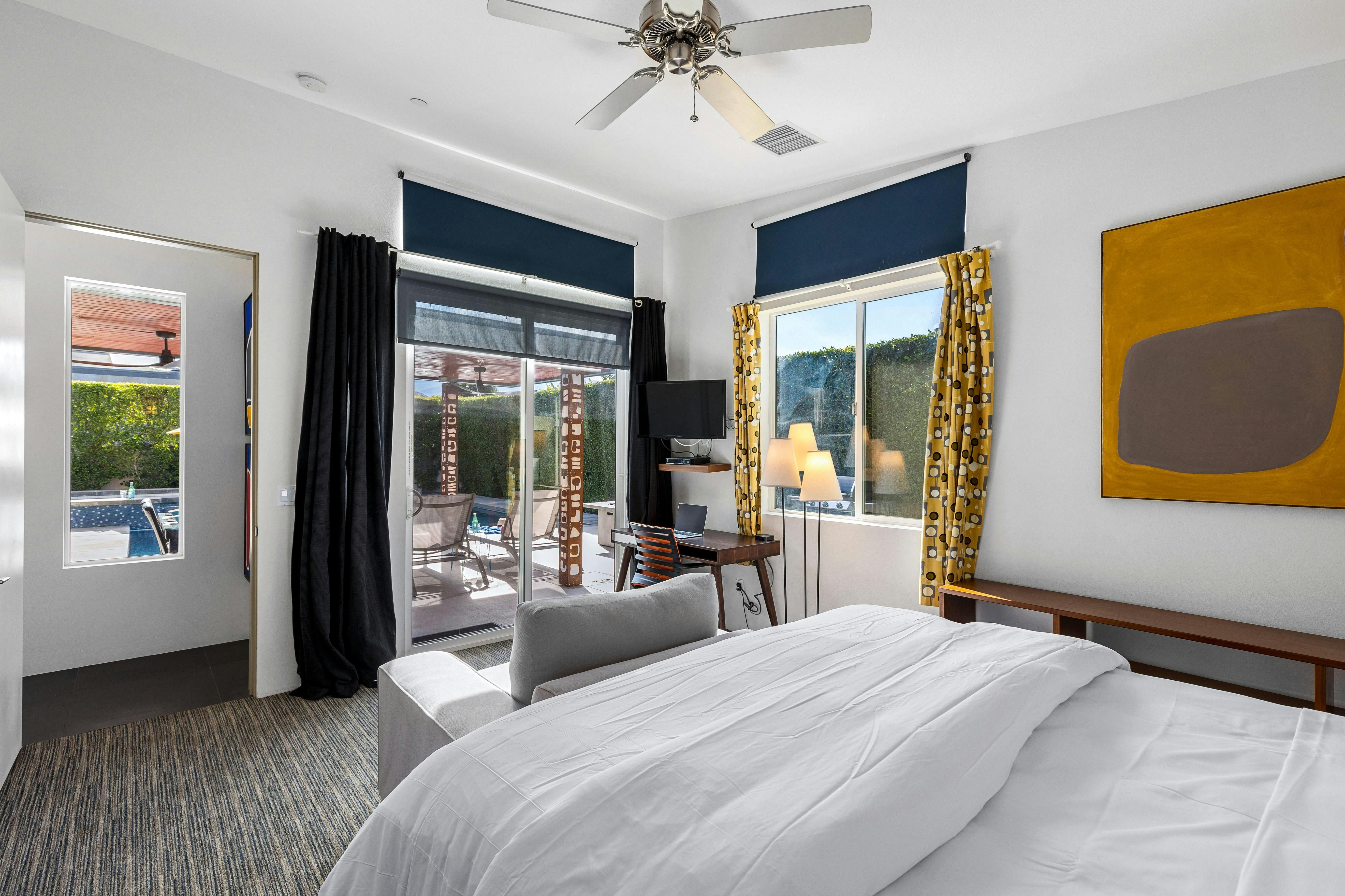 Escape to the desert’s endless sunshine when you stay at this colourful home in Palm Springs. The sunny patio and pool set the scene for lazy days, while the breezy, open-plan living area has lots of space for reclining and dining. Each of the bedrooms has its own en-suite, which is great for group getaways, and you’ll love gathering around the firepit after dark for s’mores and stargazing. You’ll also love the location – close to culture, coffee spots, and cocktail bars in downtown Palm Springs, yet nicely nestled in a residential neighbourhood. Whether you’re hitting the hiking trails or savouring a spa day (and sampling the hot springs that gave the city its name), this is a super spot to call home.