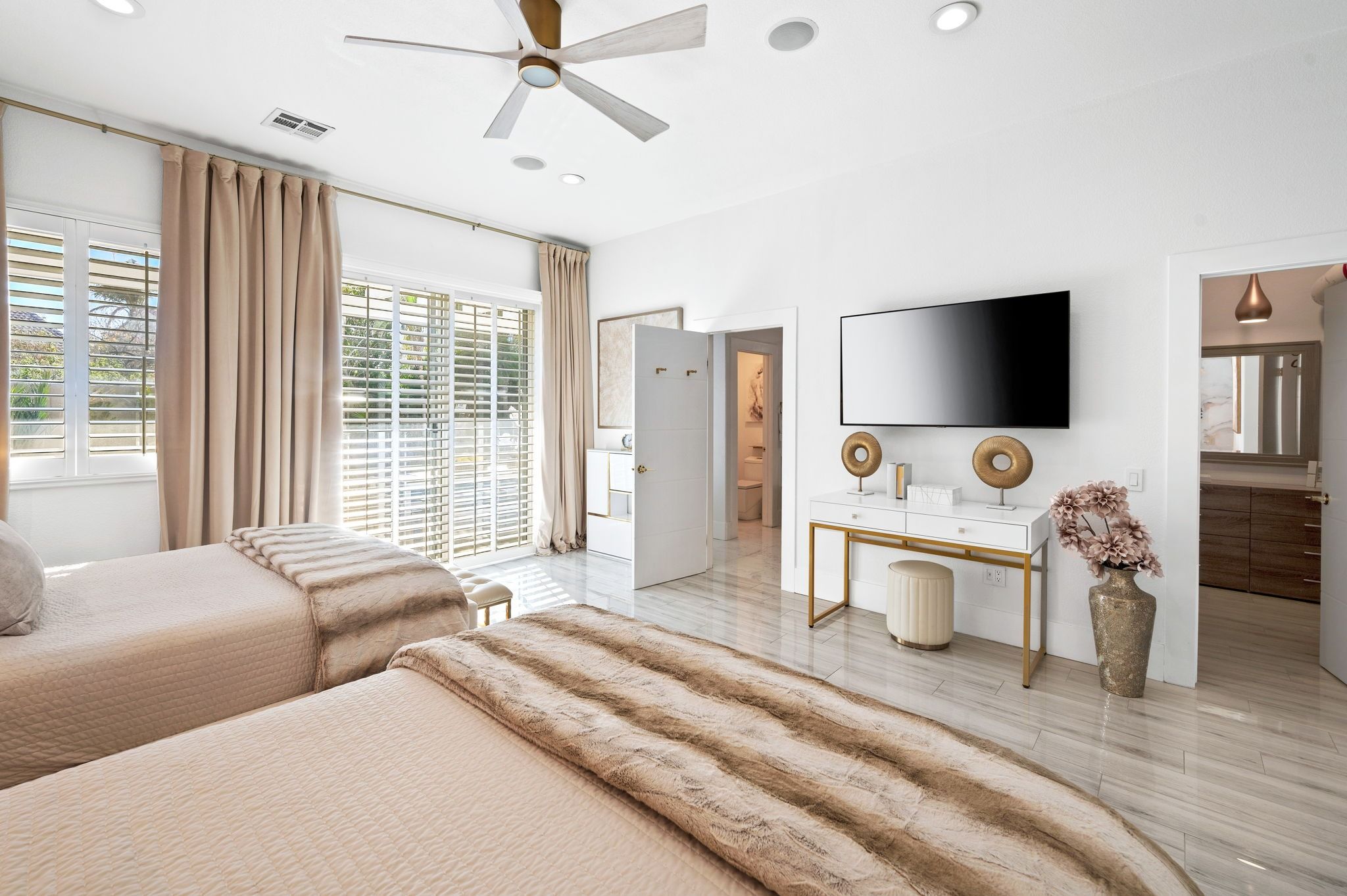 Live the good life when you stay at this stylish home, which is in a great spot not far from downtown Palm Springs. From the secluded backyard with its pool and spacious patio, to little perks like the cinema and games room, it makes a great base for a family holiday or group getaway with friends. Each room features plush furnishings and deluxe details, creating a space that feels elegant and inviting. You might not want to leave, but when you do venture out, you’ll find shops, bars, and restaurants a short drive away, against a backdrop of the city’s much-loved mid-century modern architecture. A real desert delight.