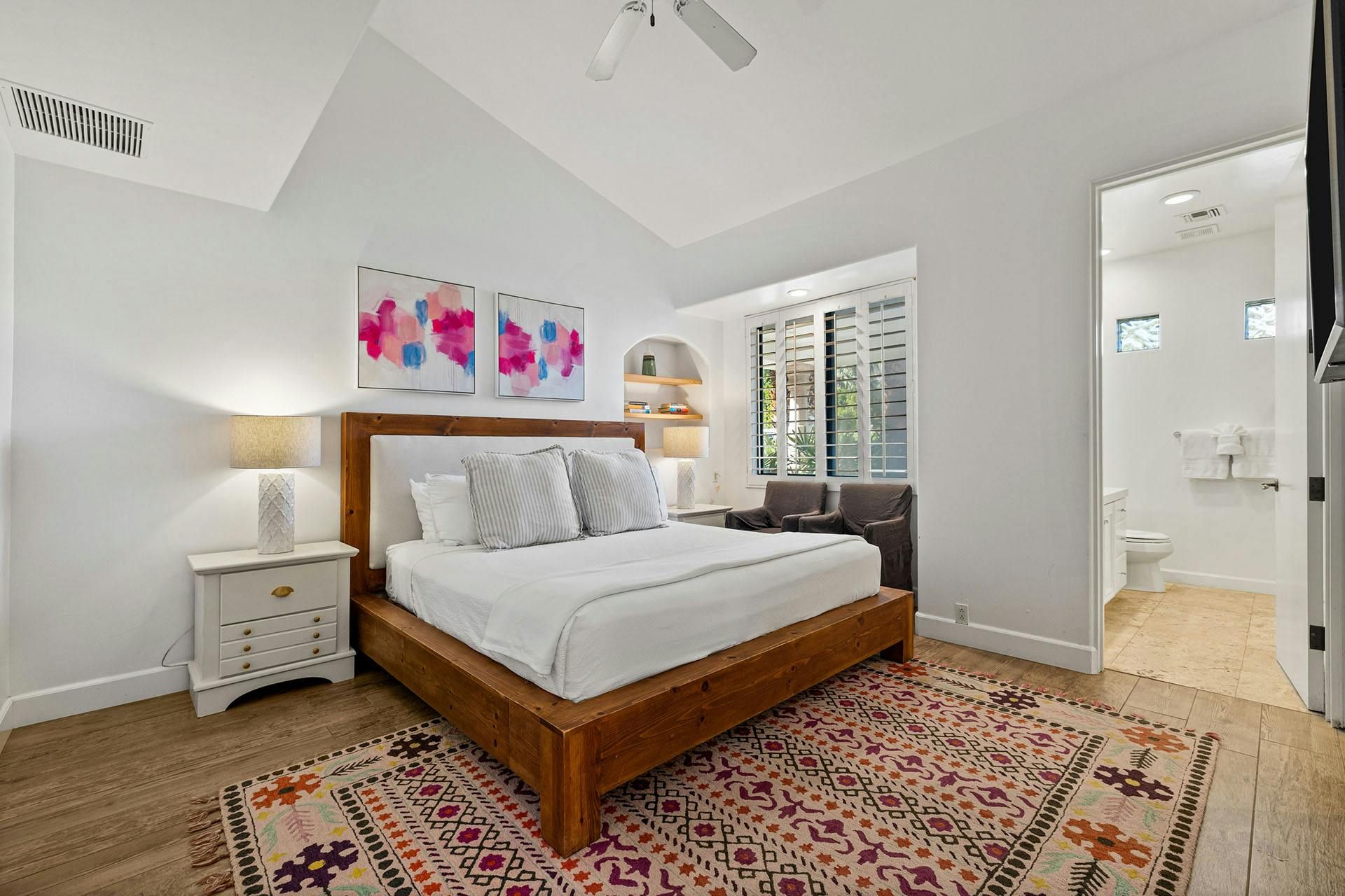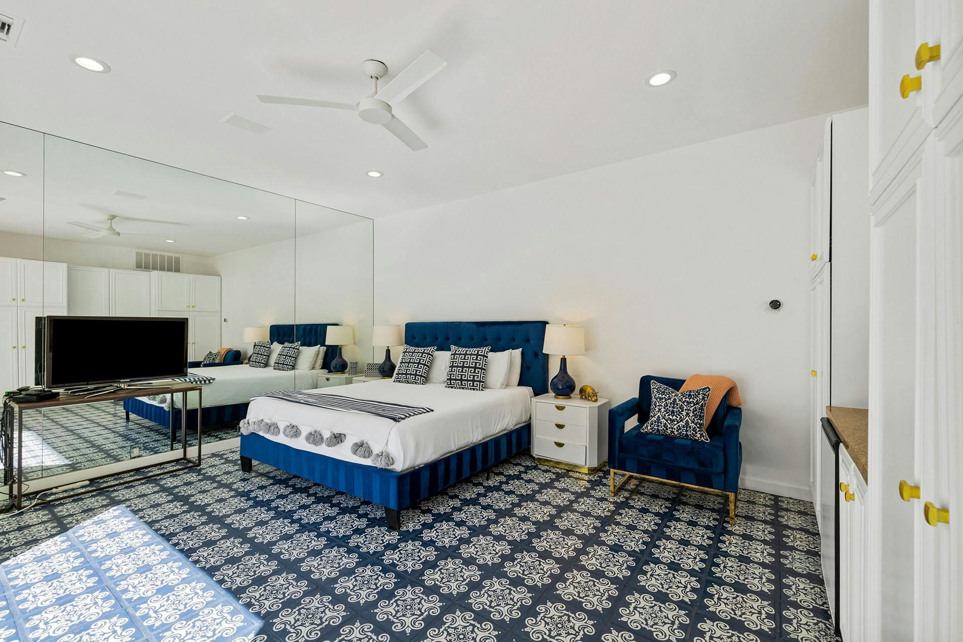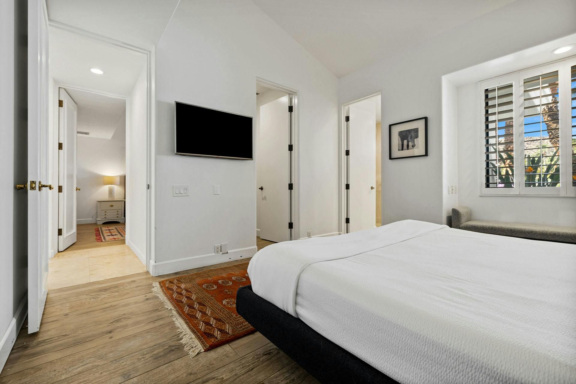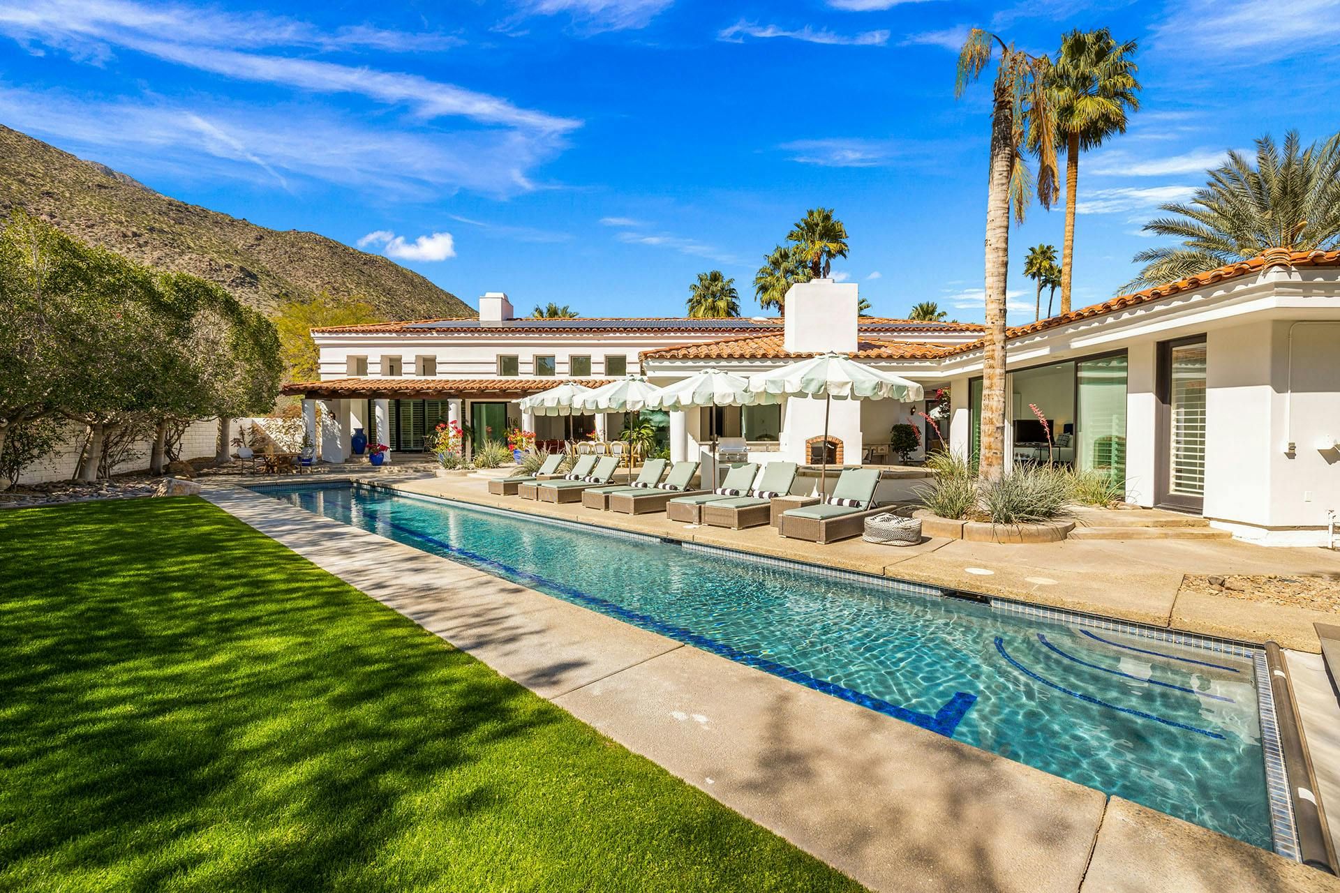 Bask in desert luxury at this serene villa in Palm Springs’ historic Mesa neighbourhood. Walled and gated for complete privacy, the resort-style yard is the real showstopper – think a sparkling lap pool, separate spa, and an outdoor living room with a fireplace framed by mountain views. Inside, walls of glass flood the open-plan living spaces with light, while the chef’s kitchen and multiple lounges make group gatherings effortless. With five king-size bedrooms, including a separate casita suite, there’s plenty of space to unwind and seek some privacy too. Peaceful yet close to Palm Canyon Drive, it’s an ideal base for a relaxed Palm Springs escape.