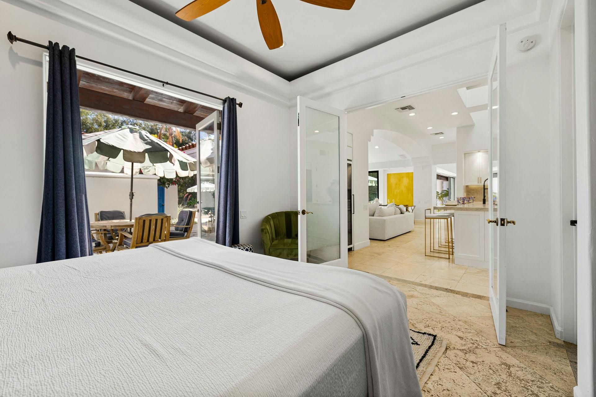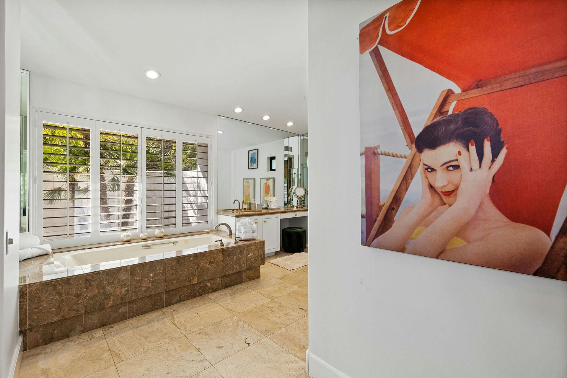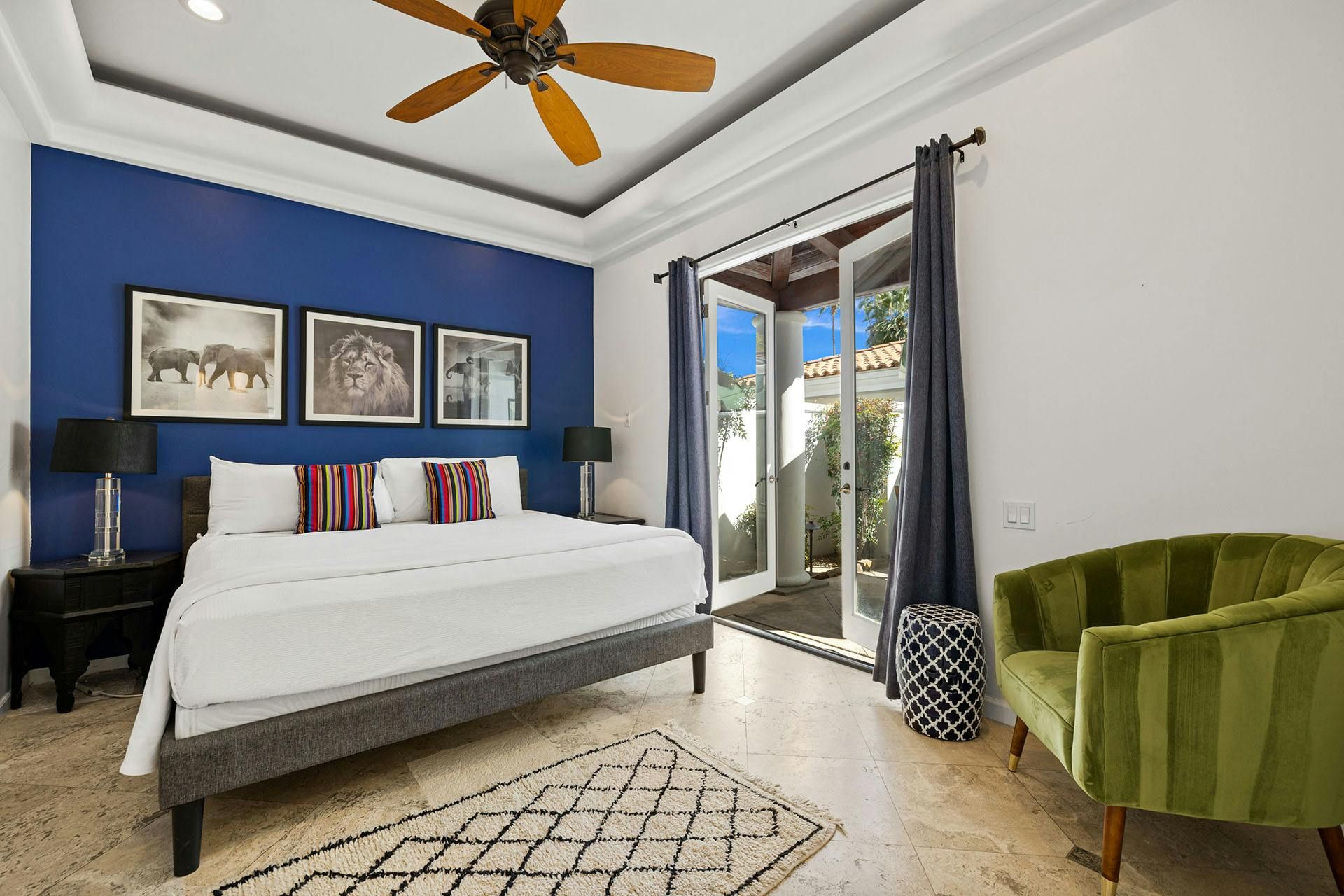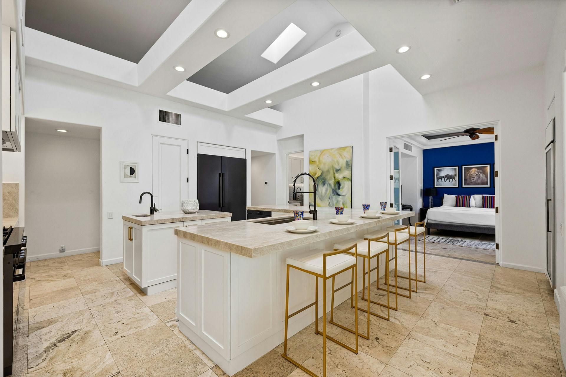 Bask in desert luxury at this serene villa in Palm Springs’ historic Mesa neighbourhood. Walled and gated for complete privacy, the resort-style yard is the real showstopper – think a sparkling lap pool, separate spa, and an outdoor living room with a fireplace framed by mountain views. Inside, walls of glass flood the open-plan living spaces with light, while the chef’s kitchen and multiple lounges make group gatherings effortless. With five king-size bedrooms, including a separate casita suite, there’s plenty of space to unwind and seek some privacy too. Peaceful yet close to Palm Canyon Drive, it’s an ideal base for a relaxed Palm Springs escape.