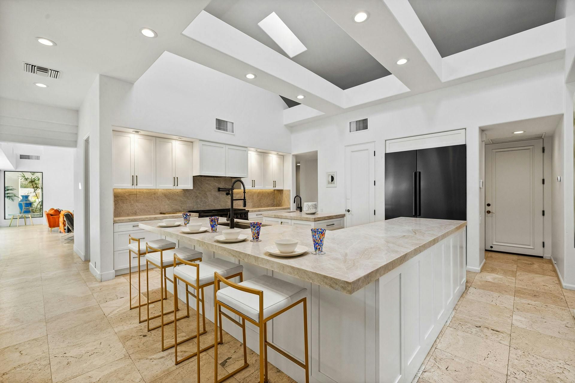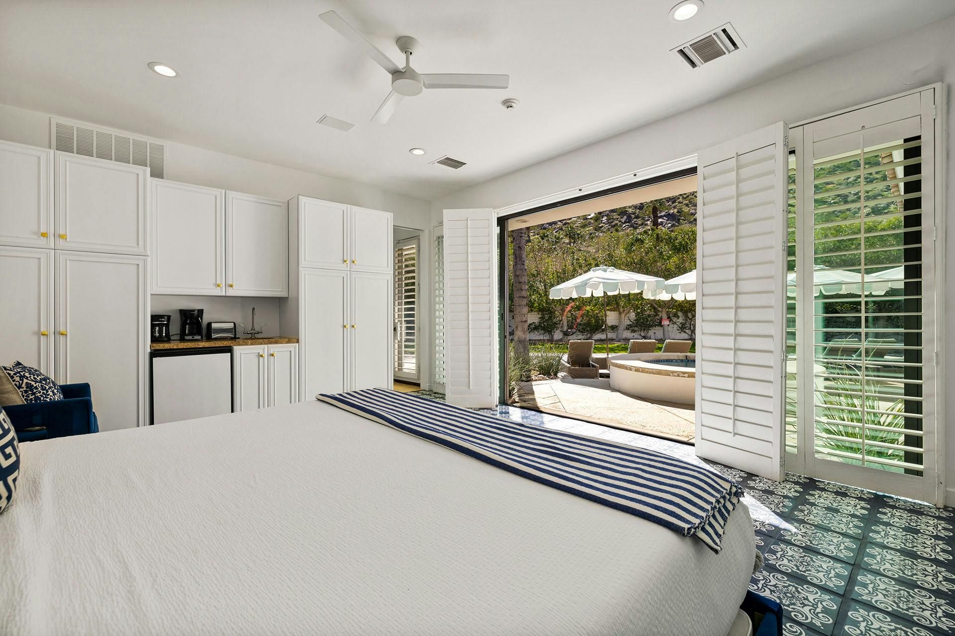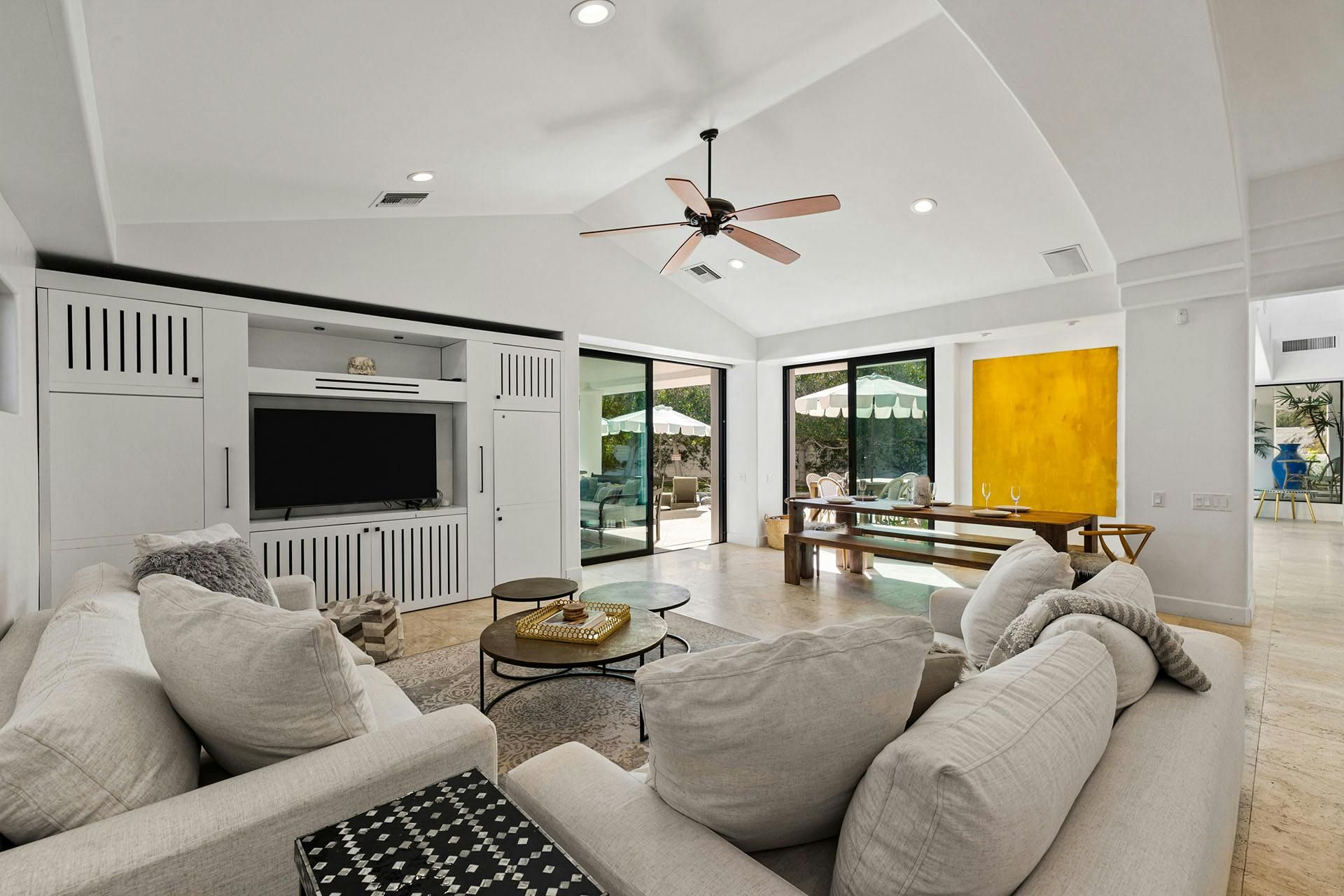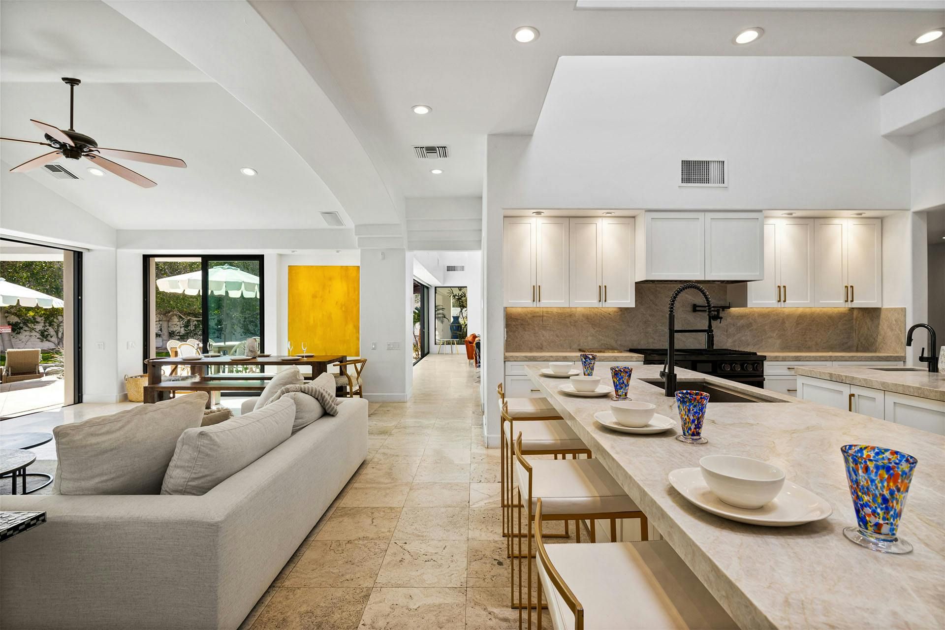 Bask in desert luxury at this serene villa in Palm Springs’ historic Mesa neighbourhood. Walled and gated for complete privacy, the resort-style yard is the real showstopper – think a sparkling lap pool, separate spa, and an outdoor living room with a fireplace framed by mountain views. Inside, walls of glass flood the open-plan living spaces with light, while the chef’s kitchen and multiple lounges make group gatherings effortless. With five king-size bedrooms, including a separate casita suite, there’s plenty of space to unwind and seek some privacy too. Peaceful yet close to Palm Canyon Drive, it’s an ideal base for a relaxed Palm Springs escape.