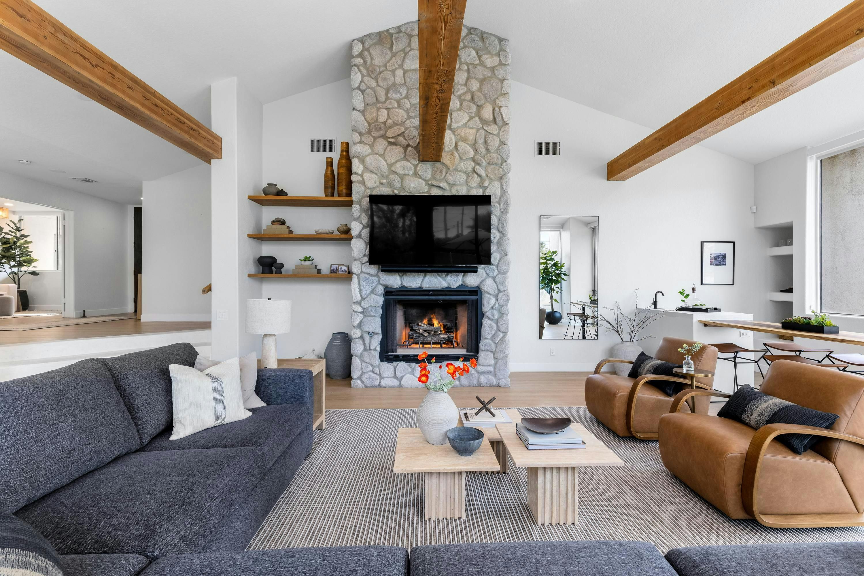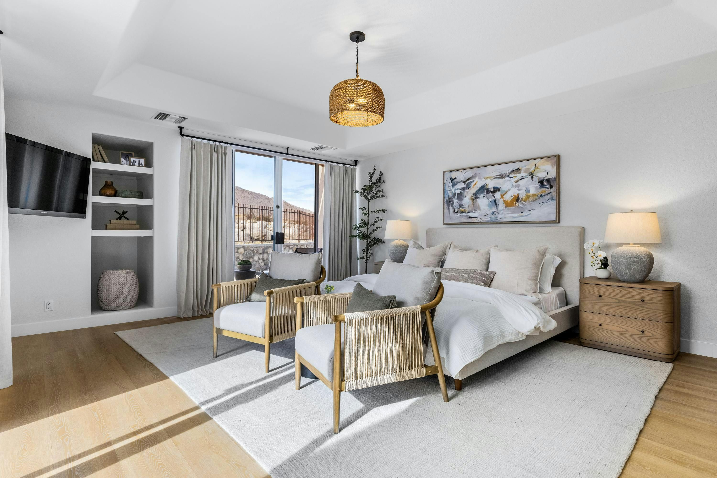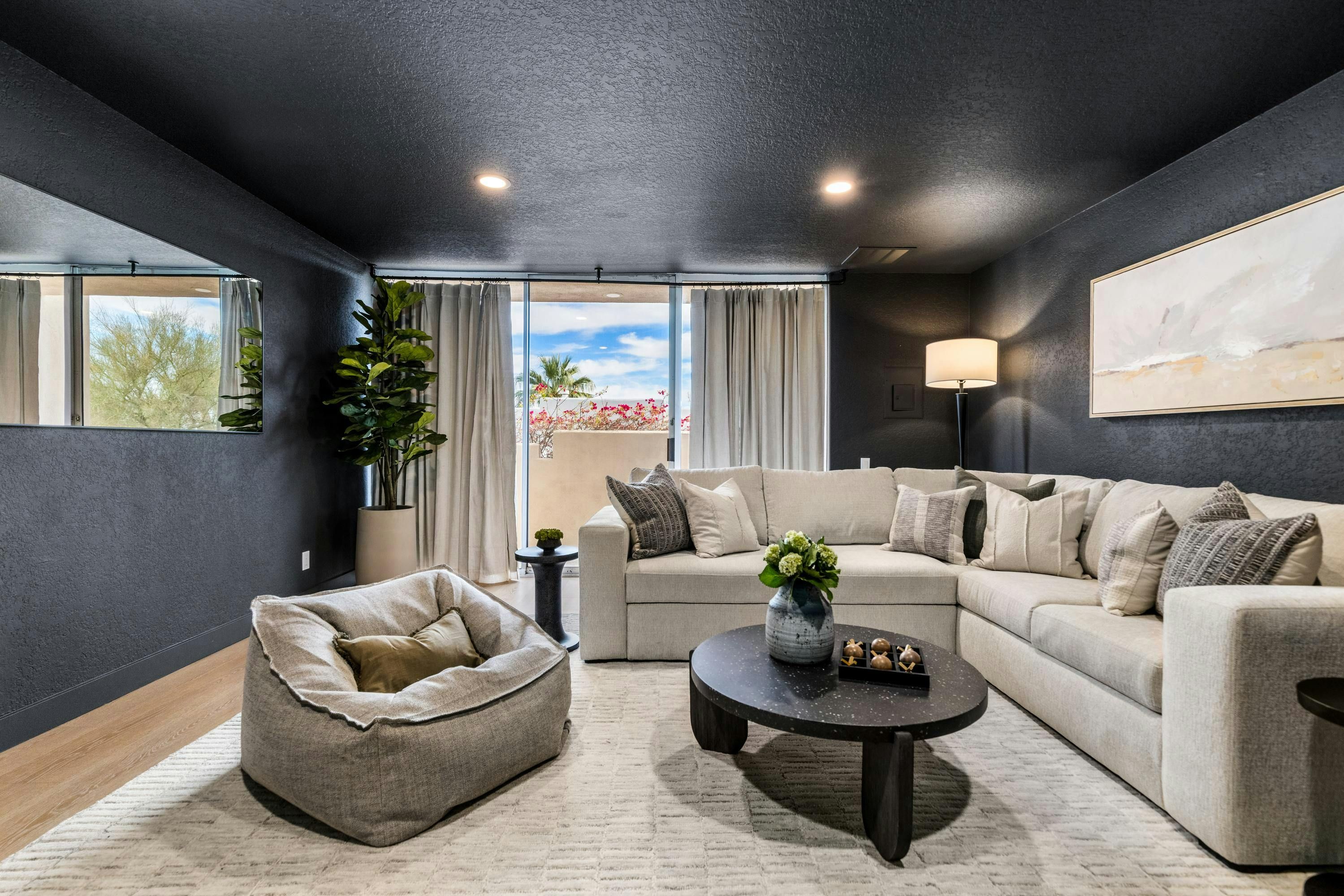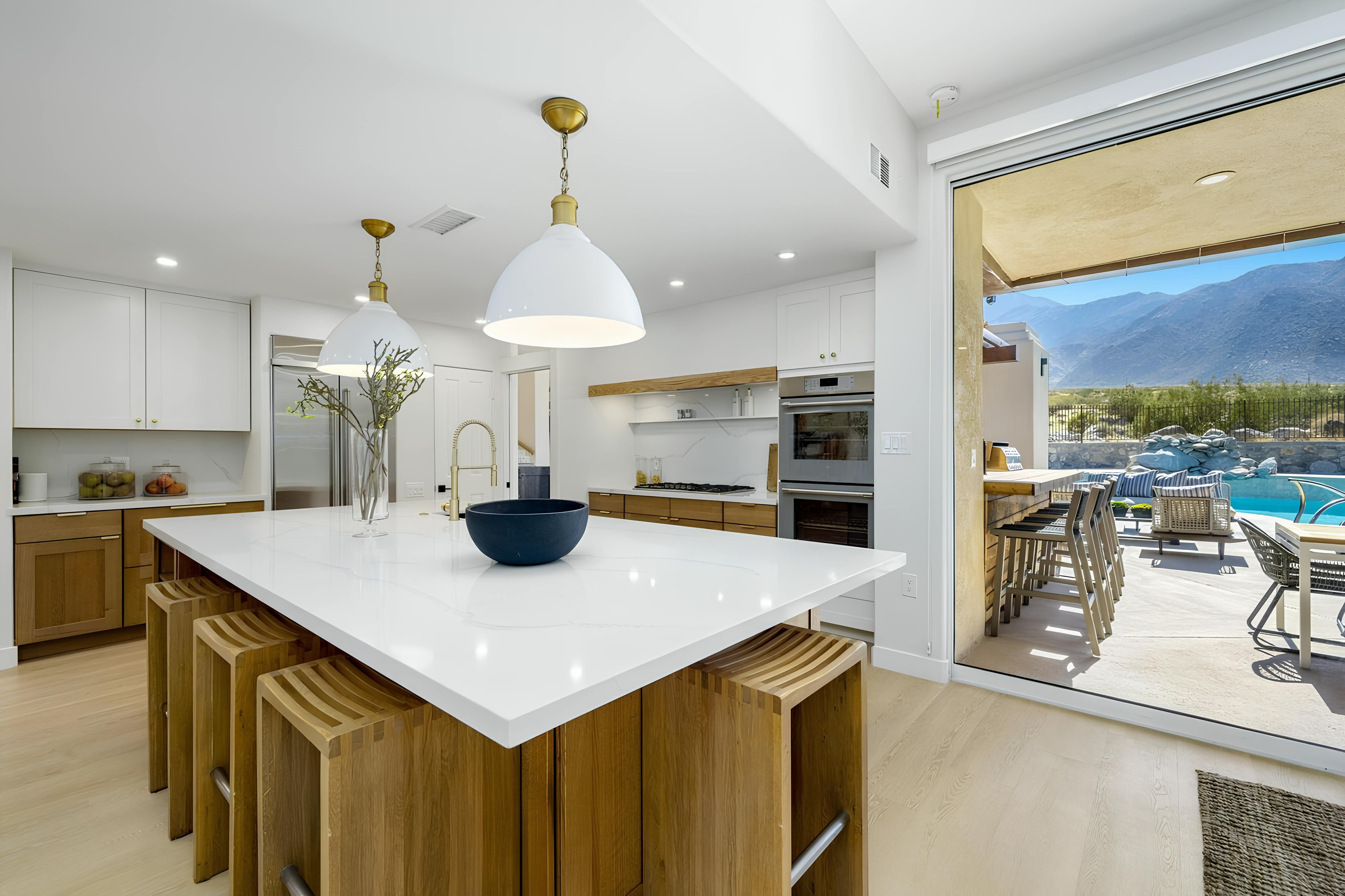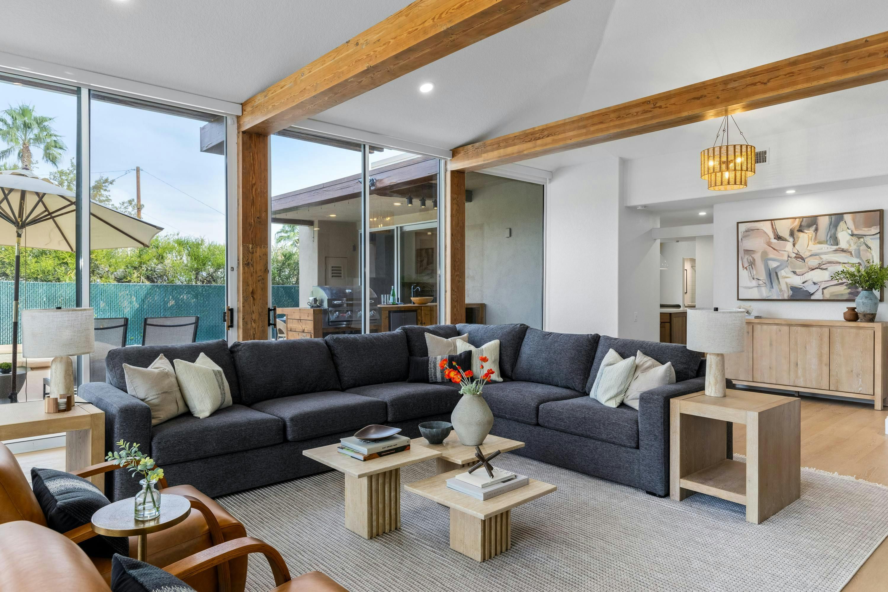 Step outside of this luxury mid-century modern home to discover a serene paradise. Framed by mountain views, there’s a pool, bar and hot tub. Listen to the soothing sound of the waterfall, or in the evening, gather around the fire pit under the desert stars. The home is split between the main villa and a separate casita, so this place is perfect for families and friends. There are several lounge areas to relax in, and there’s an office that sleeps two guests on a sofa bed. The location is impressive too. This home is situated in Little Tuscany, a picturesque and sought-after neighbourhood. It’s a short drive from vibrant downtown Palm Springs, with its world-class dining, boutiques, and cultural attractions.