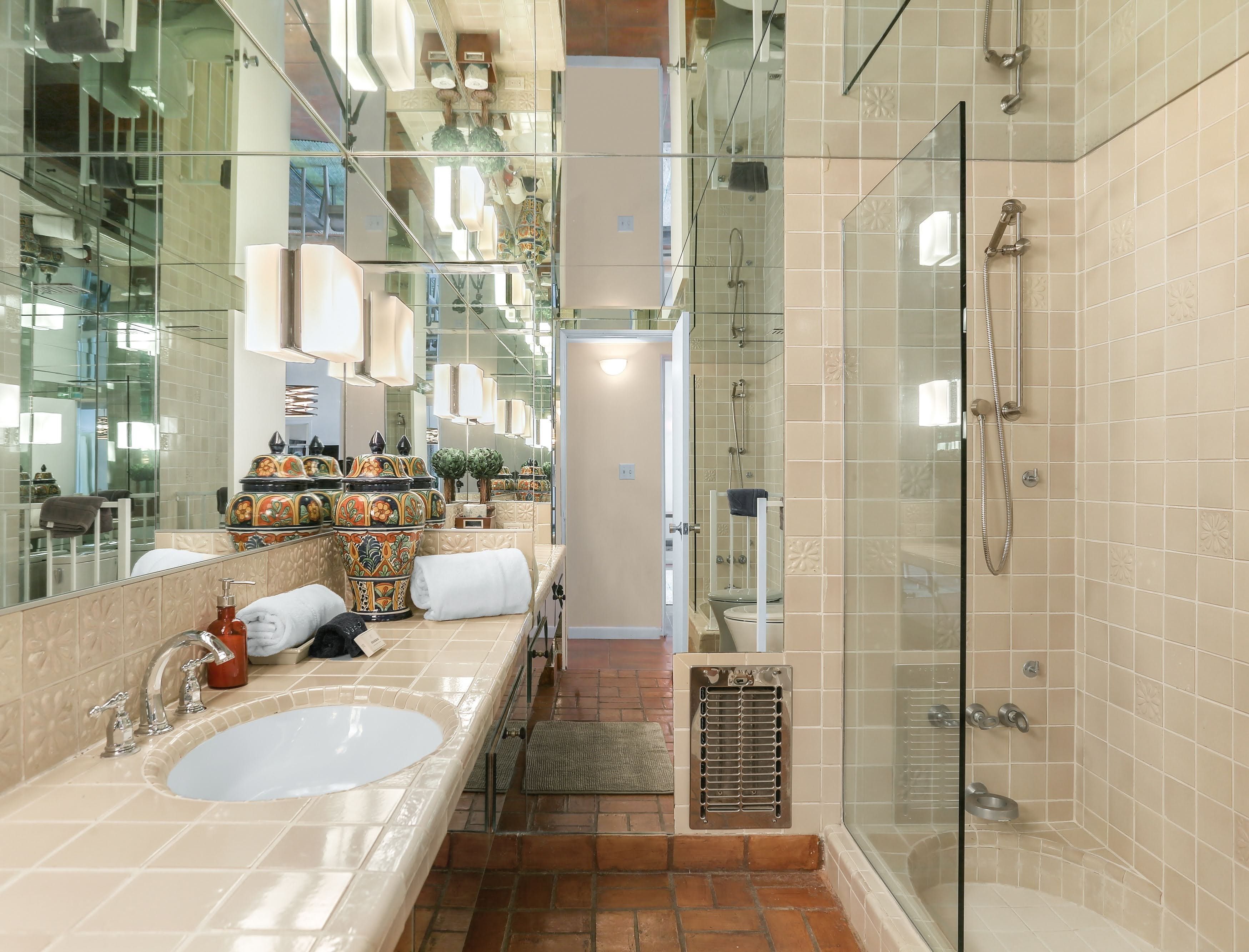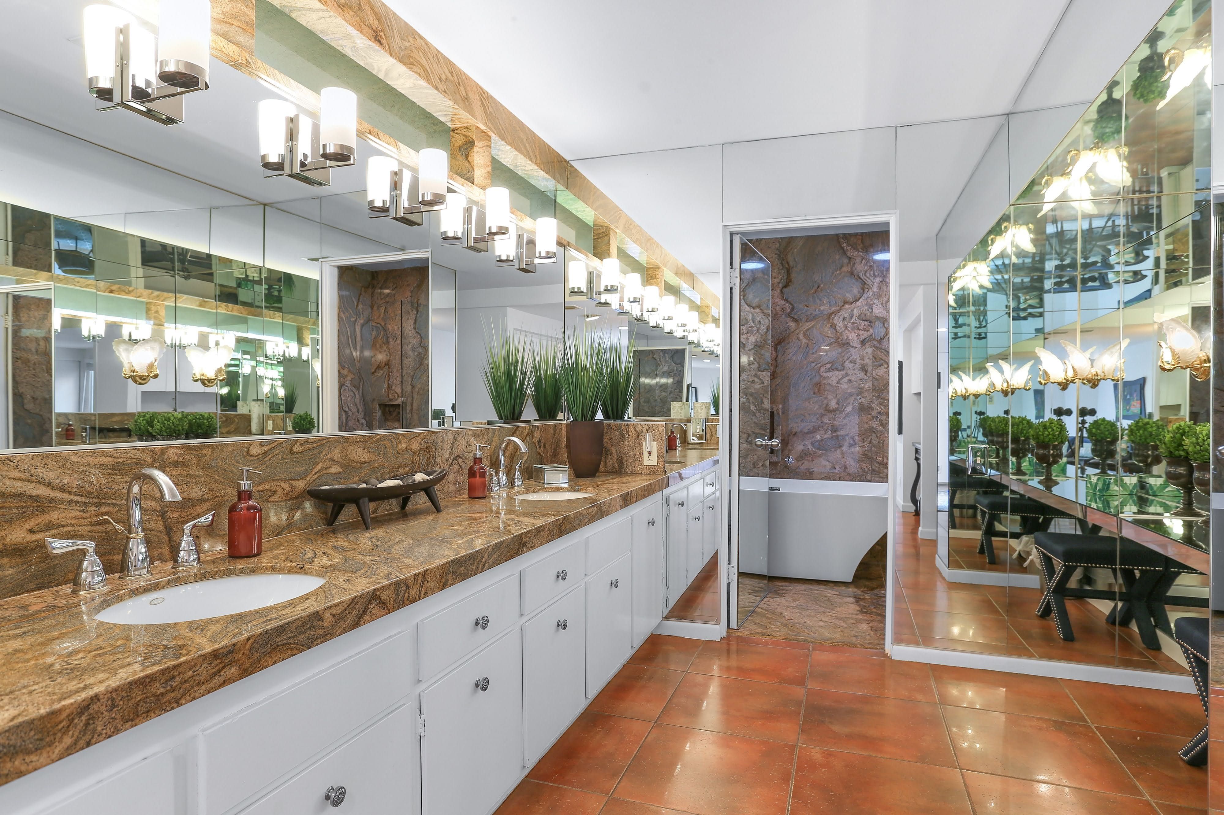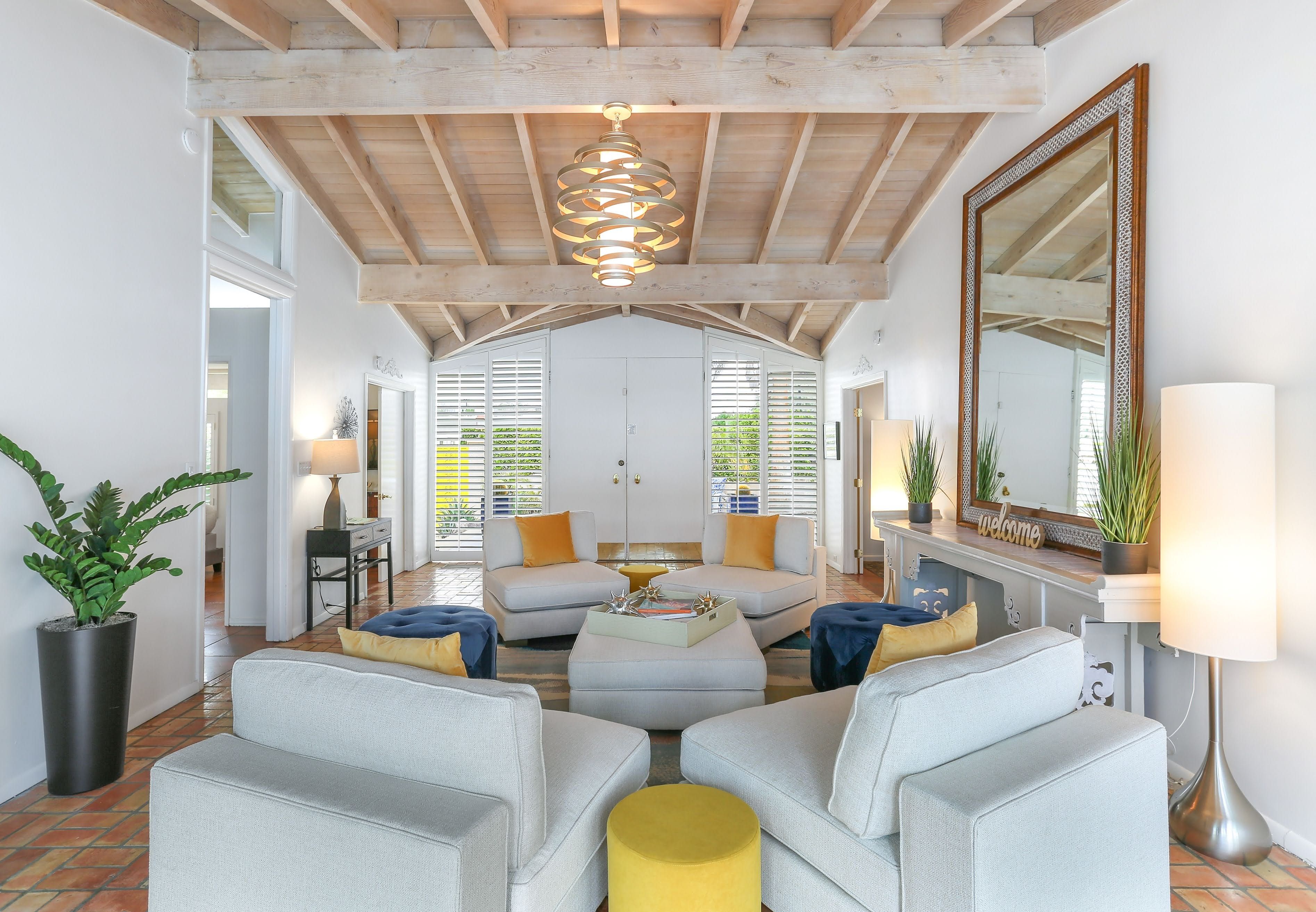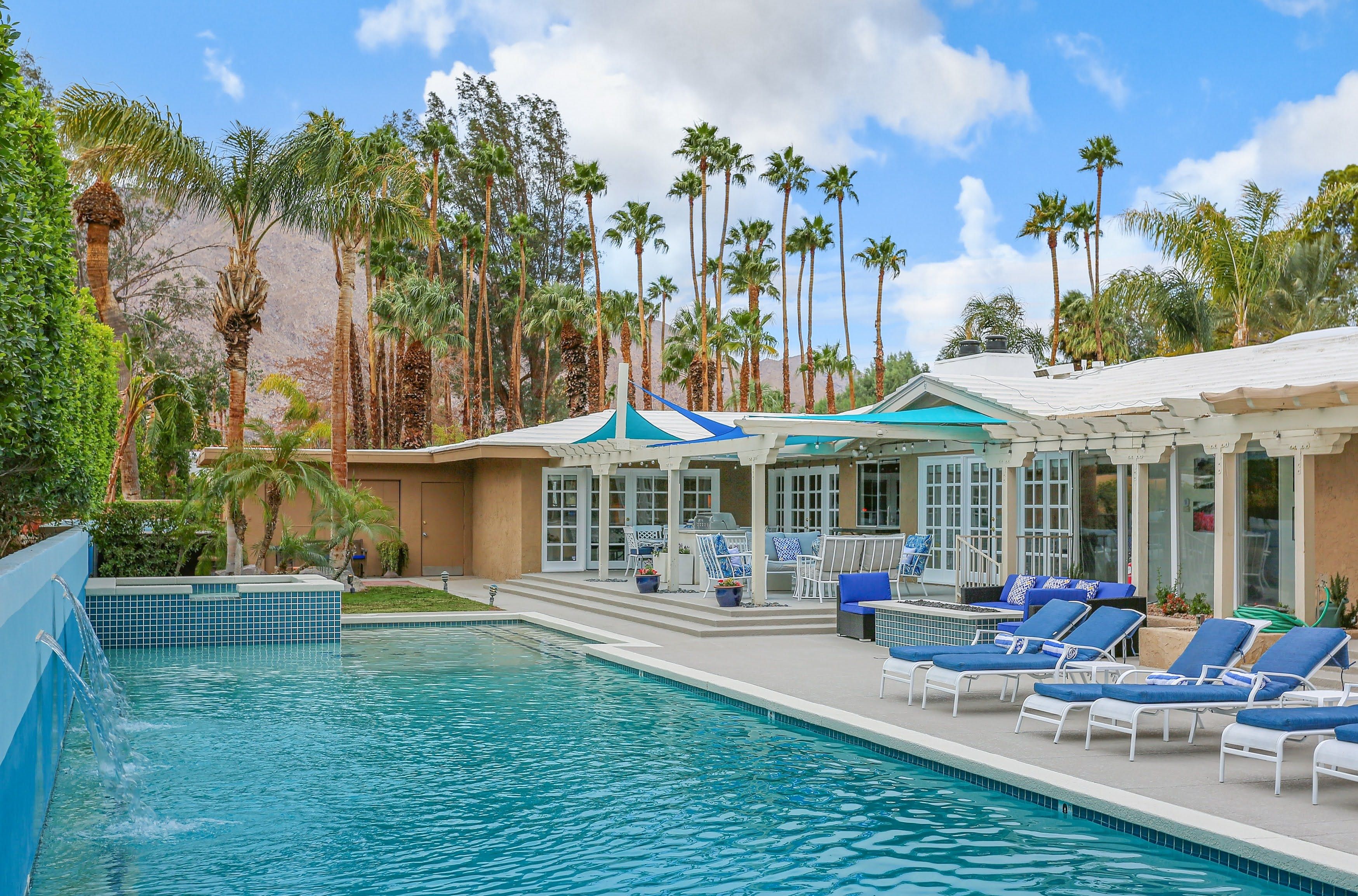 Unleash your inner celebrity at this Palm Springs villa. Located in a gated compound, surrounded by palm trees and imposing mountain views, this home boasts an eighty foot pool, private sauna and pickleball court. Inside won’t disappoint either with a tiki bar, formal dining room and plush ensuites all on offer. And you’re in a great spot for exploring the area here. The villa is two blocks from the Palm Springs Aerial Tramway, a rotating tram car that will whisk you along the cliffs to Mt. San Jacinto State Park, and downtown Palm Springs is just a six minute drive away.