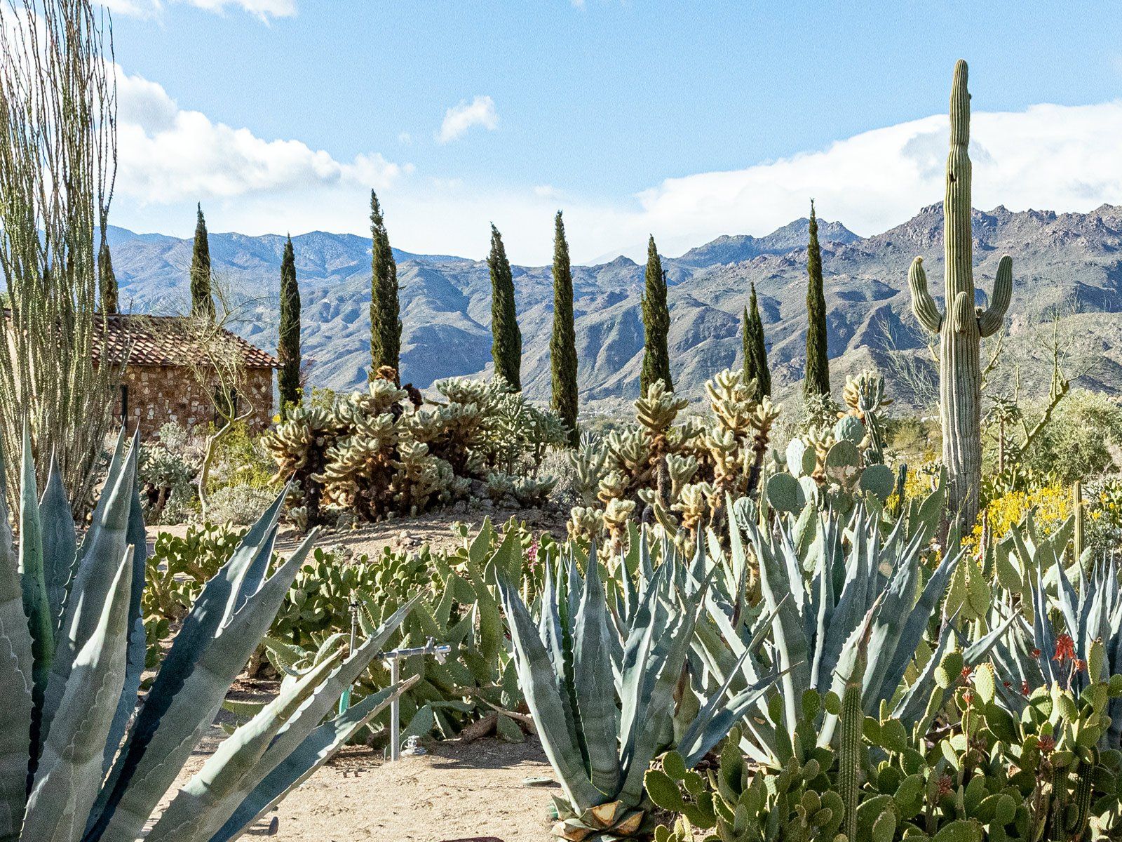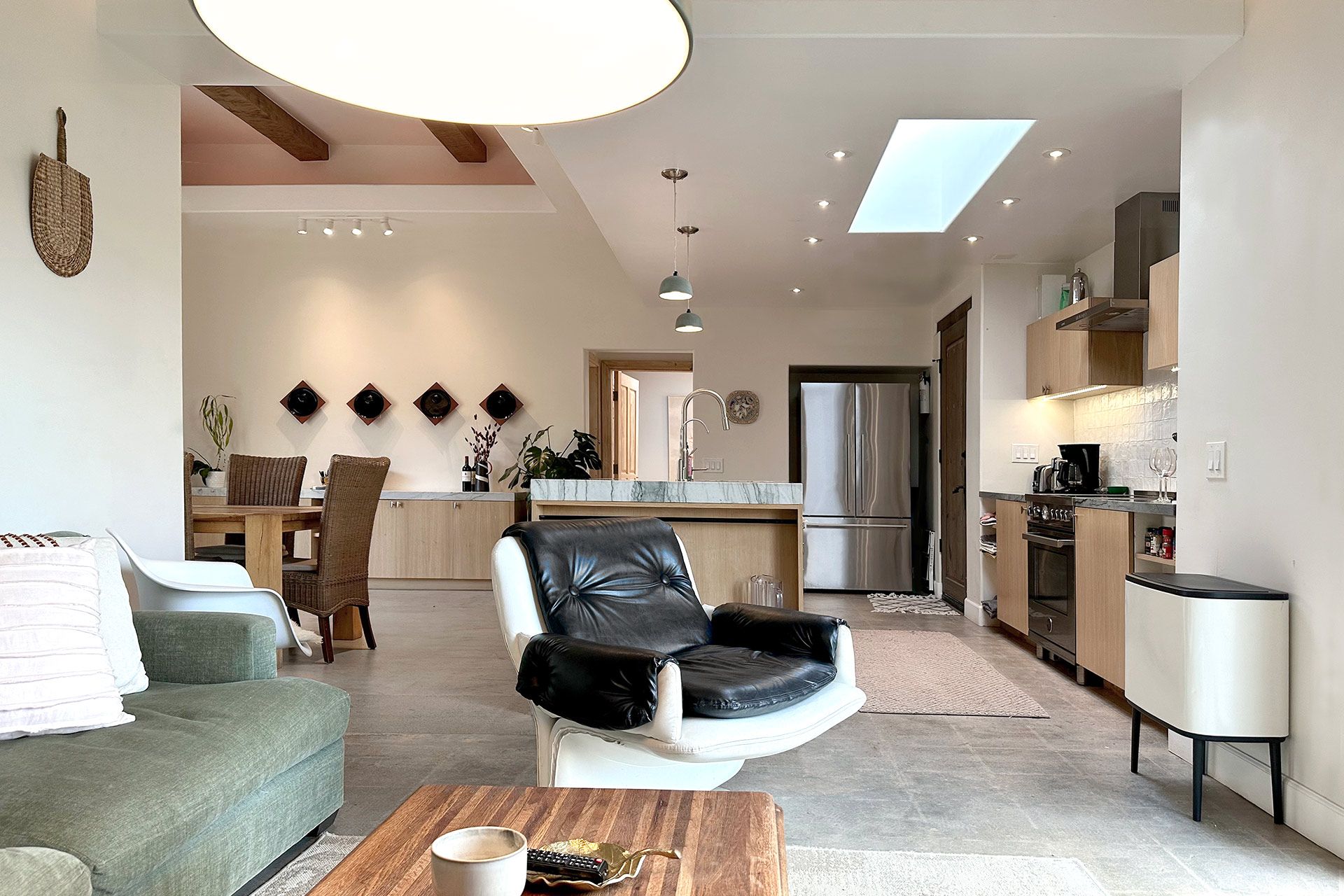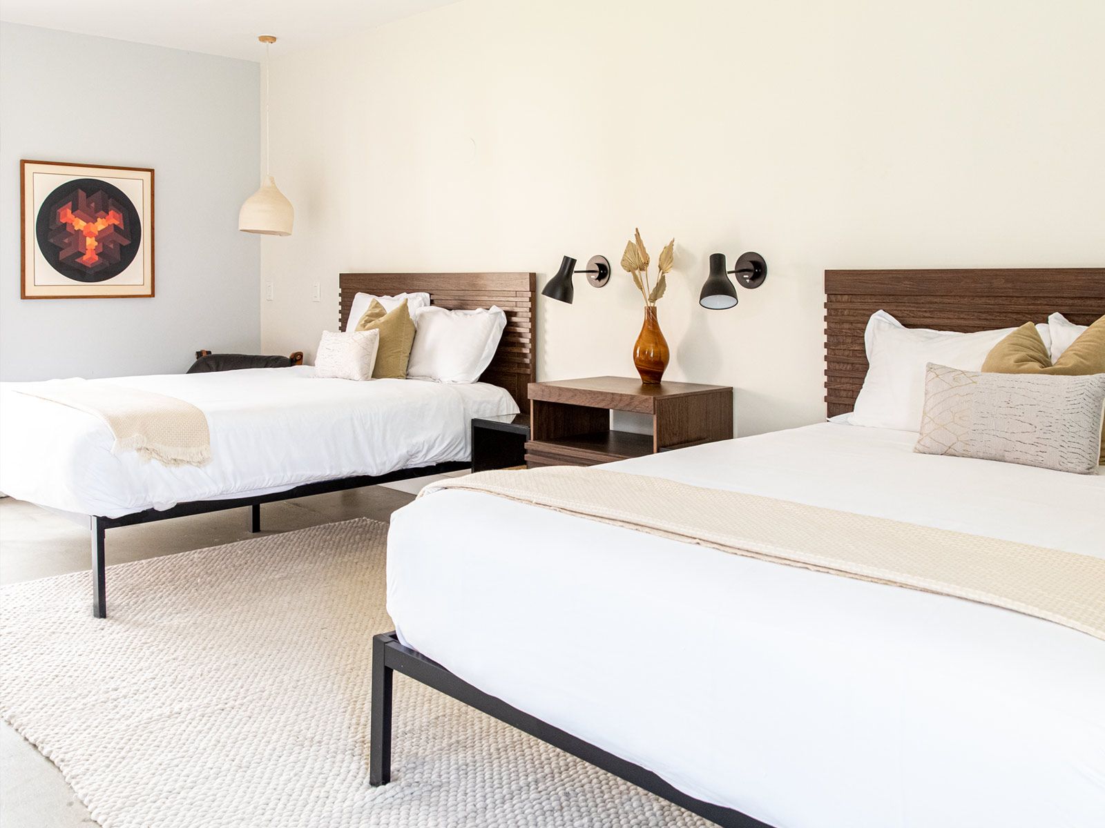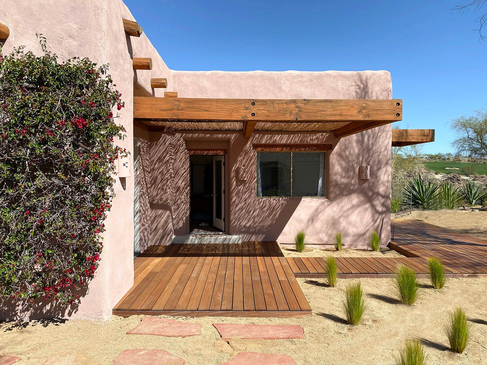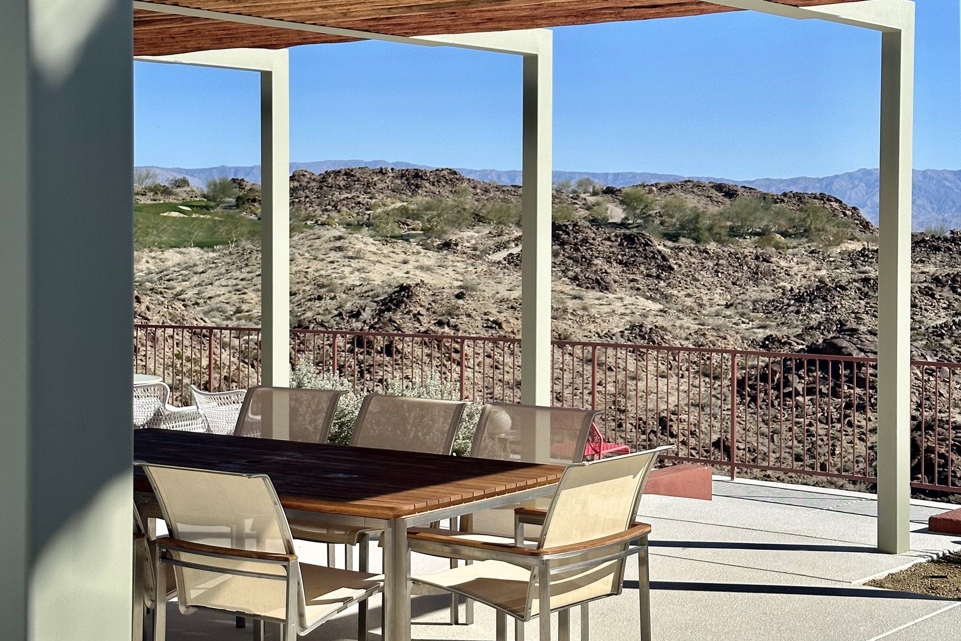 Nestled in the desert, this home doesn't have any neighbours except the cacti and mountains. Two Spanish-style villas make up the property, with a beautiful, turquoise swimming pool tucked in between them. Wander to the bottom of the garden and you'll find a white stone hot tub and sun lounger platform where you can relax and drink in the panoramic mountain views. Hikes through the epic wilderness are easy from here, and your host can organise a massage or yoga class for when you return. Dining can take place indoors or outdoors – you might like to hire a private chef to create a delicious and nutritious meal as you watch the sunset with a cool drink. With no light pollution, the stargazing here is fantastic, but if you'd like a change from the quiet of the desert then the sights and sounds of Palm Springs are just a 10 minute drive away.
