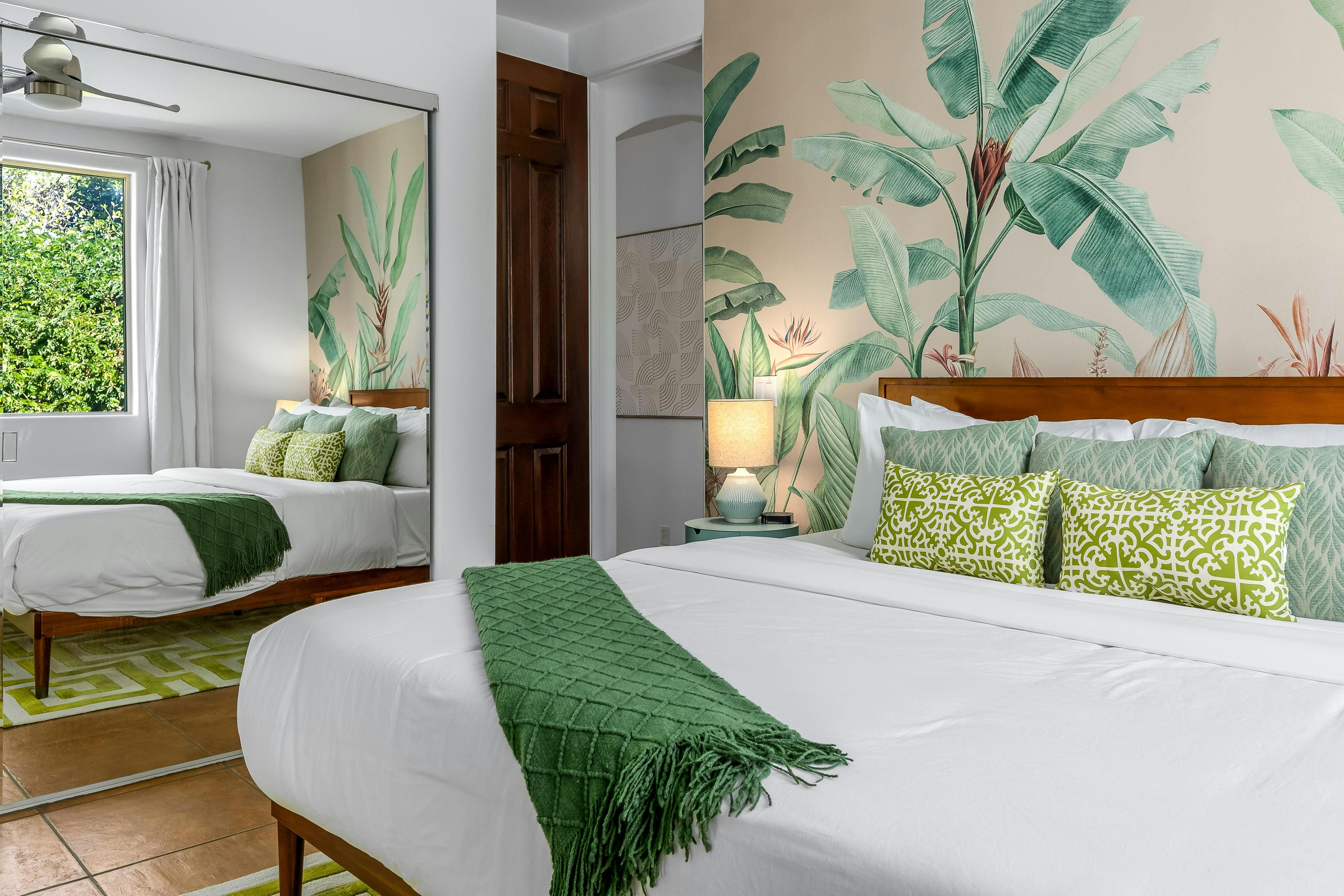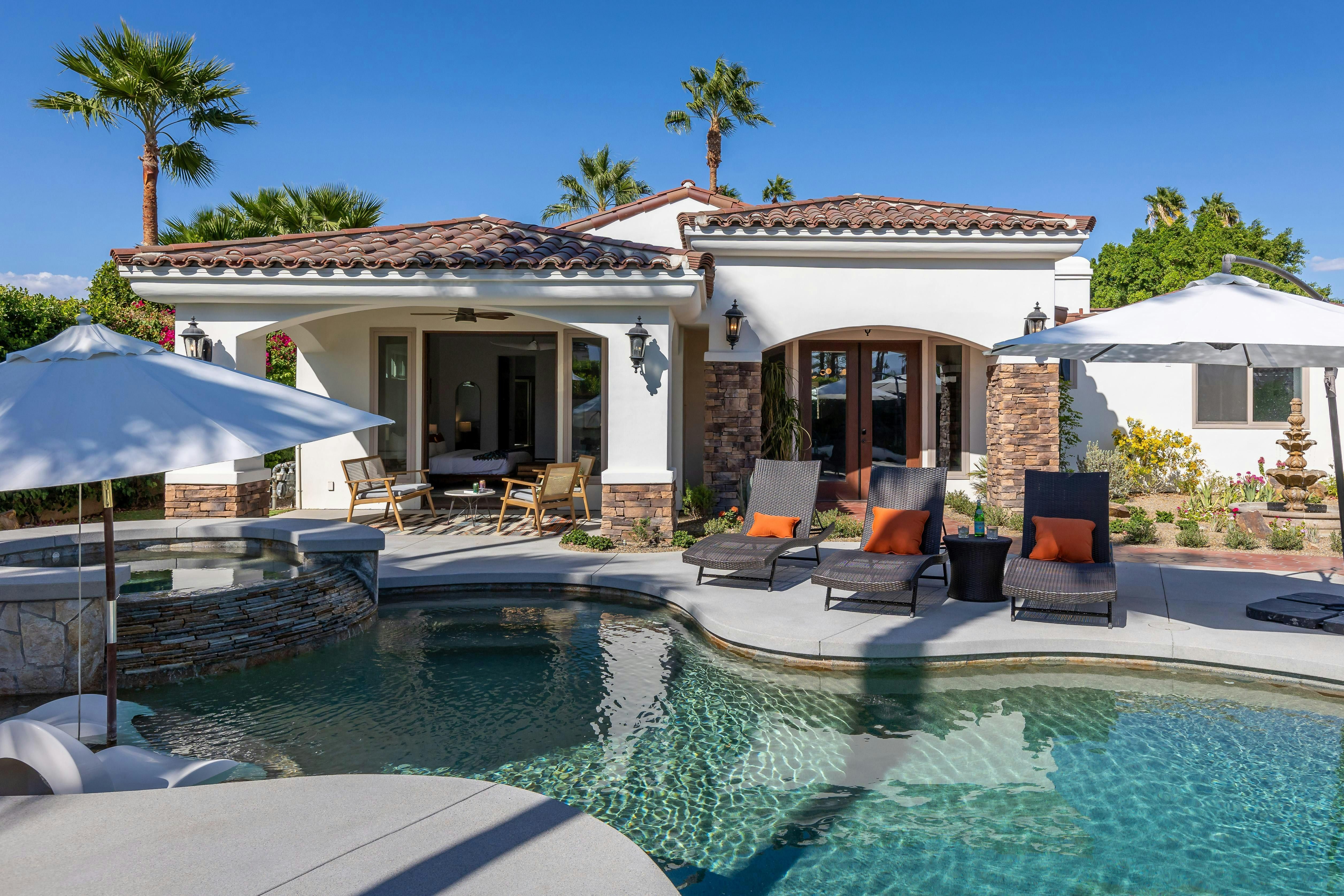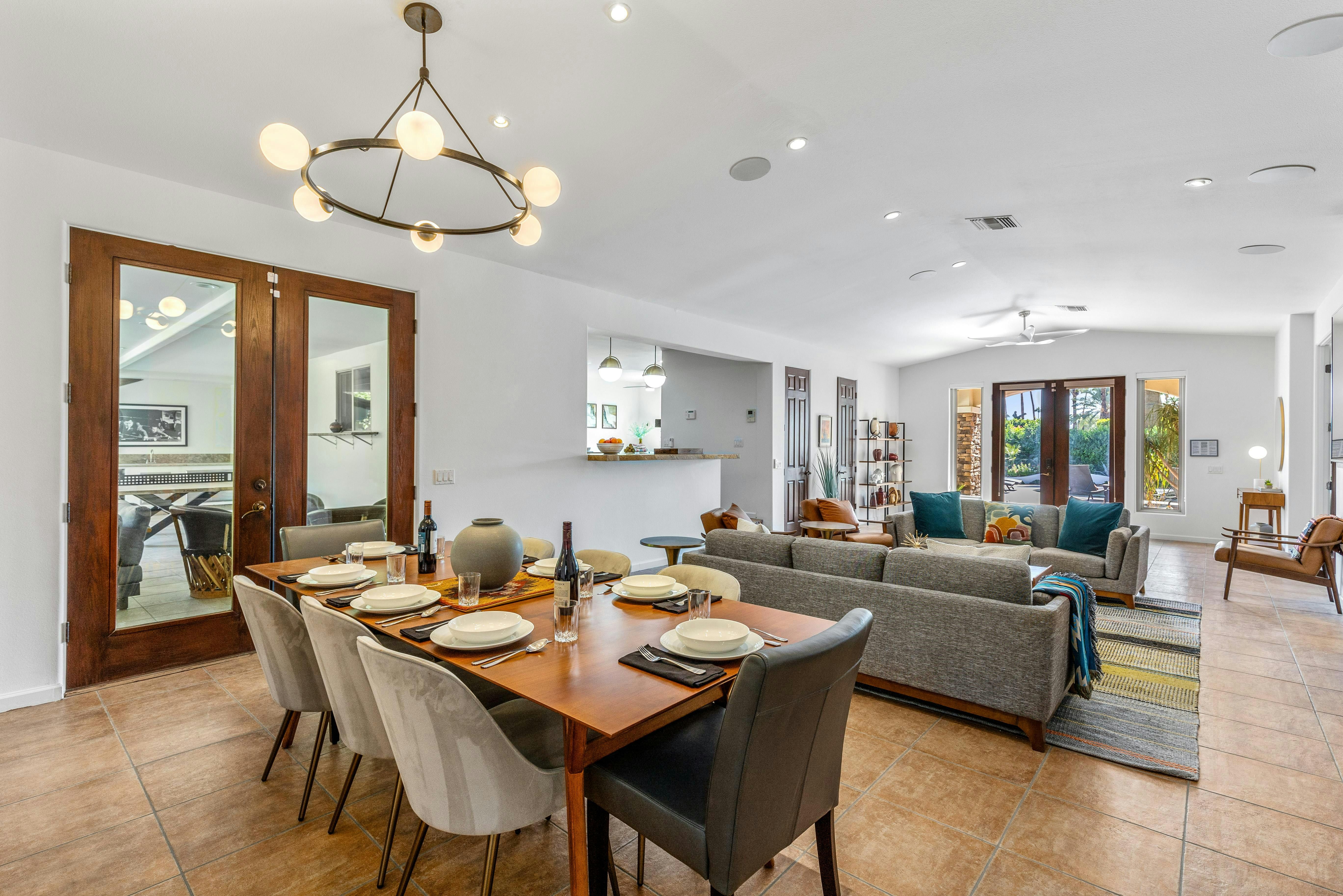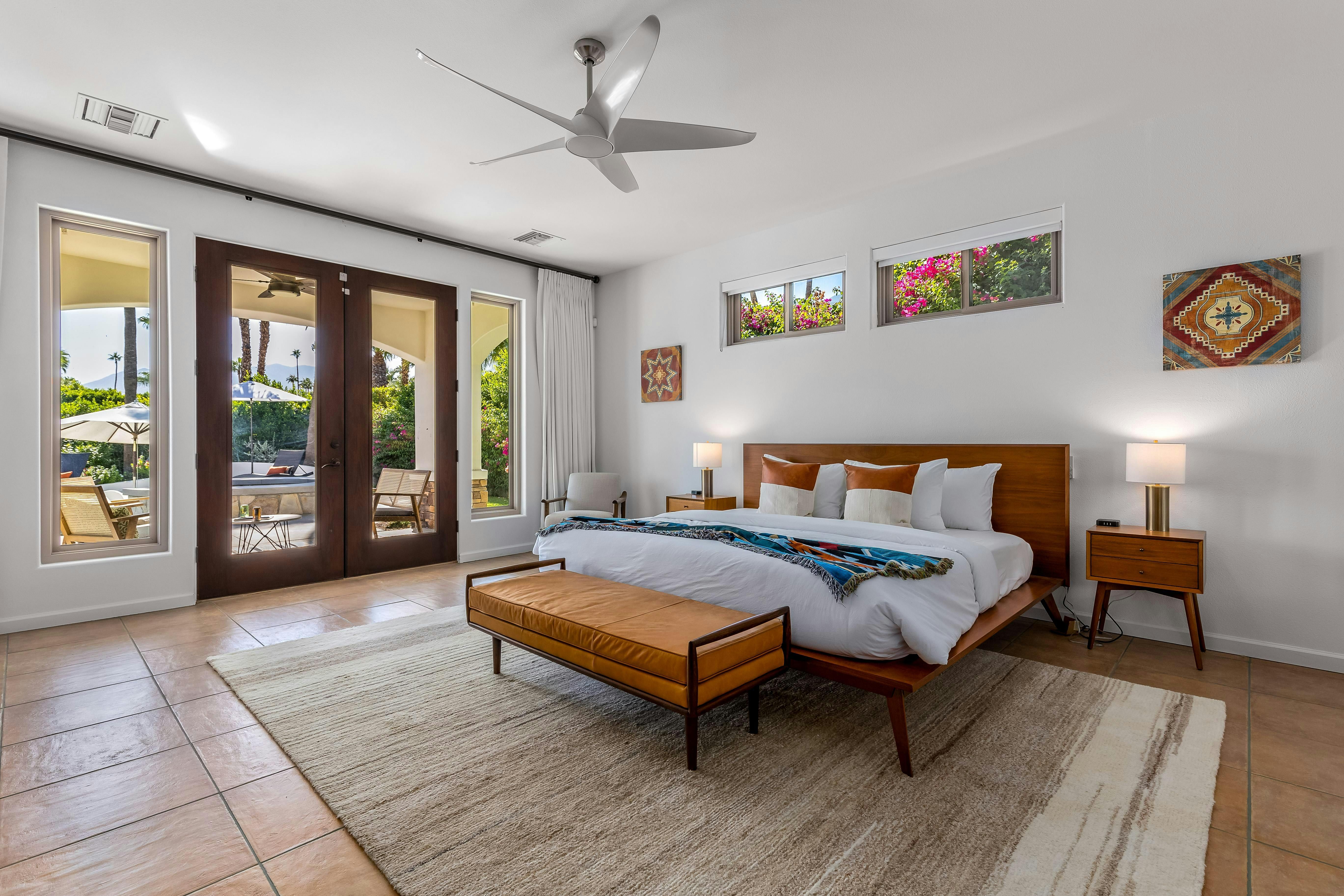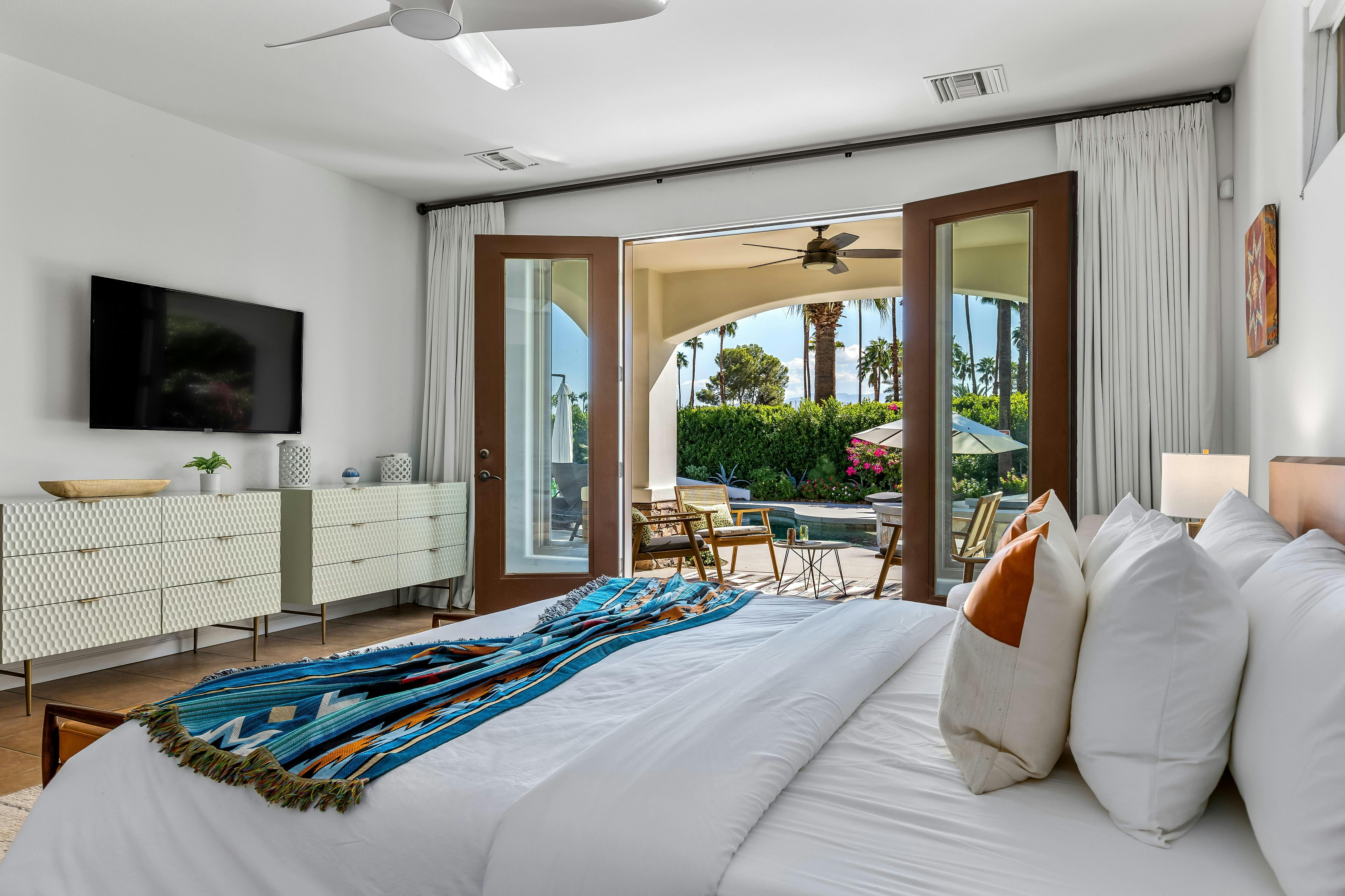 This Palm Springs home in the exclusive El Mirador neighbourhood is made for relaxed desert living. The outdoor space is the star. Think palm trees, mountain views, a pool with loungers, and a shaded lounge with a big sofa and TV. There’s also a games area and barbecue for laid-back evenings under the stars. The main bedroom leads onto the pool for morning swims, while an additional annexe has its own kitchenette and workspace. You’ll need a car, but everything from restaurants to hiking trails are just a short drive away.