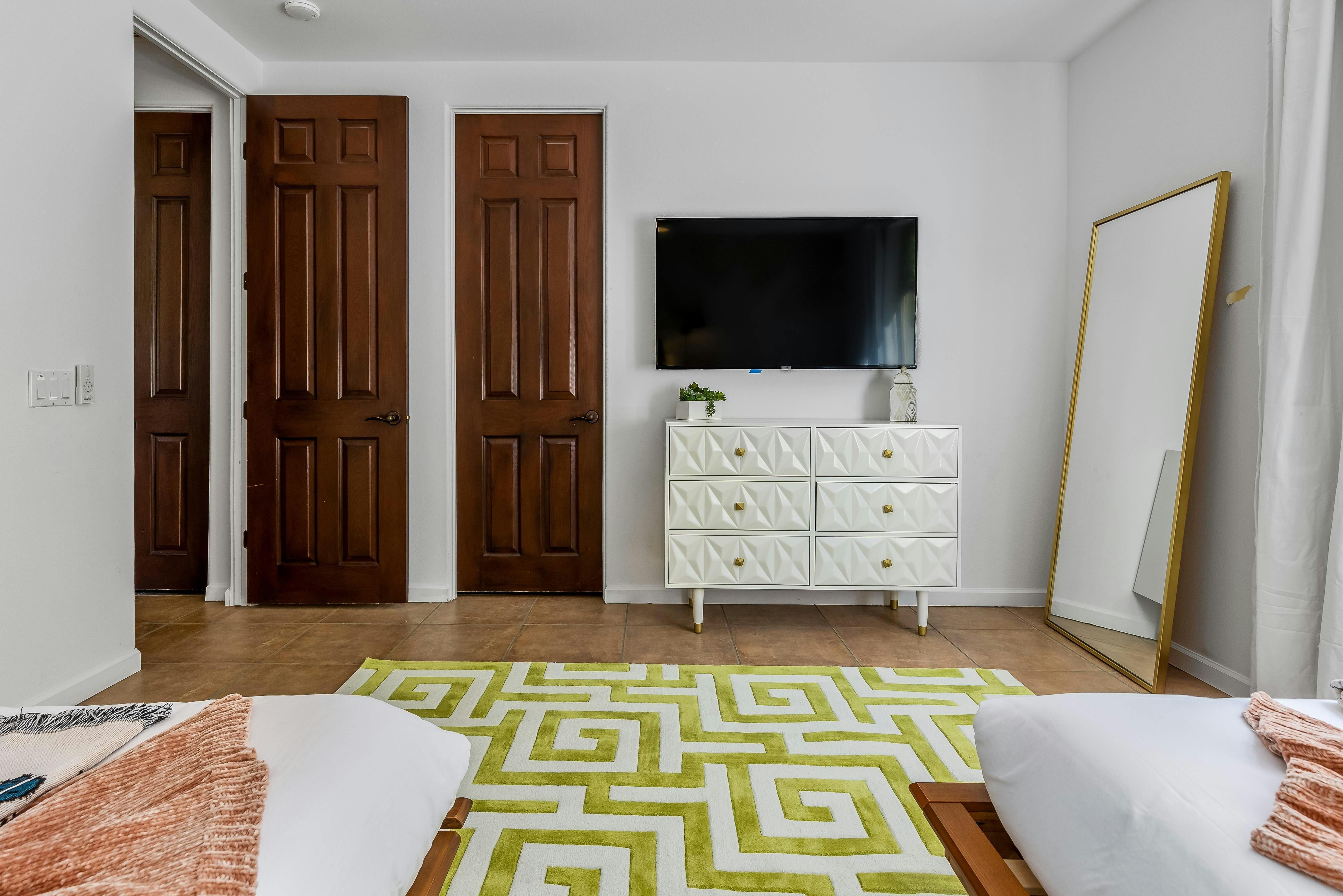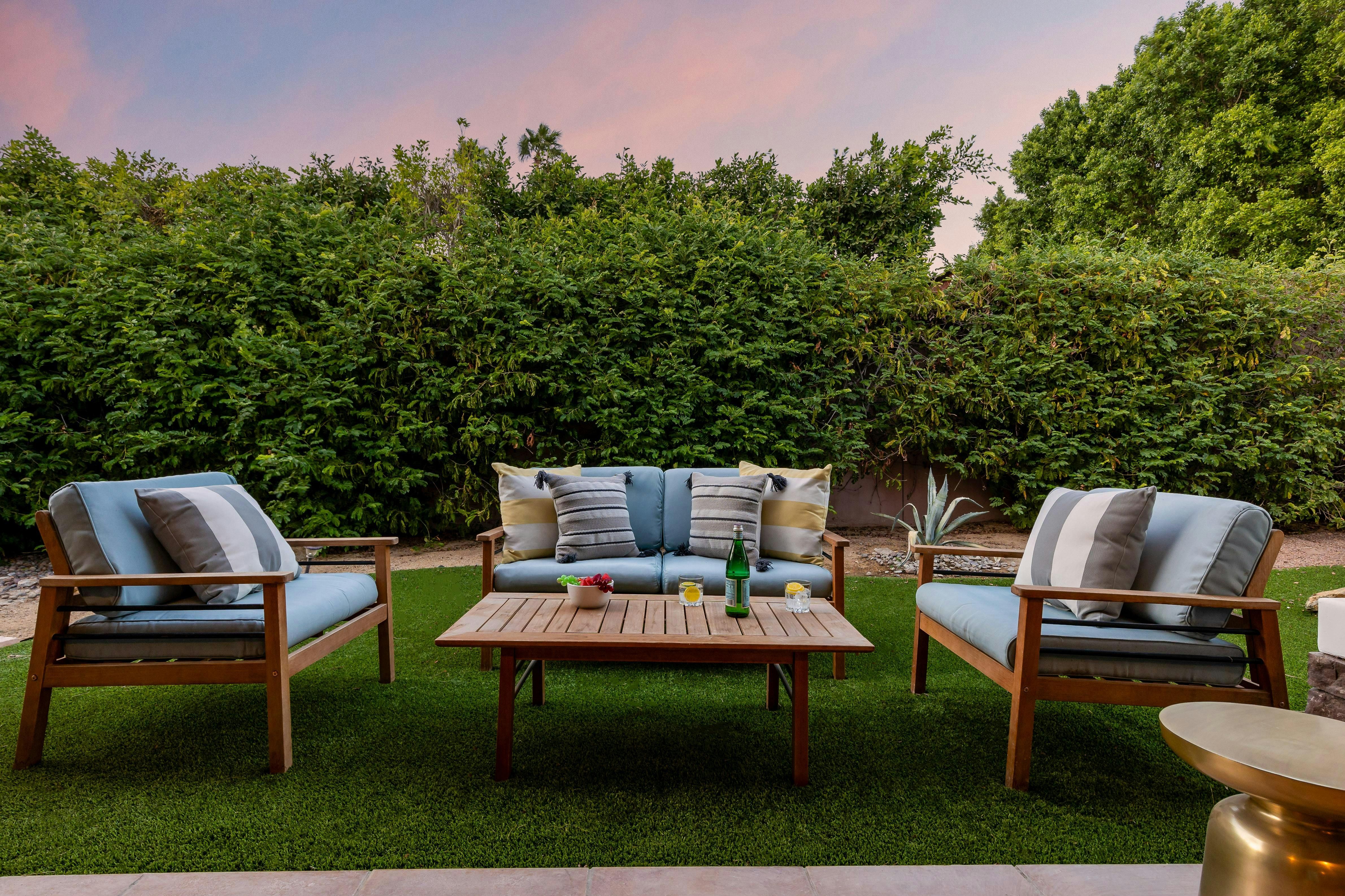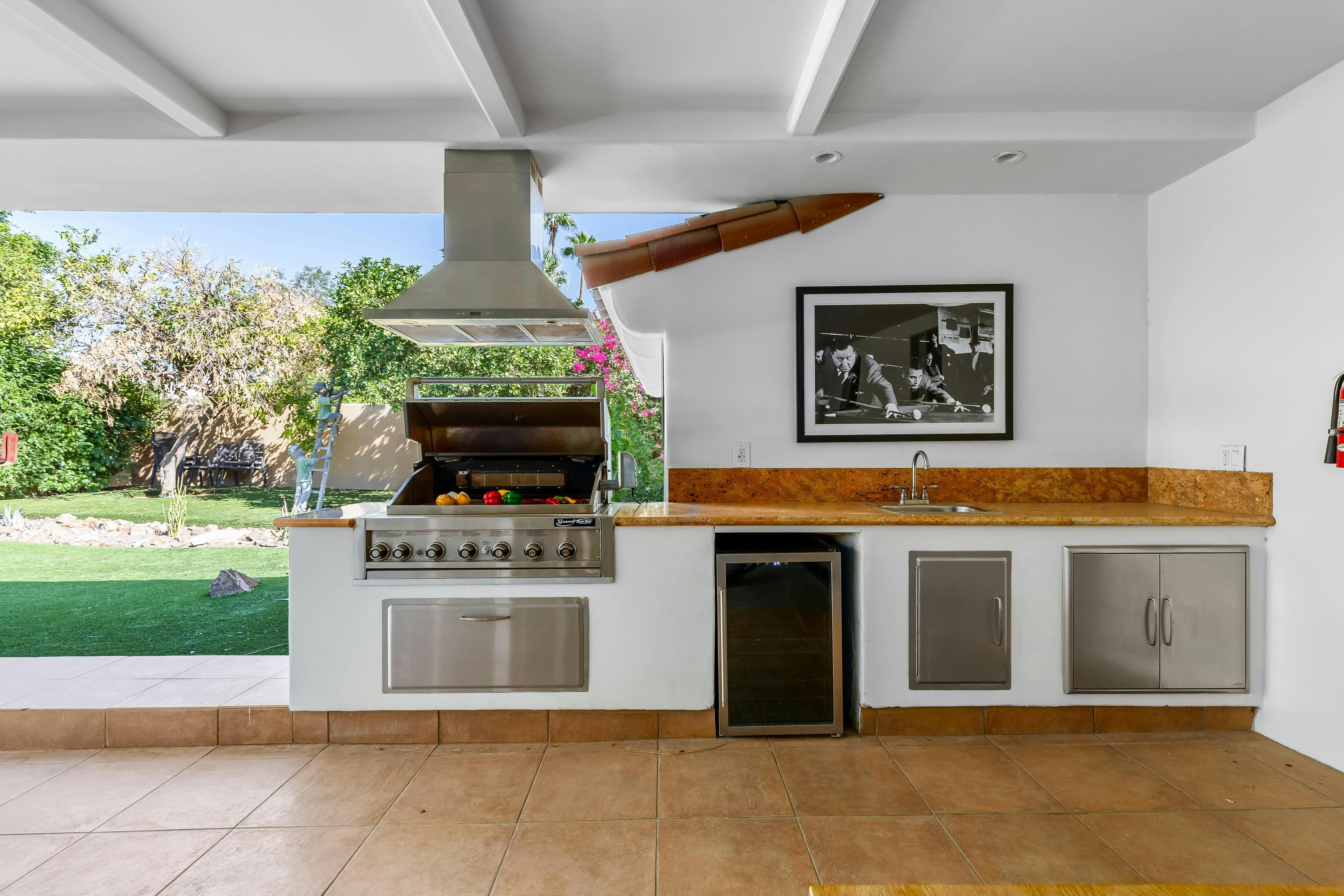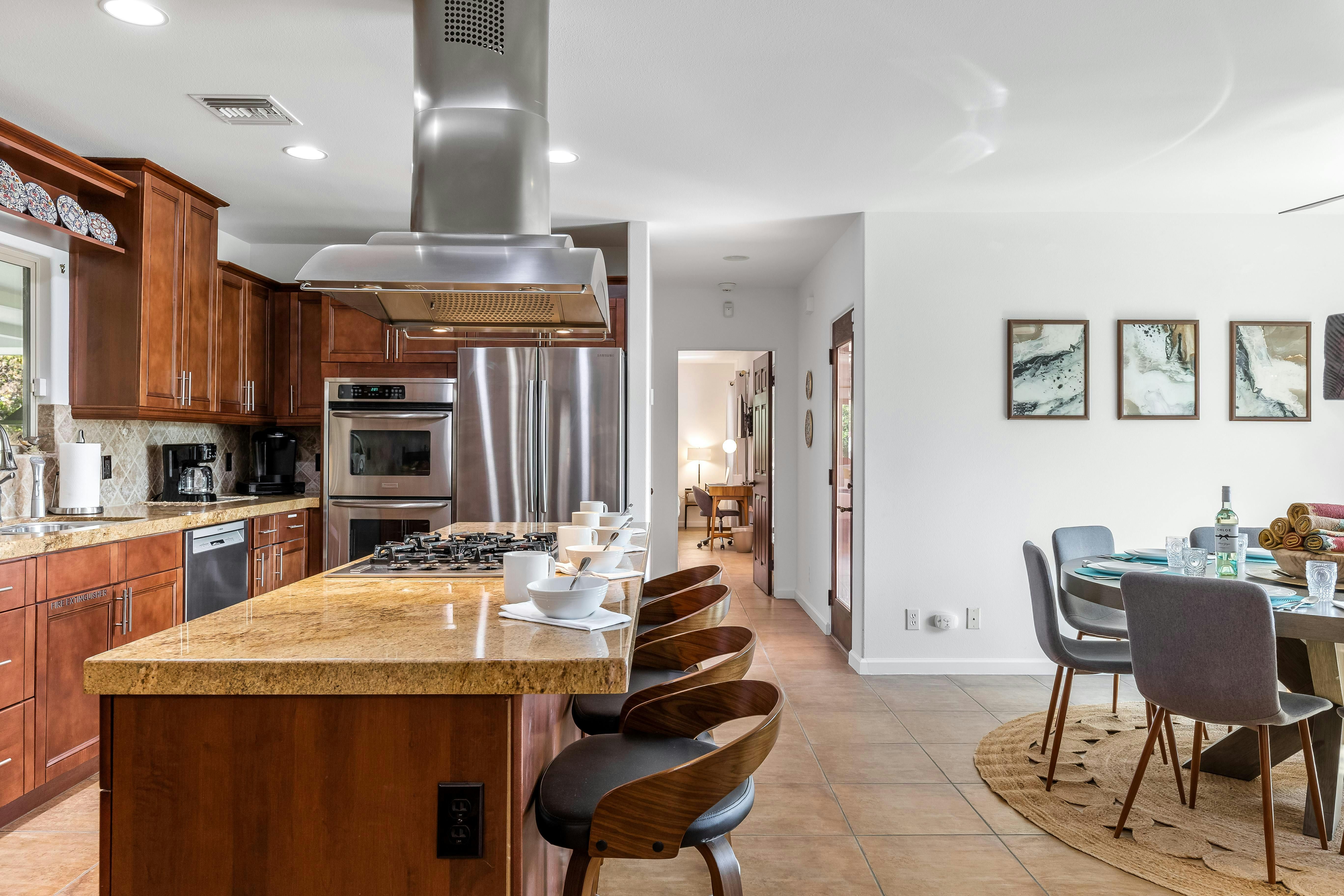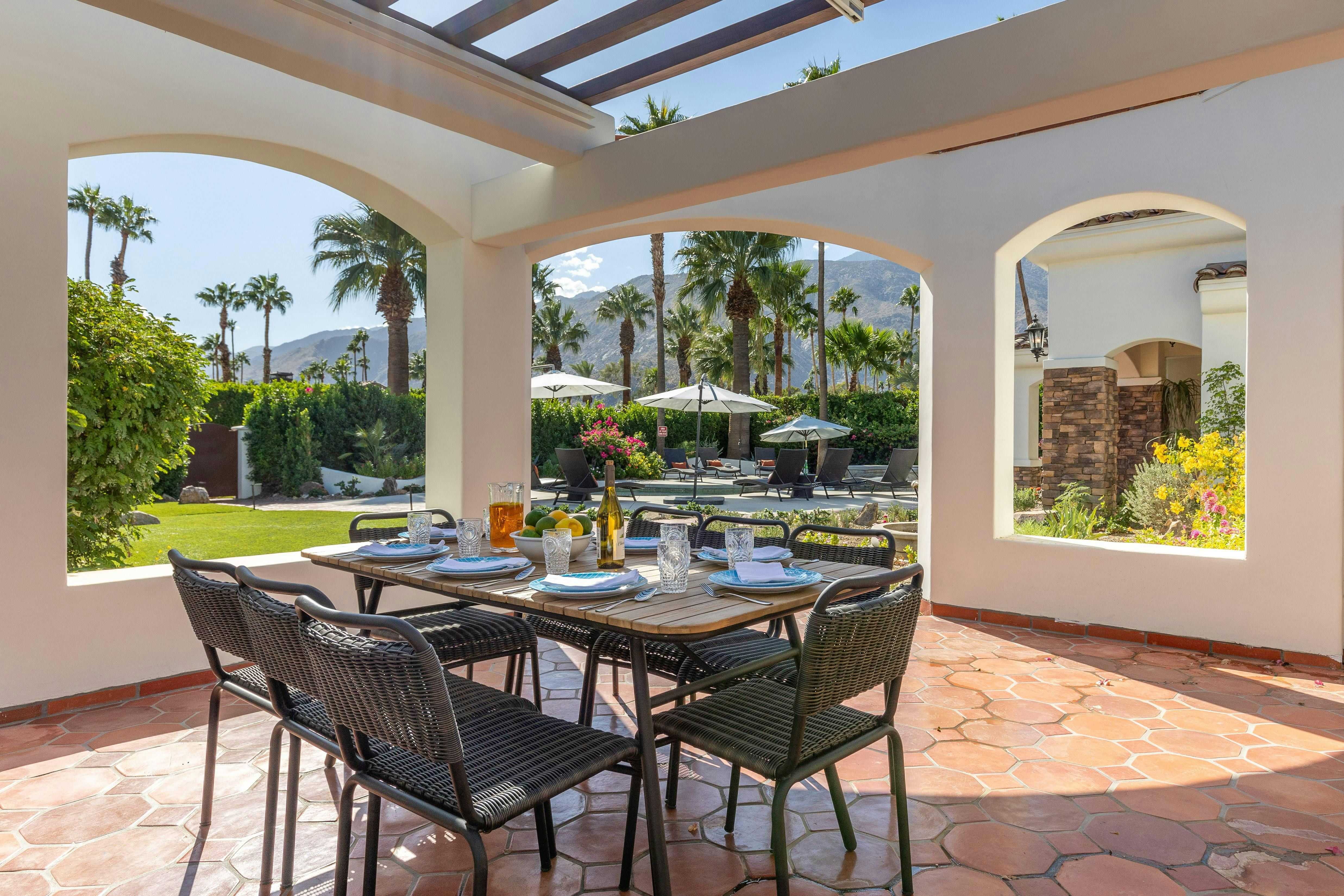 This Palm Springs home in the exclusive El Mirador neighbourhood is made for relaxed desert living. The outdoor space is the star. Think palm trees, mountain views, a pool with loungers, and a shaded lounge with a big sofa and TV. There’s also a games area and barbecue for laid-back evenings under the stars. The main bedroom leads onto the pool for morning swims, while an additional annexe has its own kitchenette and workspace. You’ll need a car, but everything from restaurants to hiking trails are just a short drive away.