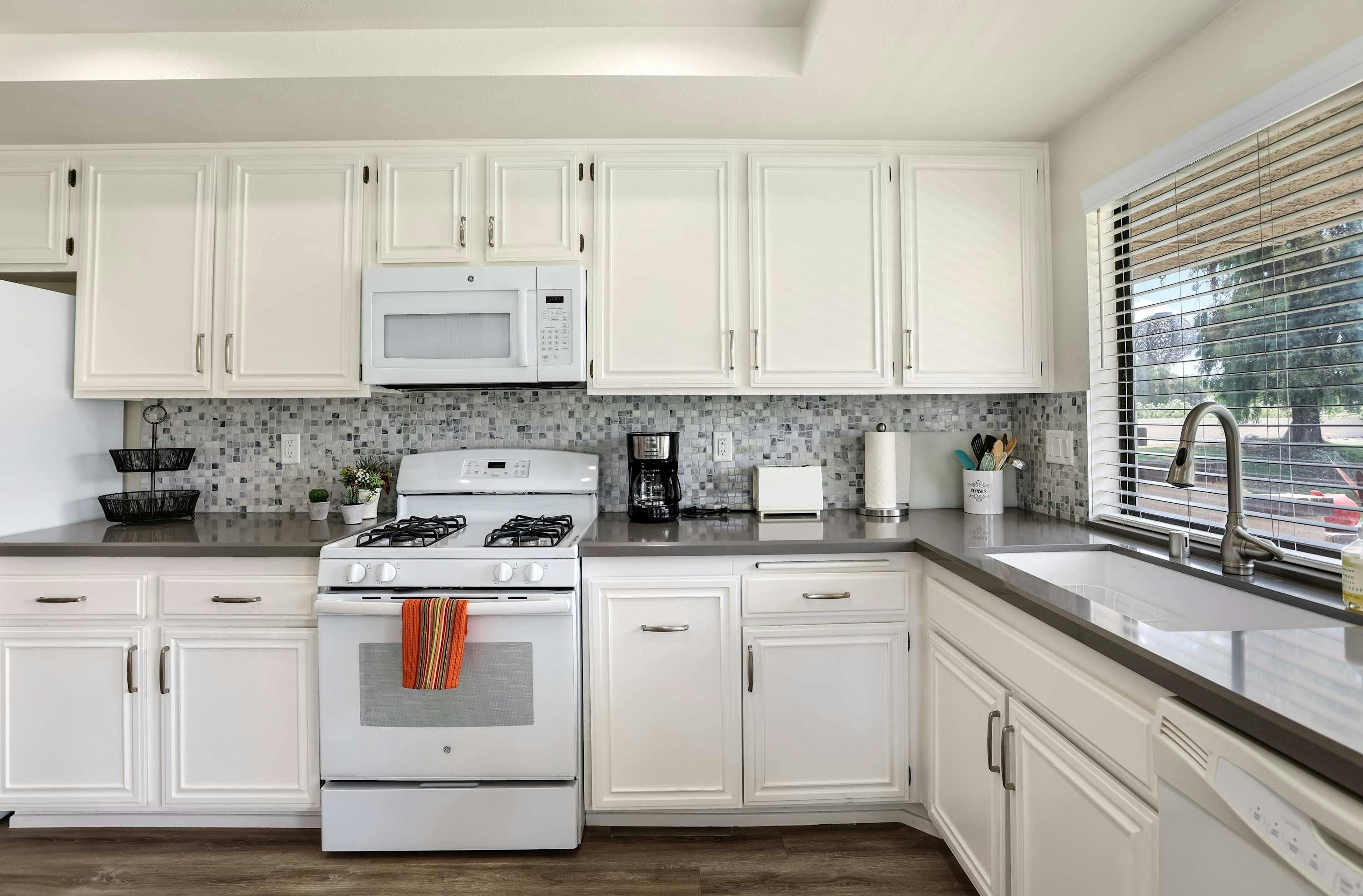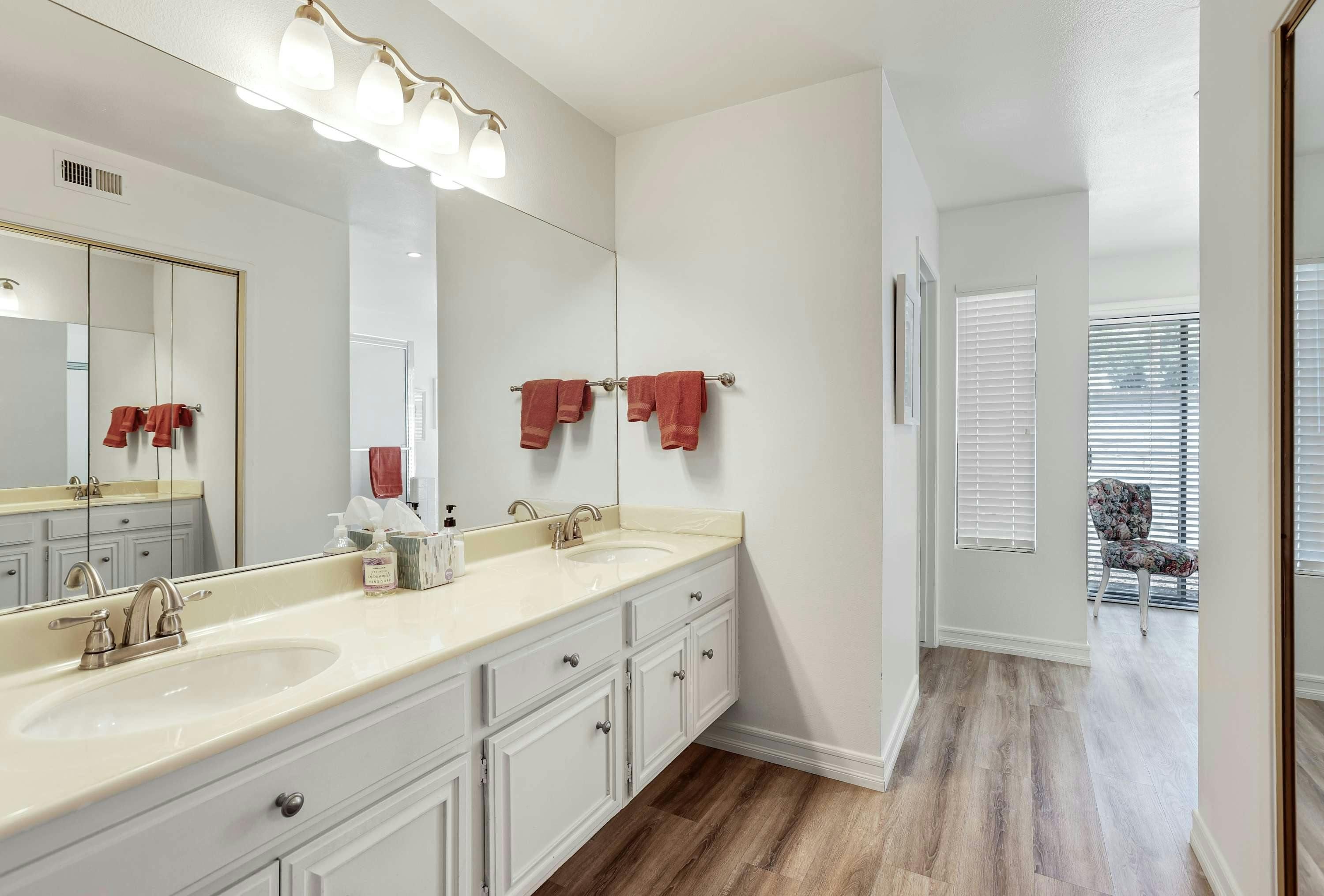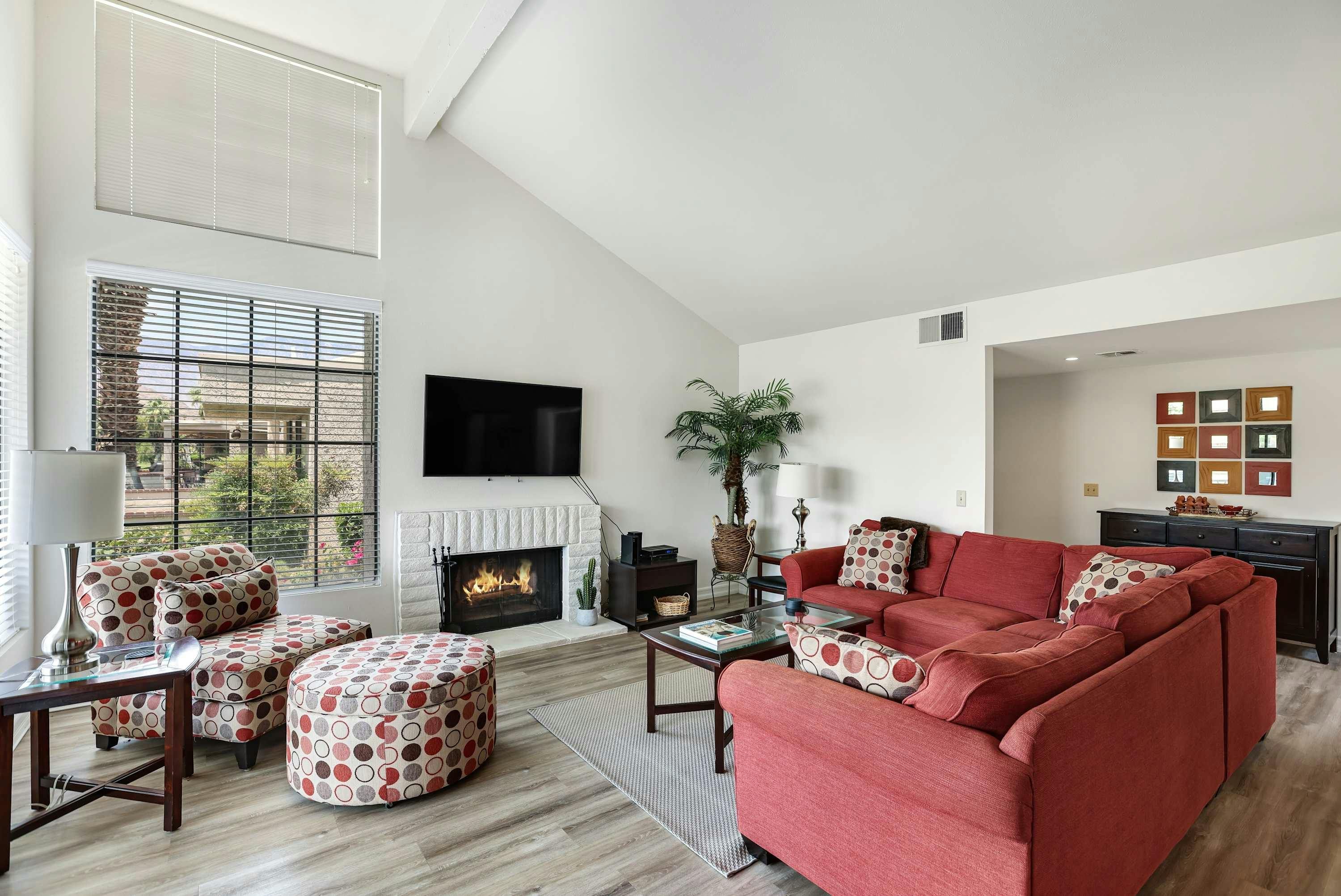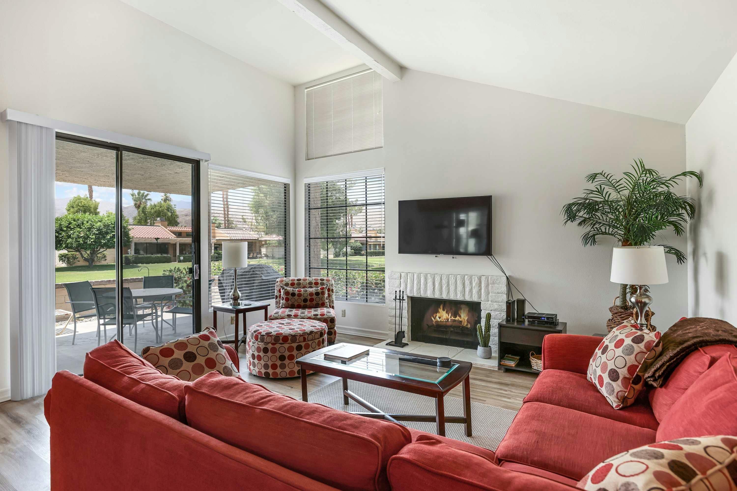 Calling all golfers – this home in Cathedral City puts the fairways within easy reach. It's set in a golf community with views of the surrounding mountains. We love how bright the living area is, not to mention the sense of space here. Grown-ups can unwind with a glass of wine in front of the fire, while a handy second lounge is perfect for kids. There's also a patio facing a small lake, ideal for evening barbecues. Keen to explore? Hiking trails await in the Coachella Valley, and shops, restaurants, and bars in Palm Springs are a short drive away.