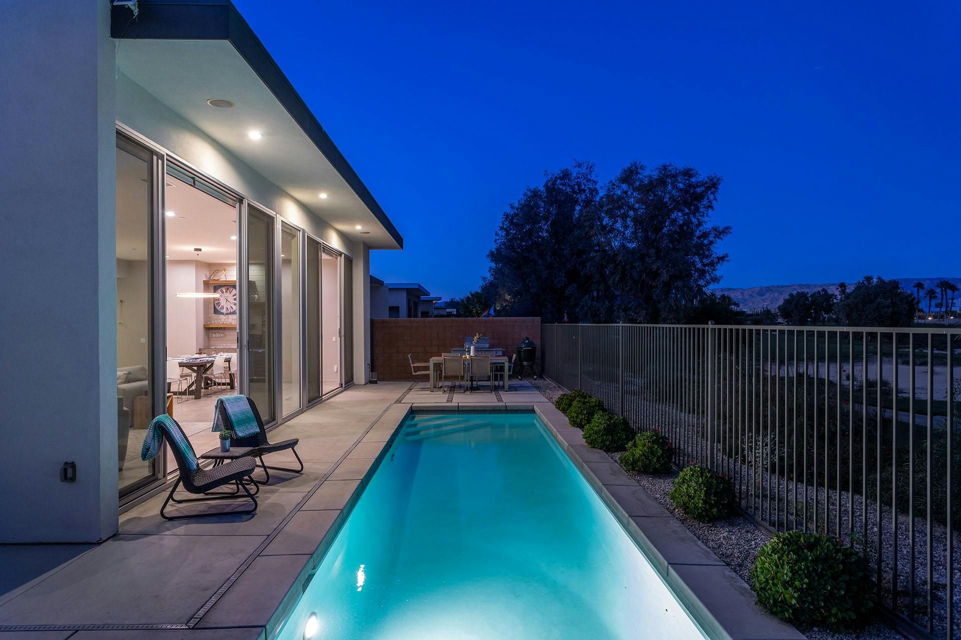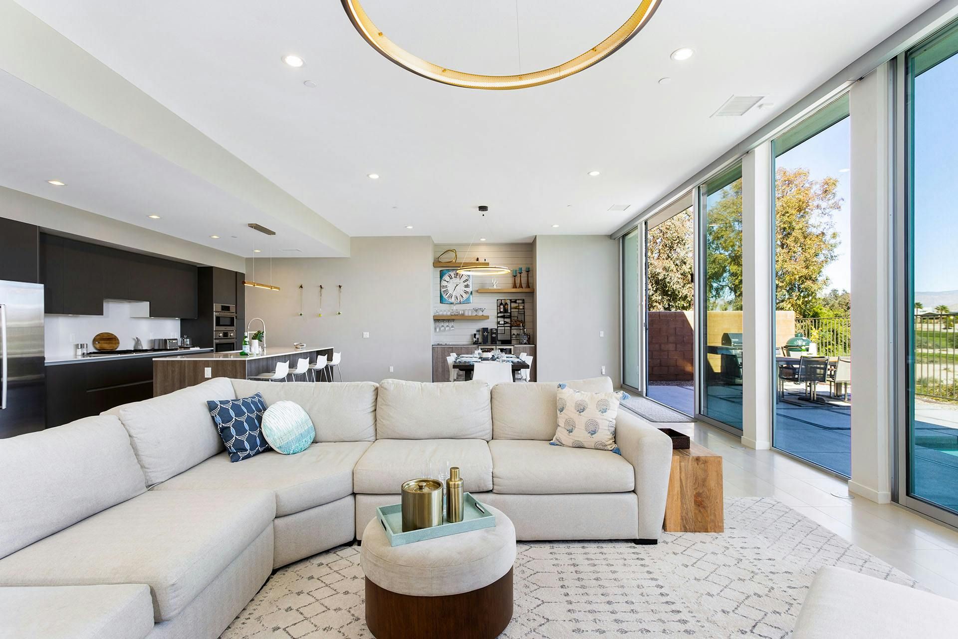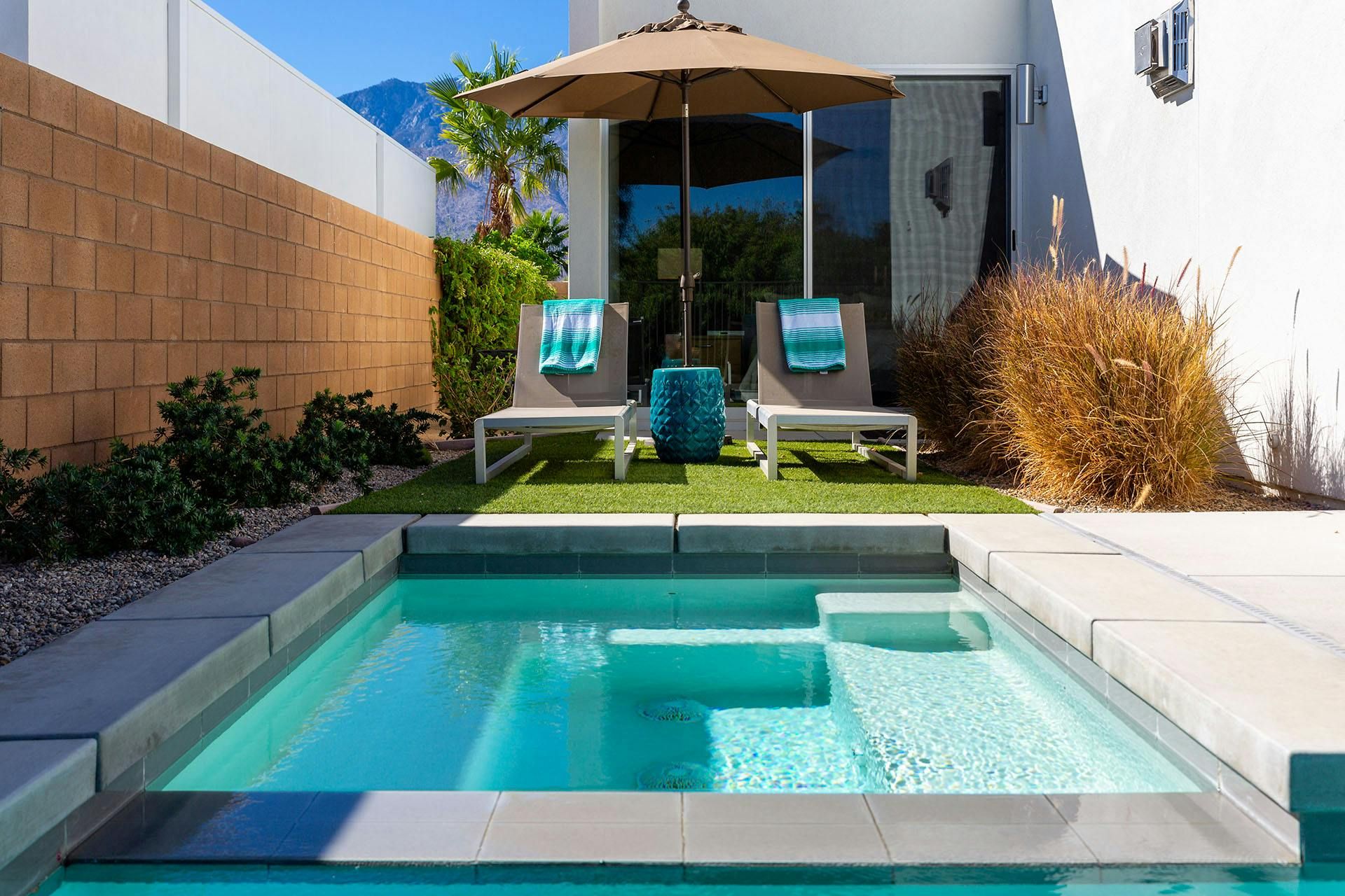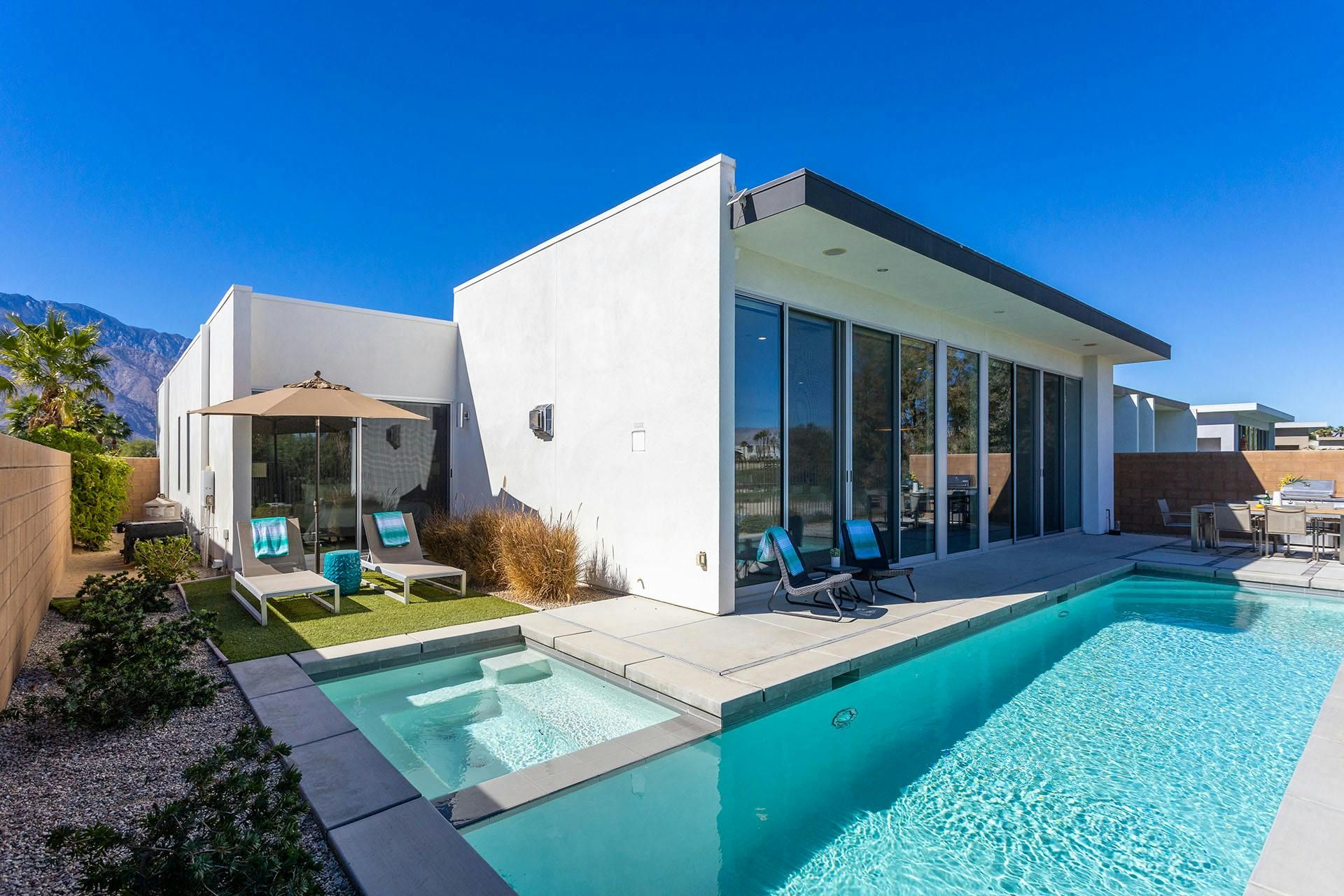 This home sits right on the fairway of Escena Golf Club, framed by the dramatic San Jacinto Mountains. Inside, it’s bright and contemporary, with a stylish open-plan living space that spills onto a sun-soaked patio, complete with a private pool, built-in hot tub, barbecue, and alfresco dining area. Not into golf? You’re just a five-minute drive from the vibrant restaurants, boutique shops, and bars of Palm Canyon Drive, or you can lace up your hiking boots and explore the scenic trails winding through the surrounding desert landscape.