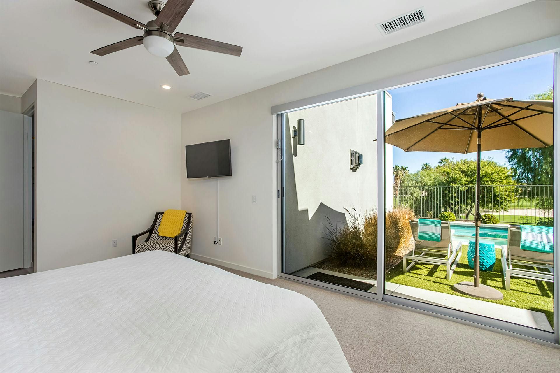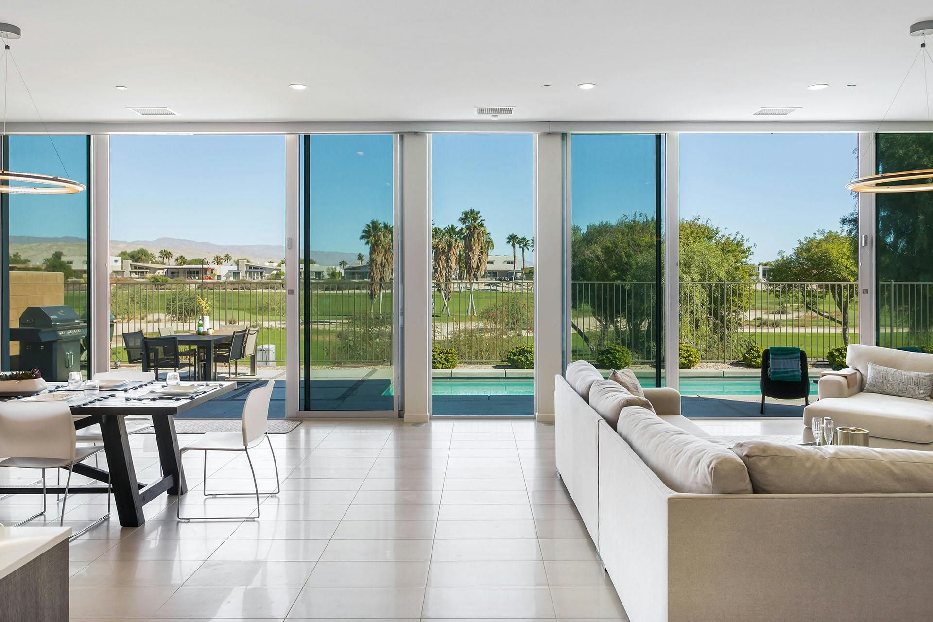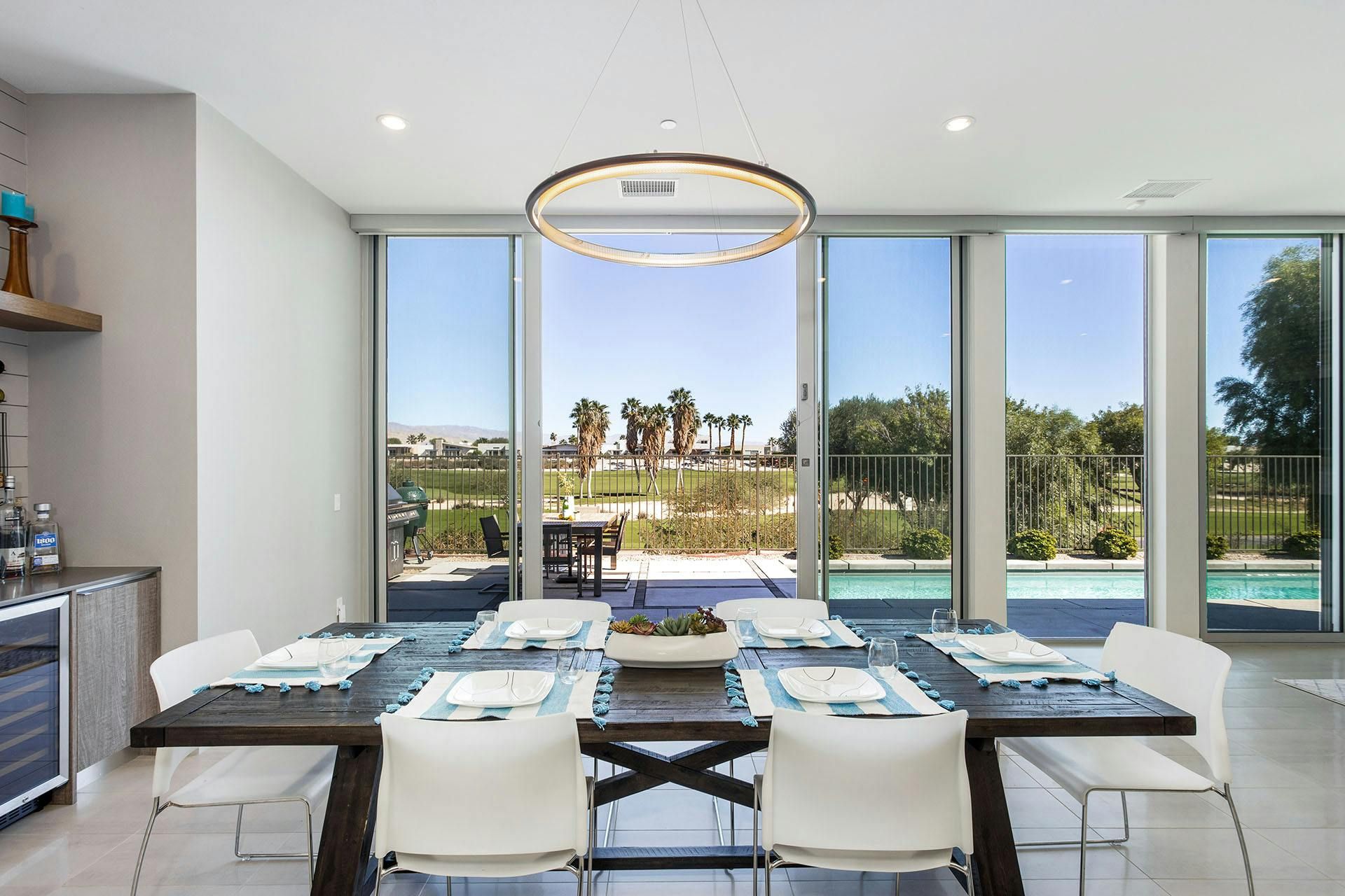 This home sits right on the fairway of Escena Golf Club, framed by the dramatic San Jacinto Mountains. Inside, it’s bright and contemporary, with a stylish open-plan living space that spills onto a sun-soaked patio, complete with a private pool, built-in hot tub, barbecue, and alfresco dining area. Not into golf? You’re just a five-minute drive from the vibrant restaurants, boutique shops, and bars of Palm Canyon Drive, or you can lace up your hiking boots and explore the scenic trails winding through the surrounding desert landscape.