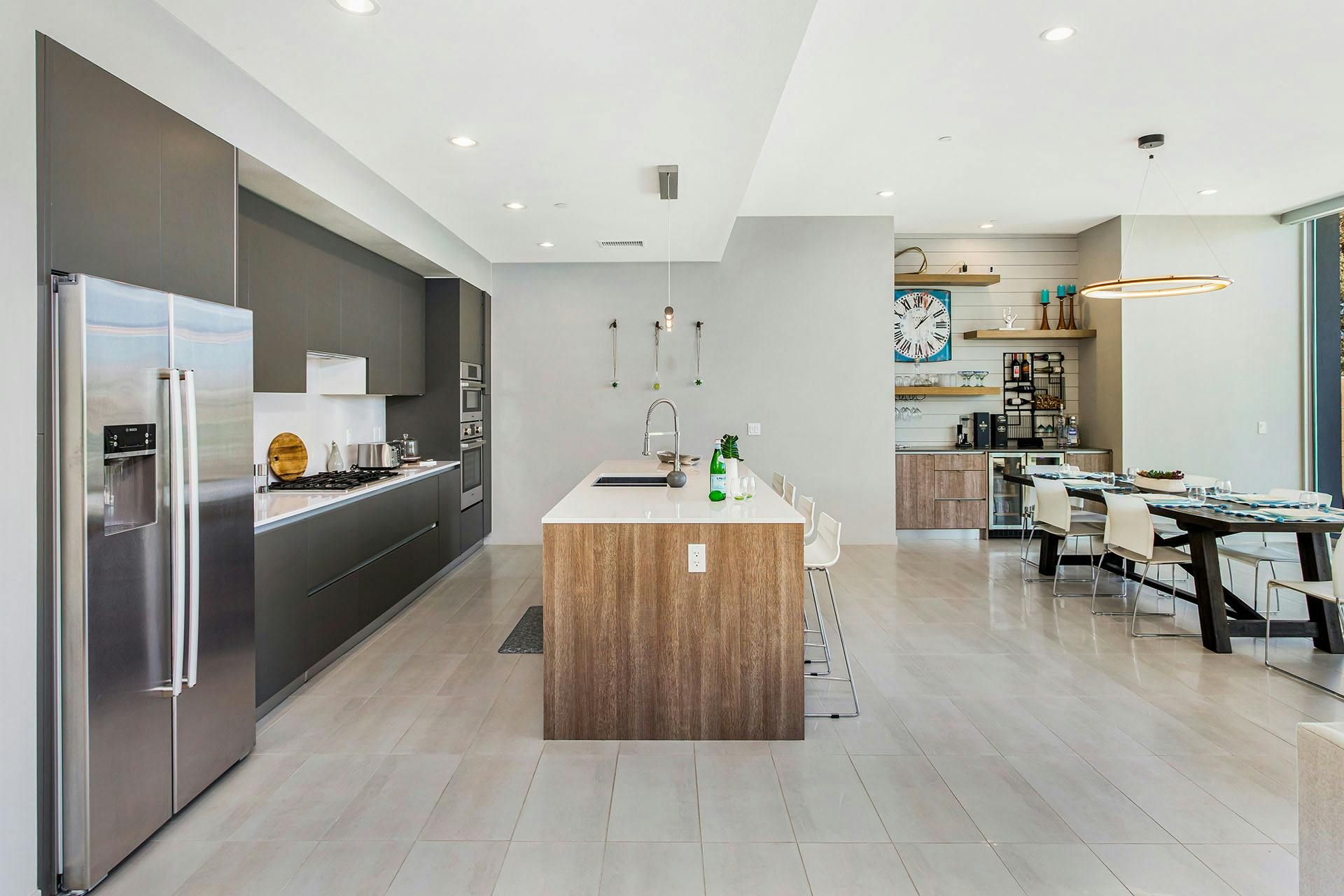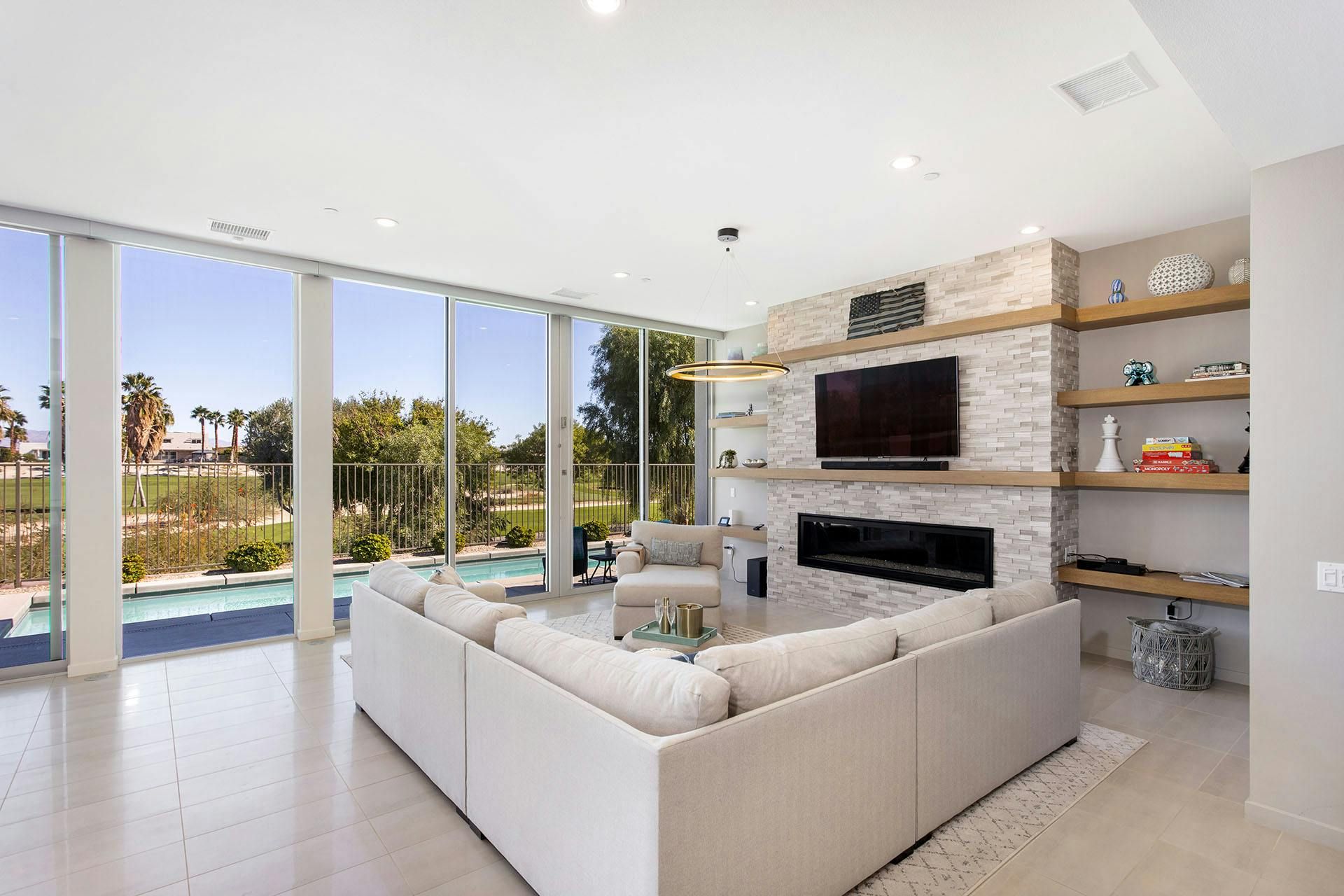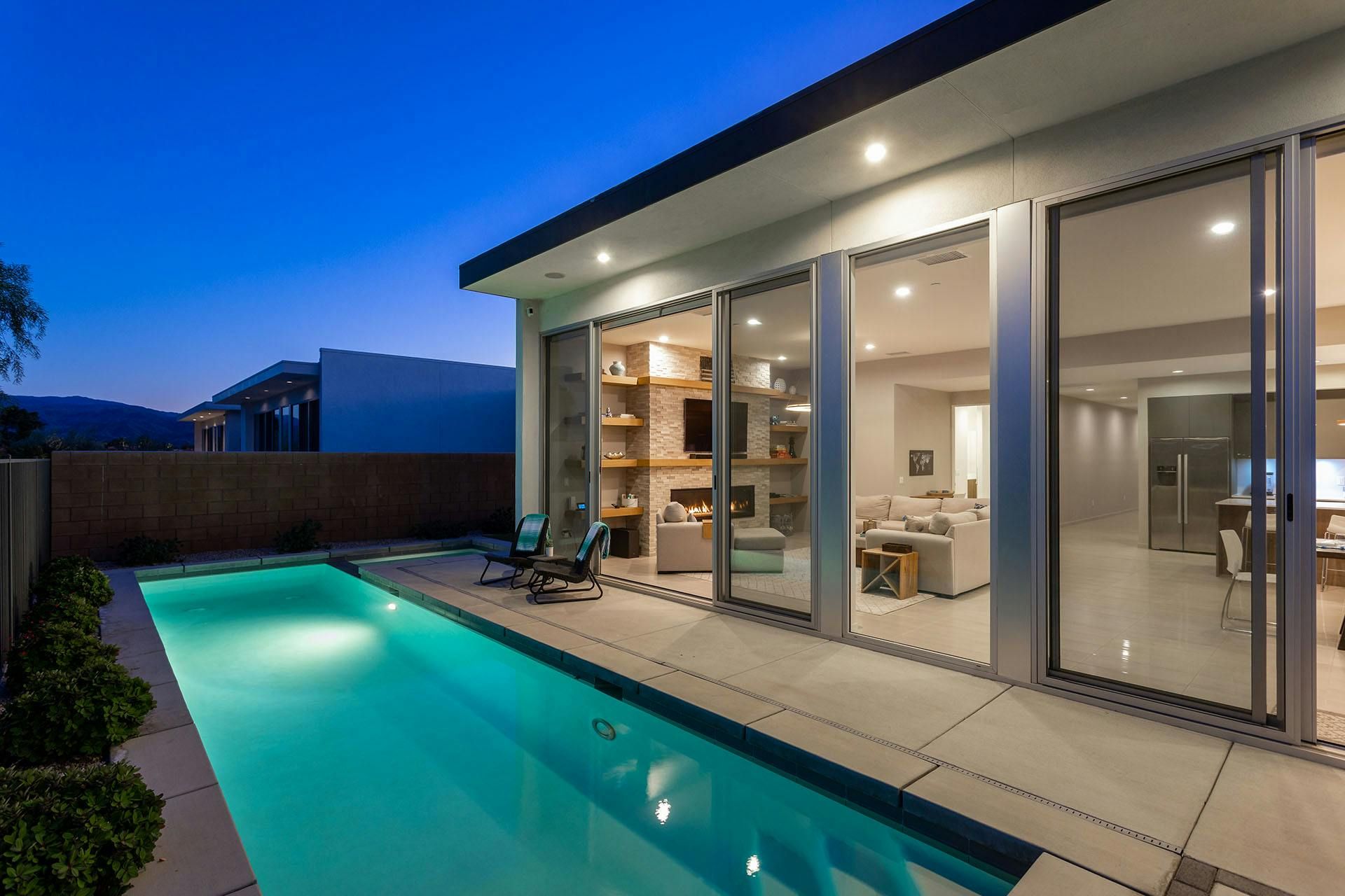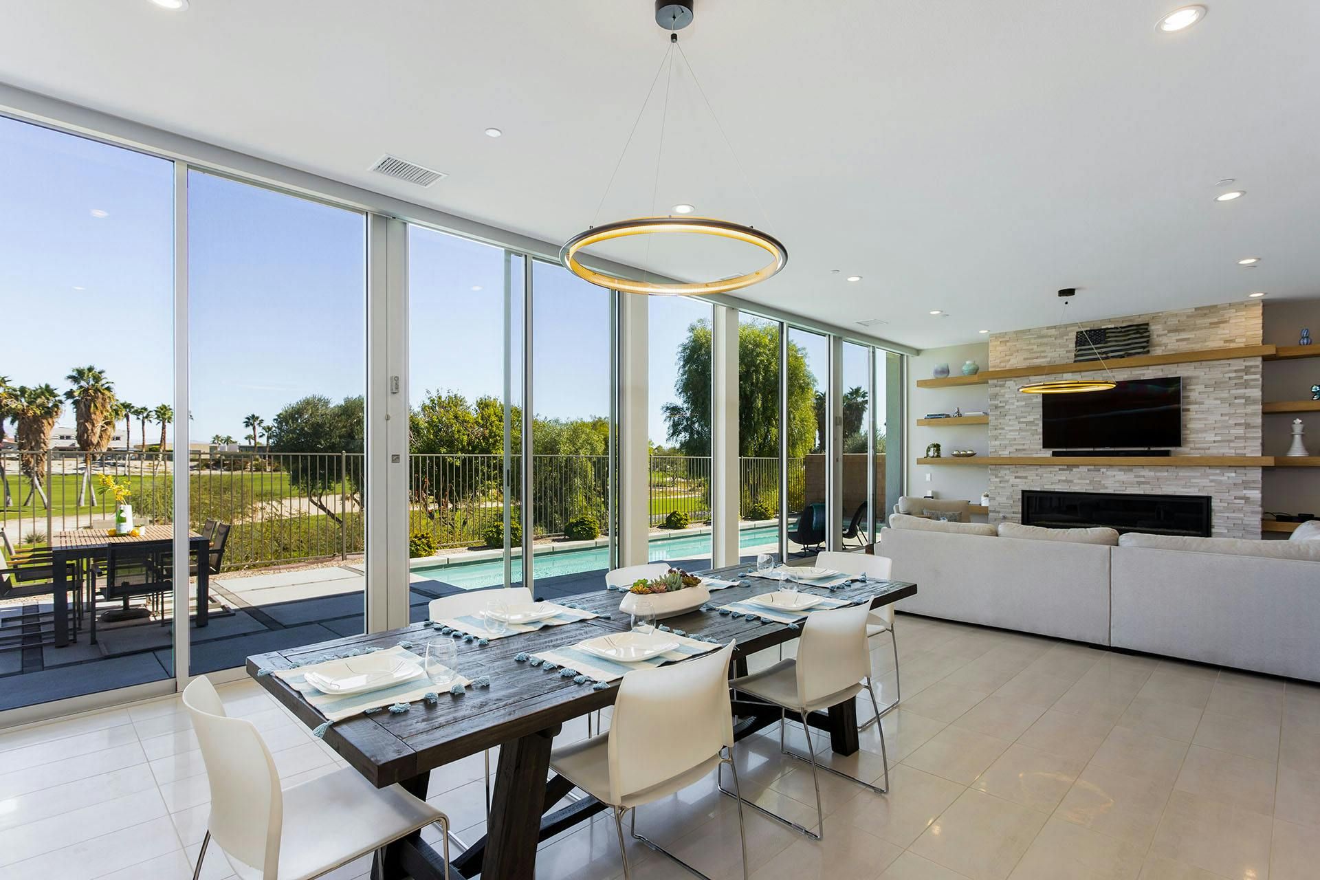 This home sits right on the fairway of Escena Golf Club, framed by the dramatic San Jacinto Mountains. Inside, it’s bright and contemporary, with a stylish open-plan living space that spills onto a sun-soaked patio, complete with a private pool, built-in hot tub, barbecue, and alfresco dining area. Not into golf? You’re just a five-minute drive from the vibrant restaurants, boutique shops, and bars of Palm Canyon Drive, or you can lace up your hiking boots and explore the scenic trails winding through the surrounding desert landscape.