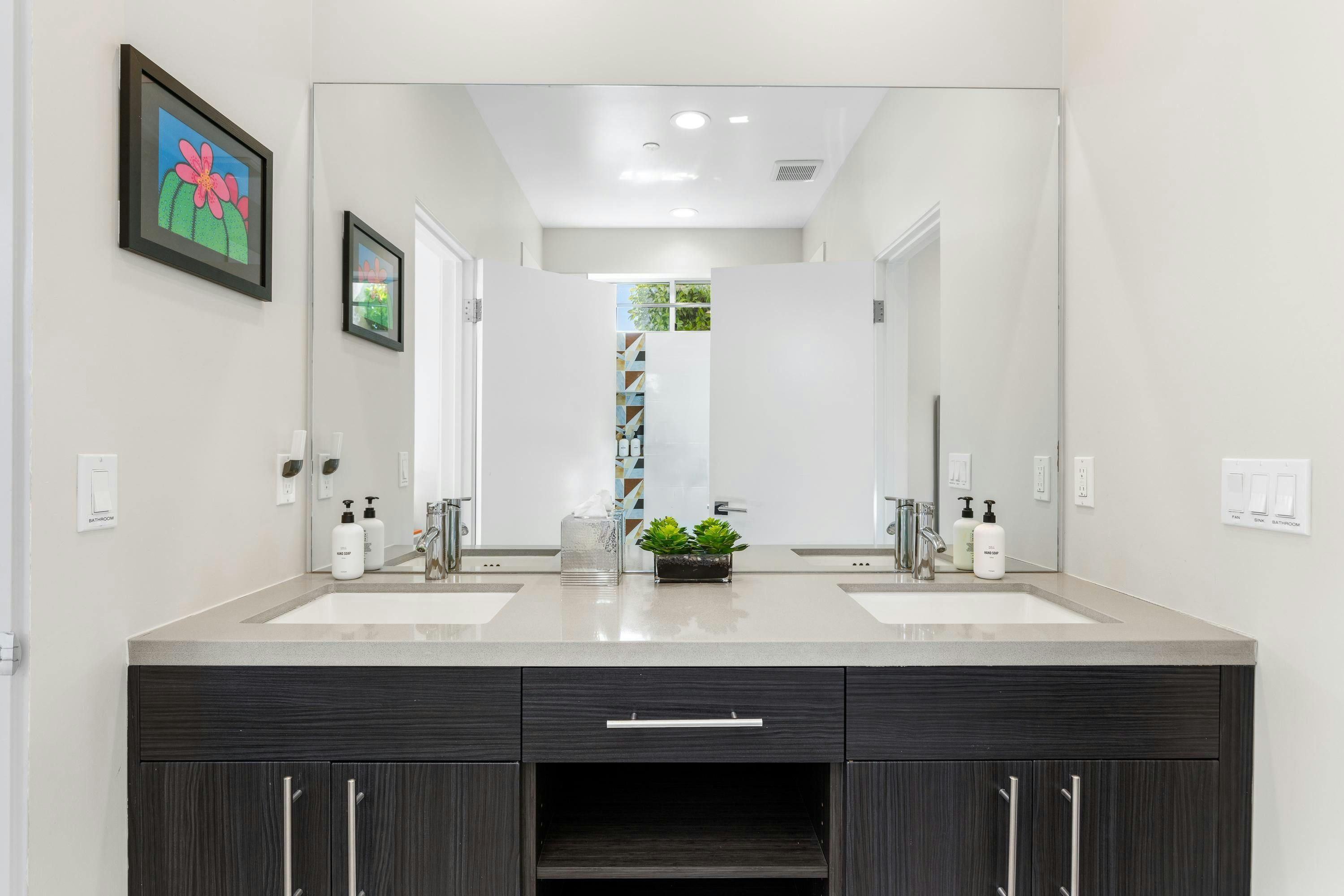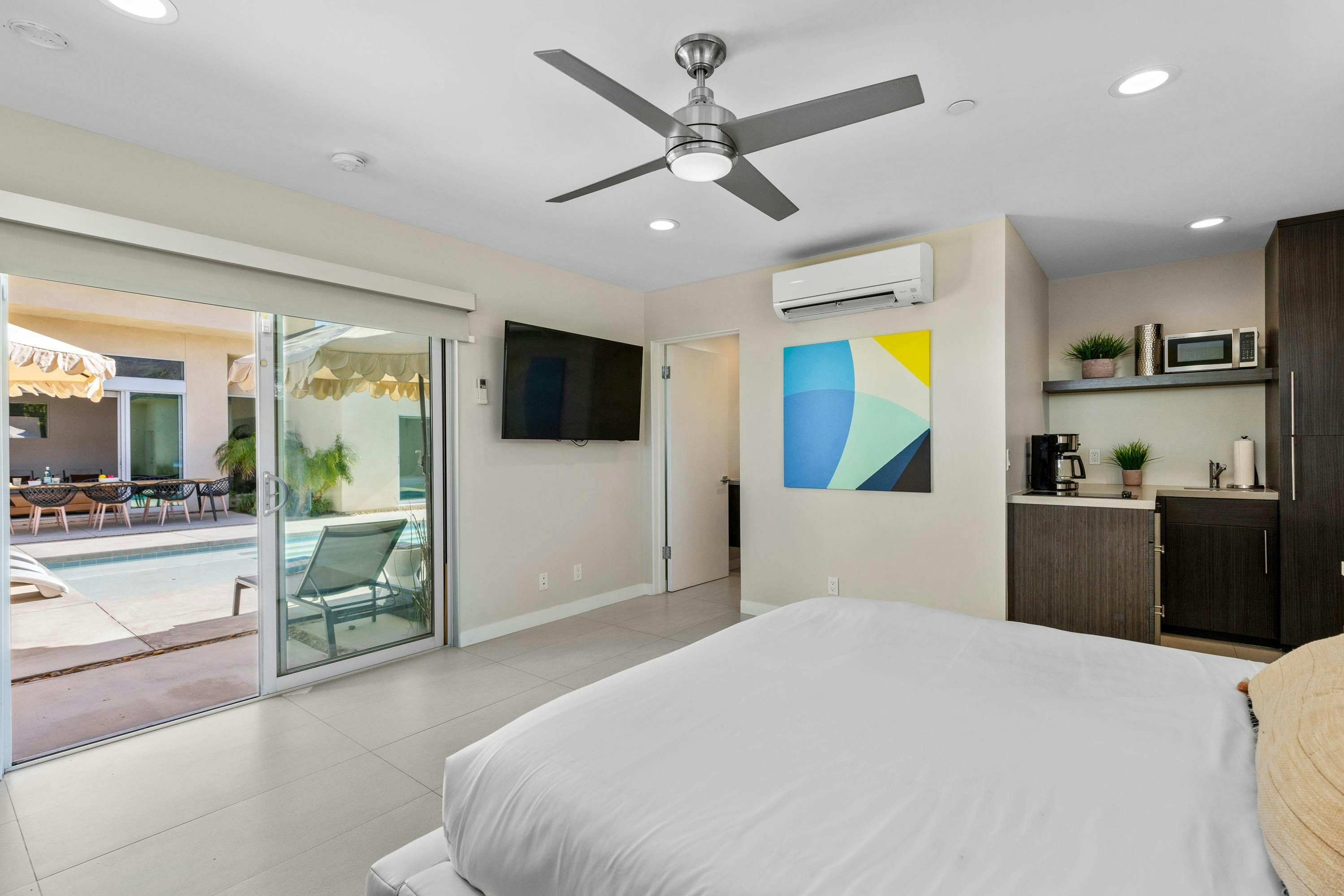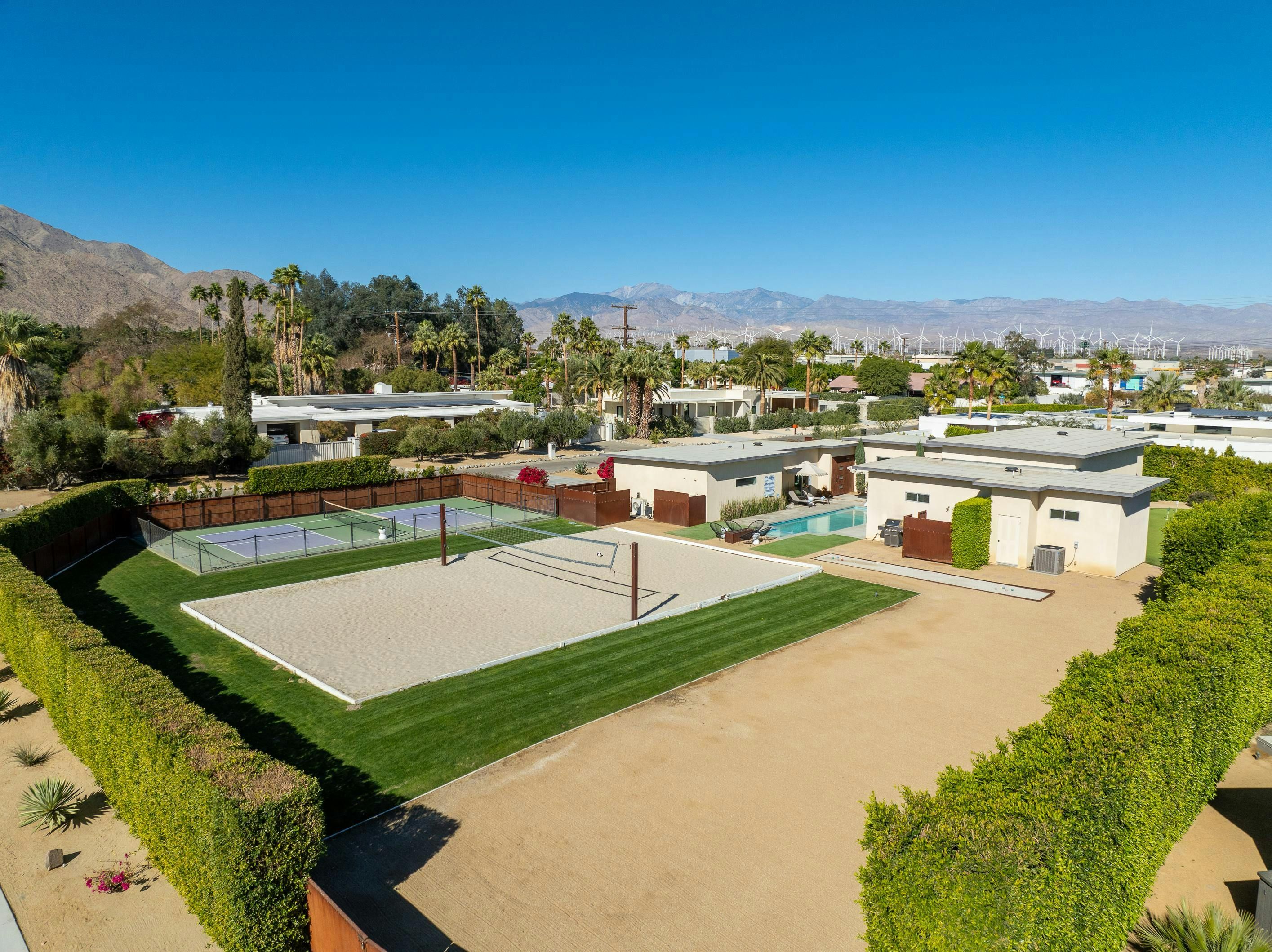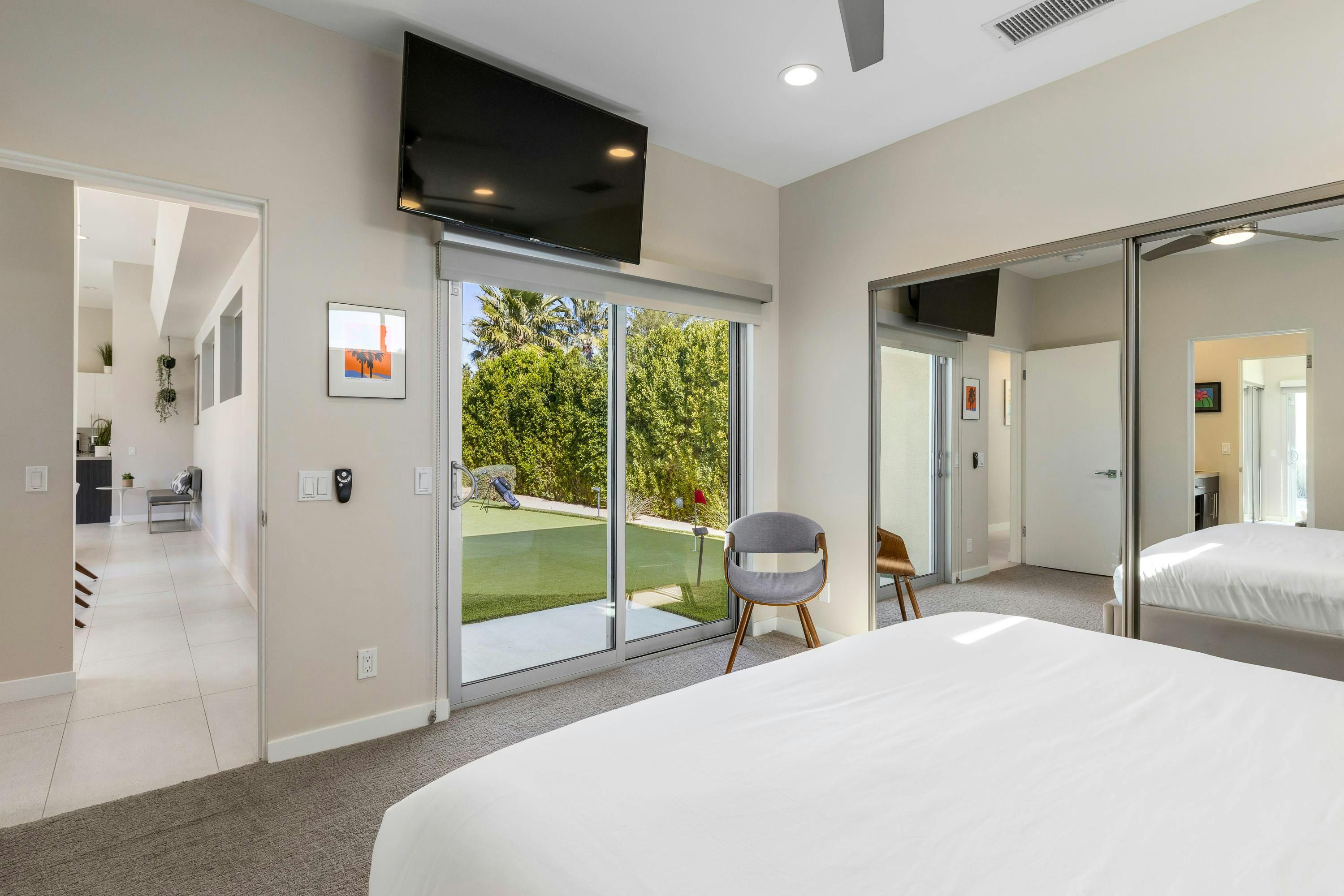 With its private pickleball court, putting green and beach volleyball arena, this desert home is a hub for entertainment and friendly competition. When you’re not relaxing in a sun lounger by the pool or soaking in the hot tub, cook up a storm on the barbecue and dine alfresco at the nearby outdoor table, then chat the evening away around the firepit as the sun goes down. Two lucky guests can retire to the separate casita accessible from the courtyard, but everyone else will still feel very comfortable in the king suites in the main house. If you’re willing to tear yourself away from the house, the restaurants and bars of Palm Springs are close by too.