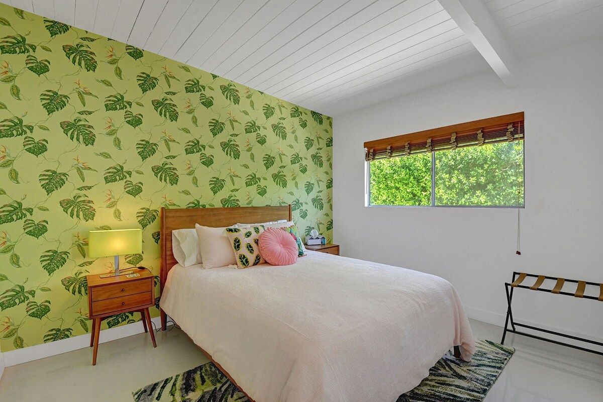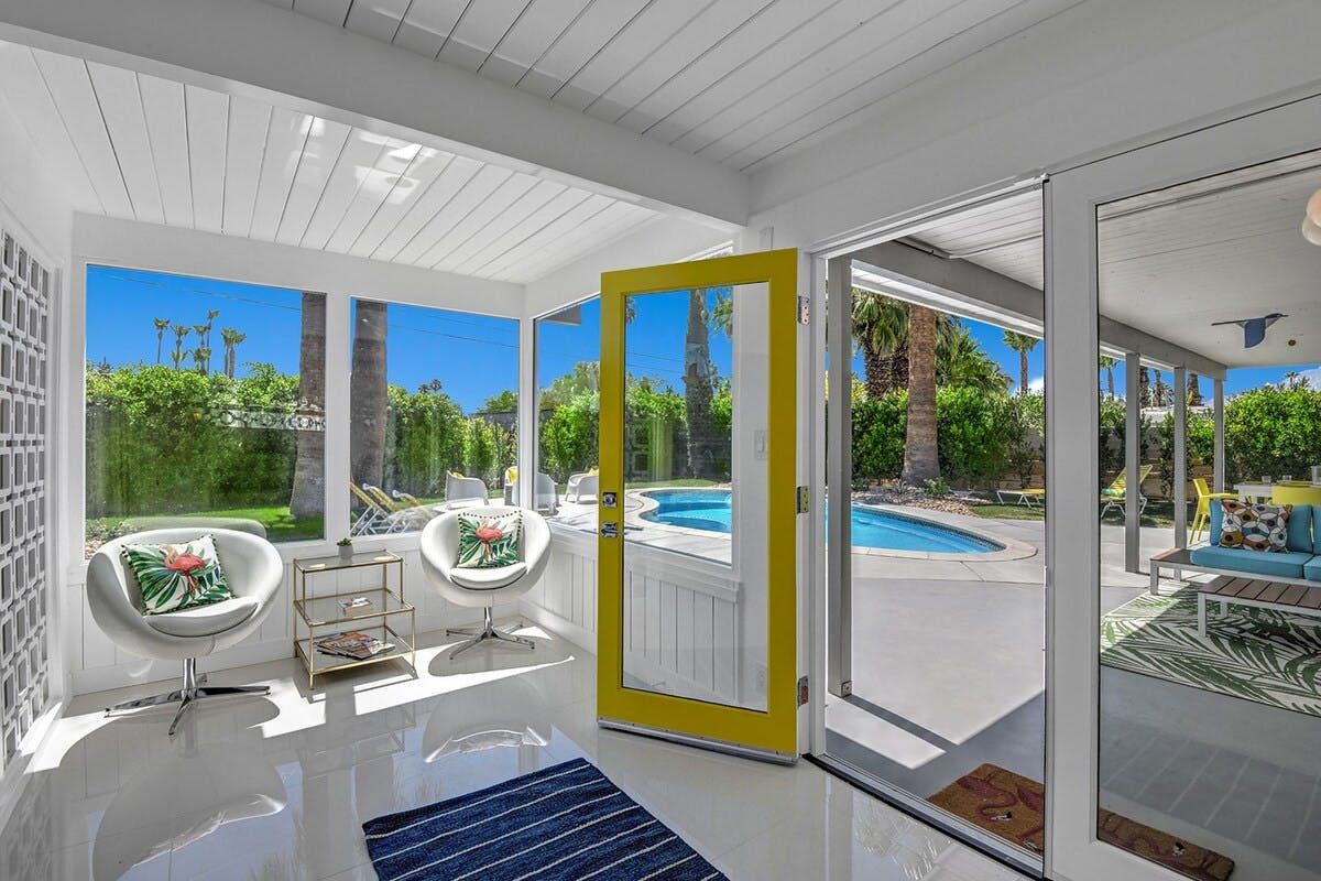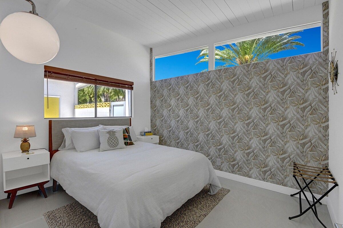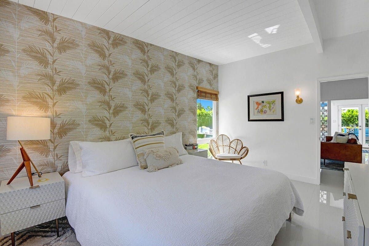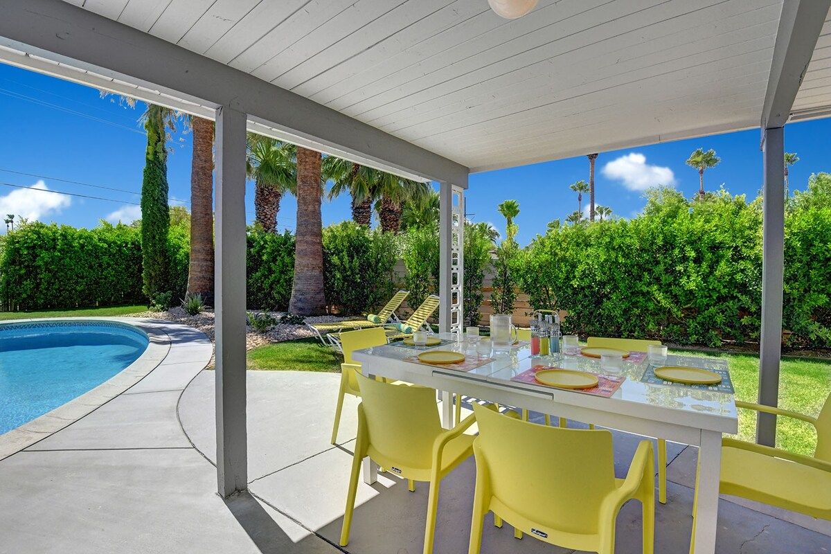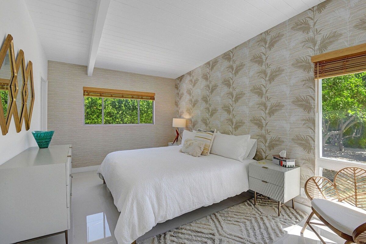 Offering a dream-like stay in a sought-after postcode, sitting seamlessly amidst the desert landscape, is this modern Palm Springs home. Drawing its influence from the 1950s, enjoy lazy days relaxing around the crystal pool in style. Soak up the beating sun from a lounger, devour an alfresco lunch on the shaded patio and cool off with a dip. This home puts indoor-outdoor living at the forefront, with spacious dining spots for the entire group, whether you're cradling your morning coffee on the balcony or topping up your tan on the terrace. Inside, we love how the low beamed ceilings and shiny marble floors are made to feel homely and inviting with a cool retro styling, vibrant artwork and bold wallpaper prints – this villa will put you at ease from the get-go. Conveniently located twelve minutes from Palm Canyon Drive, in just a matter of moments, you will be golfing, hiking, horseback riding or whizzing across the aerial tramway up the mountains. On top of that, you'll be able to experience all of the glitz and glam of Downtown Palm Springs, less than a ten-minute car ride away. Return home to an alfresco dining experience and sundown drinks around the fire pit, while making new memories with friends and family.