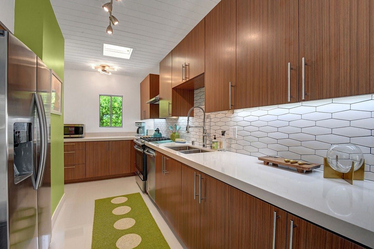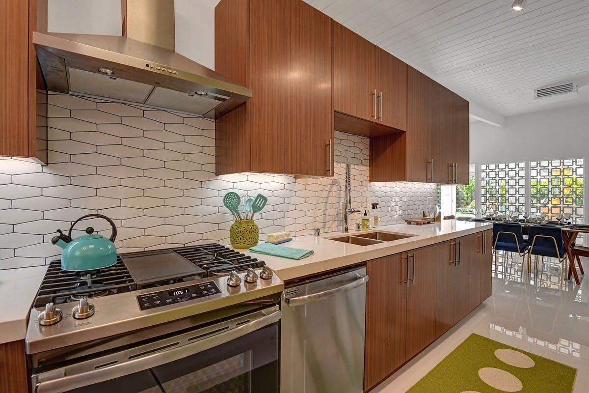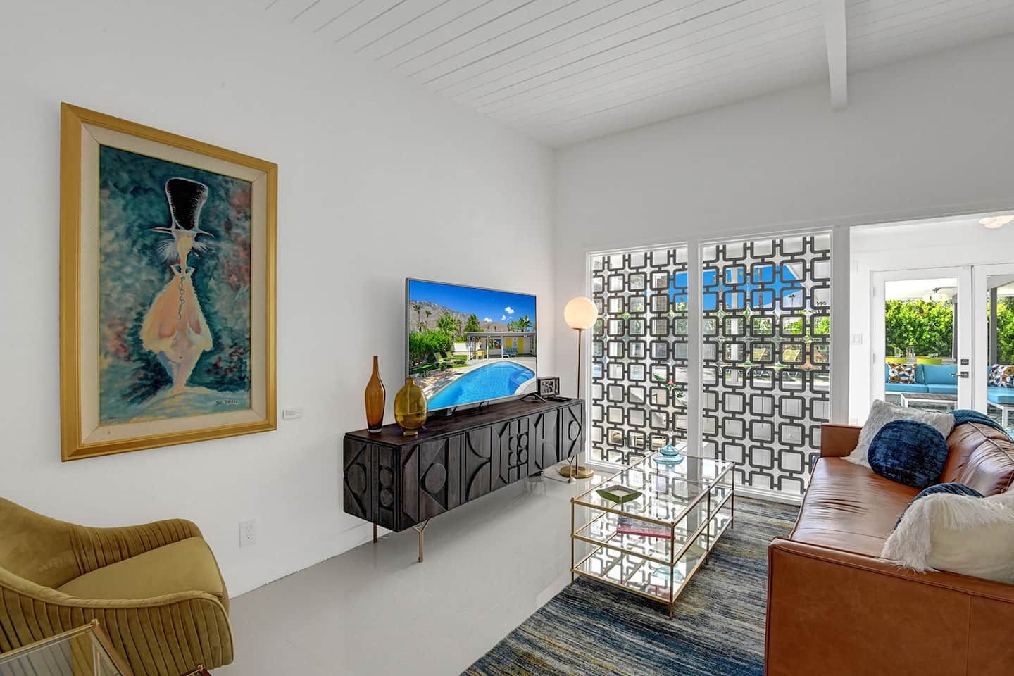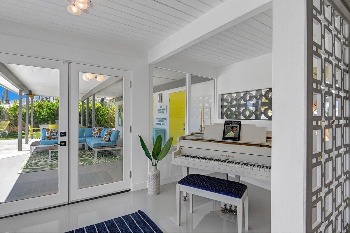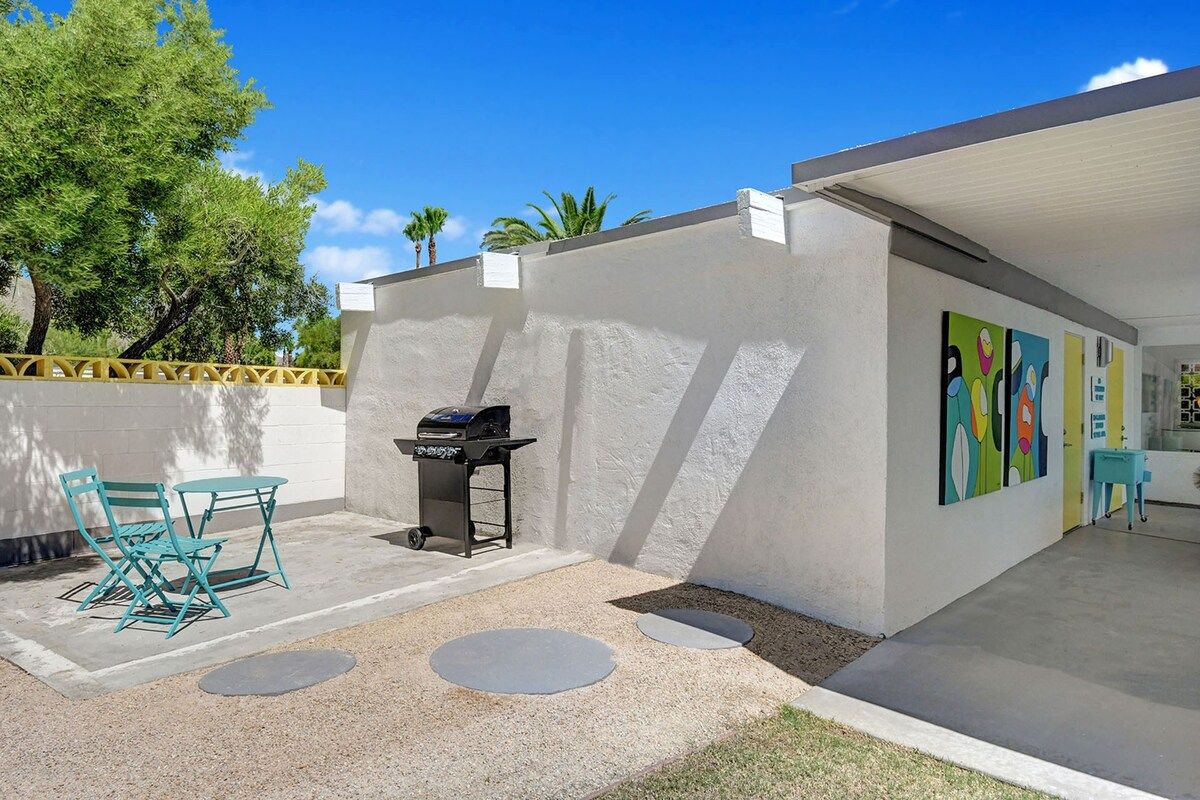 Offering a dream-like stay in a sought-after postcode, sitting seamlessly amidst the desert landscape, is this modern Palm Springs home. Drawing its influence from the 1950s, enjoy lazy days relaxing around the crystal pool in style. Soak up the beating sun from a lounger, devour an alfresco lunch on the shaded patio and cool off with a dip. This home puts indoor-outdoor living at the forefront, with spacious dining spots for the entire group, whether you're cradling your morning coffee on the balcony or topping up your tan on the terrace. Inside, we love how the low beamed ceilings and shiny marble floors are made to feel homely and inviting with a cool retro styling, vibrant artwork and bold wallpaper prints – this villa will put you at ease from the get-go. Conveniently located twelve minutes from Palm Canyon Drive, in just a matter of moments, you will be golfing, hiking, horseback riding or whizzing across the aerial tramway up the mountains. On top of that, you'll be able to experience all of the glitz and glam of Downtown Palm Springs, less than a ten-minute car ride away. Return home to an alfresco dining experience and sundown drinks around the fire pit, while making new memories with friends and family.