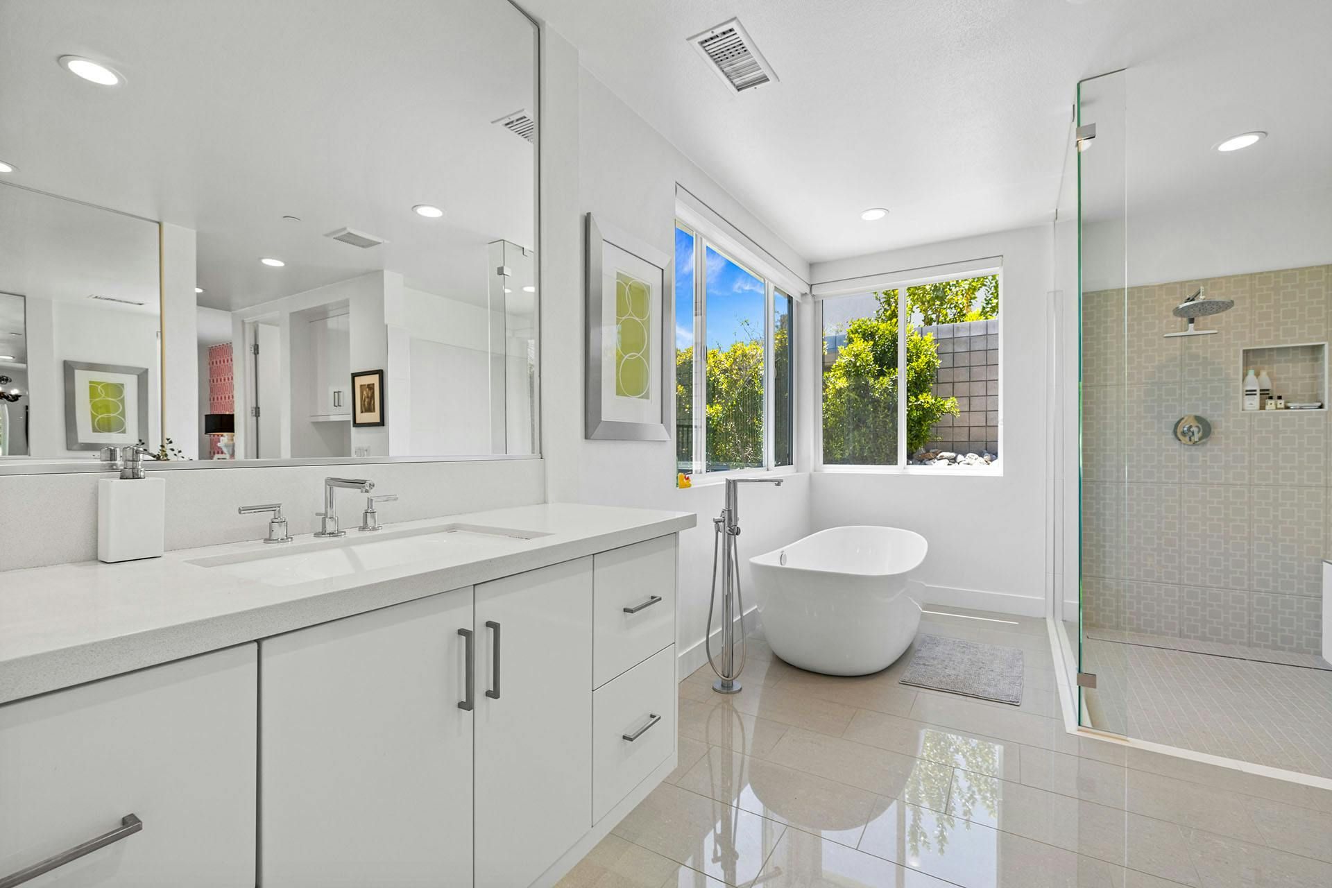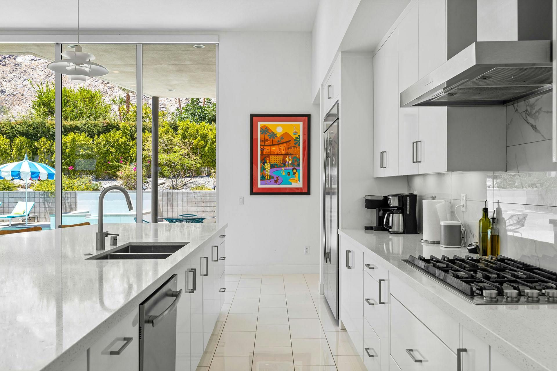 Staying here, you get to experience the real glamour of Palm Springs – from the backdrop of the mountains to the designer decor, this home has it all. The open-concept floorplan seamlessly blends the indoor and outdoor living spaces. We love the resort-style garden, with its sparkling swimming pool and fire pit. Choose whether to dine alfresco, take your meals in the Versace-inspired dining room, or check out the restaurants on Palm Canyon Drive, which you can walk to. Surely this is the best way to see Palm Springs?