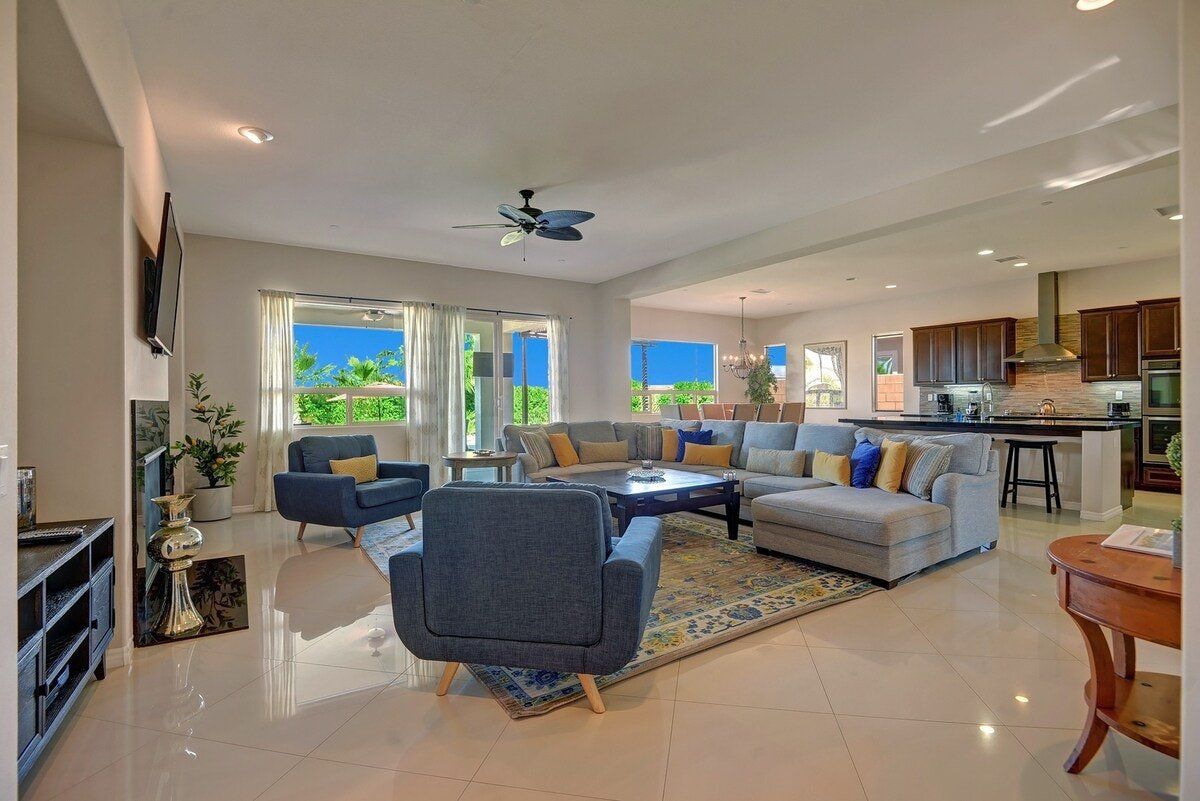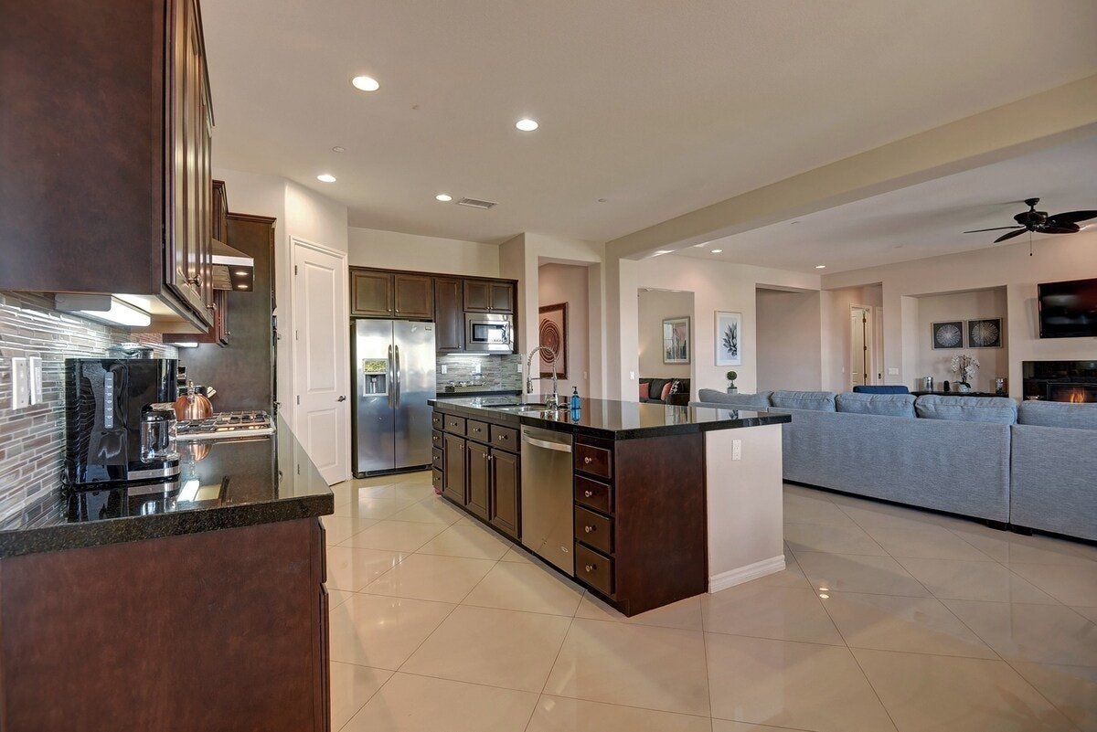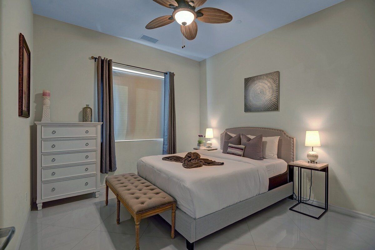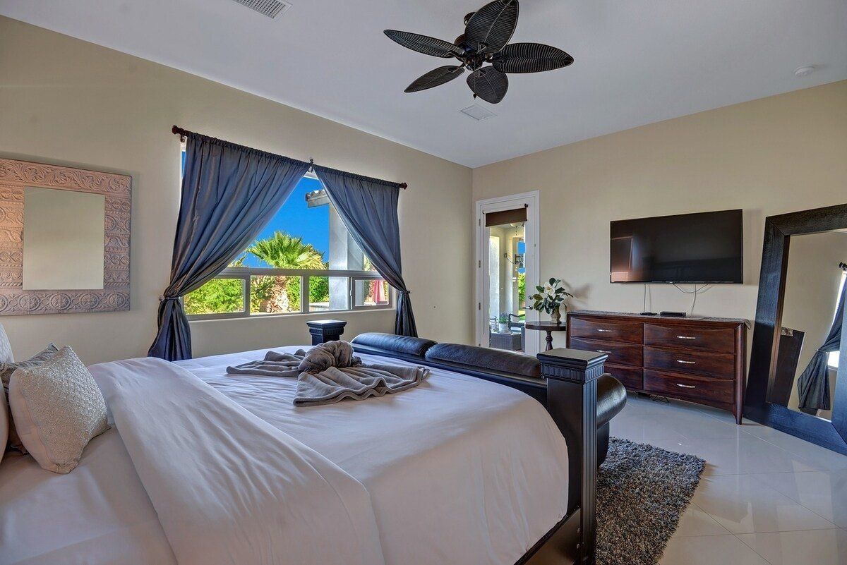 This comfortable home in the East Valley has a wonderful outdoor space perfect for entertaining. Spend days out by the large saltwater pool, alternating between cool waters and the bubbling hot tub. Then sprawl out on the lounger with your holiday read and soak in the strong desert sun. We love the shaded outdoor area with plush couches, perfect for when it grows too hot, and when the sun starts to set, fire up the gas barbecue for simple and delicious dinners. Inside, you’ll find a great open-plan layout perfect for family and friends to get together for quality time. The ten-foot ceilings create a light, roomy environment for relaxing, and there’s even a little casita with a separate entrance for guests who may want a little more privacy. You’ll be near plenty of golf courses for a vacation round and only a twenty-four-minute drive from downtown Palm Springs, should you want to explore neighbouring desert towns.