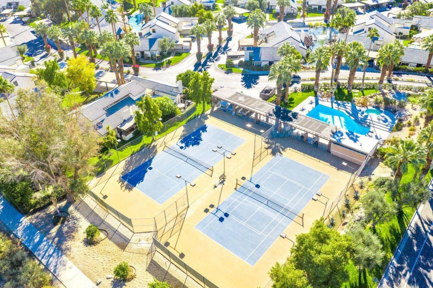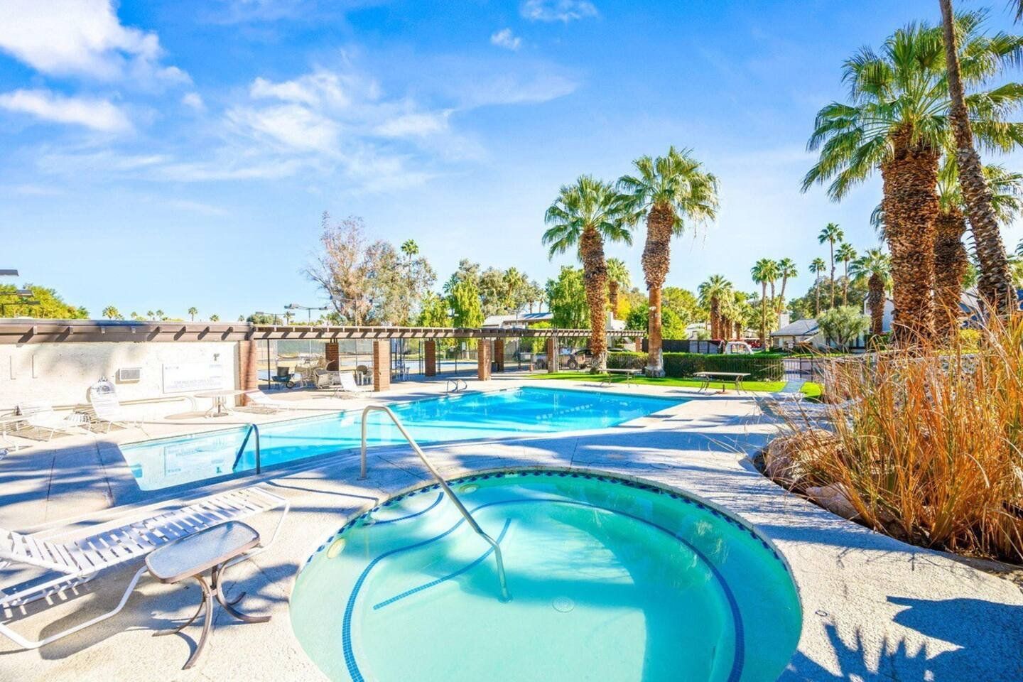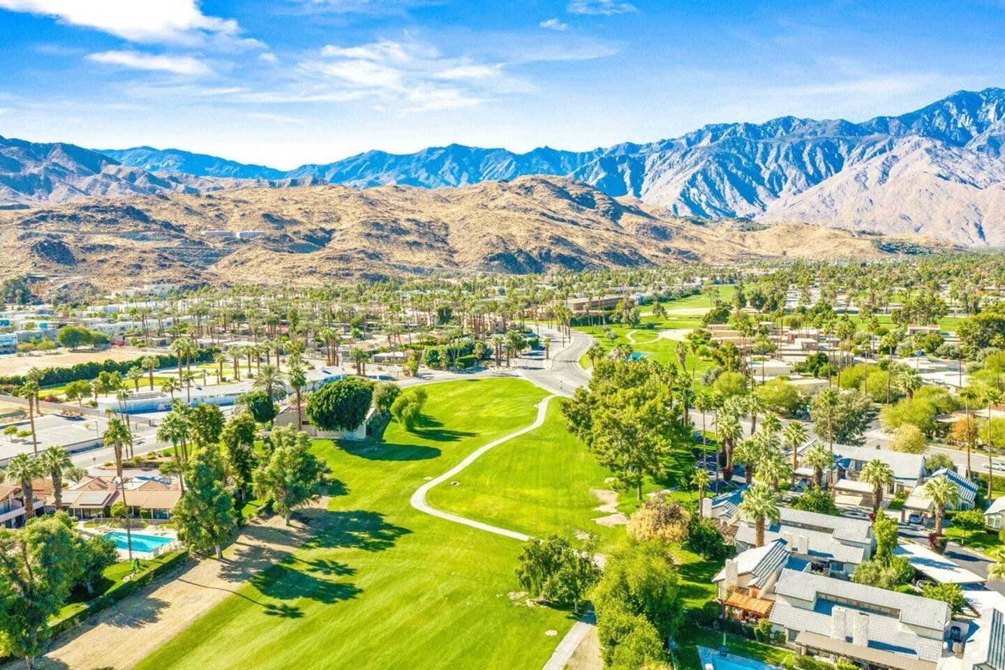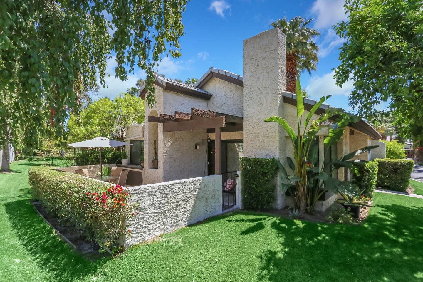 With its blend of mid-century modern, pop art and Art Deco furnishings, this home in Palm Springs exudes glamour and style. Built in 1976, this home has been carefully curated with comfort and elegance in mind by its owner, a lead designer for the last four American presidents. From the vaulted cathedral-style ceilings to the raised dining room, wet-bar and Marilyn Monroe-inspired master bedroom, there’s a constant kaleidoscope of colours, textures and artistic marvels here to admire against the windows’ beautiful mountain views. Step out of the living room and onto your private terrace where an outdoor sofa, table and chairs invite sunset drinks and alfresco meals surrounded by the lawn’s grapefruit, avocado, tangerine and lemon trees. Outside of your home, you’ve got access to the three communal swimming pools and hot tubs, as well as the shared tennis and pickleball courts to ramp up some friendly competition while catching those California rays. With the Tahquitz Creek Golf Course a ten-minute walk away, plenty of nearby cycling and hiking trails and Downtown Palm Springs just a ten-minute drive from your door, there’s no end to the fun and relaxation to be had here.